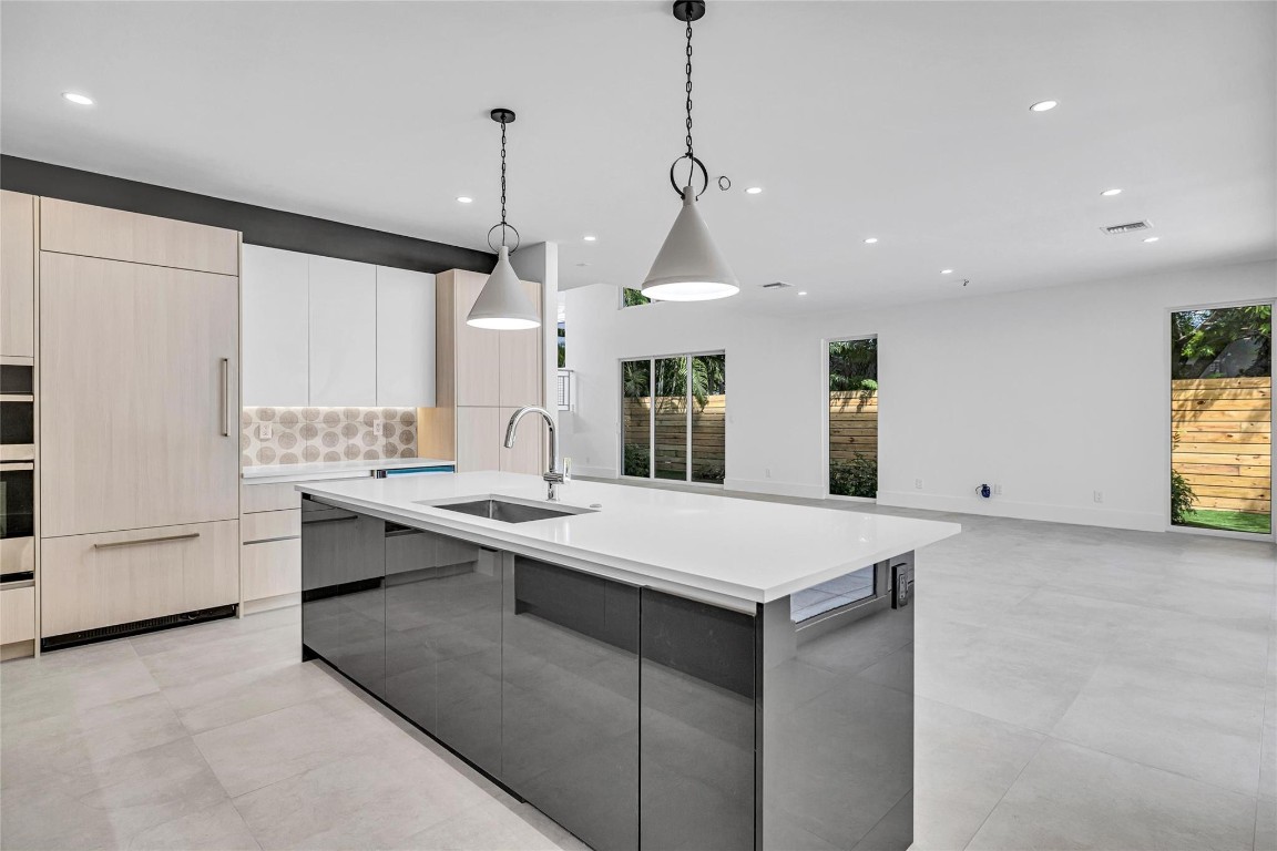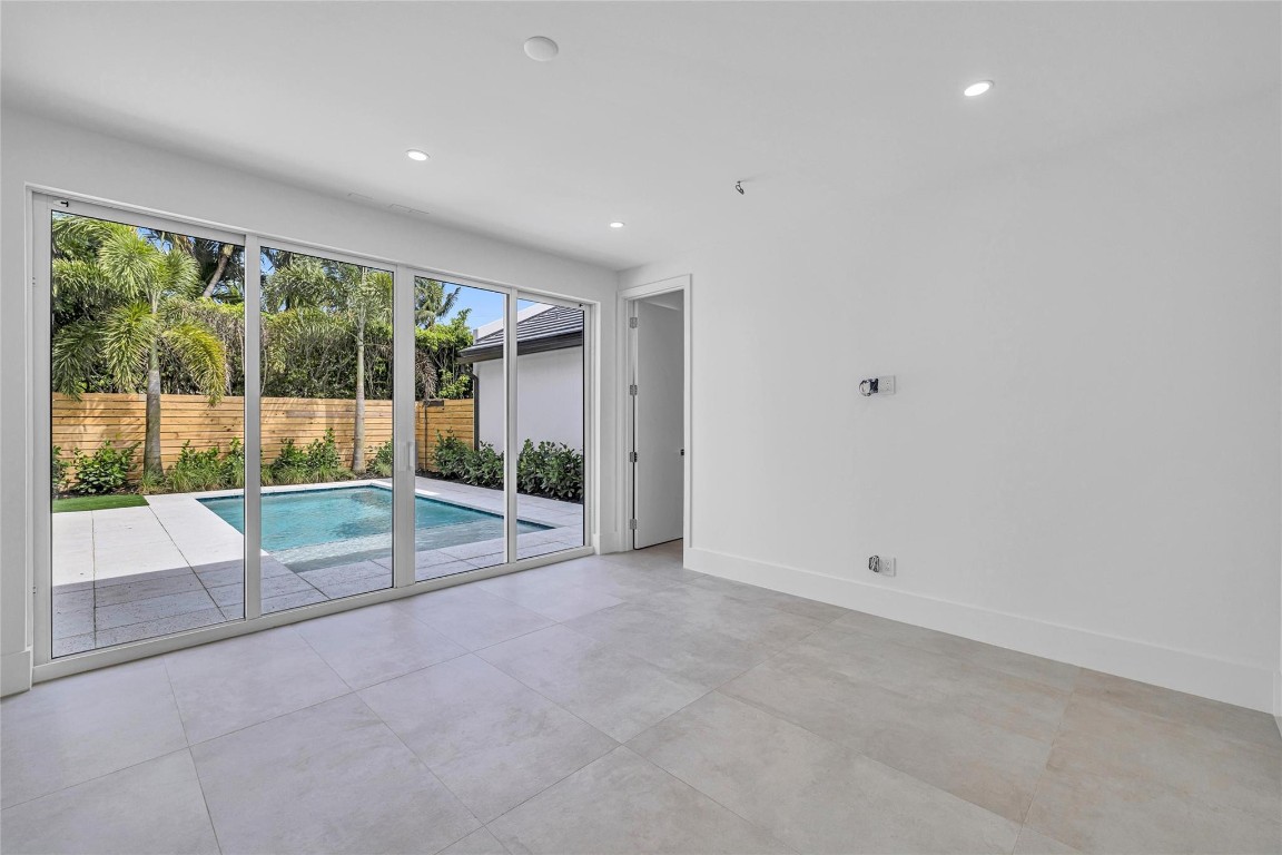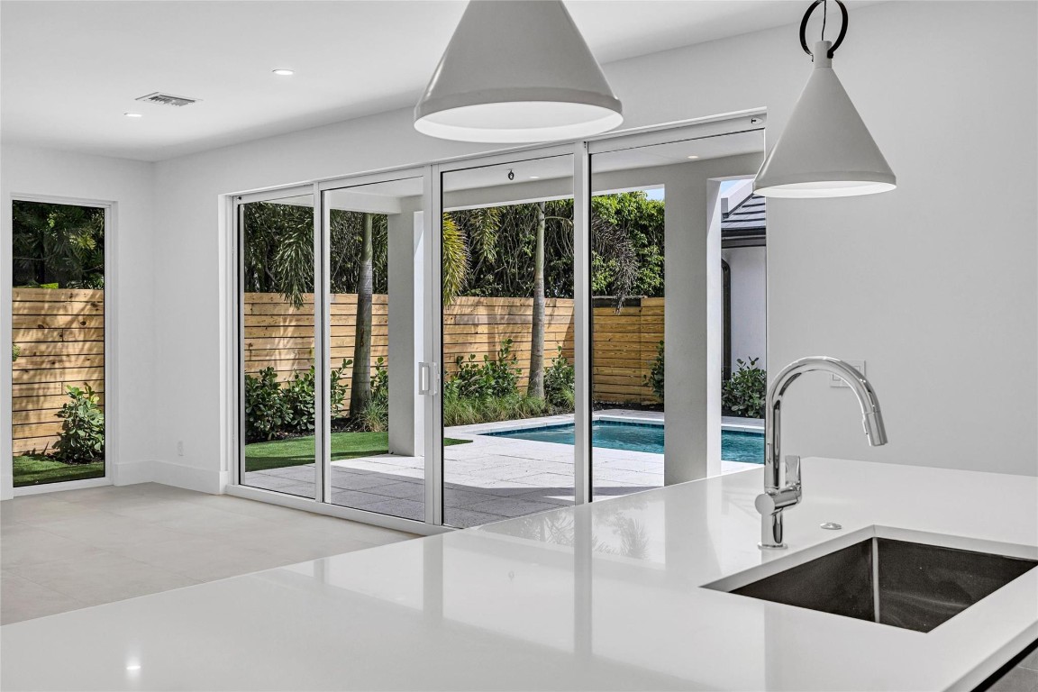Exceptional new construction in Victoria Park just completed. Impressive two story living spaces are filled with natural light. Huge walls, perfect to display your art. This unique property has a full bedroom and bath on the main flor and three full suites upstairs. Large bedrooms each has a finished walk-in closed and private bath with exterior access via a balcony or terrace. The kitchen has a large dining island, butler bar with wine chiller and a large pantry/laundry room adjacent. The very private back yard with southern exposure features a sunny pool with sun shelf and a wide patio. The attached garage is truly a 2-car space with an additional bump out storage area. Located blocks to holiday park, tennis, paddleball and skating. Beaches, Las Olas, shopping and fine dining are nearby.