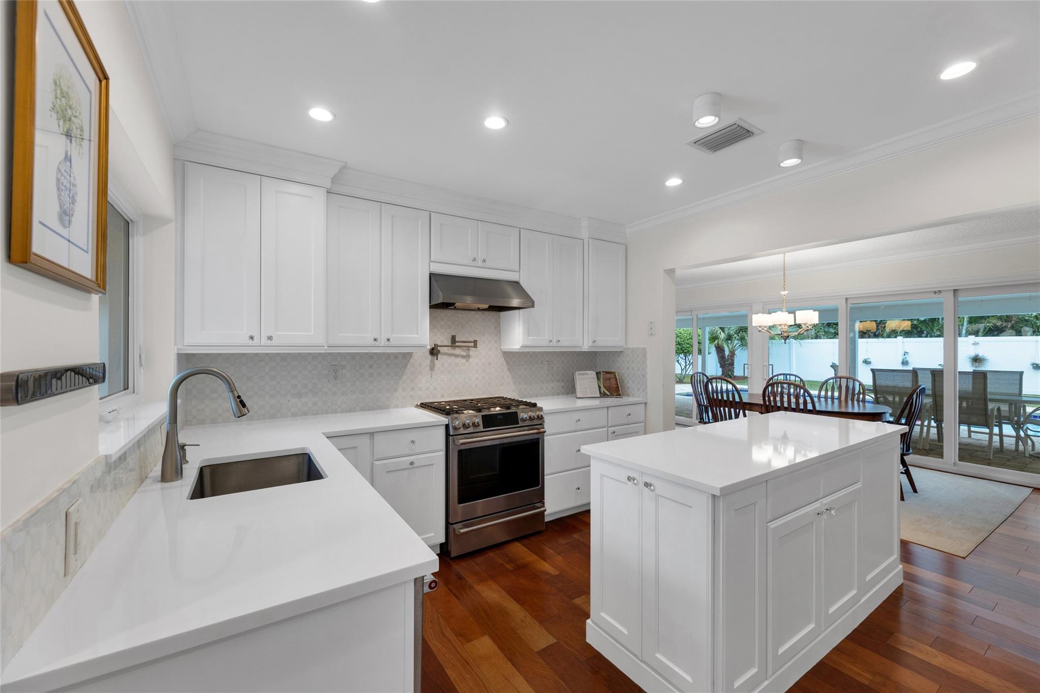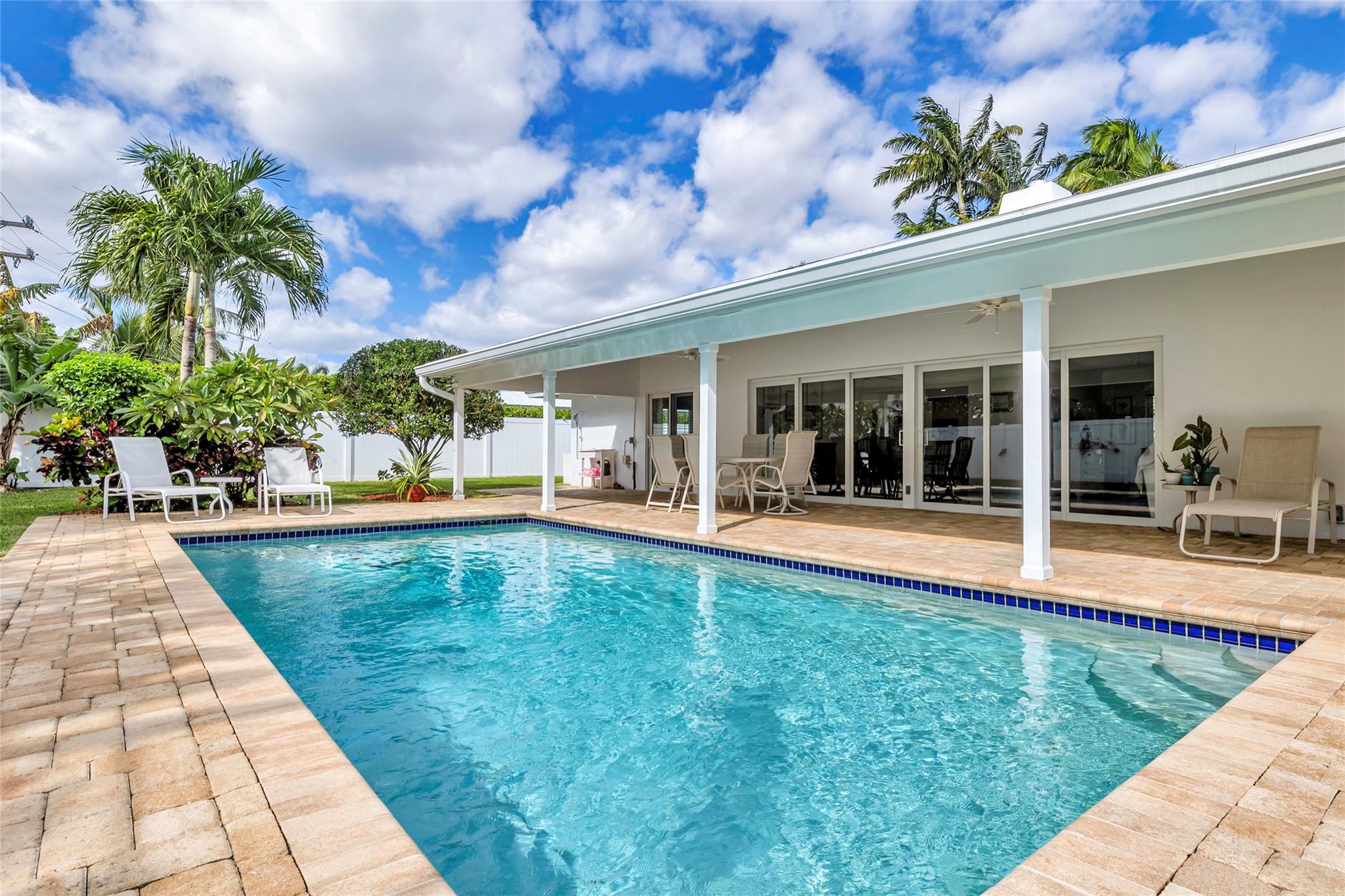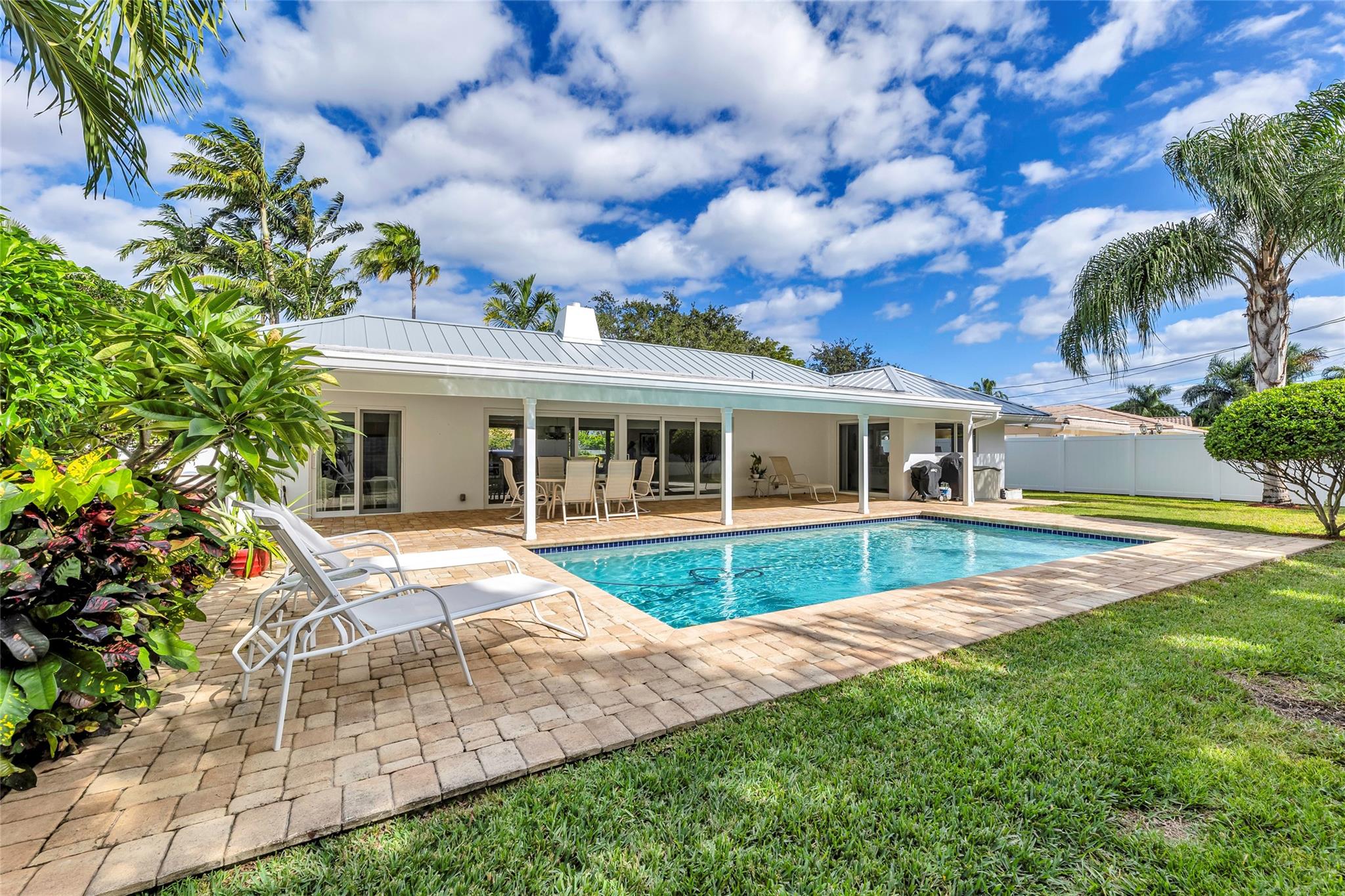 Perfectly located on a premier oversized lot on one of Coral Ridge Country Club's best streets, this island-style 3bed + office/den property boasts a totally optimized floor plan, abundant natural light, and huge bedrooms. Renovated gourmet kitchen features custom cabinetry, Pompeii quartz countertops, new marble splash, gas cooking, abundant storage & new appliances. Enjoy your private outdoor oasis w/heated saltwater pool, huge covered porch, lush landscaping, fruit trees, and 8-foot catering gate! FULL IMPACT WINDOWS & DOORS, 2018 METAL ROOF, oversized 2-car garage w/mini-split A/C for your morning workout complete this gem. Lifestyle & location close to beach, clubs, ICW & everything you love about Fort Lauderdale! Owner/agent.