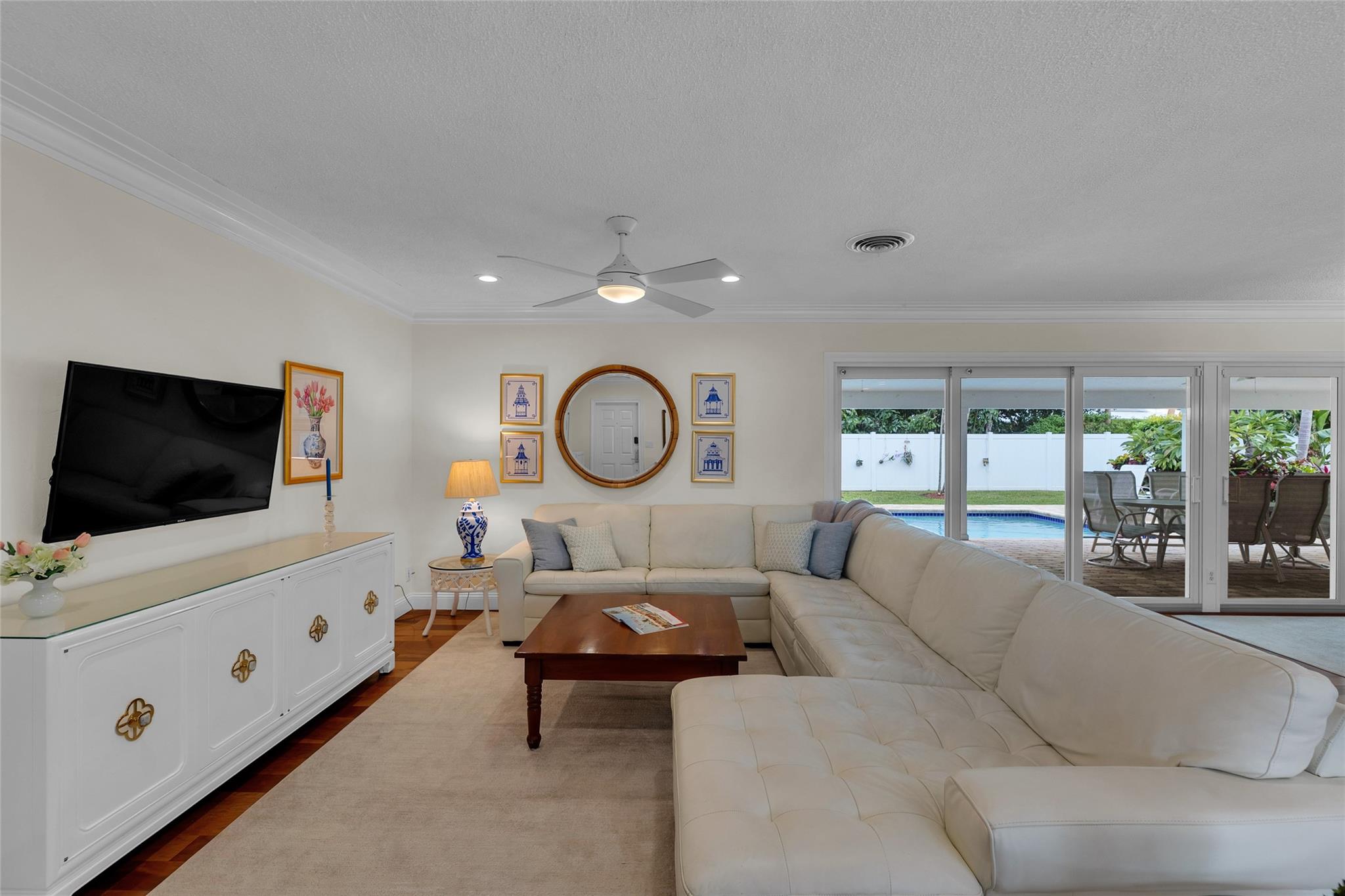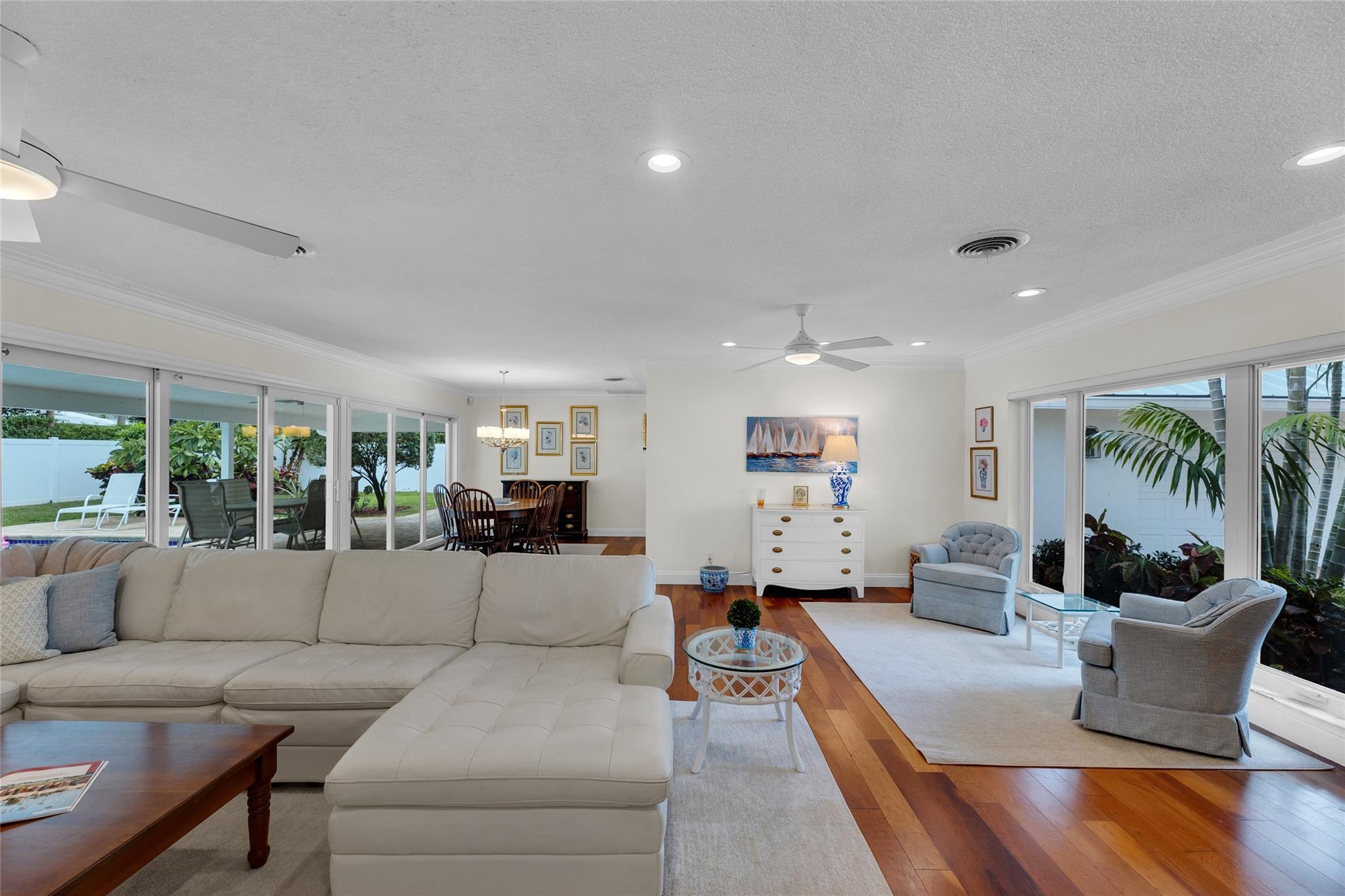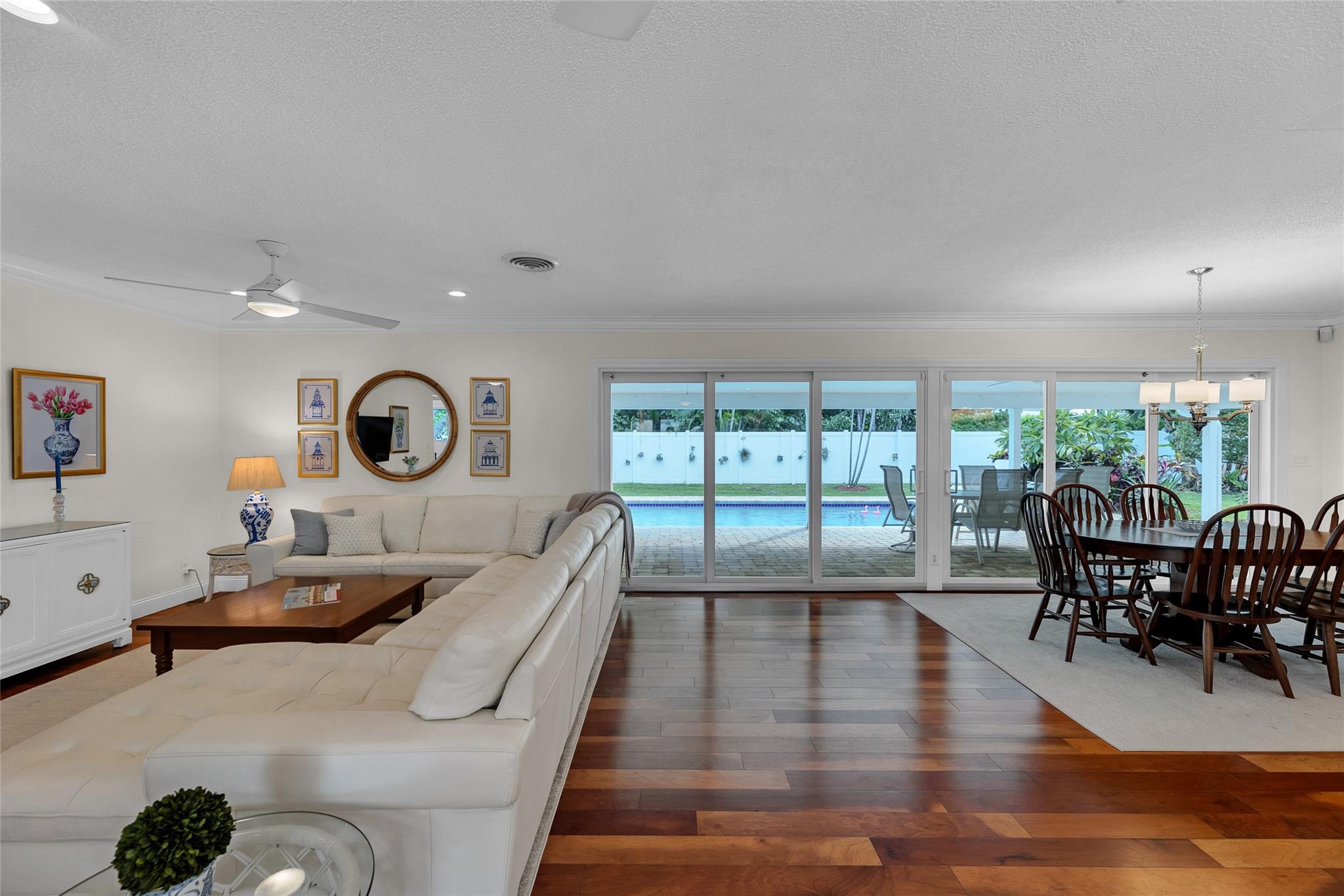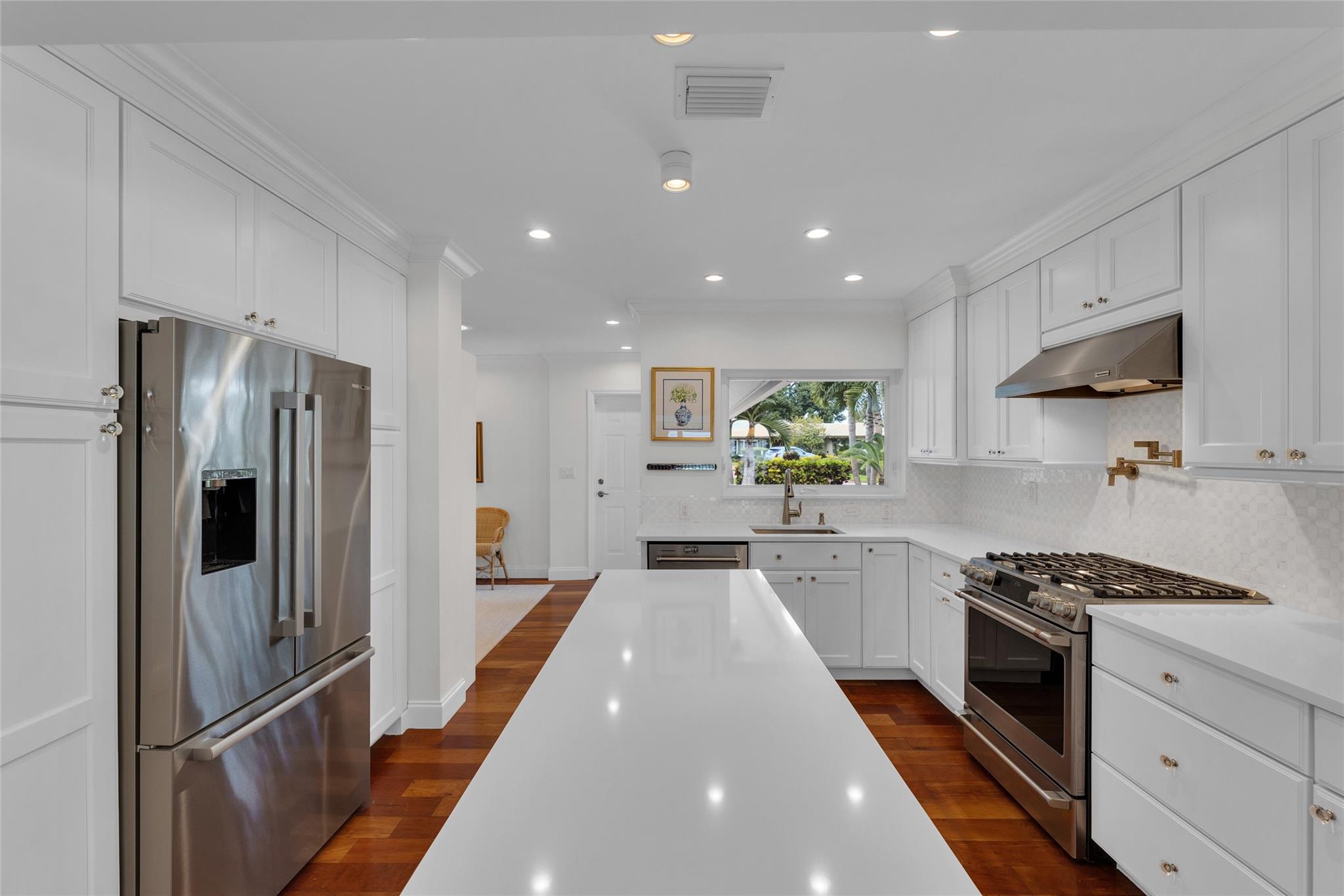 Perfectly located on a premier oversized lot on one of Coral Ridge Country Club's best streets, this island-style 3bed + office/den property boasts a totally optimized floor plan, abundant natural light, and huge bedrooms. Renovated gourmet kitchen features custom cabinetry, Pompeii quartz countertops, new marble splash, gas cooking, abundant storage & new appliances. Enjoy your private outdoor oasis w/heated saltwater pool, huge covered porch, lush landscaping, fruit trees, and 8-foot catering gate! FULL IMPACT WINDOWS & DOORS, 2018 METAL ROOF, oversized 2-car garage w/mini-split A/C for your morning workout complete this gem. Lifestyle & location close to beach, clubs, ICW & everything you love about Fort Lauderdale! Owner/agent.
