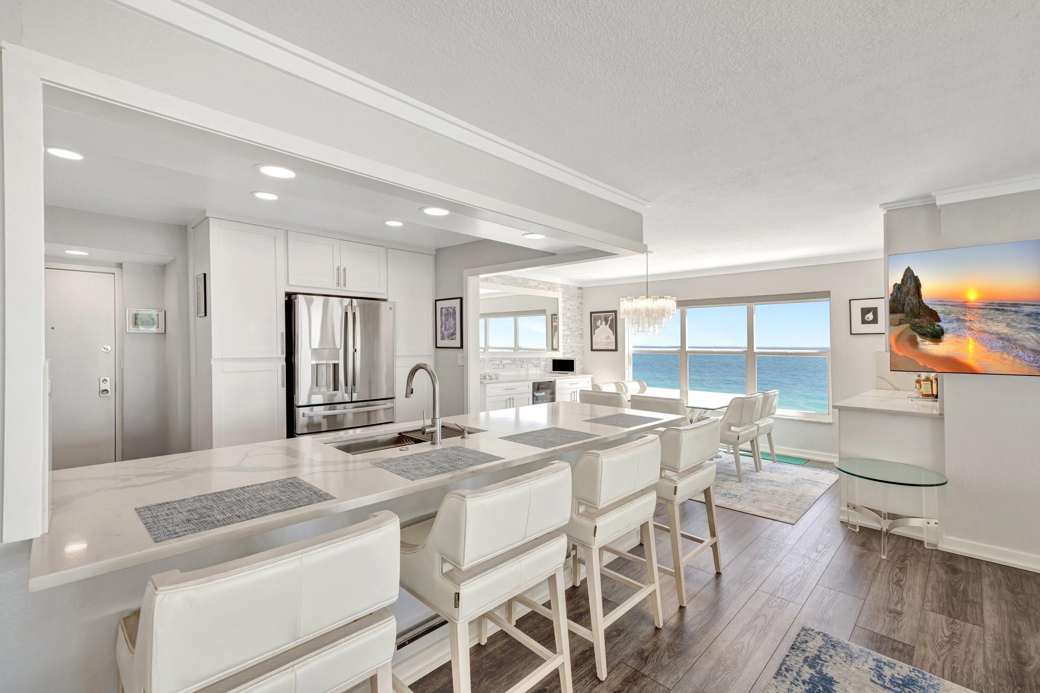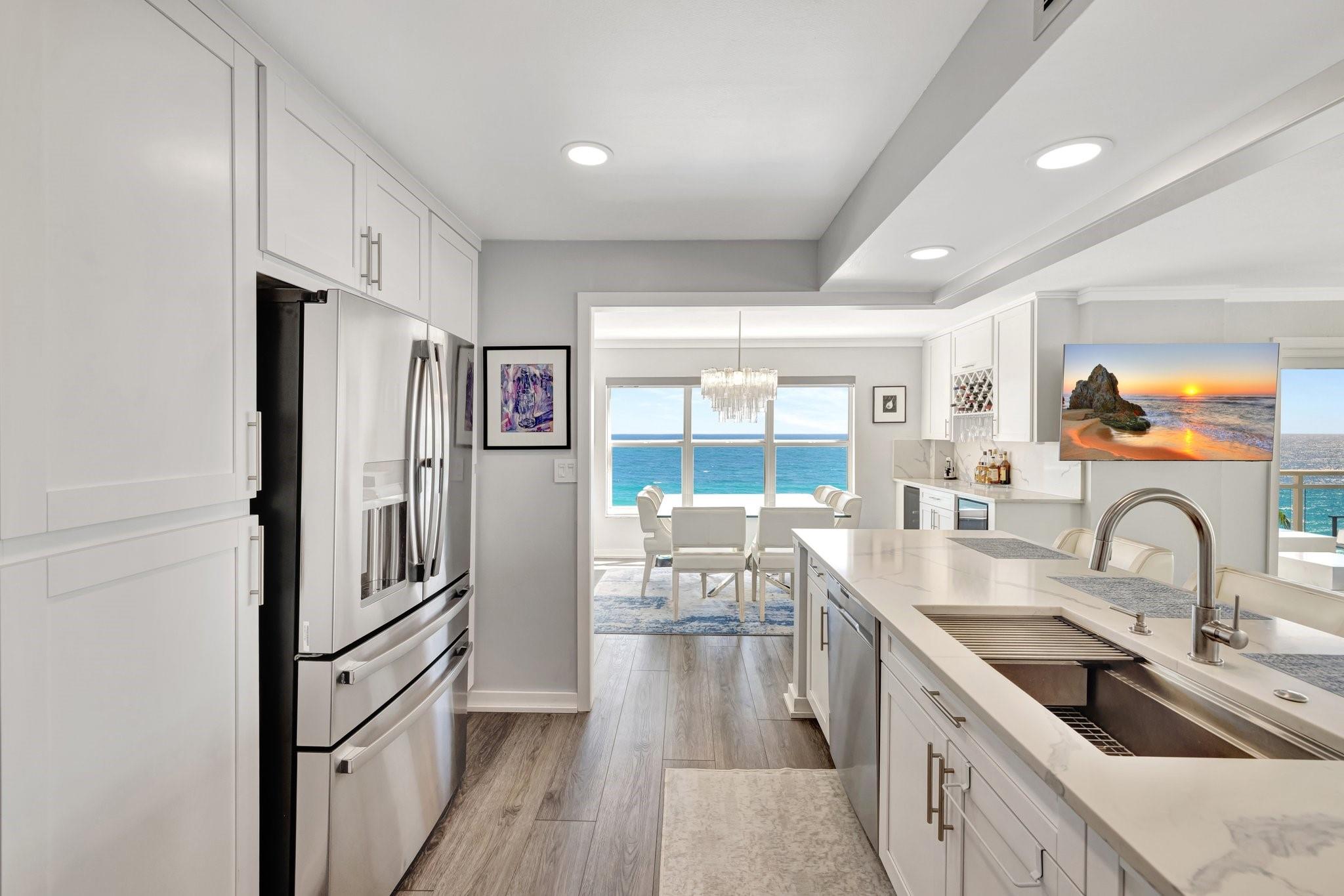 Enjoy Fort Lauderdale Beach living at it's finest! This completely remodeled 3 bedroom 2.5 bath exudes coastal elegance. Direct oceanfront corner unit offering sunny southeast exposure w/ unobstructed ocean views from every window. Kitchen features: large island w/ quartz counters, white shaker cabinetry & GE Profile appliances. Enjoy ocean breezes from the wrap around balcony w/ custom impact sliders. High-end wide plank LV flooring throughout & LED lighting. Formal dining w/ custom built-in cabinetry w/ 3 wine coolers. Premium 2-car garage parking right off the elevator. Playa Del Mar offers 400’ of beachfront w/ endless luxury amenities including: heated pool w/ cabanas, party room, BBQ, 3 gyms, theater room, business center, on-site management, beach chairs w/ umbrellas, kayaks & more!