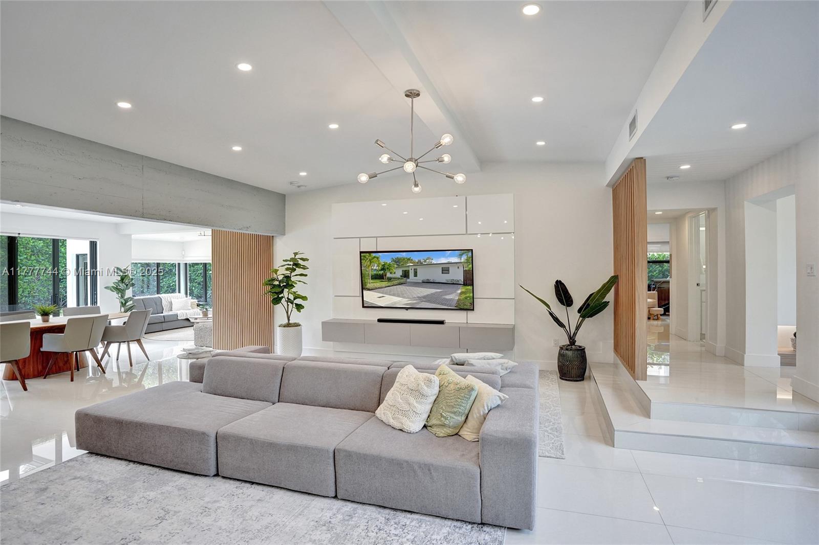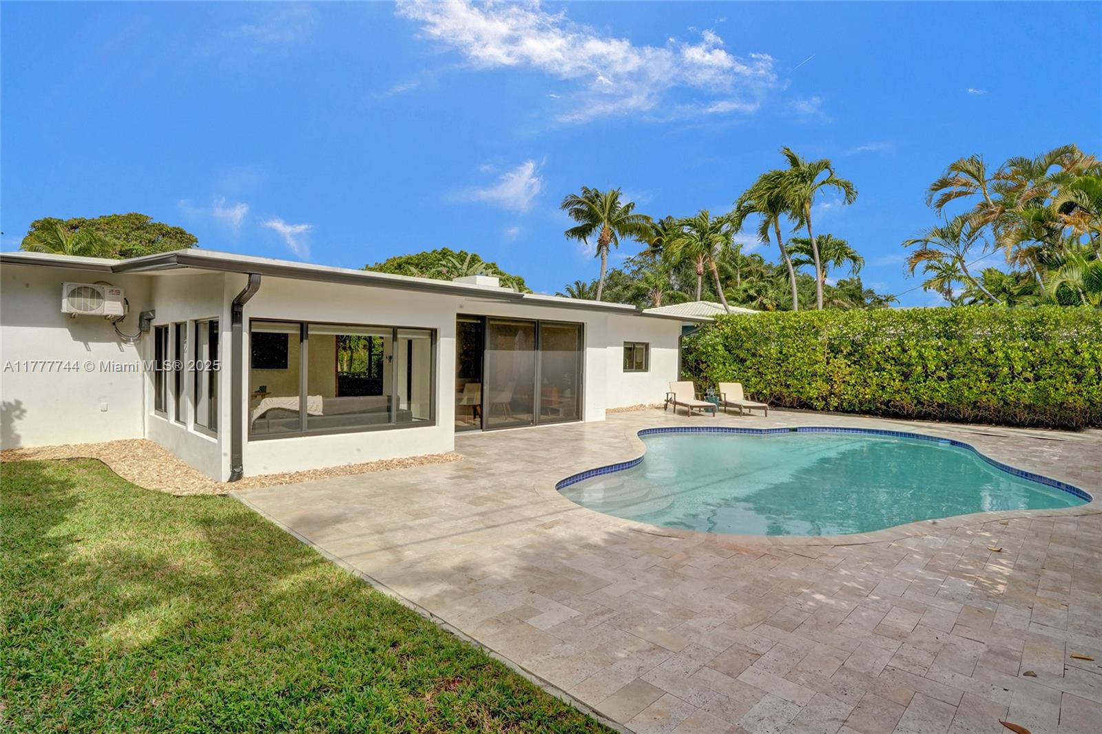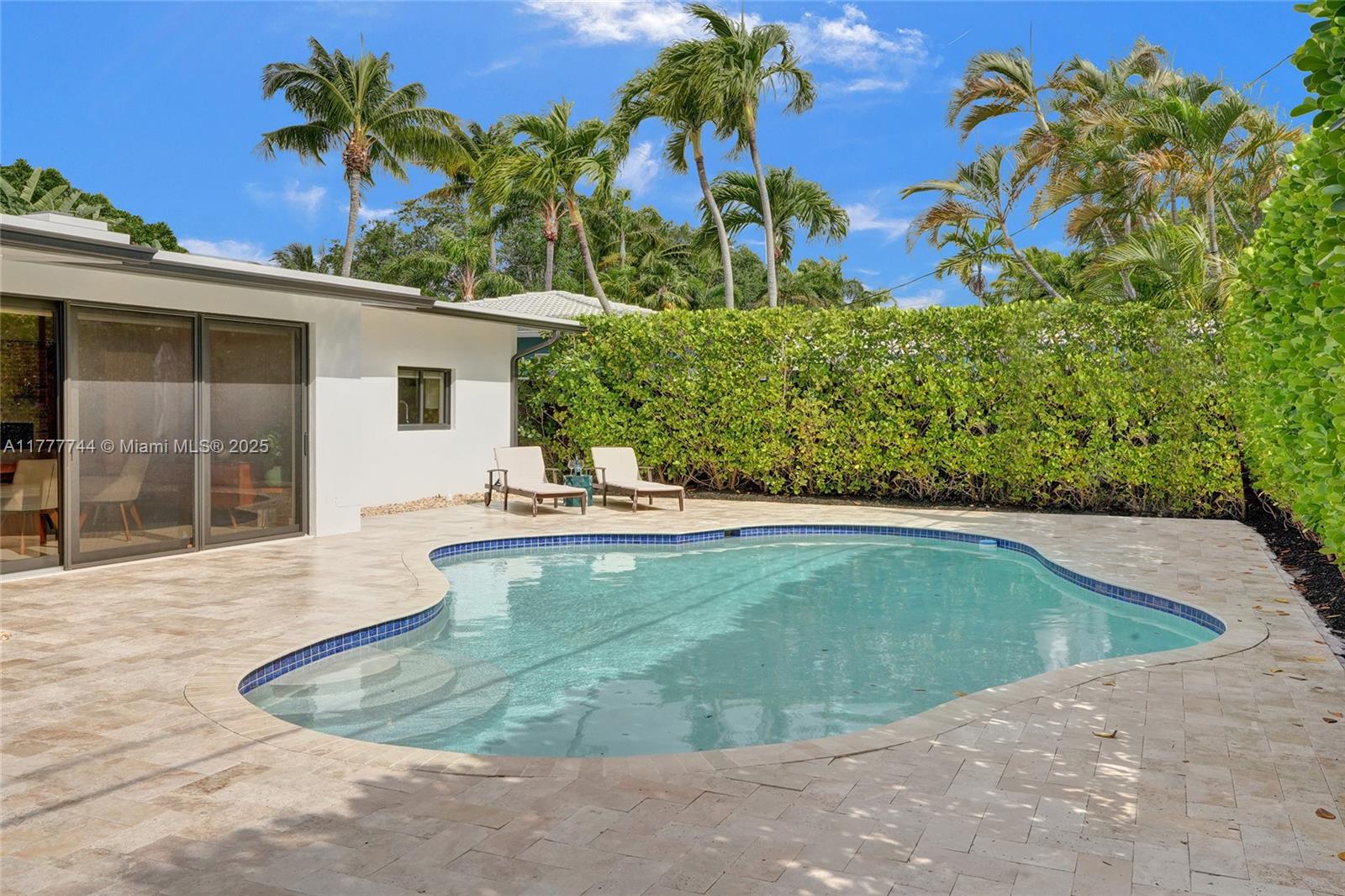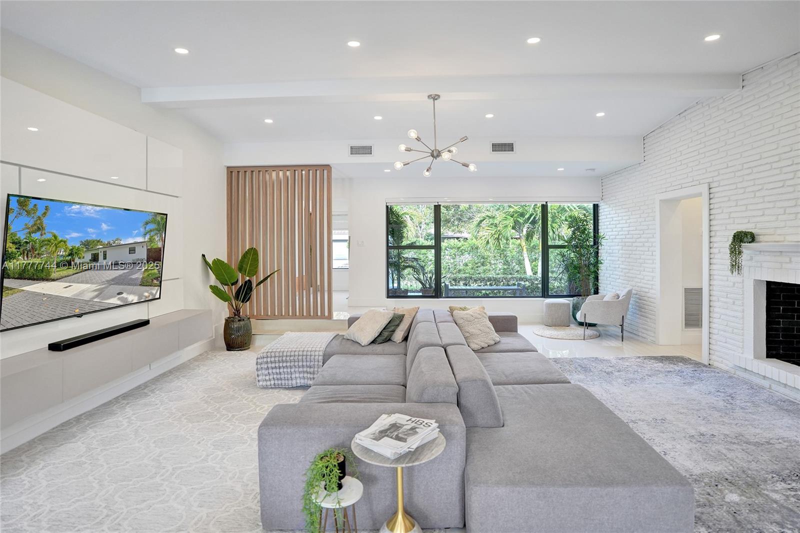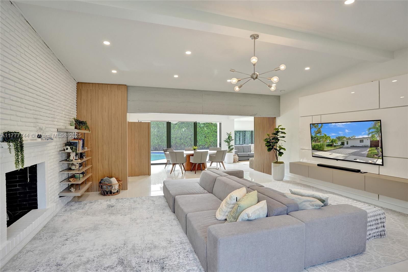 IT'S ALL ABOUT THE DETAILS...and this home has them all. REBUILT inside/ out with nothing older than a few years. The foyer entry overlooks a spacious great room w/ vaulted ceiling. High-end designer finishes are on every wall: white-painted brick, decorative structural beams, hidden doors w/ sleek wood paneling. This generously sized split-floor plan 3 bedrooms / 2 bathrooms + a separate office/ den. A stackable wall of windows out to a manured backyard w/ travertine pool deck & a unique-shaped swimming pool; surrounded by private hedging, perfect for entertaining. Customized kitchen, laid out w/ designer-line appliances, serving window, gas range & full storage/pantry. The primary bath is lined w/ custom closets, a double vanity & upgraded tile/ finishes. Priceless.