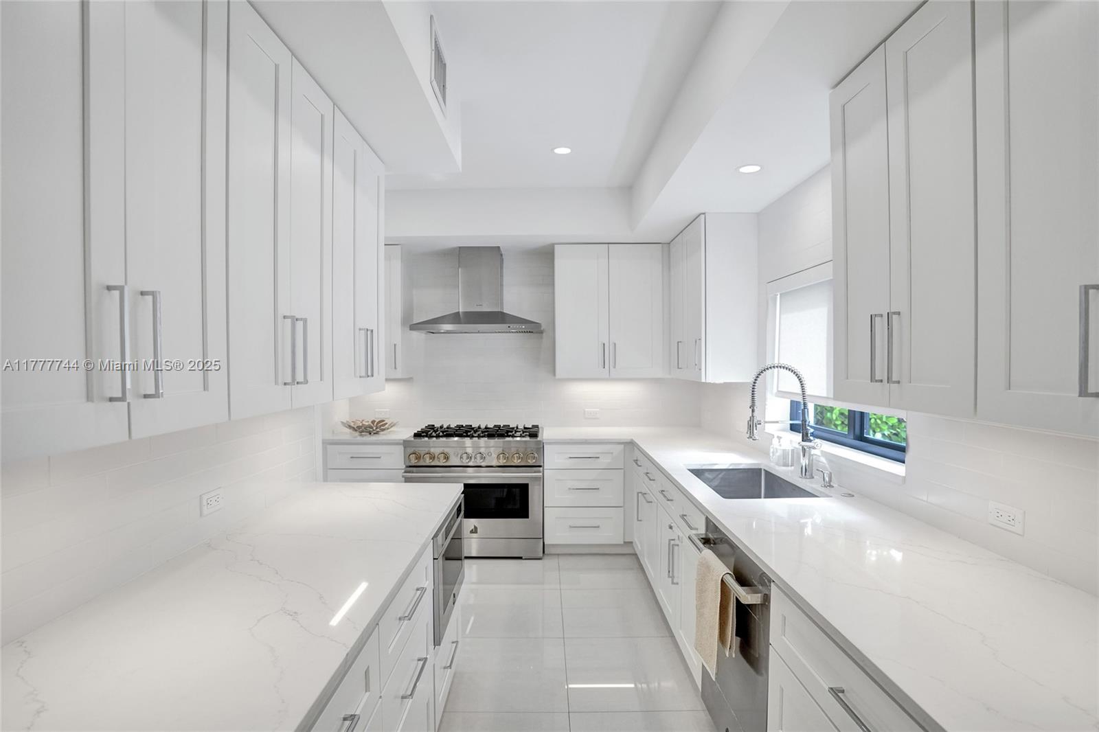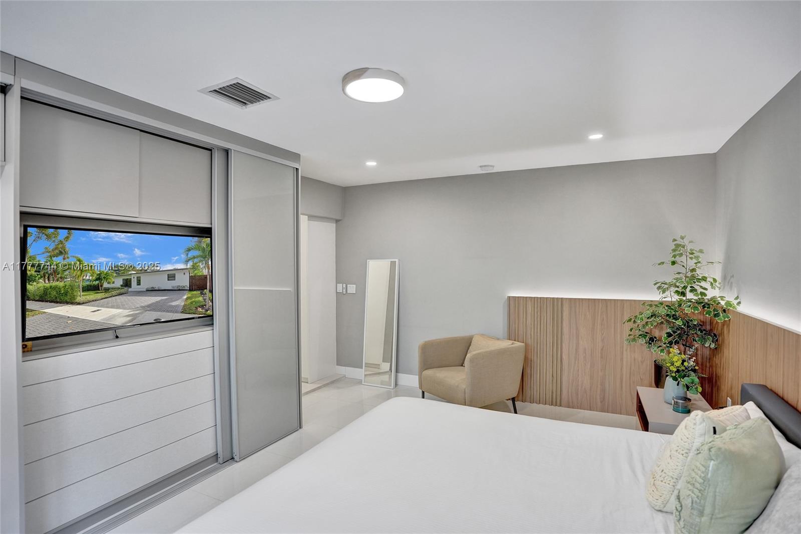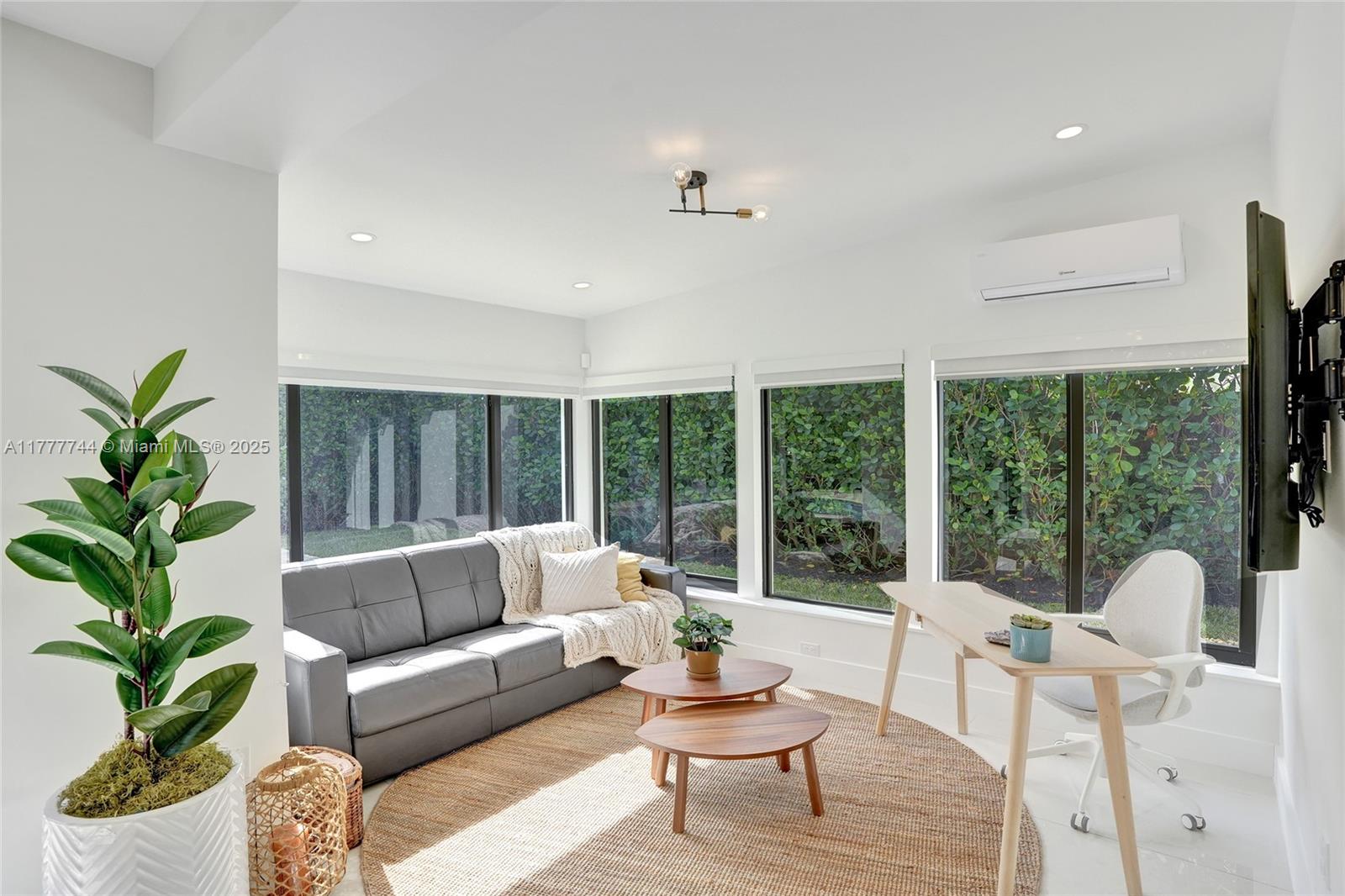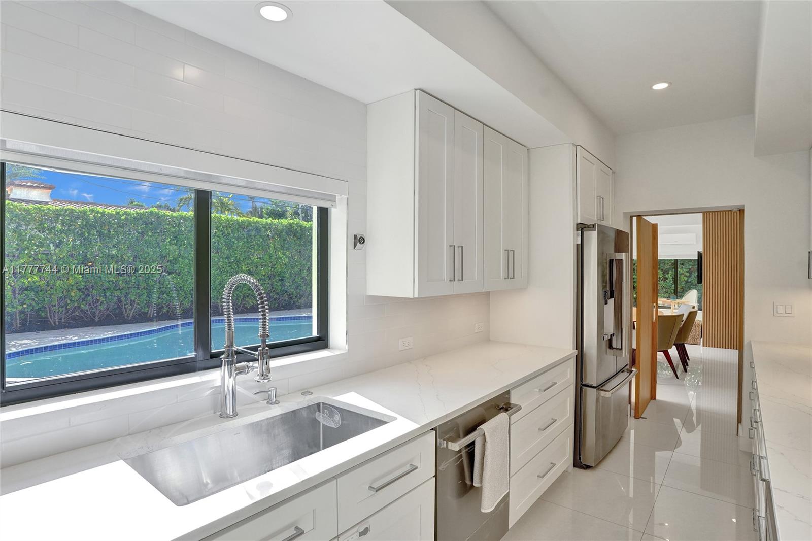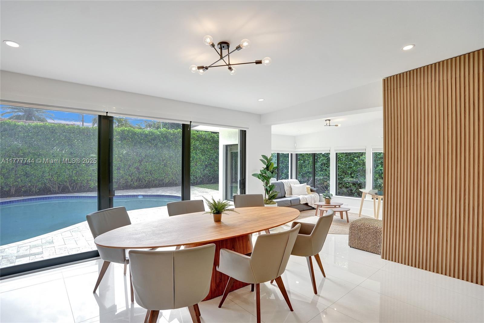 IT'S ALL ABOUT THE DETAILS...and this home has them all. REBUILT inside/ out with nothing older than a few years. The foyer entry overlooks a spacious great room w/ vaulted ceiling. High-end designer finishes are on every wall: white-painted brick, decorative structural beams, hidden doors w/ sleek wood paneling. This generously sized split-floor plan 3 bedrooms / 2 bathrooms + a separate office/ den. A stackable wall of windows out to a manured backyard w/ travertine pool deck & a unique-shaped swimming pool; surrounded by private hedging, perfect for entertaining. Customized kitchen, laid out w/ designer-line appliances, serving window, gas range & full storage/pantry. The primary bath is lined w/ custom closets, a double vanity & upgraded tile/ finishes. Priceless.