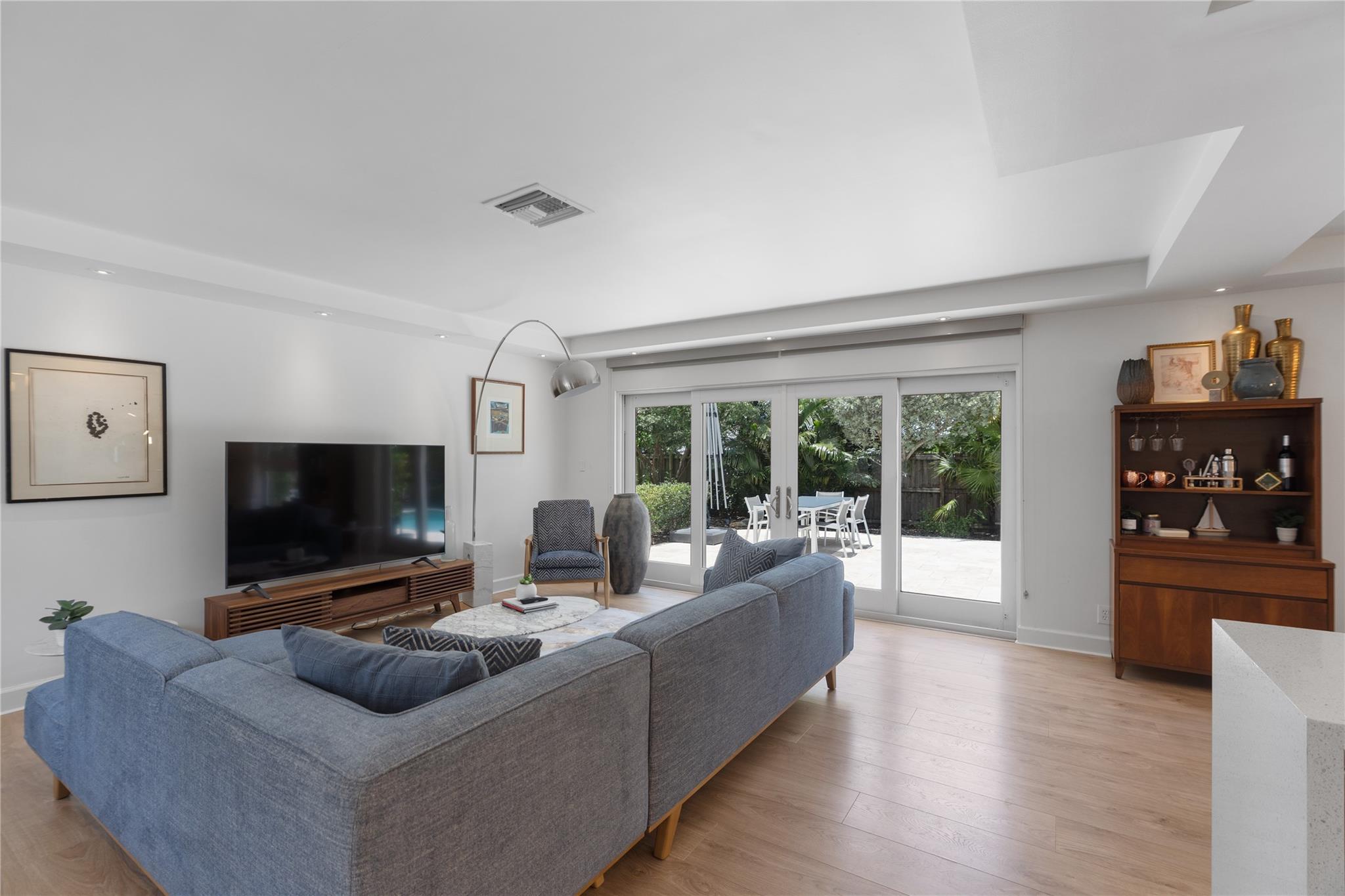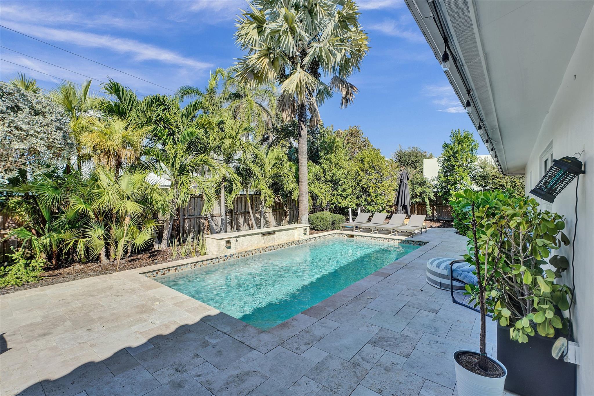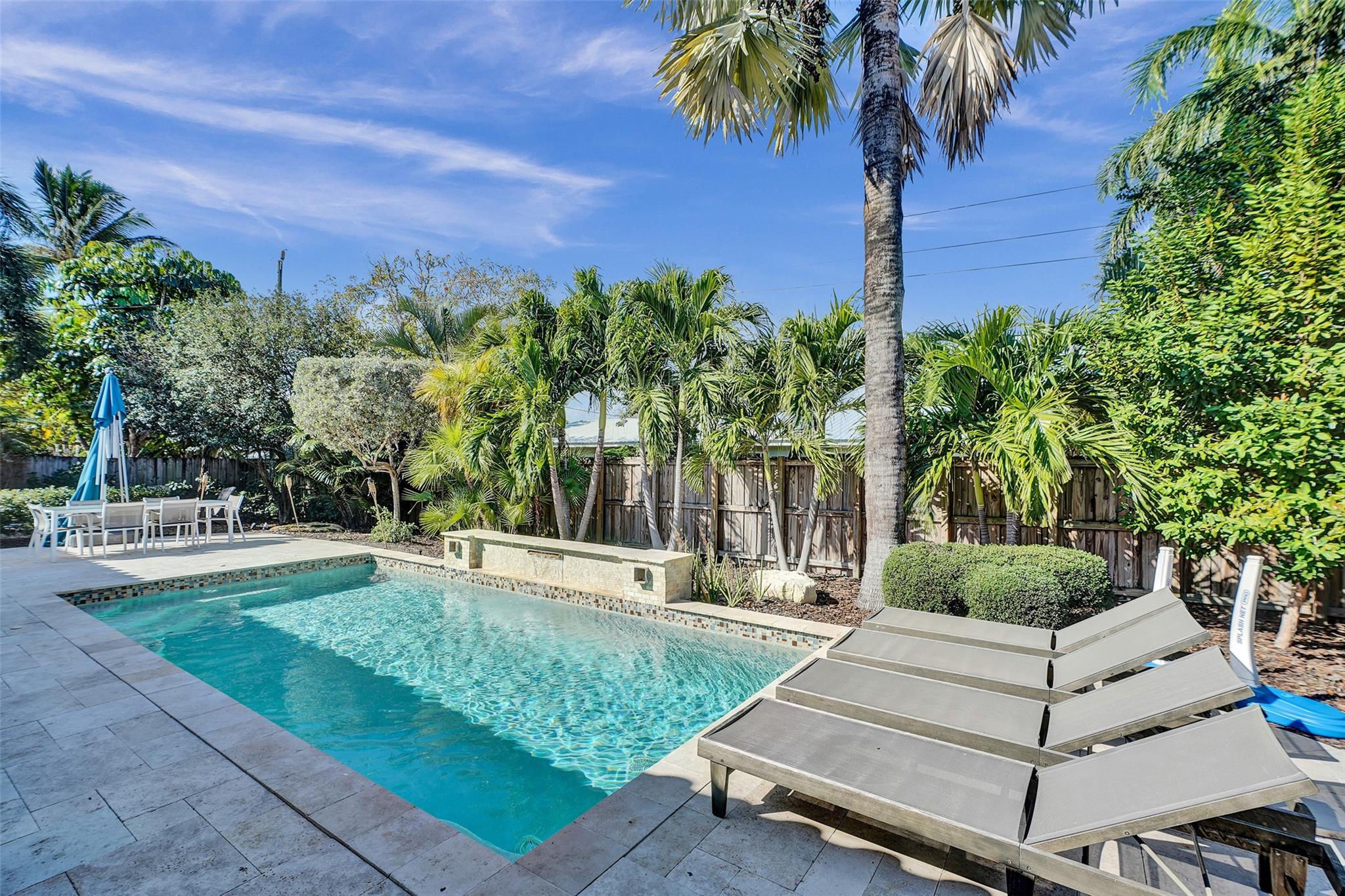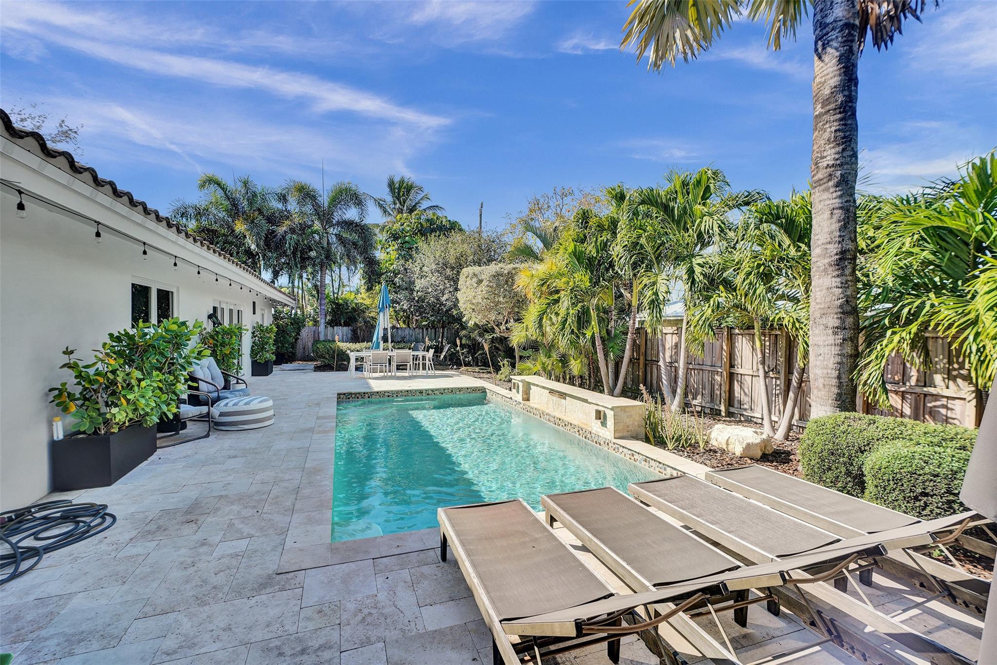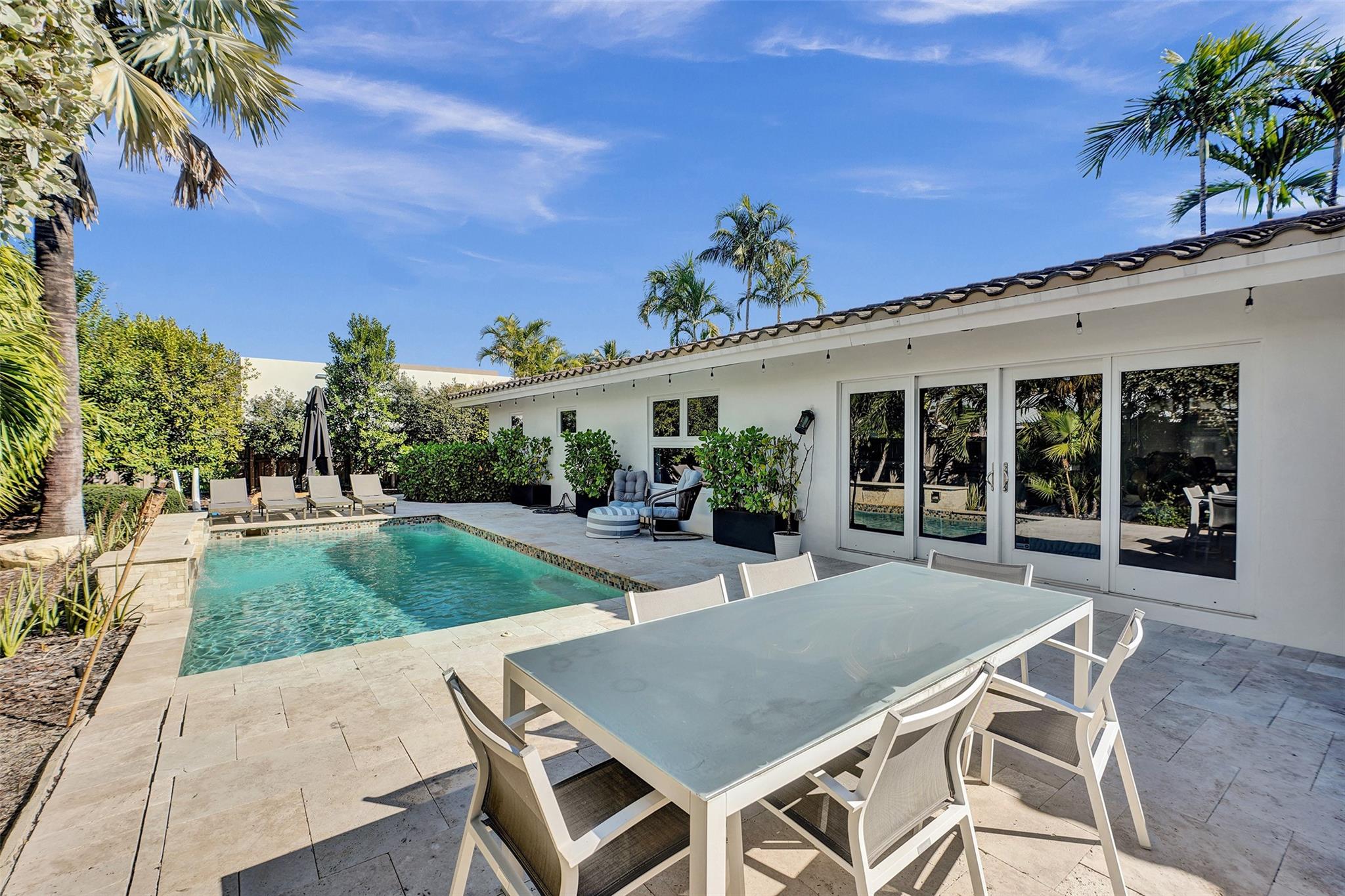 This contemporary 3 bed 2 bath single family home has been tastefully remodeled and furnished. It offers an open floor plan, custom designed kitchen, s/s appliances, quartz countertops and plenty of storage. The master bedroom features an en-suite bathroom with stall shower ; the two other guests rooms share a bathroom with a tub/shower combination. Very bright living room opening to a nice sized and private backyard. Heated salt system pool, outdoor shower. Two car garage, circular driveway, full house generator, landscape lighting and water purification system. This property is conveniently located in Coral Ridge, minutes from restaurants and shops and is part of the Bayview School District.