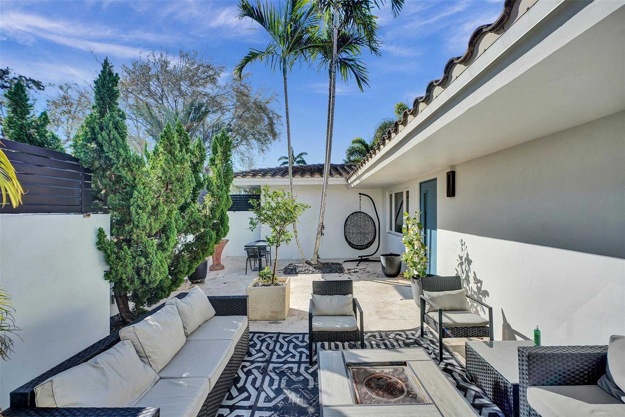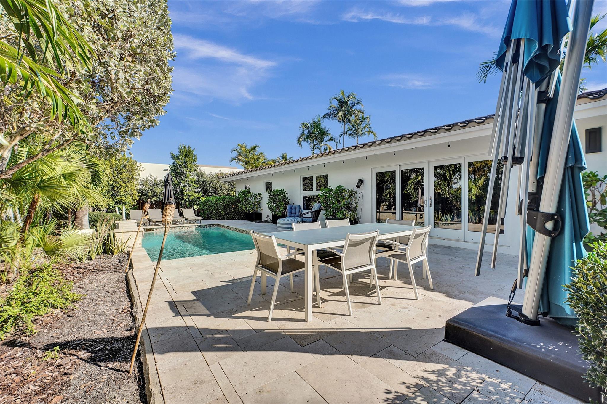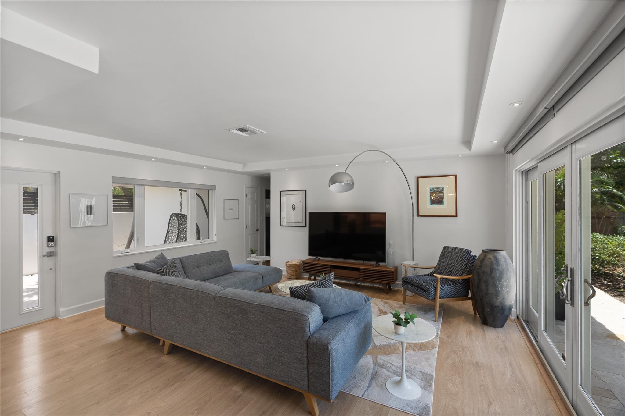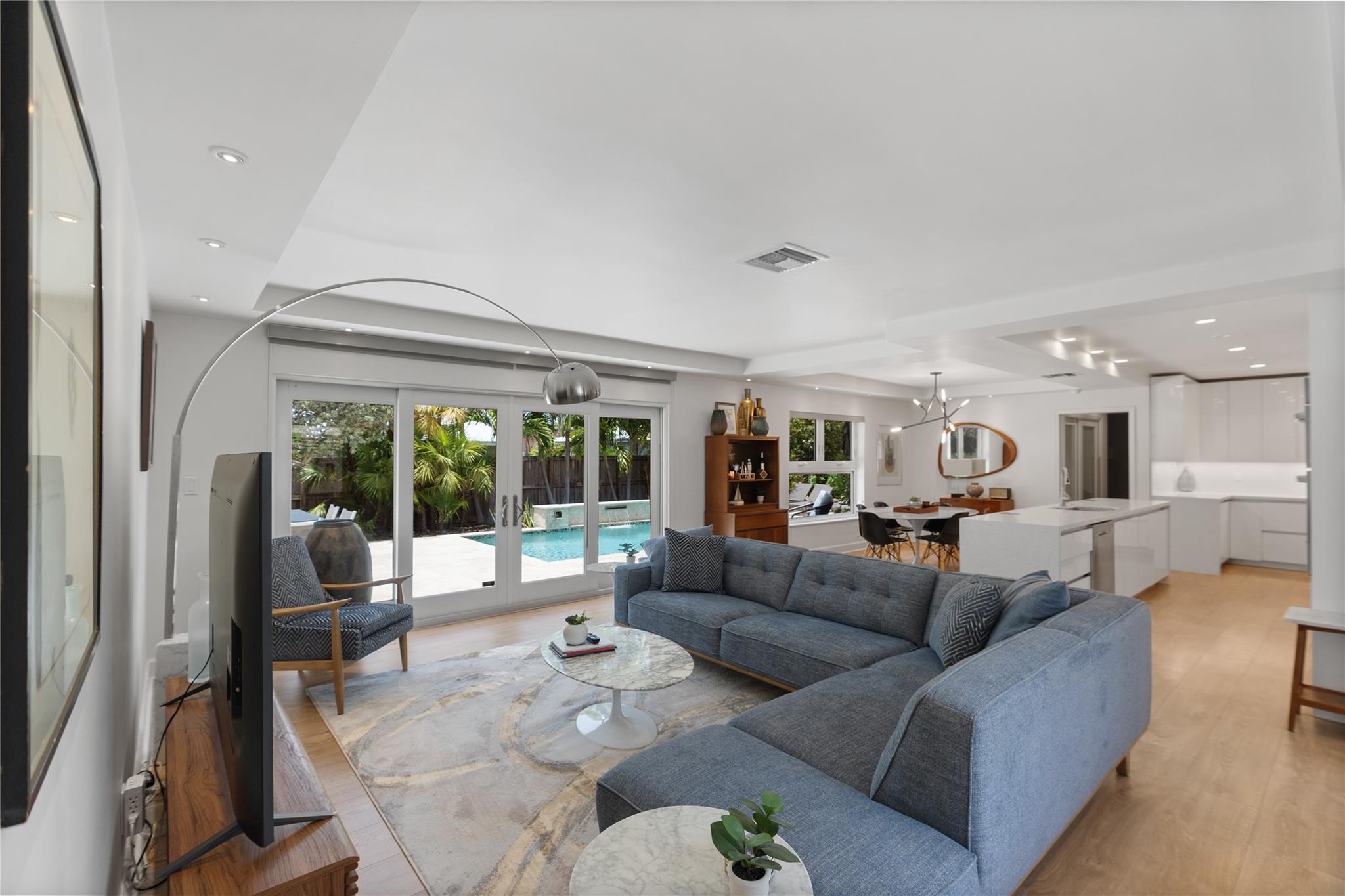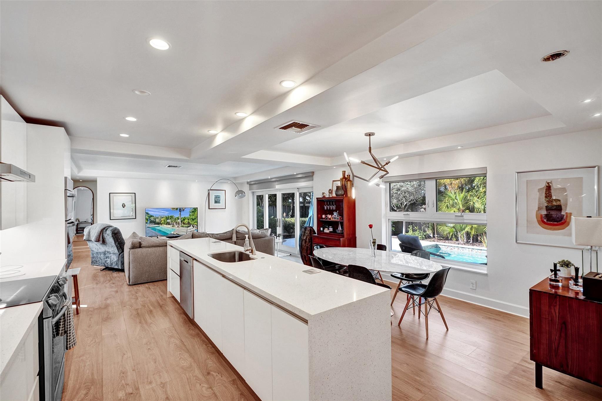 This contemporary 3 bed 2 bath single family home has been tastefully remodeled and furnished. It offers an open floor plan, custom designed kitchen, s/s appliances, quartz countertops and plenty of storage. The master bedroom features an en-suite bathroom with stall shower ; the two other guests rooms share a bathroom with a tub/shower combination. Very bright living room opening to a nice sized and private backyard. Heated salt system pool, outdoor shower. Two car garage, circular driveway, full house generator, landscape lighting and water purification system. This property is conveniently located in Coral Ridge, minutes from restaurants and shops and is part of the Bayview School District.