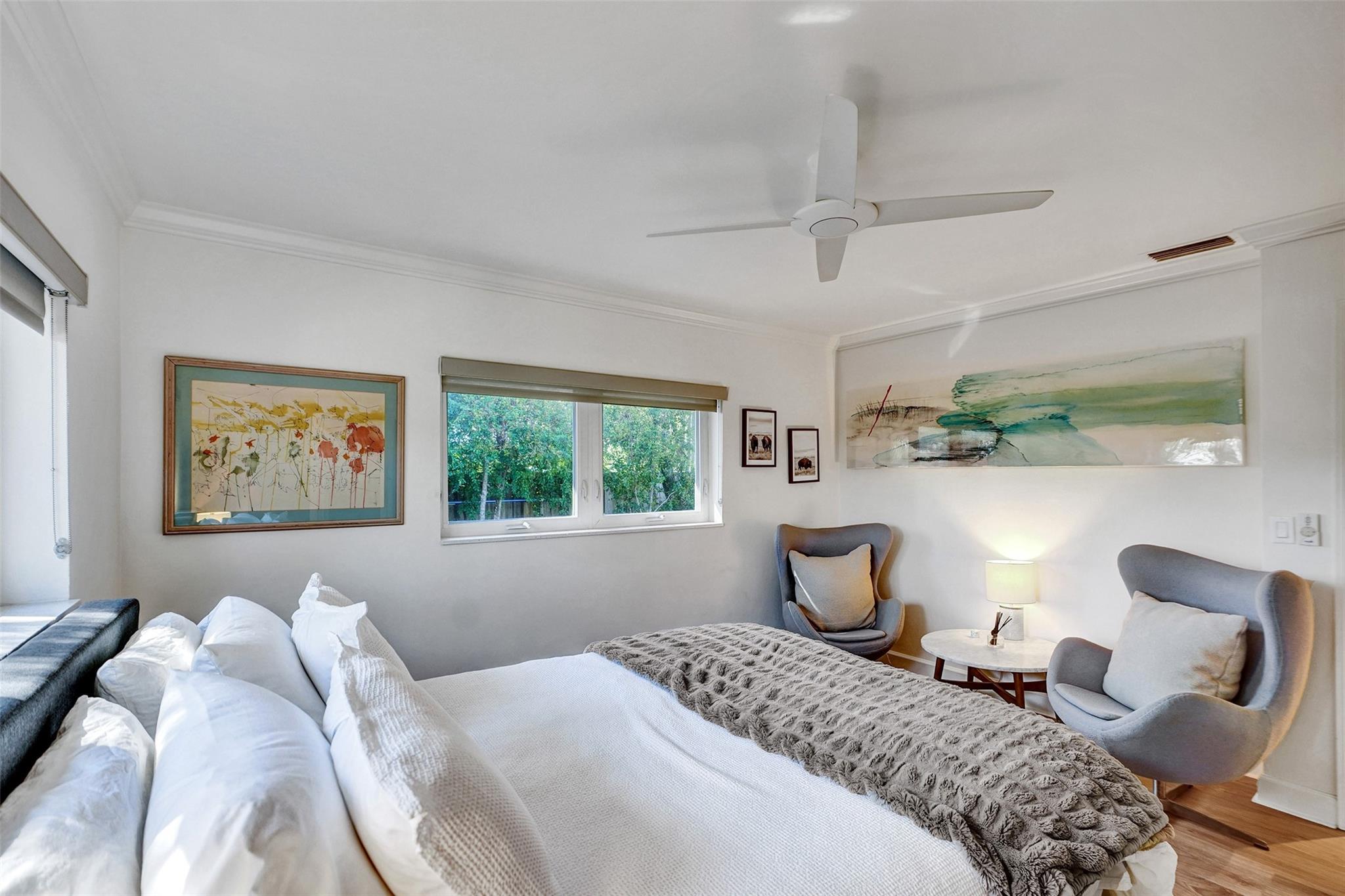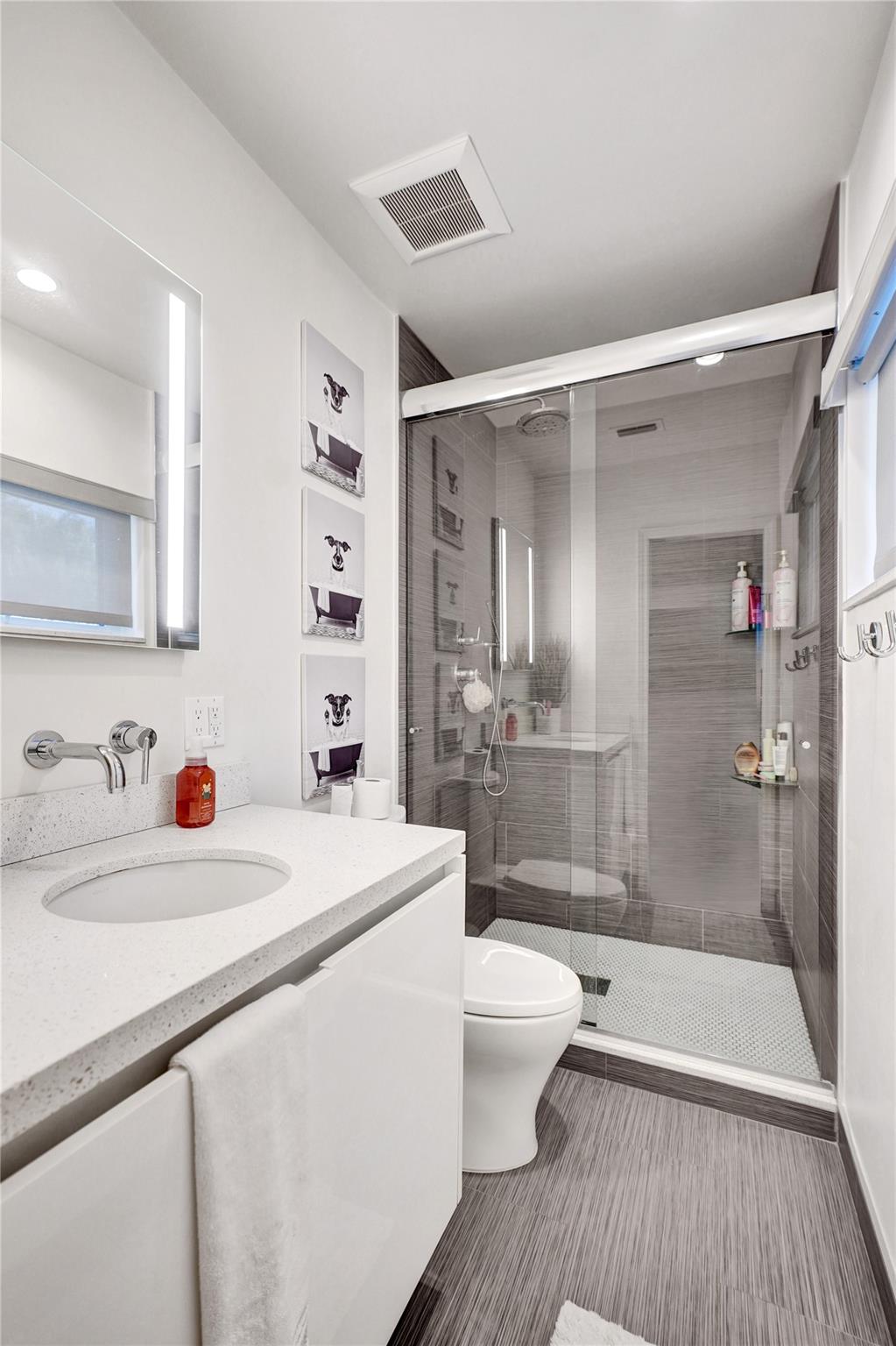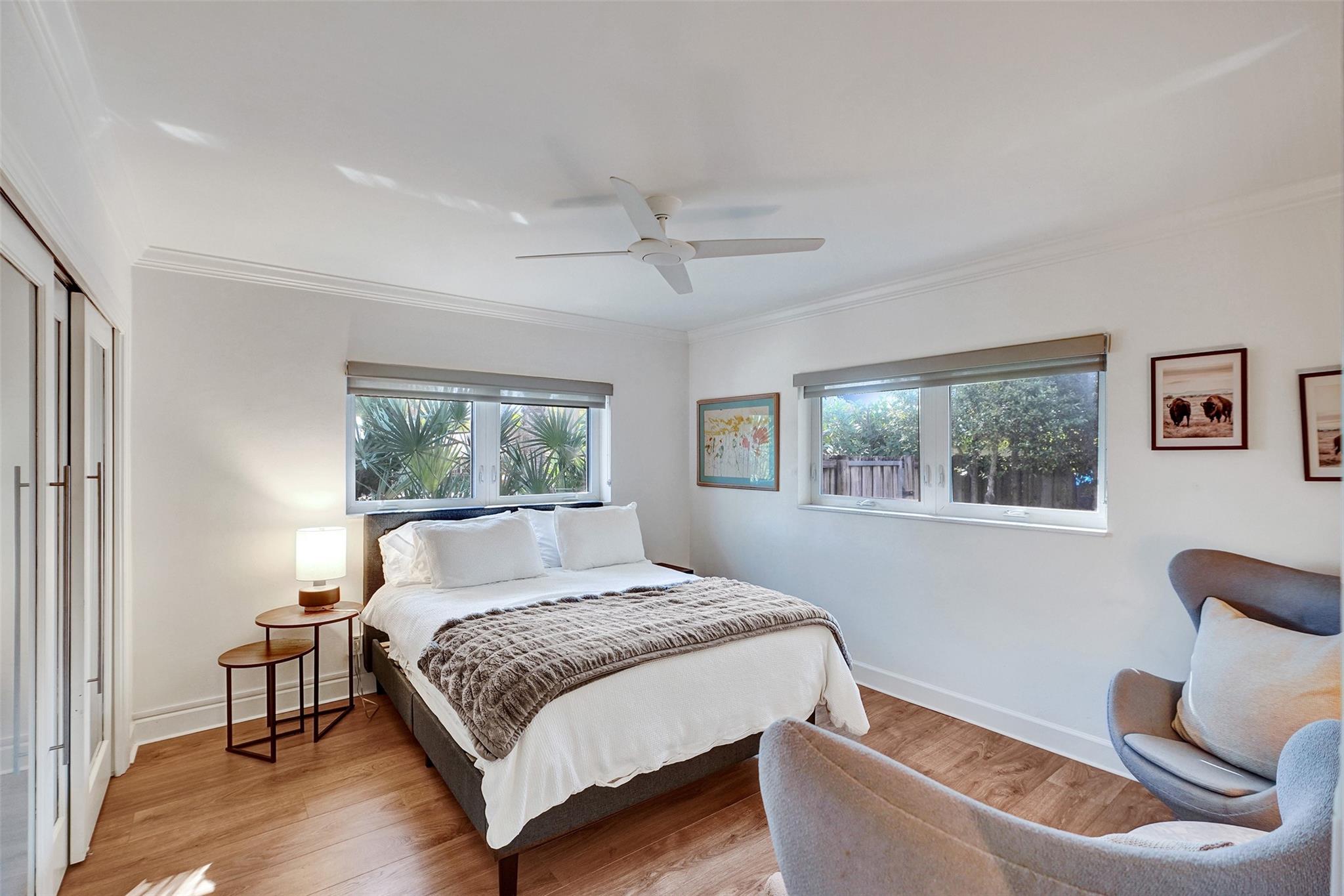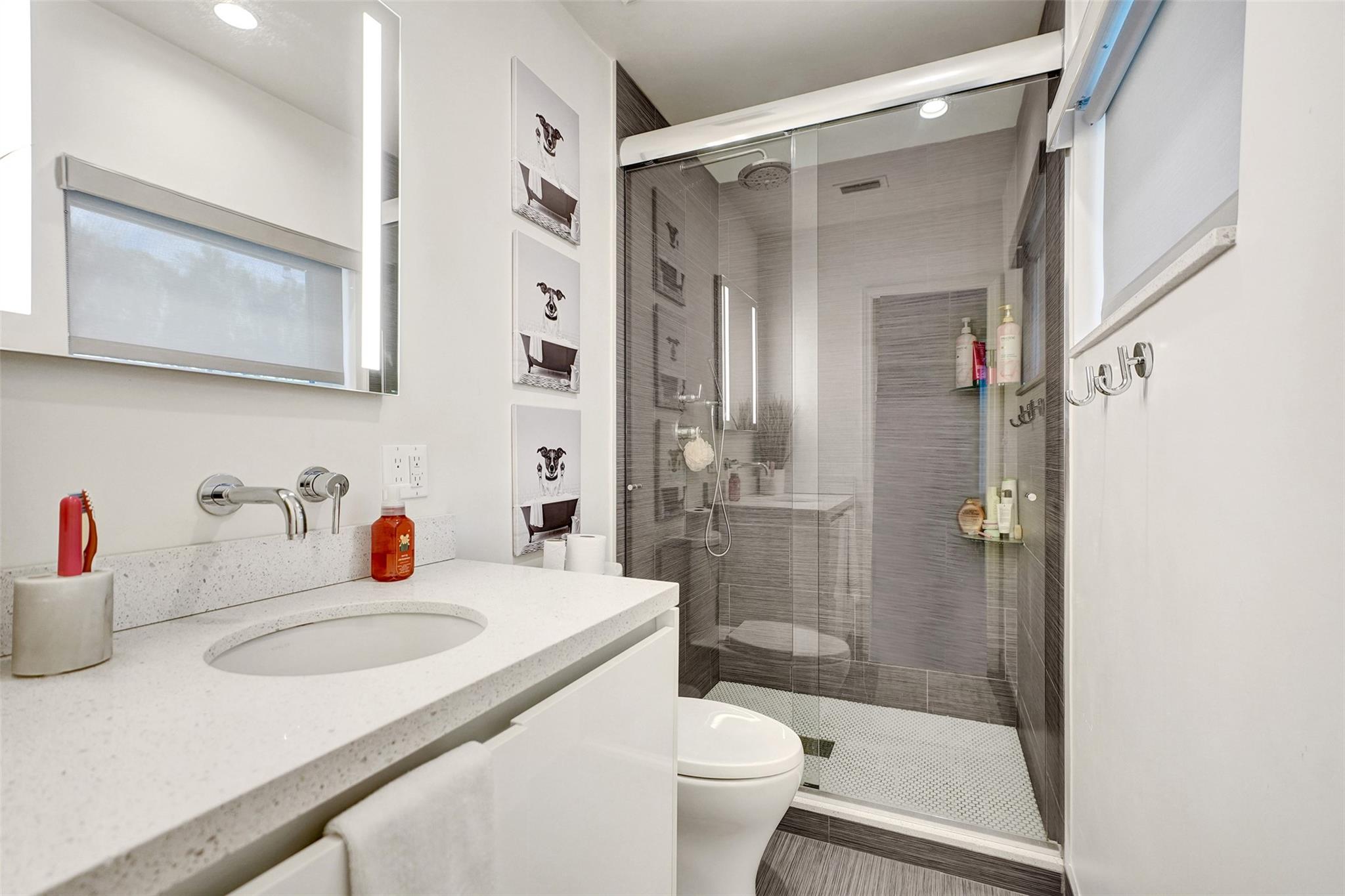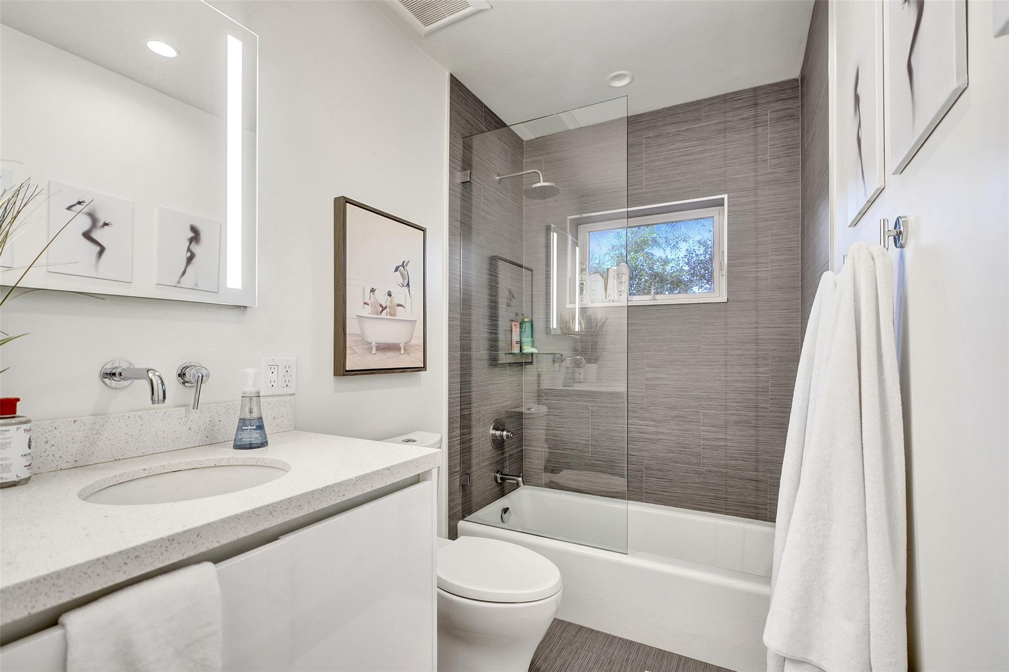 This contemporary 3 bed 2 bath single family home has been tastefully remodeled and furnished. It offers an open floor plan, custom designed kitchen, s/s appliances, quartz countertops and plenty of storage. The master bedroom features an en-suite bathroom with stall shower ; the two other guests rooms share a bathroom with a tub/shower combination. Very bright living room opening to a nice sized and private backyard. Heated salt system pool, outdoor shower. Two car garage, circular driveway, full house generator, landscape lighting and water purification system. This property is conveniently located in Coral Ridge, minutes from restaurants and shops and is part of the Bayview School District.
