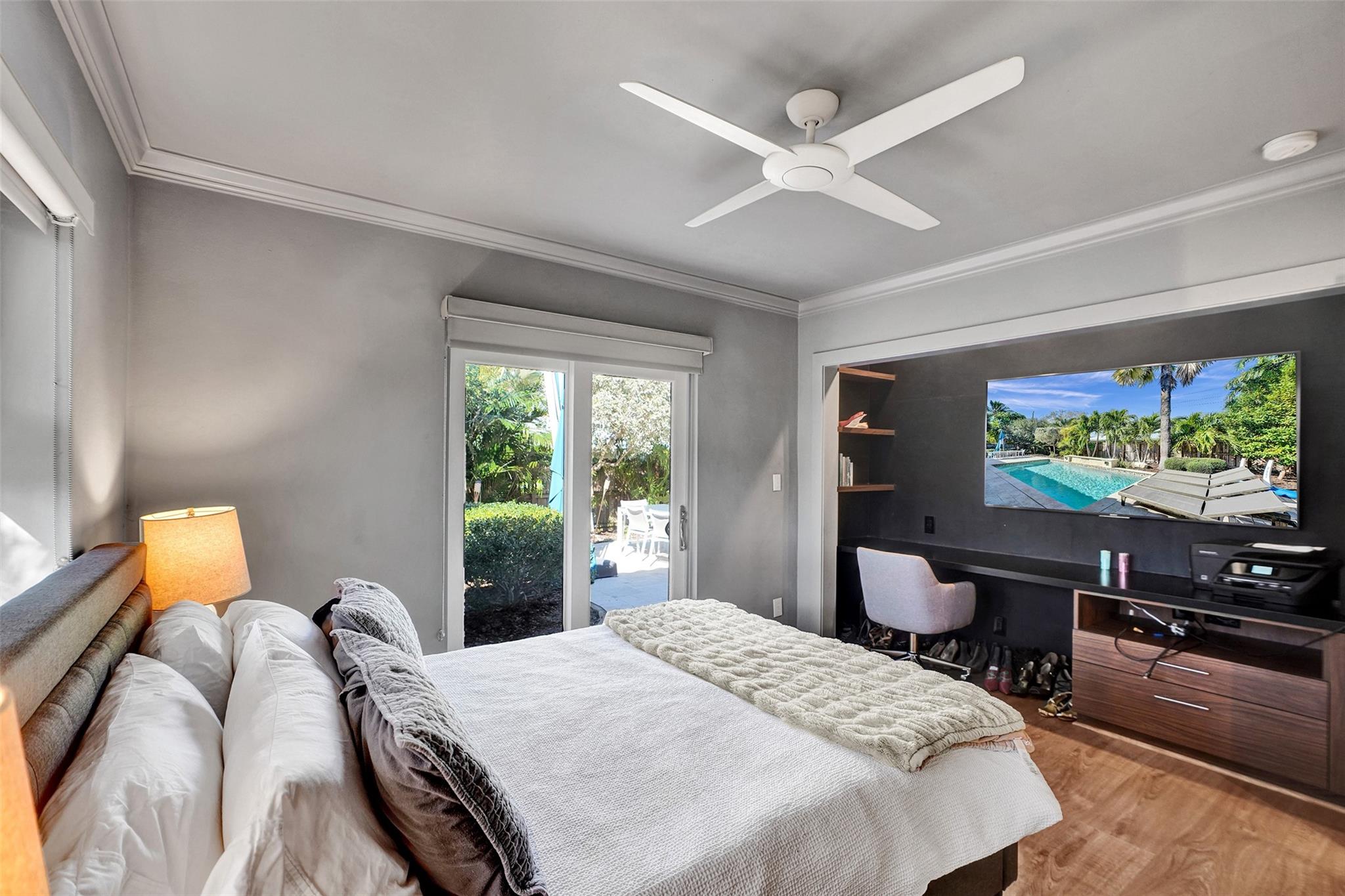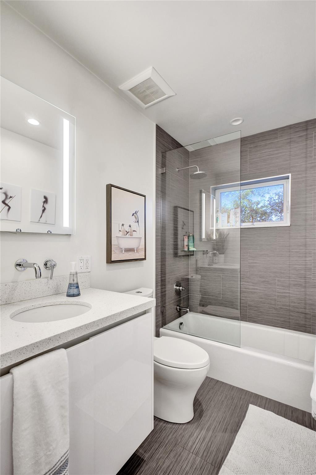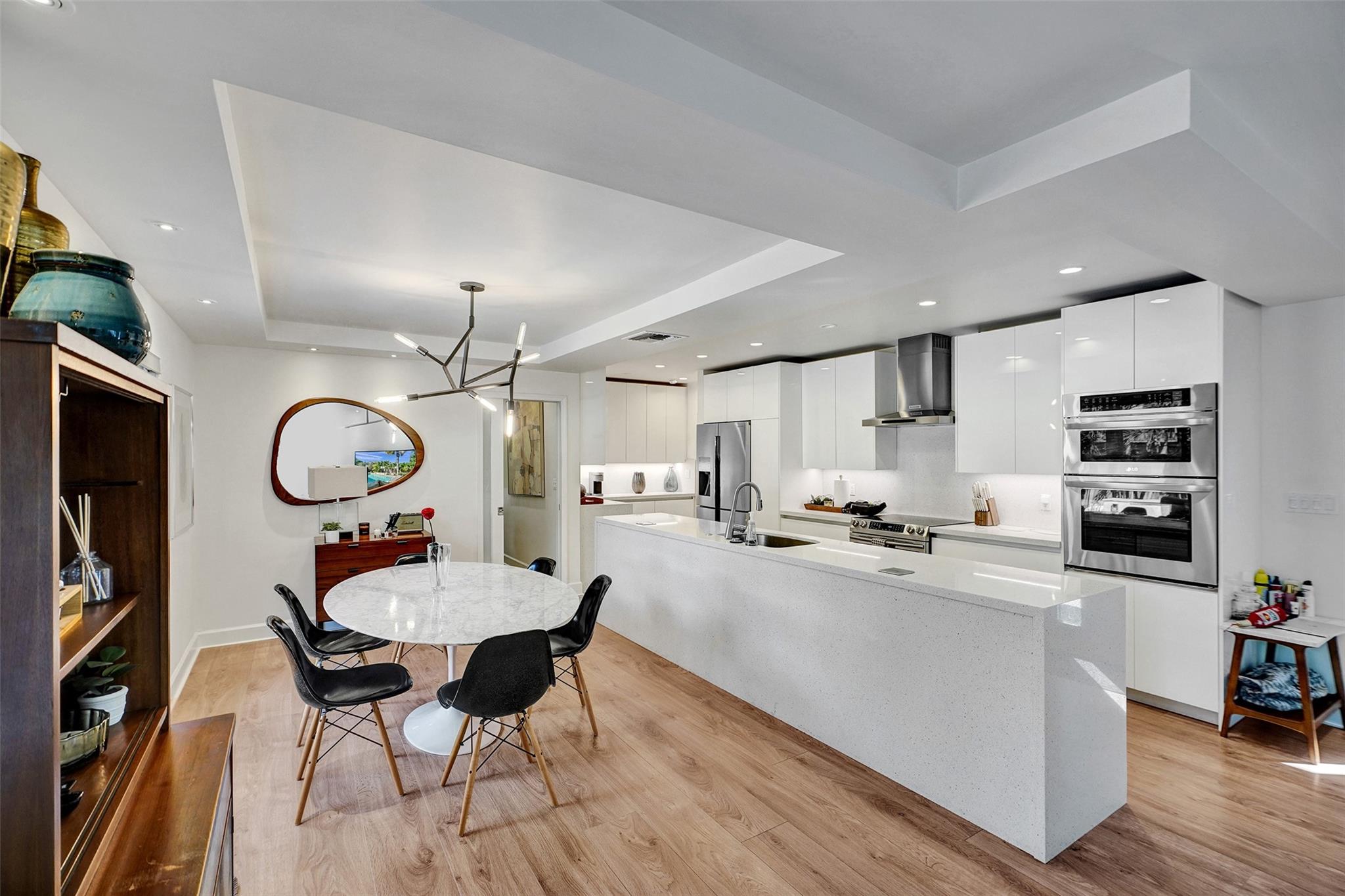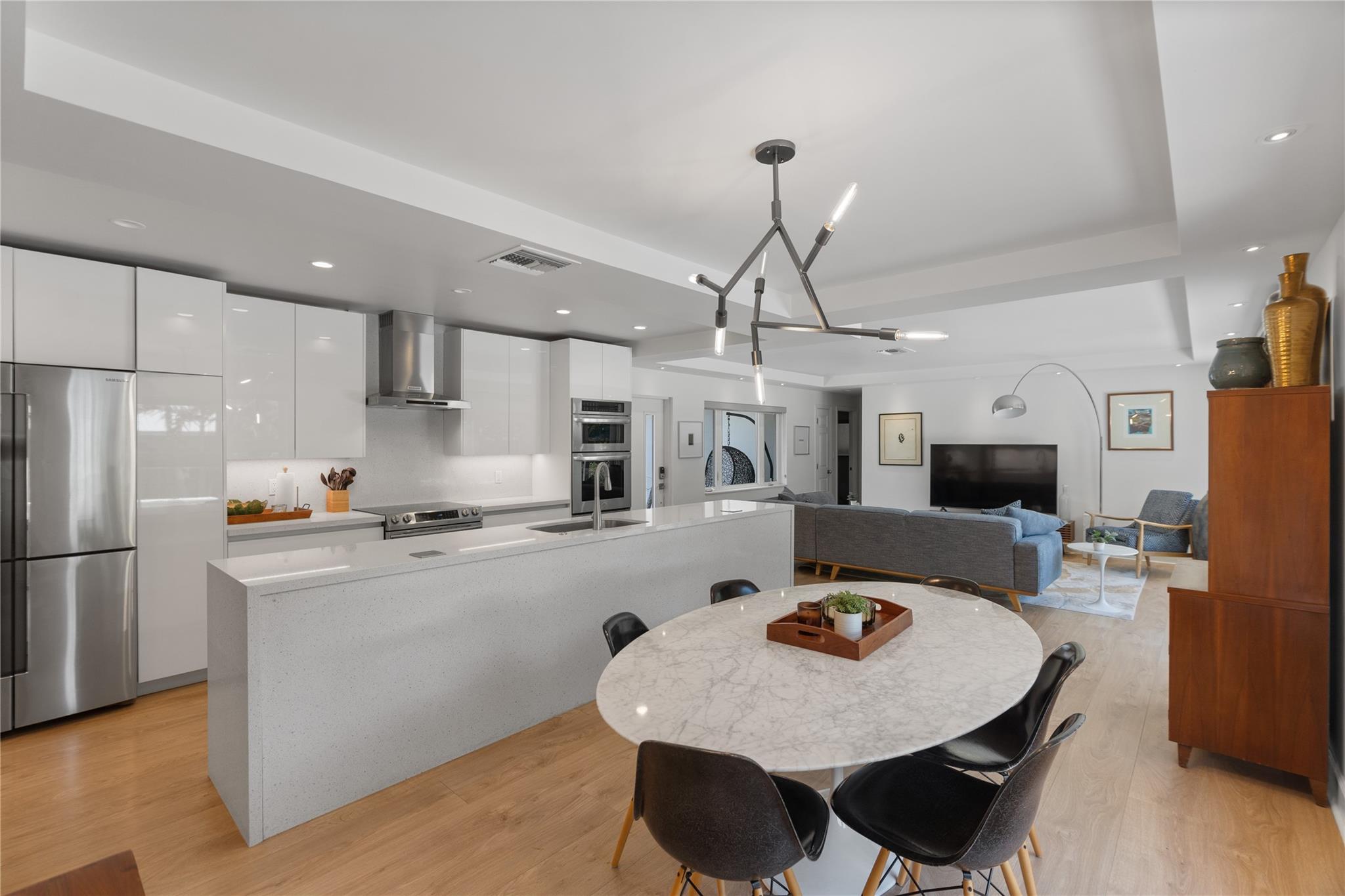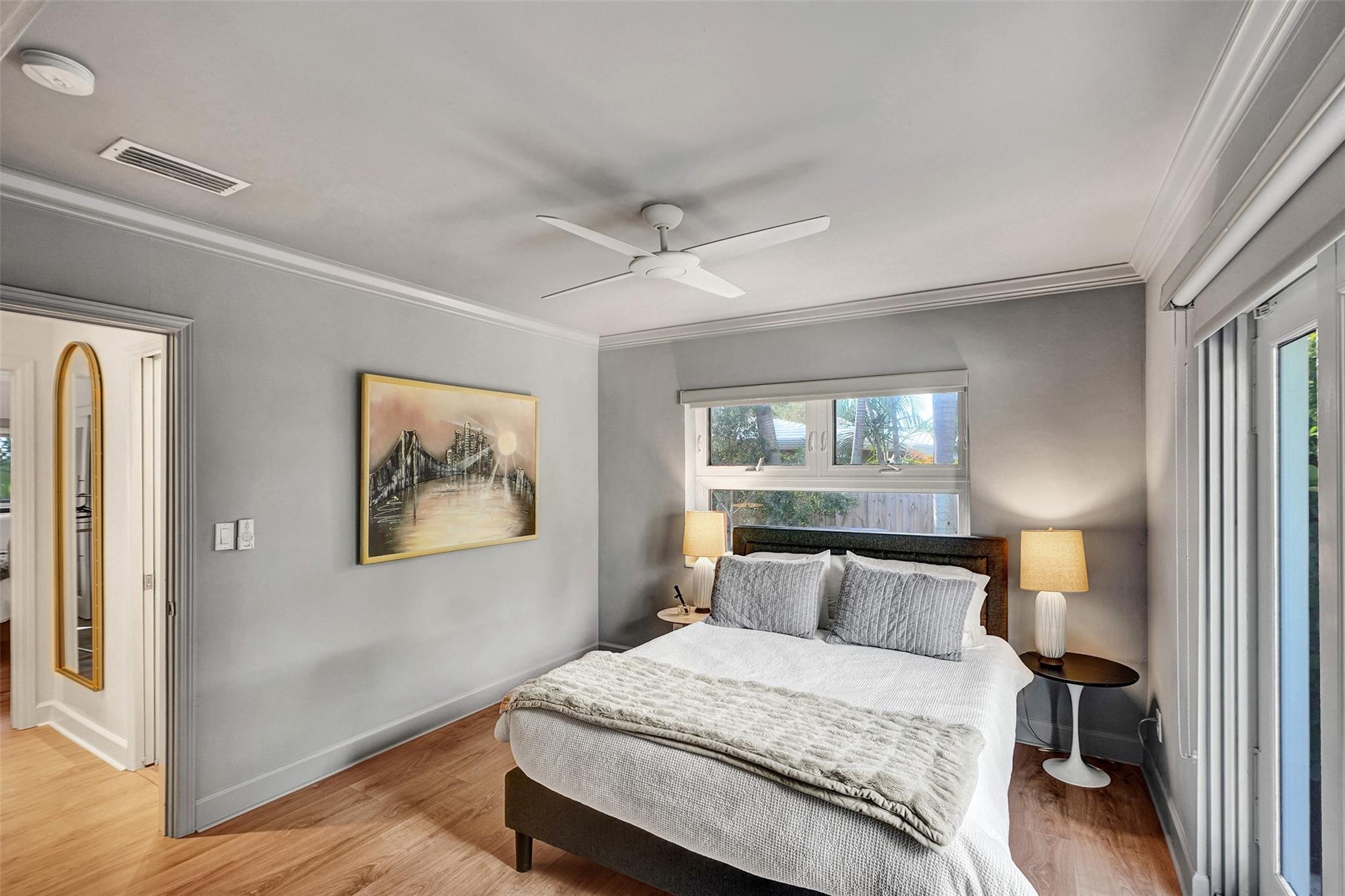 This contemporary 3 bed 2 bath single family home has been tastefully remodeled and furnished. It offers an open floor plan, custom designed kitchen, s/s appliances, quartz countertops and plenty of storage. The master bedroom features an en-suite bathroom with stall shower ; the two other guests rooms share a bathroom with a tub/shower combination. Very bright living room opening to a nice sized and private backyard. Heated salt system pool, outdoor shower. Two car garage, circular driveway, full house generator, landscape lighting and water purification system. This property is conveniently located in Coral Ridge, minutes from restaurants and shops and is part of the Bayview School District.
