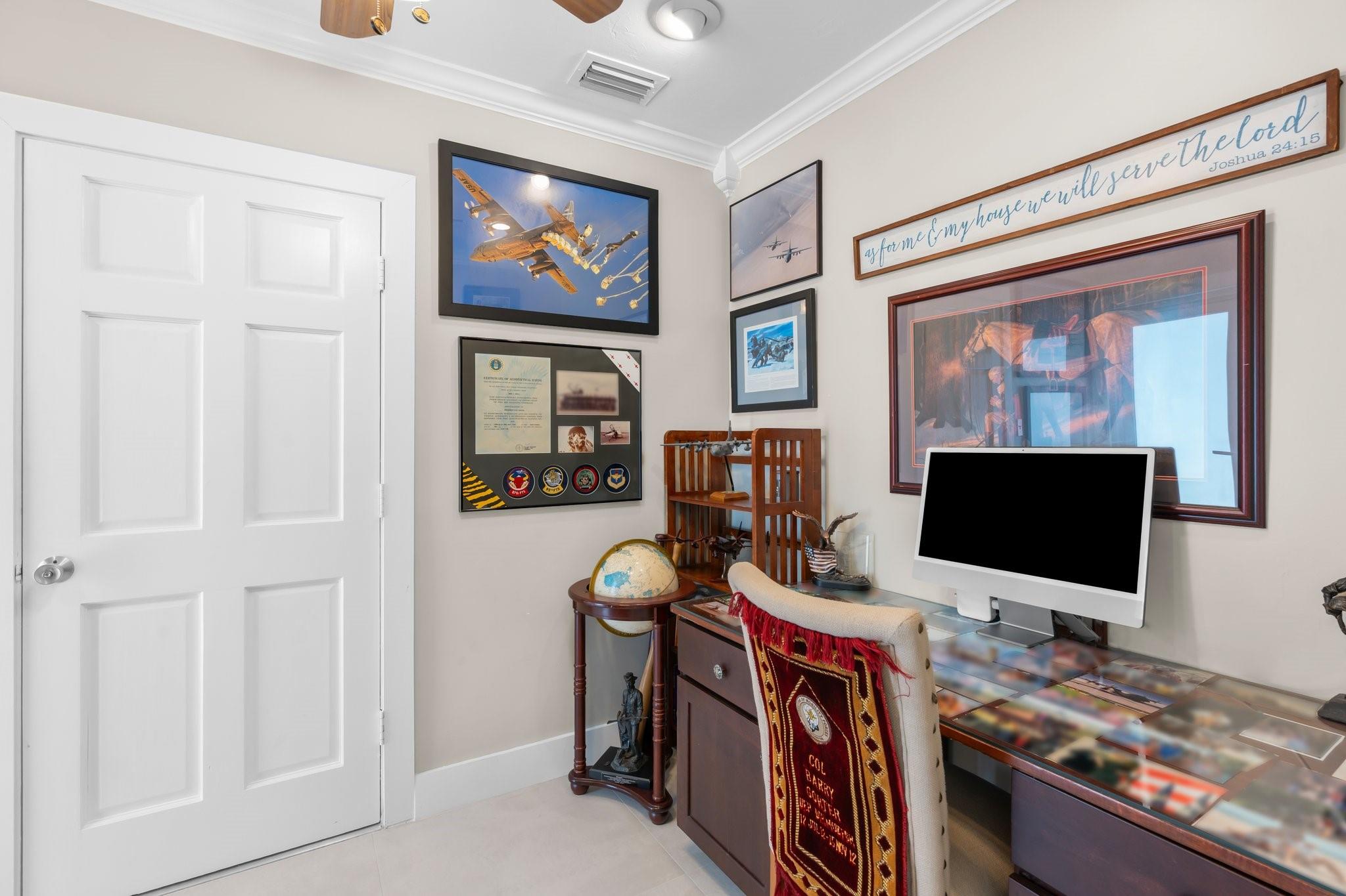 Tranquility Meets Luxury in the Heart of Prestigious Coral Ridge. Striking 3BR/3BA/2CG + Office Pool Home Where Classy Refinements Create a Serene Unparalleled Lifestyle Experience. Gracious Vaulted Ceilings, Wood Burning Fireplace, Split Bedroom Floor Plan, & Fully Fenced Backyard. Renovated Kitchen with Custom Cabinets & Quartz & Granite Countertops. Attractive Newer Appliances, Pantry, and Large Center Island w/ Comfortable Seating. A Combined Living & Kitchen Area Create an Exceptional Open Concept Layout That Invites Conversation and a Fun At Home Dining Experience. Relax Around the Inviting Pool w/ Nature Infused Waterfall! Enjoy an Exceptionally Large Covered Living/Dining Porch Area Overlooking Expansive Lushly Landscaped Back Yard. New Metal Roof 2024, Impact Windows & Doors 2022.