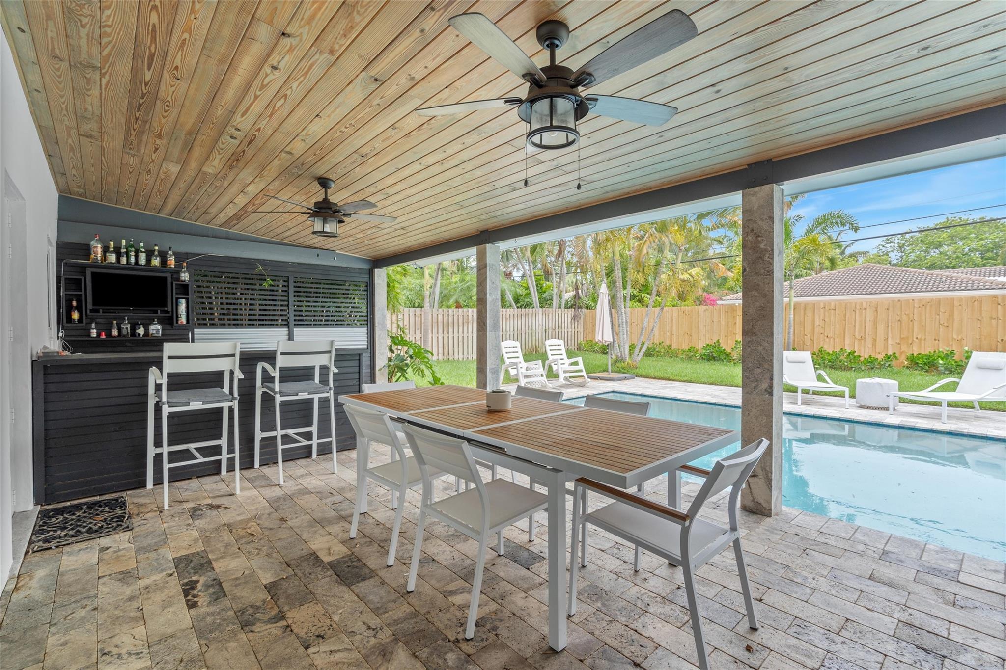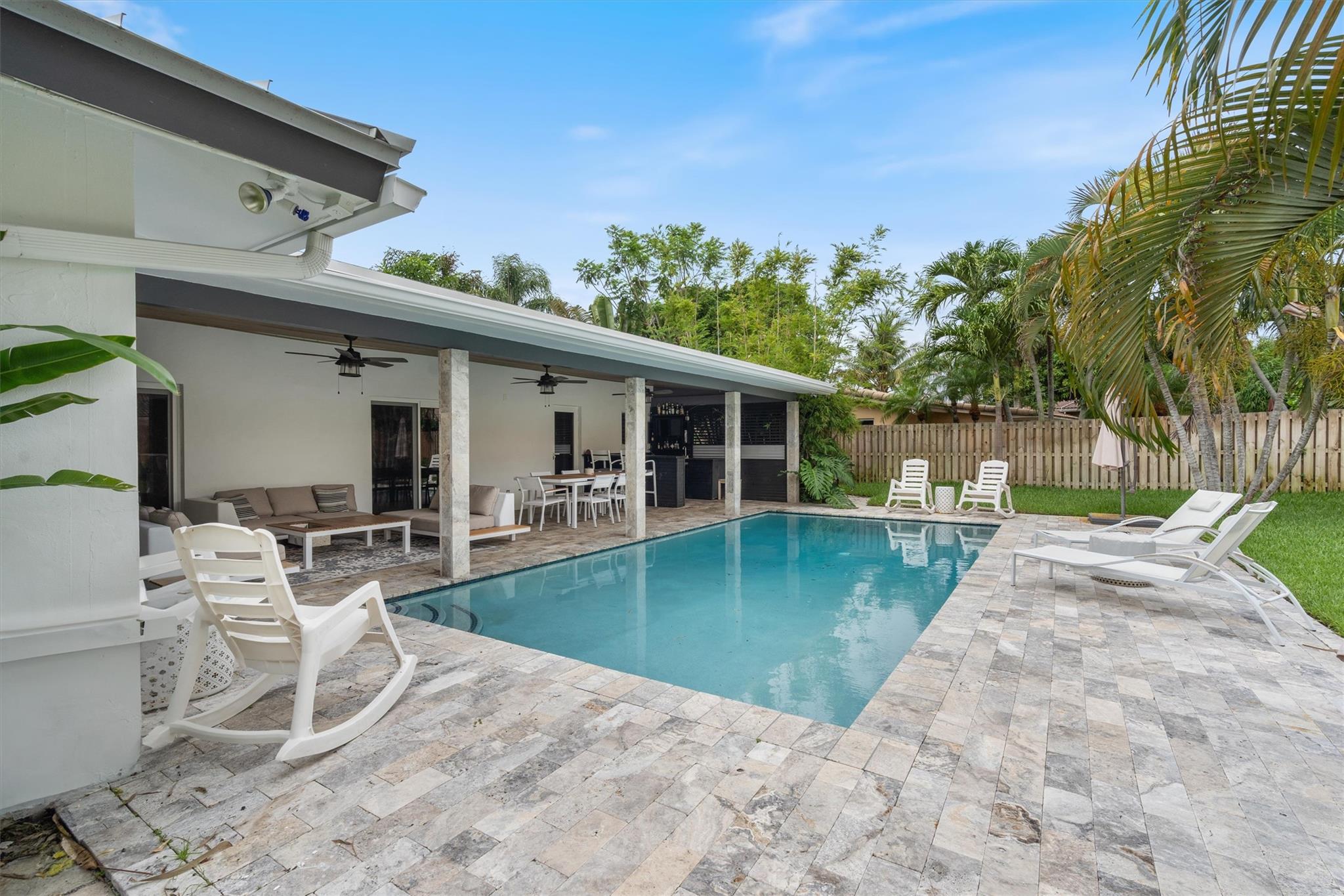 Welcome to your stunning 3-bedroom and a den retreat in Coral Ridge Country Club, just minutes from the beach. Situated on one of the largest lot on the street, this home offers a rare, unobstructed view of a majestic city-owned banyan tree across the street. Enjoy a sparkling saltwater pool in the private backyard, ideal for relaxation and entertaining. Recent upgrades include a new roof with solar panels, brand new electrical system, updated landscaping, and a beautifully renovated kitchen. Inside, you’ll find three spacious bedrooms and a versatile den/home office with a private entrance, perfect for guests or remote work. The open-concept living areas are filled with natural light, creating a warm and inviting atmosphere throughout.