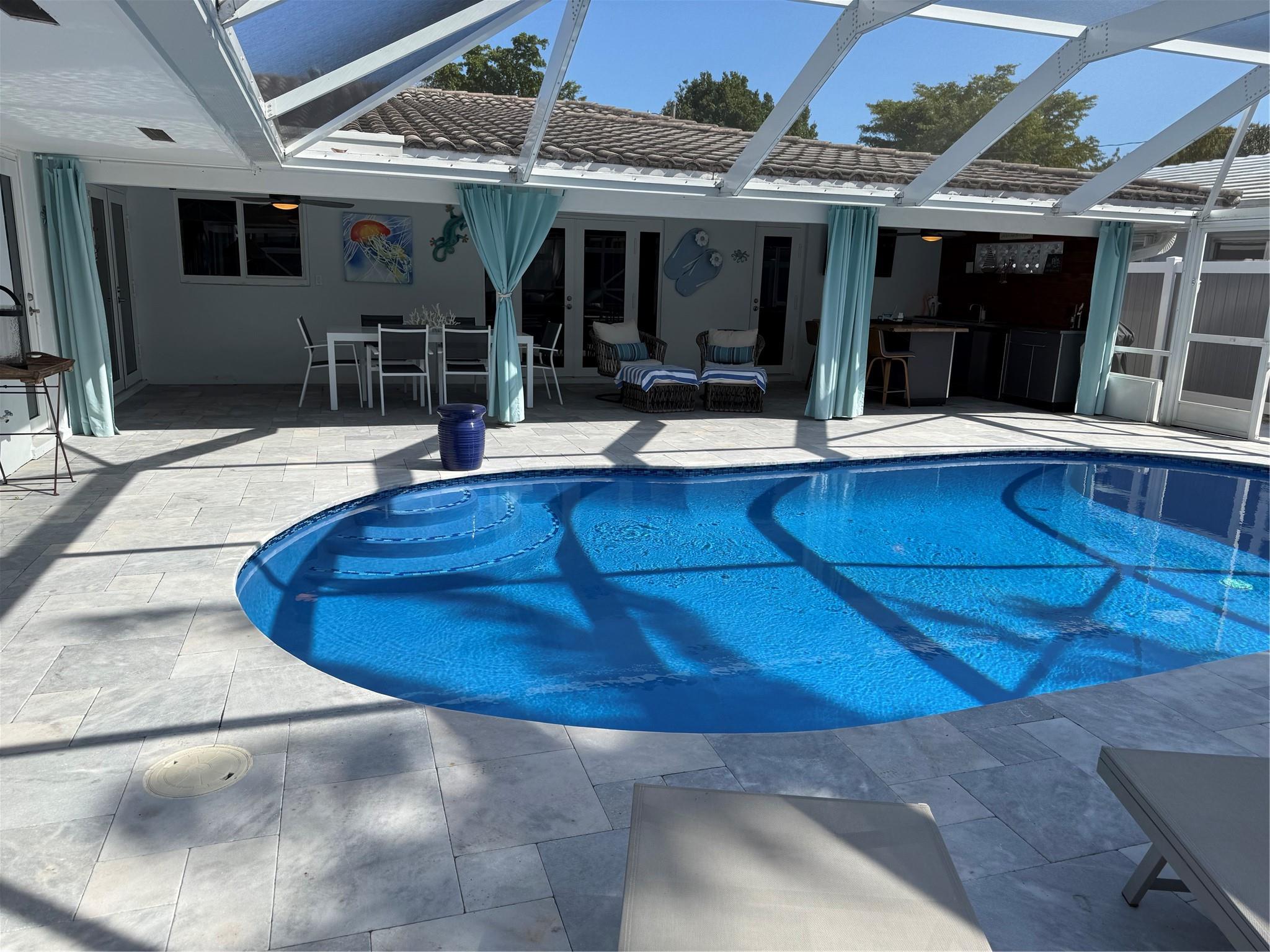 Welcome to this beautifully remodelled dream home in Coral Ridge with the perfect blend of modern luxury and outdoor living. Stunning porcelain tiles throughout and top-of-the-line finishes. This home is an entertainer’s paradise. True pride of ownership throughout! Step outside to the incredible outdoor oasis, featuring an outdoor kitchen, shower, and a sparkling saltwater pool with tumbled marble surround. The screened-in pool and patio area is a perfect place to relax and entertain, offering ultimate privacy and comfort. Designed with a split floor plan, this home is equally suited for family living or hosting guests. Nothing but the finest for your buyer—this home is a must-see! Make it yours today! Owner willing to finance for the right buyer.