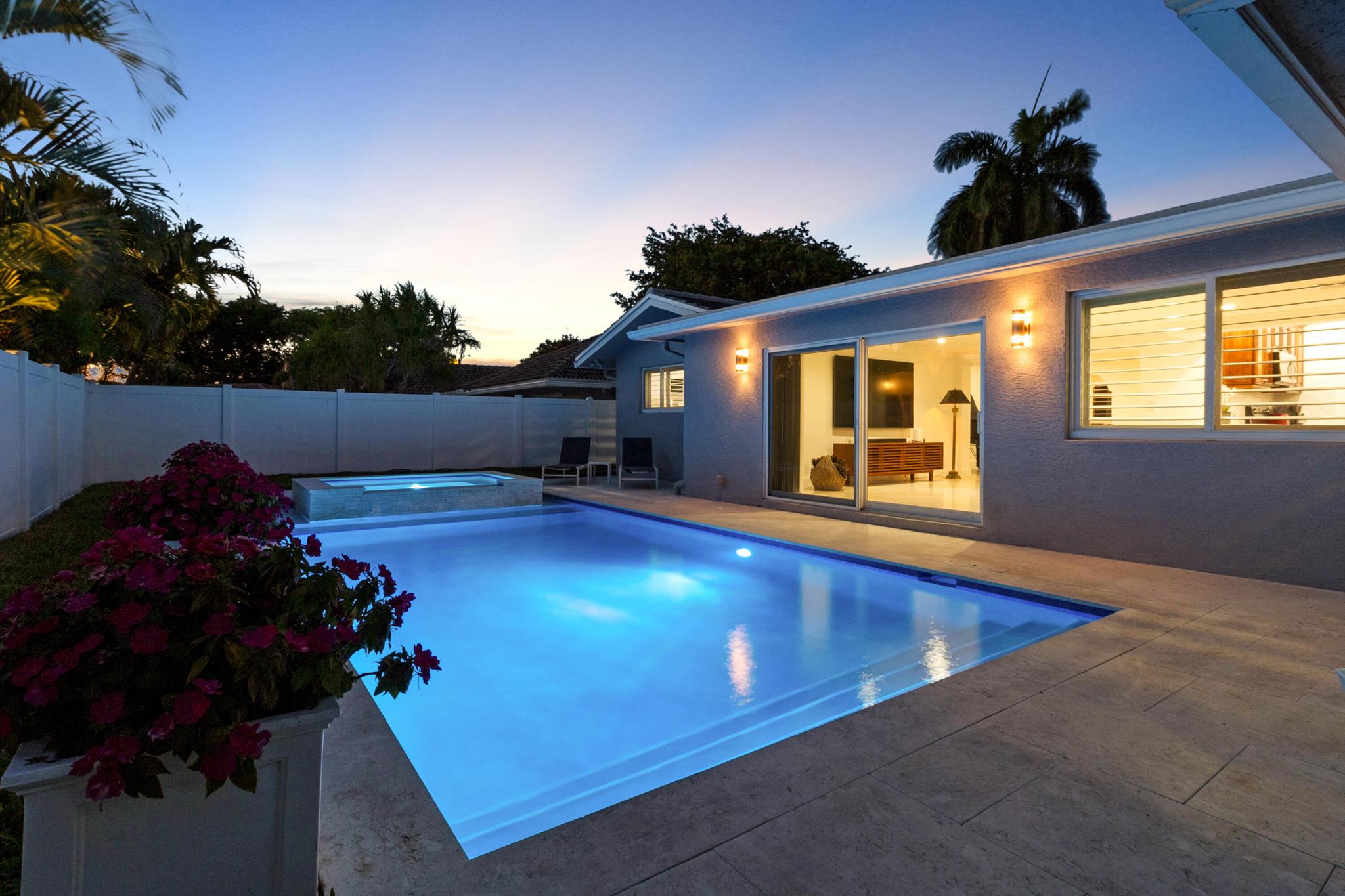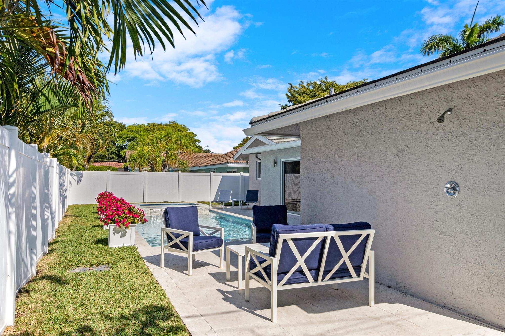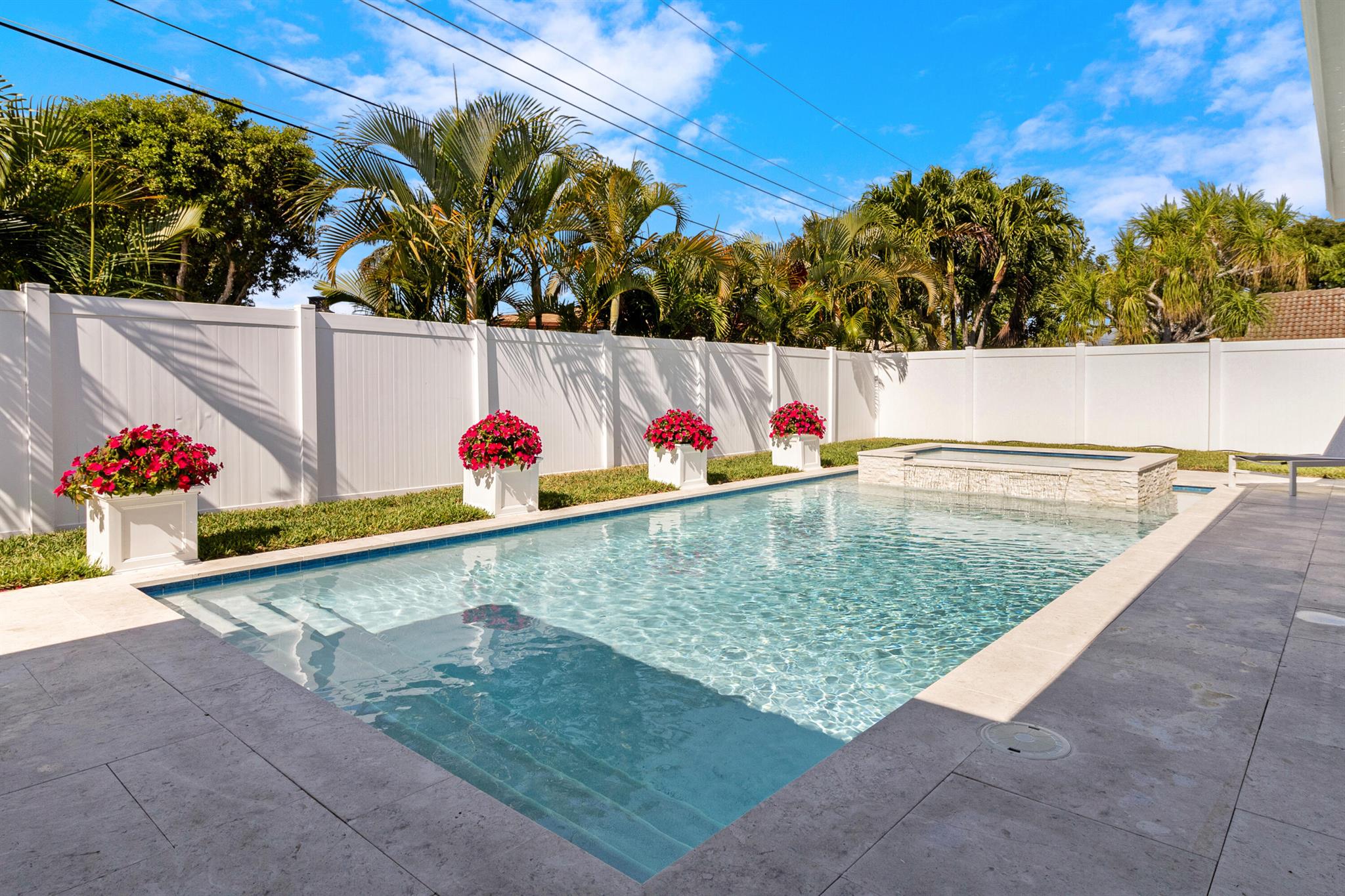 This beautifully updated 3-bedroom, 3-bathroom home features elegant eggshell white walls and 2x2 ivory travertine flooring throughout. The heated saltwater pool (13'x30') with an overflowing spa, completed in April 2024, can be controlled via smartphone. Smart home features include a garage door opener, Weho switches, and dual NEST thermostats. The two-car garage is upgraded with epoxy floors and additional storage. The home has impact-rated windows, doors, and a reinforced garage door. Plumbing was fully replaced in 2023. Location is everything. Walk to the nearby Imperial Point Park with its playground, picnic areas, walking/jogging track, and fitness trail. The neighborhood is known for its friendly atmosphere, and you'll be surrounded by top-rated schools like Westminster...