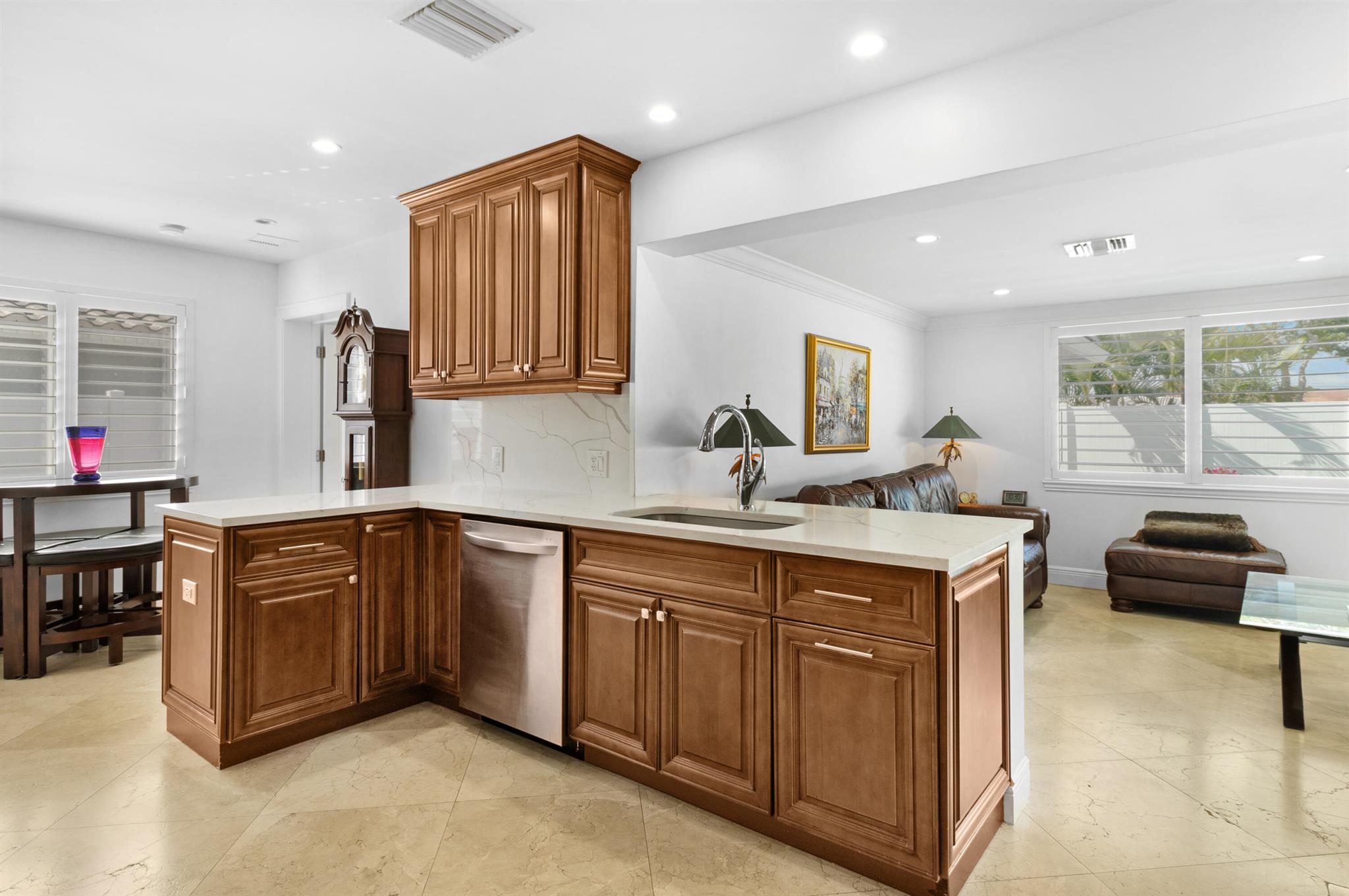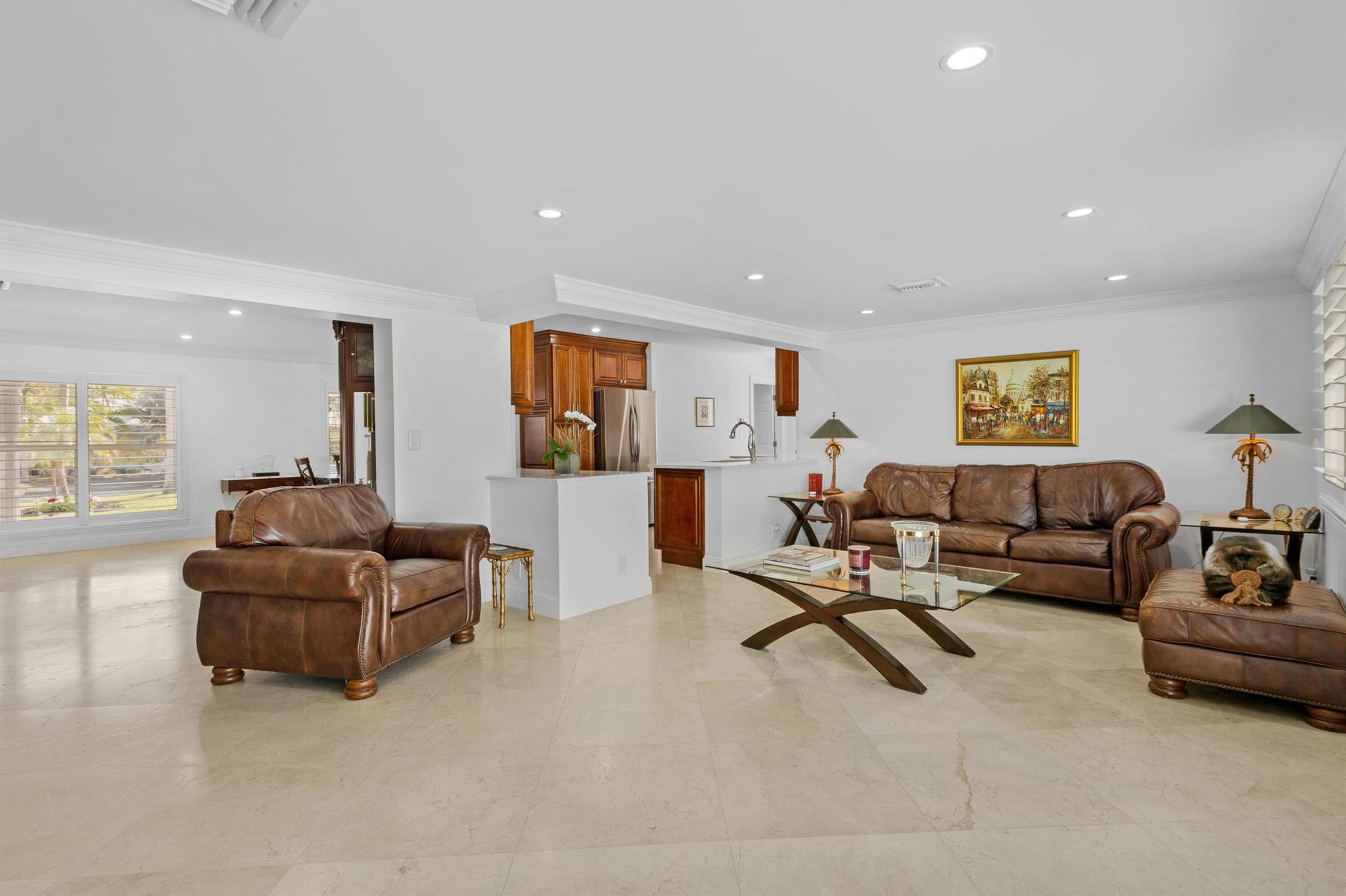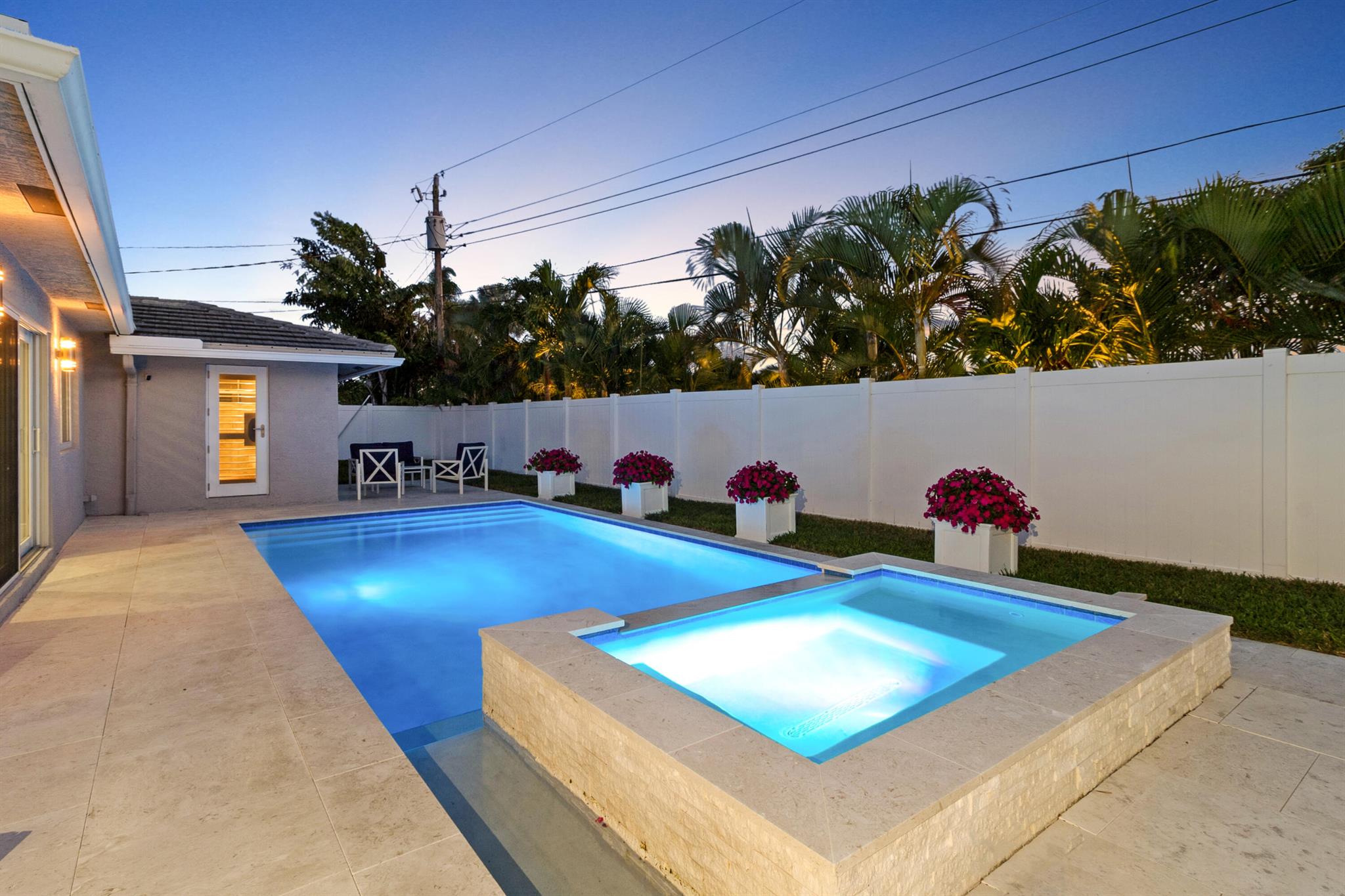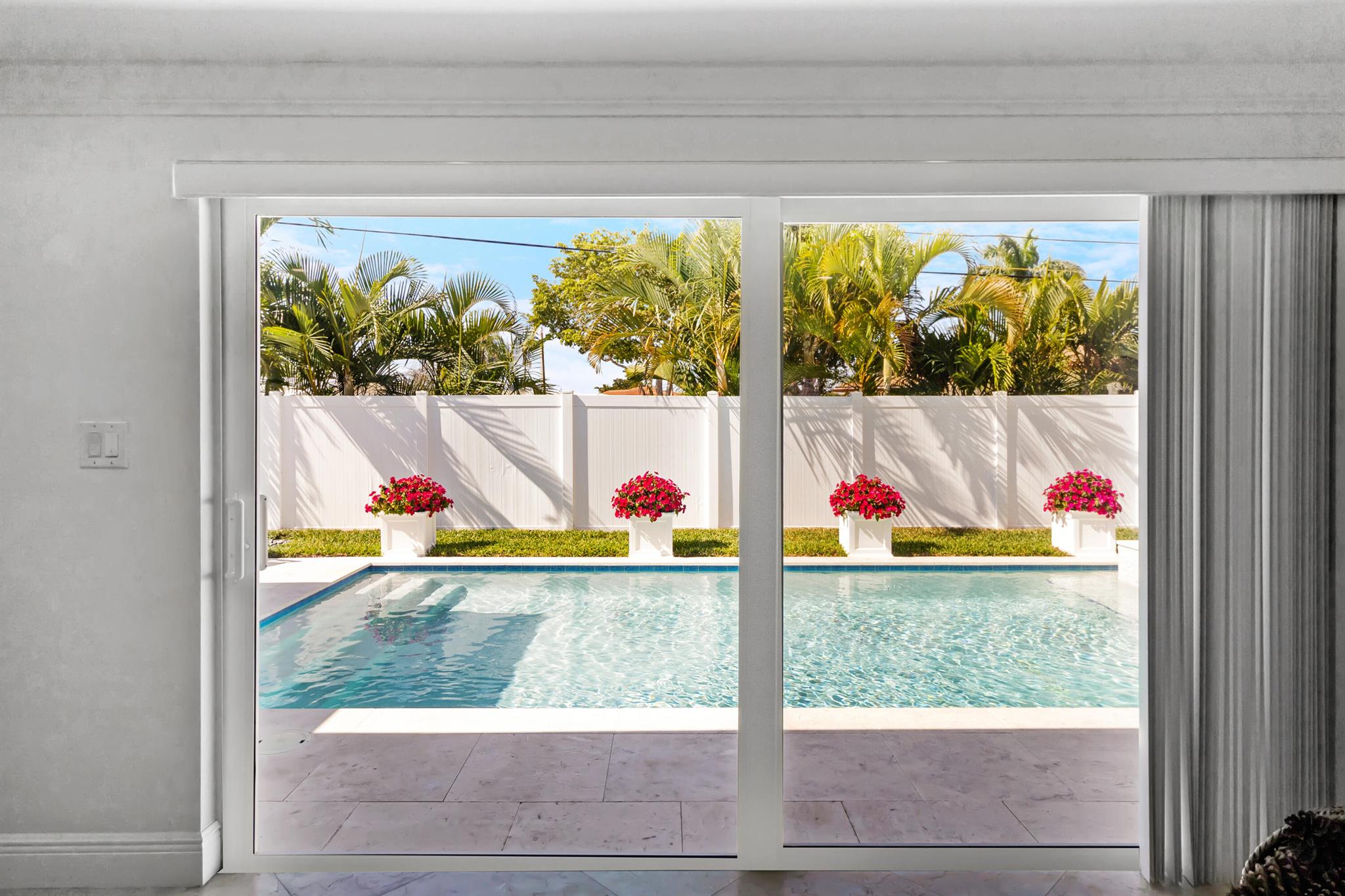 This beautifully updated 3-bedroom, 3-bathroom home features elegant eggshell white walls and 2x2 ivory travertine flooring throughout. The heated saltwater pool (13'x30') with an overflowing spa, completed in April 2024, can be controlled via smartphone. Smart home features include a garage door opener, Weho switches, and dual NEST thermostats. The two-car garage is upgraded with epoxy floors and additional storage. The home has impact-rated windows, doors, and a reinforced garage door. Plumbing was fully replaced in 2023. Location is everything. Walk to the nearby Imperial Point Park with its playground, picnic areas, walking/jogging track, and fitness trail. The neighborhood is known for its friendly atmosphere, and you'll be surrounded by top-rated schools like Westminster...