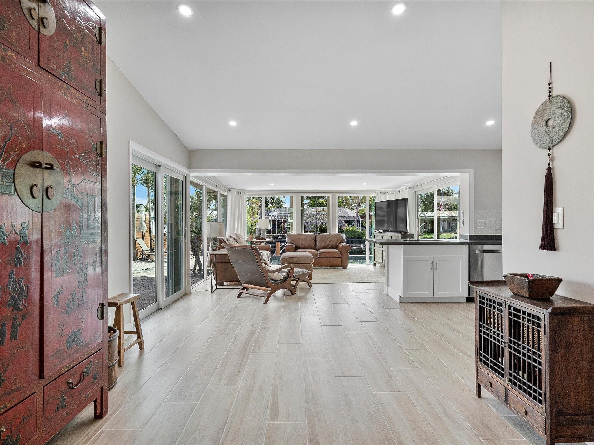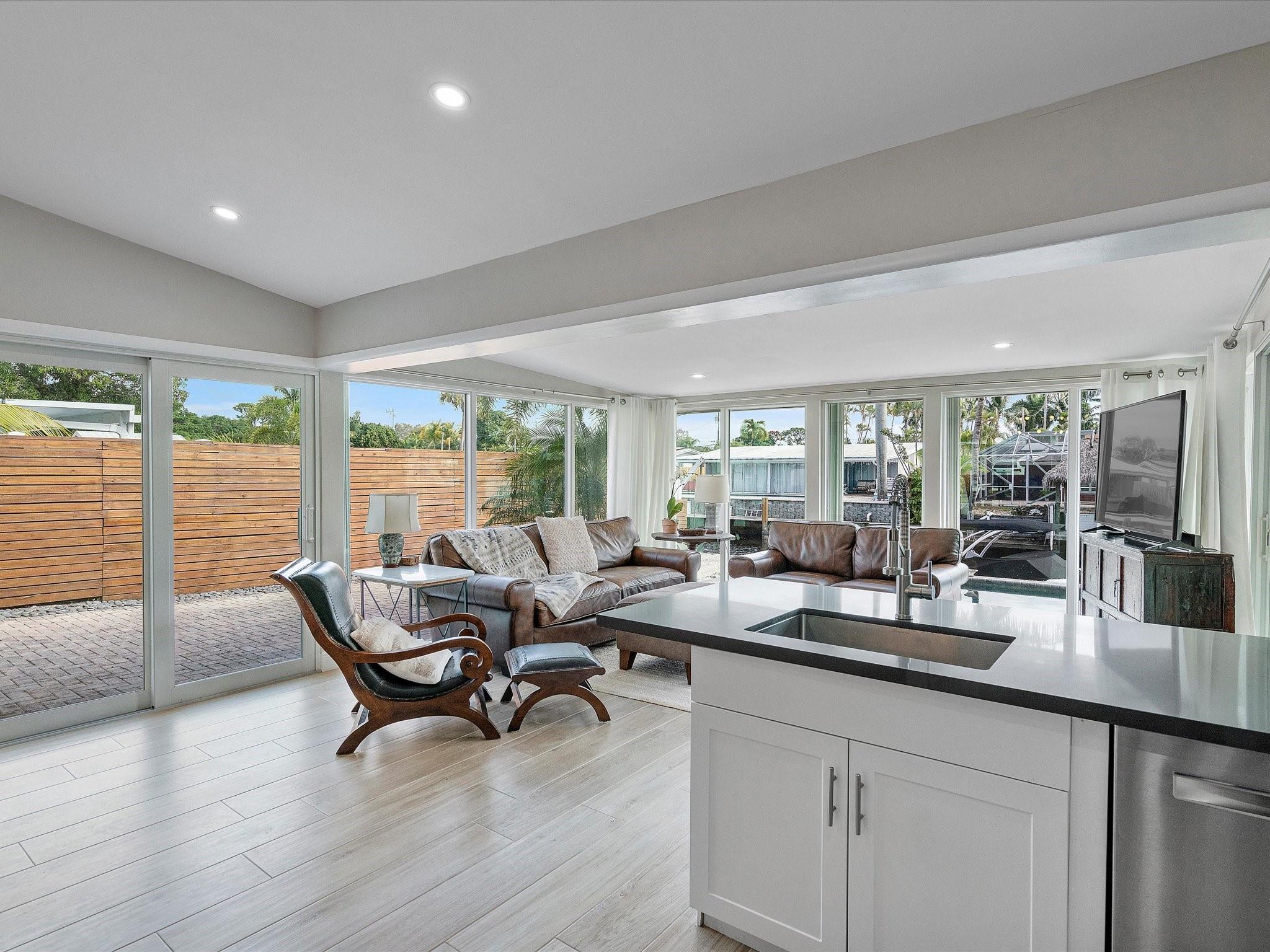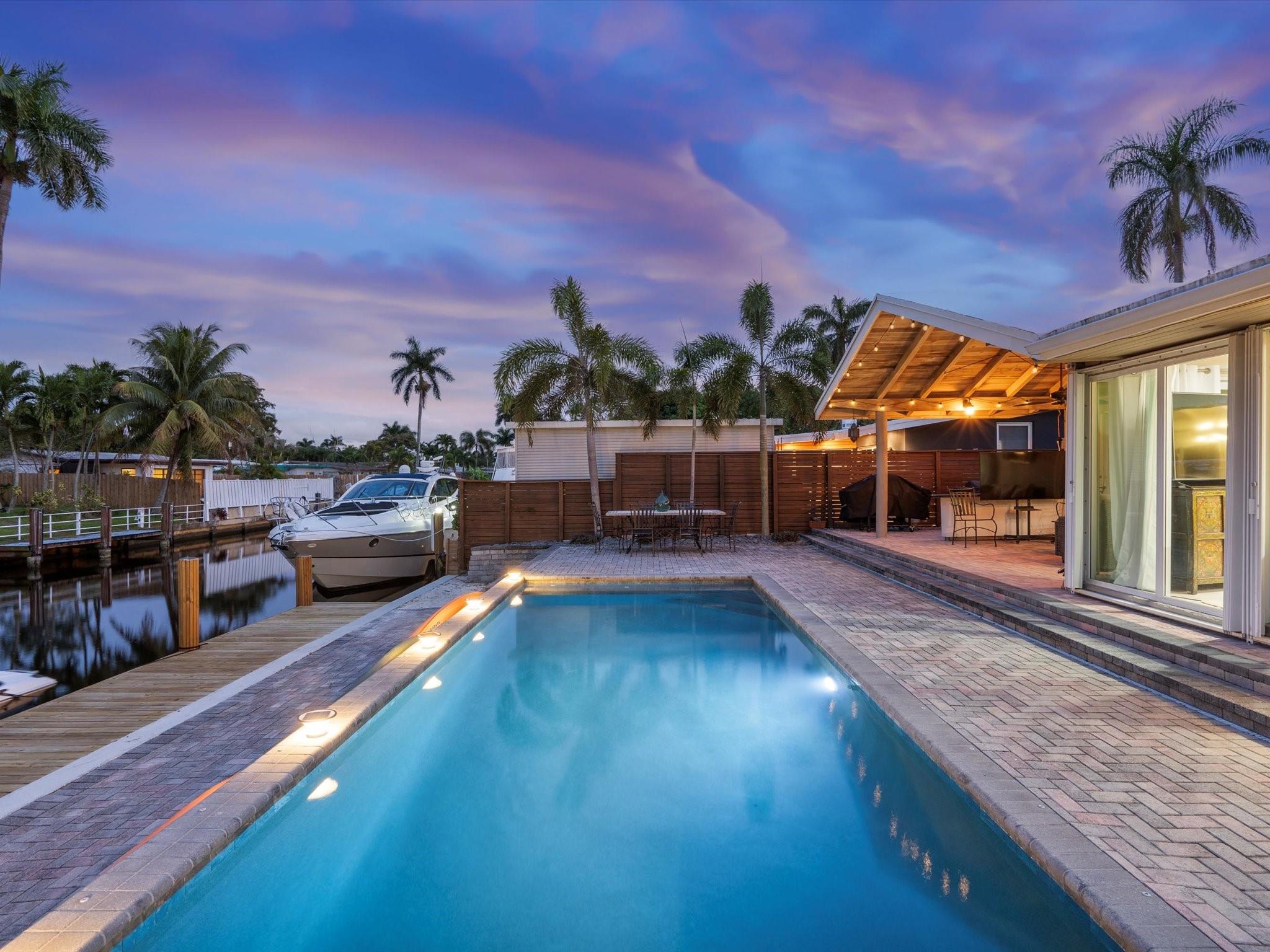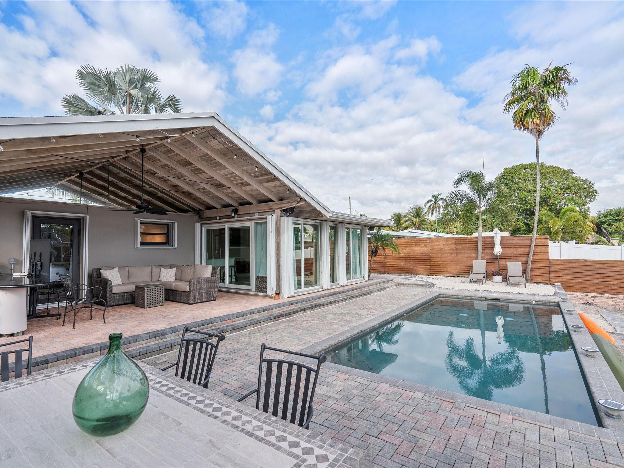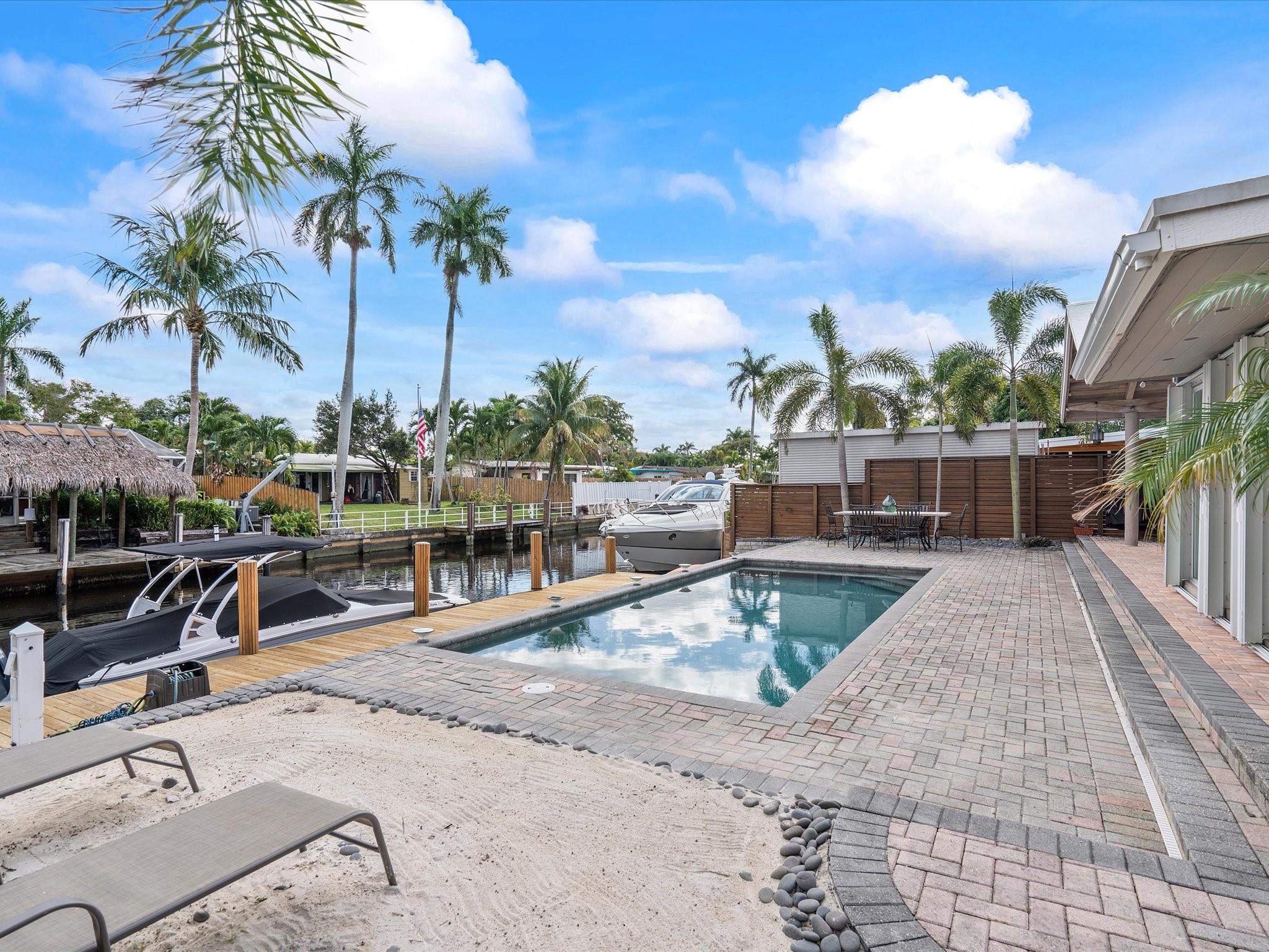 Come see the new roof on this Light-filled 3 Bedroom 2 Bath home with Pool in the highly sought-after Lauderdale Isles. At this Waterfront bungalow, you'll have 60 feet of waterfrontage and Deep Water Ocean Access WITH No Fixed bridges! This renovated beauty features Impact Windows/Doors/Sliders, tile flooring throughout, recessed lighting, remodeled baths, new HVAC, new water heater, & a new dock. The water views from the family room, kitchen and dining room are stunning. The outdoor oasis offers a large covered patio, a second pavered patio to enjoy the sun, saltwater pool w/newer pump, expansive pavered pool decking, and who can live without some sand to sit in while enjoying a beverage while the boats go by? Here you'll be close to the airport, beach, parks and more.
