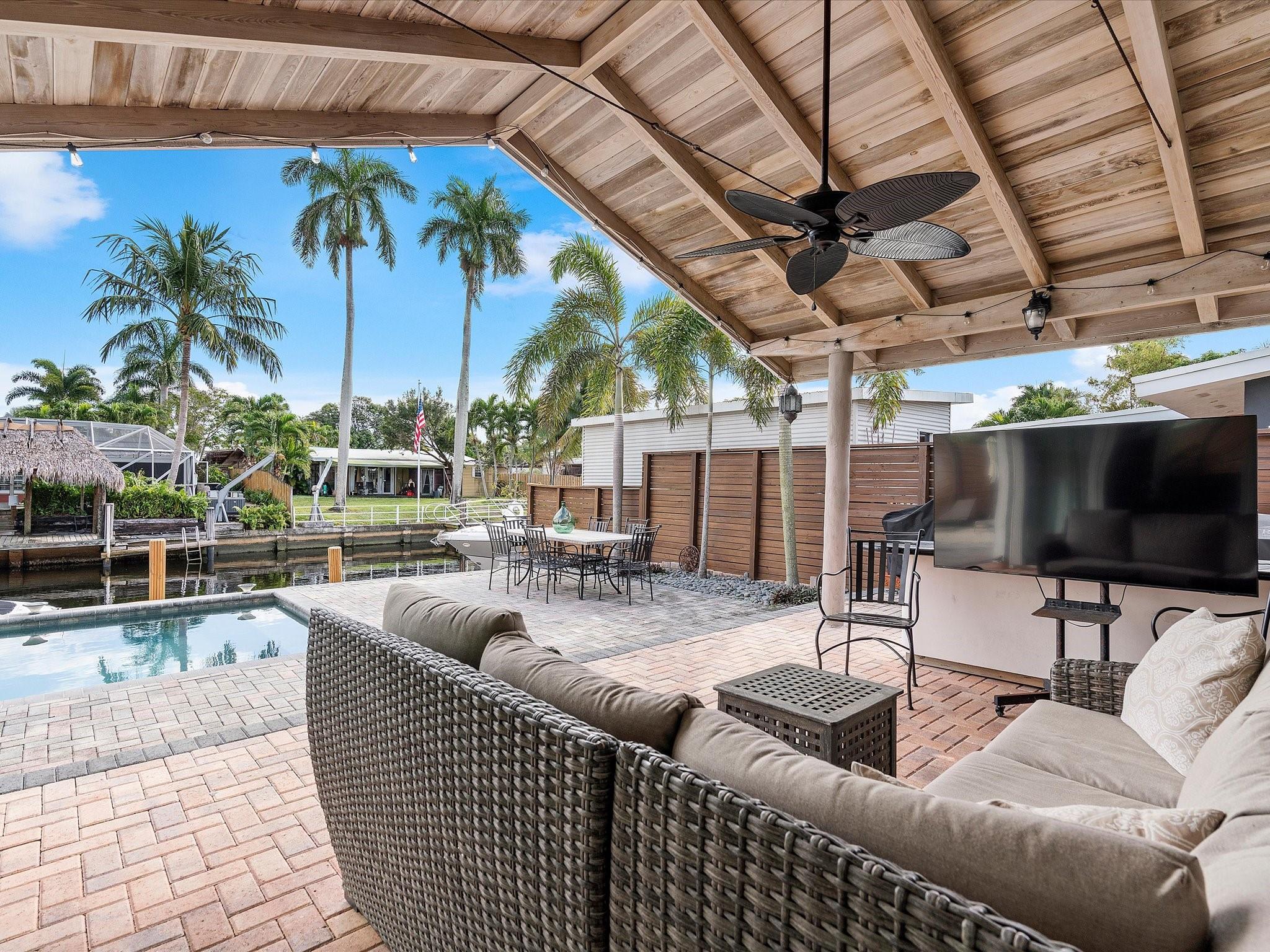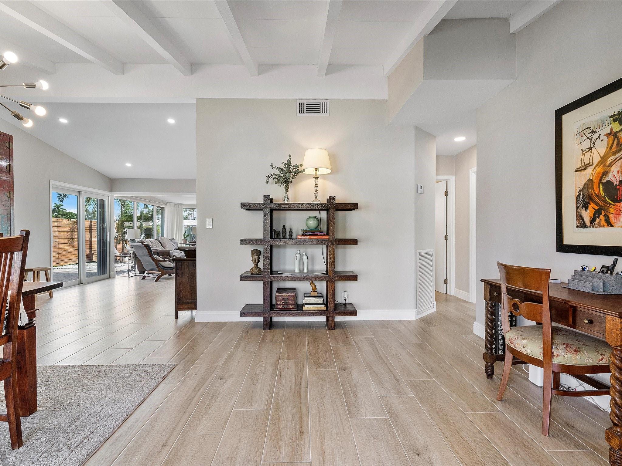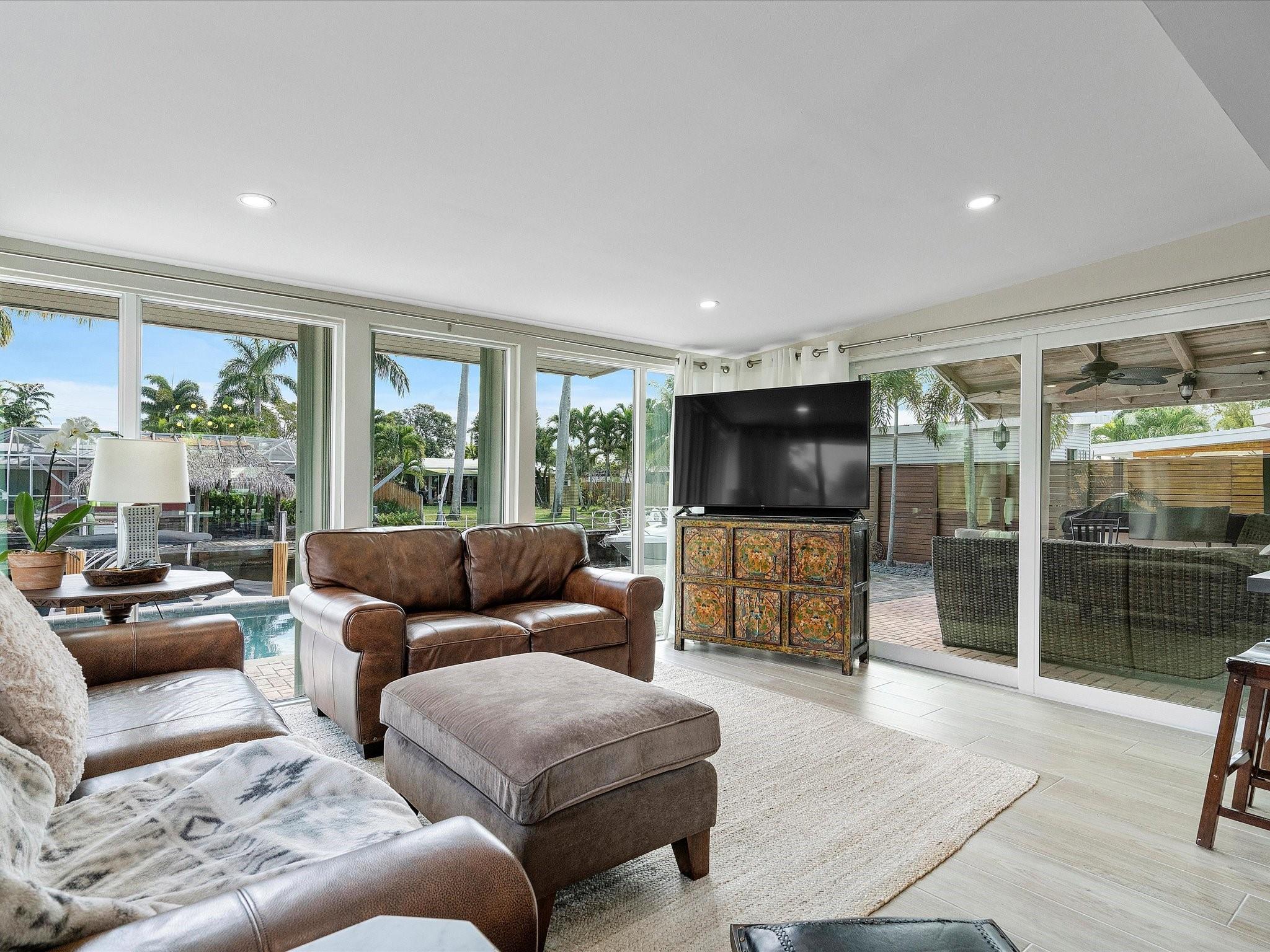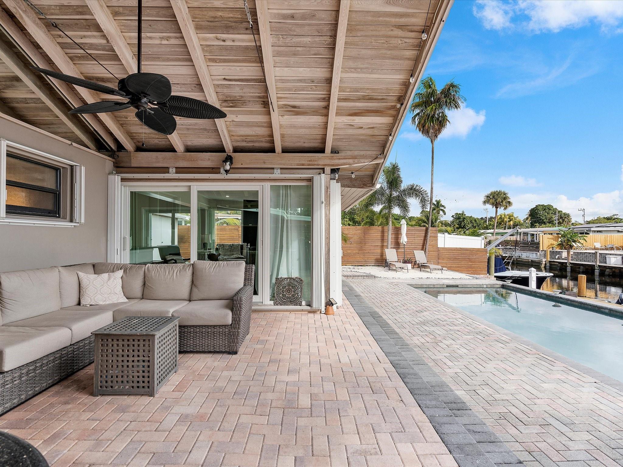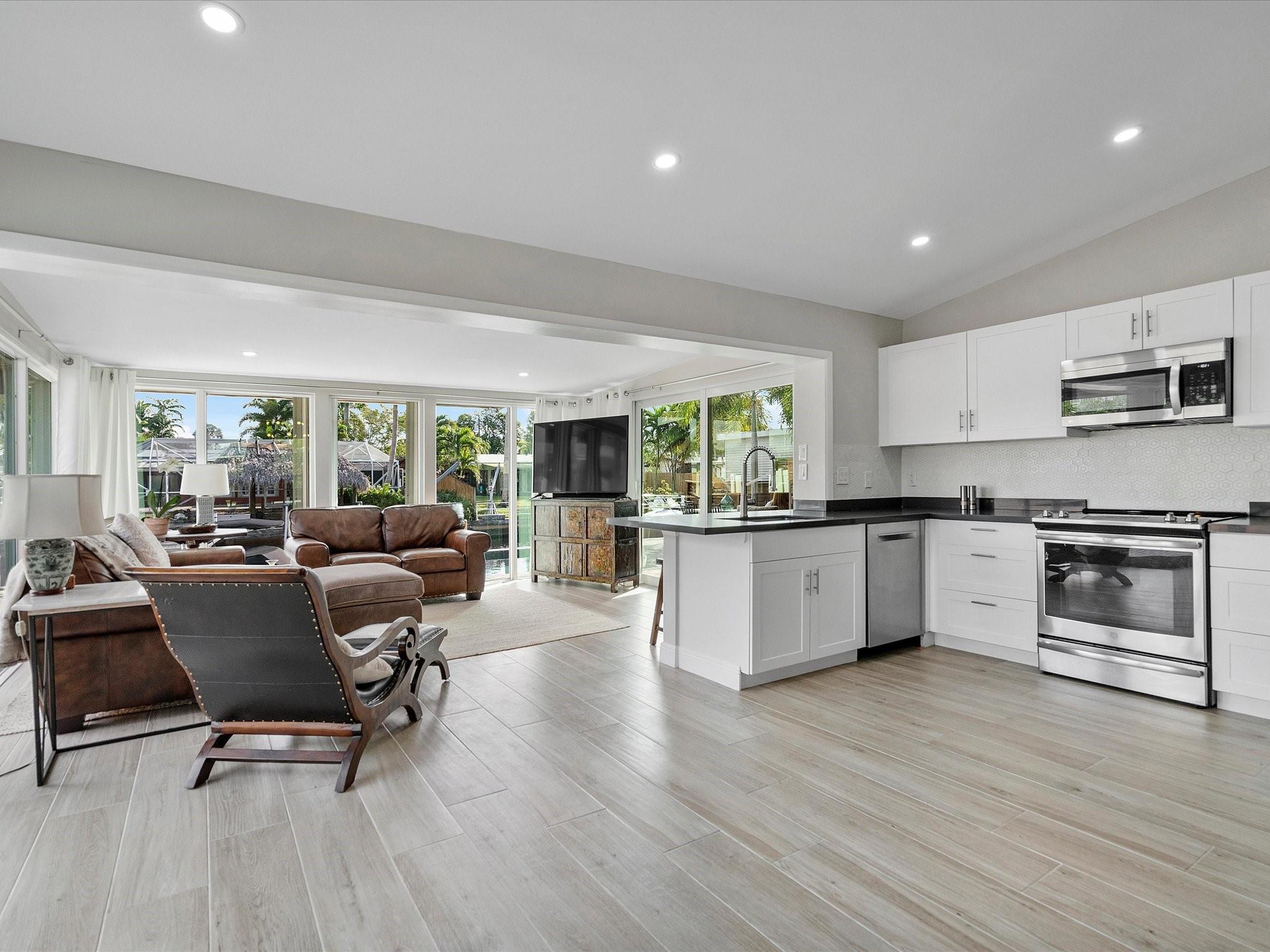 Come see the new roof on this Light-filled 3 Bedroom 2 Bath home with Pool in the highly sought-after Lauderdale Isles. At this Waterfront bungalow, you'll have 60 feet of waterfrontage and Deep Water Ocean Access WITH No Fixed bridges! This renovated beauty features Impact Windows/Doors/Sliders, tile flooring throughout, recessed lighting, remodeled baths, new HVAC, new water heater, & a new dock. The water views from the family room, kitchen and dining room are stunning. The outdoor oasis offers a large covered patio, a second pavered patio to enjoy the sun, saltwater pool w/newer pump, expansive pavered pool decking, and who can live without some sand to sit in while enjoying a beverage while the boats go by? Here you'll be close to the airport, beach, parks and more.