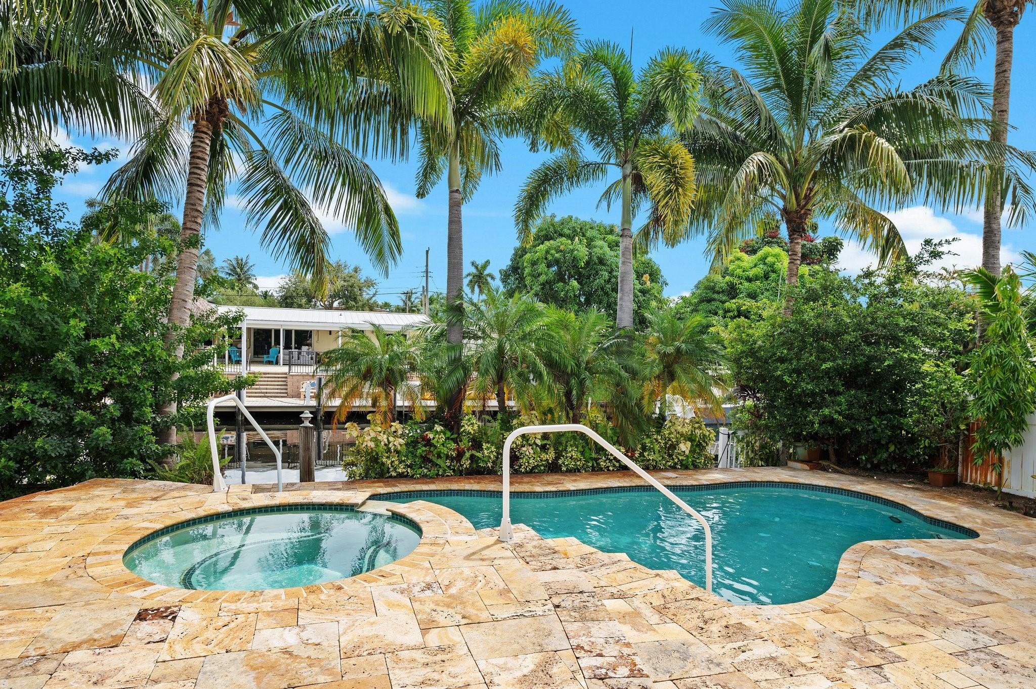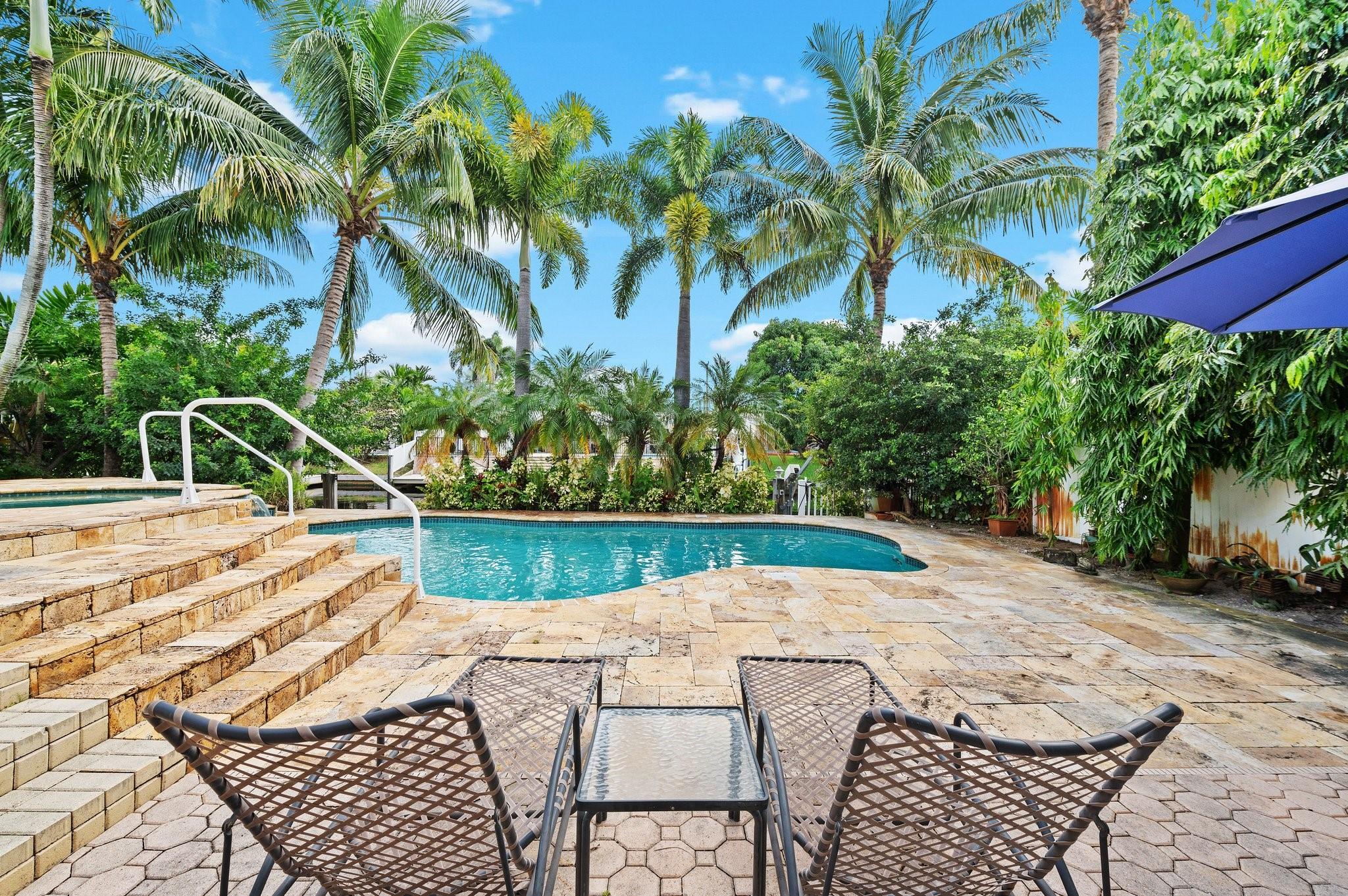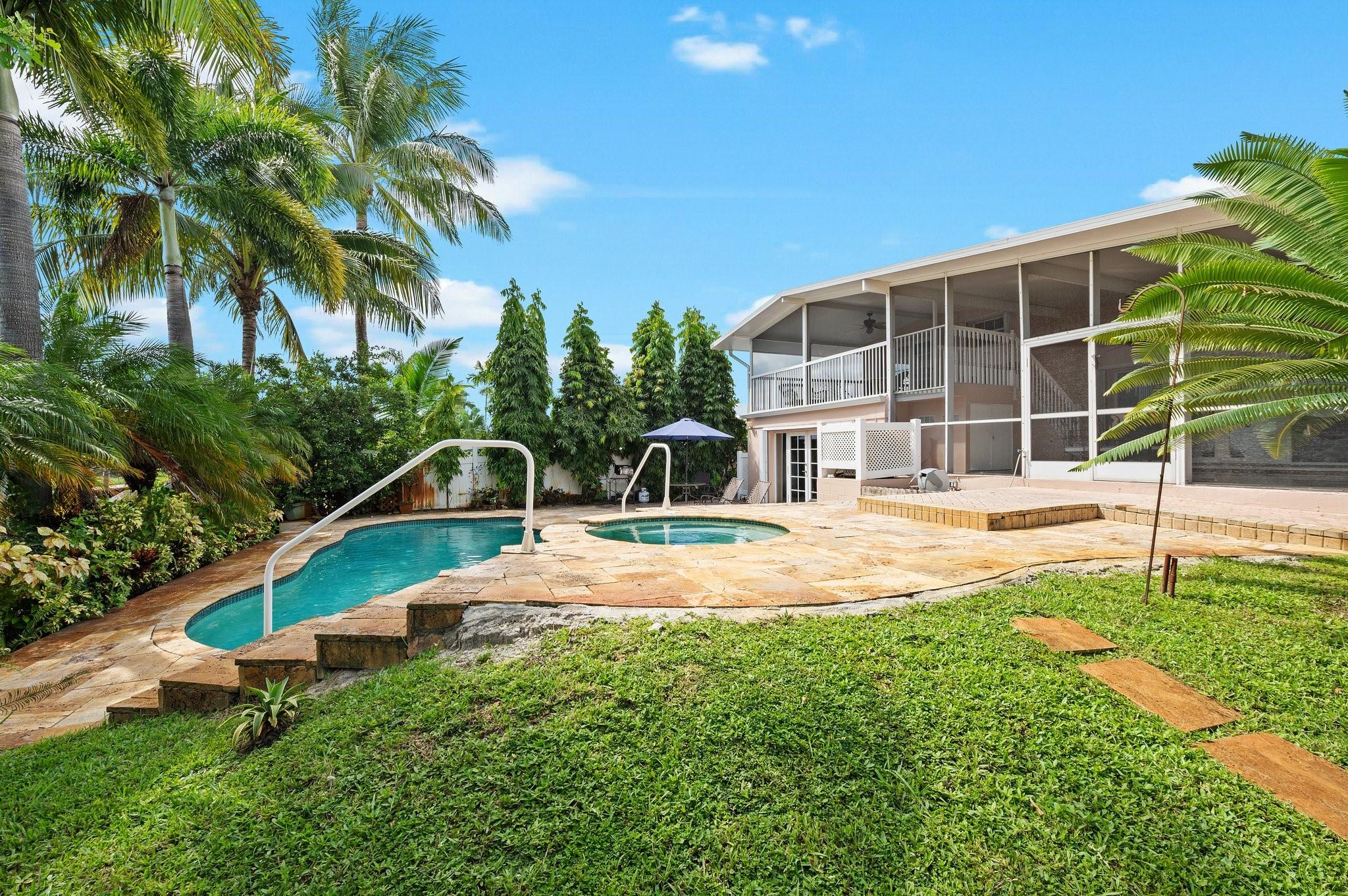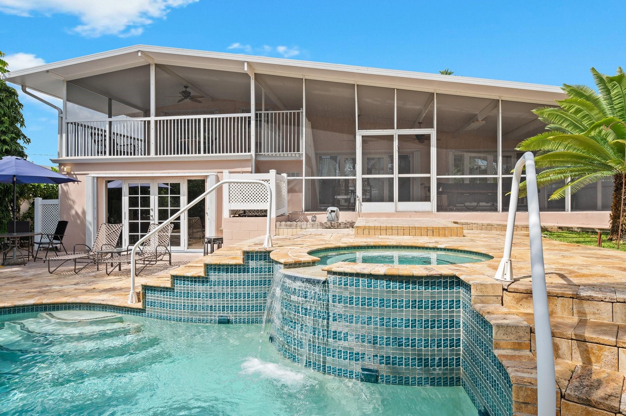 Live the waterfront lifestyle in this lovely tri-level home with ocean access & no fixed bridges to the ocean. Enjoy relaxing from your oversized screened patio and balcony overlooking the pool and tropical landscape. The bright, open layout features 3 bedrooms, 2 baths + a bonus room (perfect for an office) and a new 2023 barrel tile roof. Relax in your heated pool & spa, or set sail from your 65’ of waterfront with a 50’ dock. Covered parking offers direct kitchen entry for added convenience. Prime location near highways, the airport, beaches, and a community boat ramp.