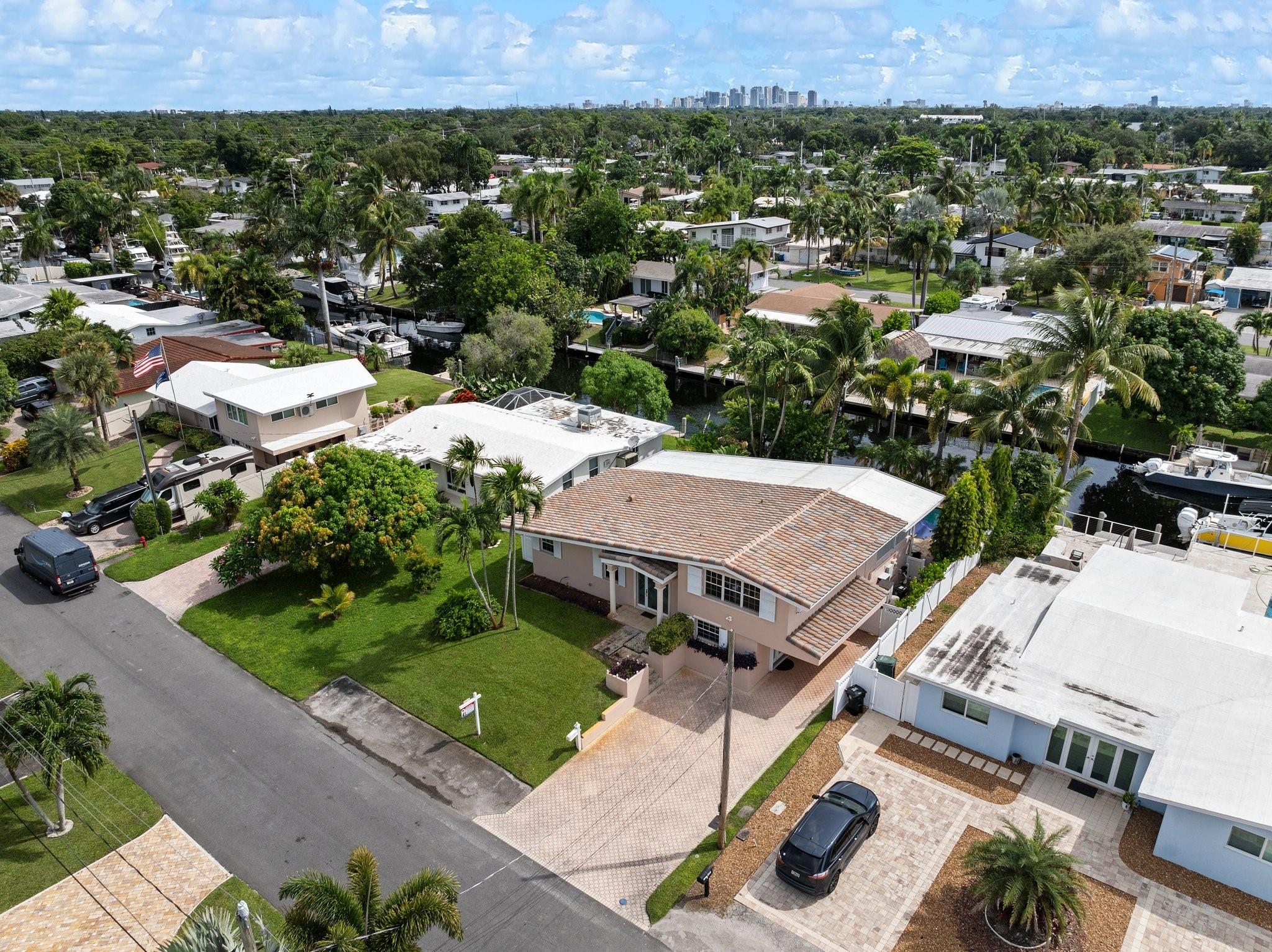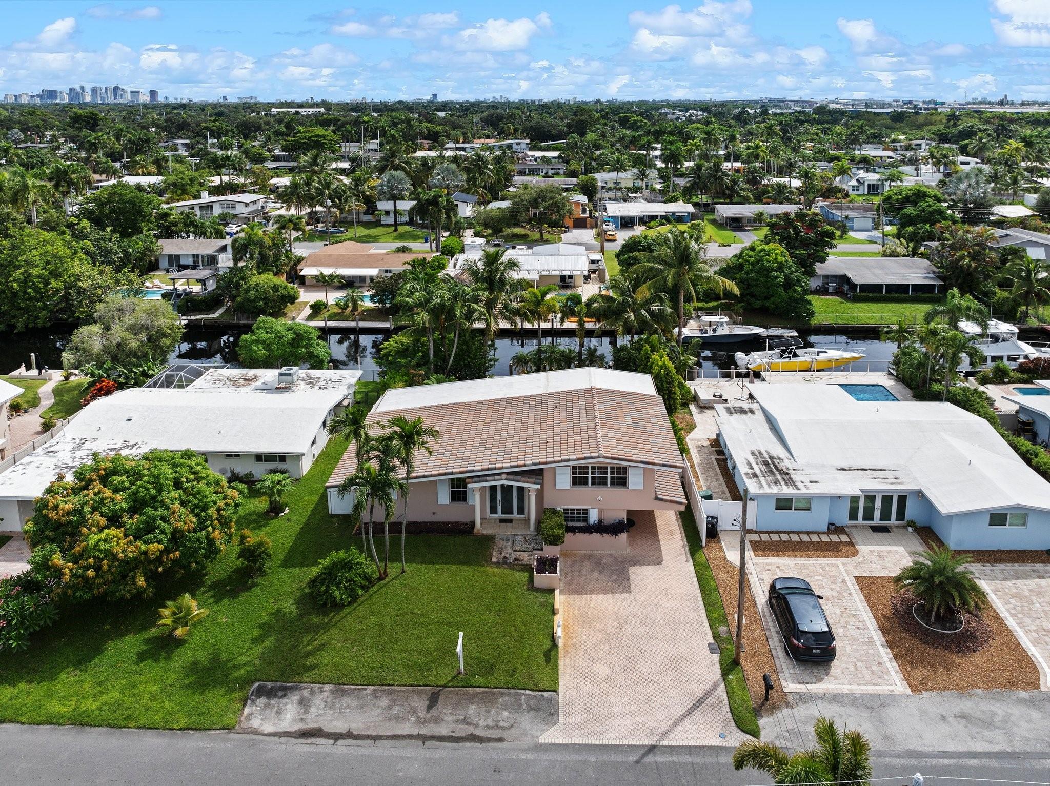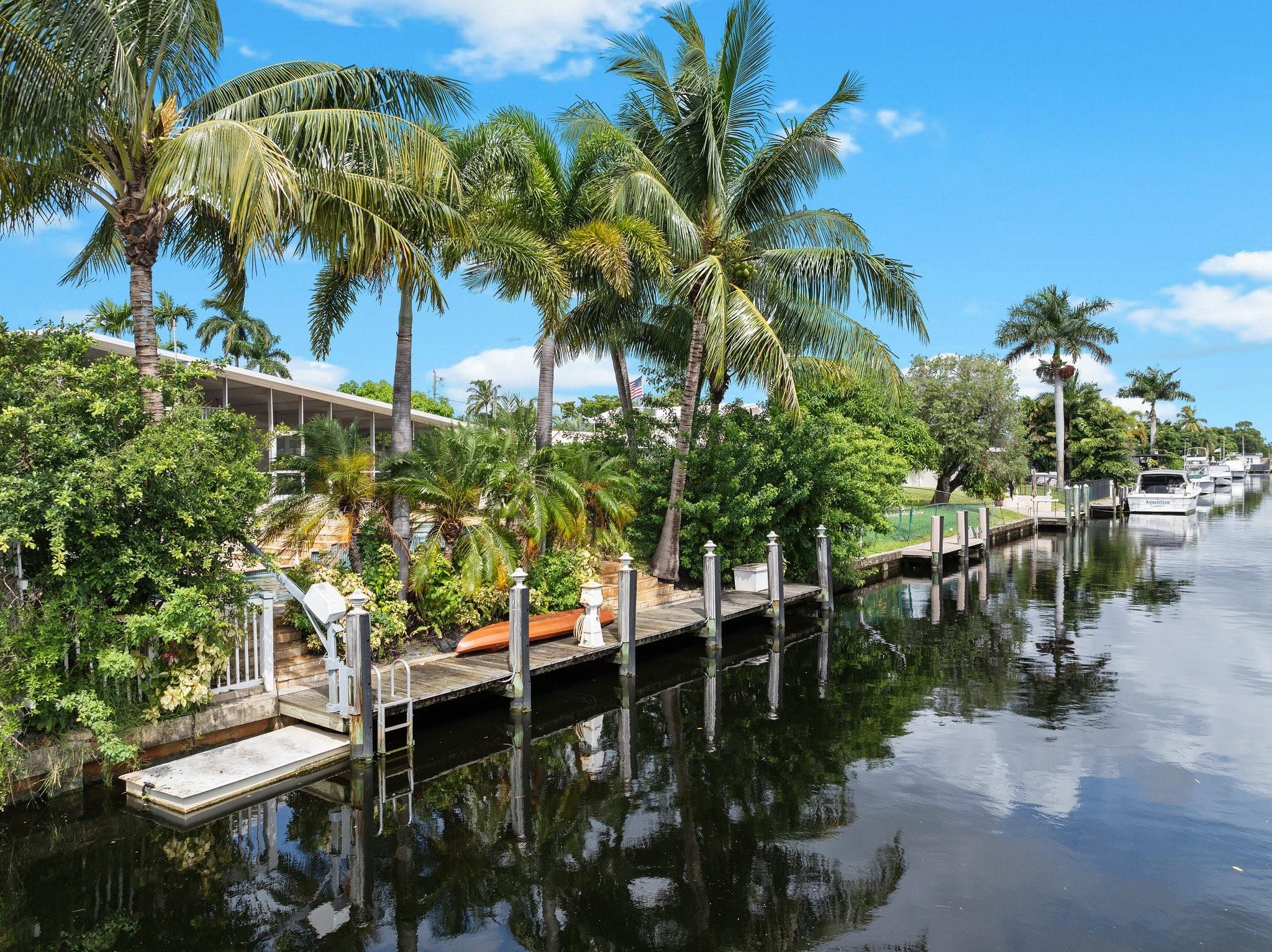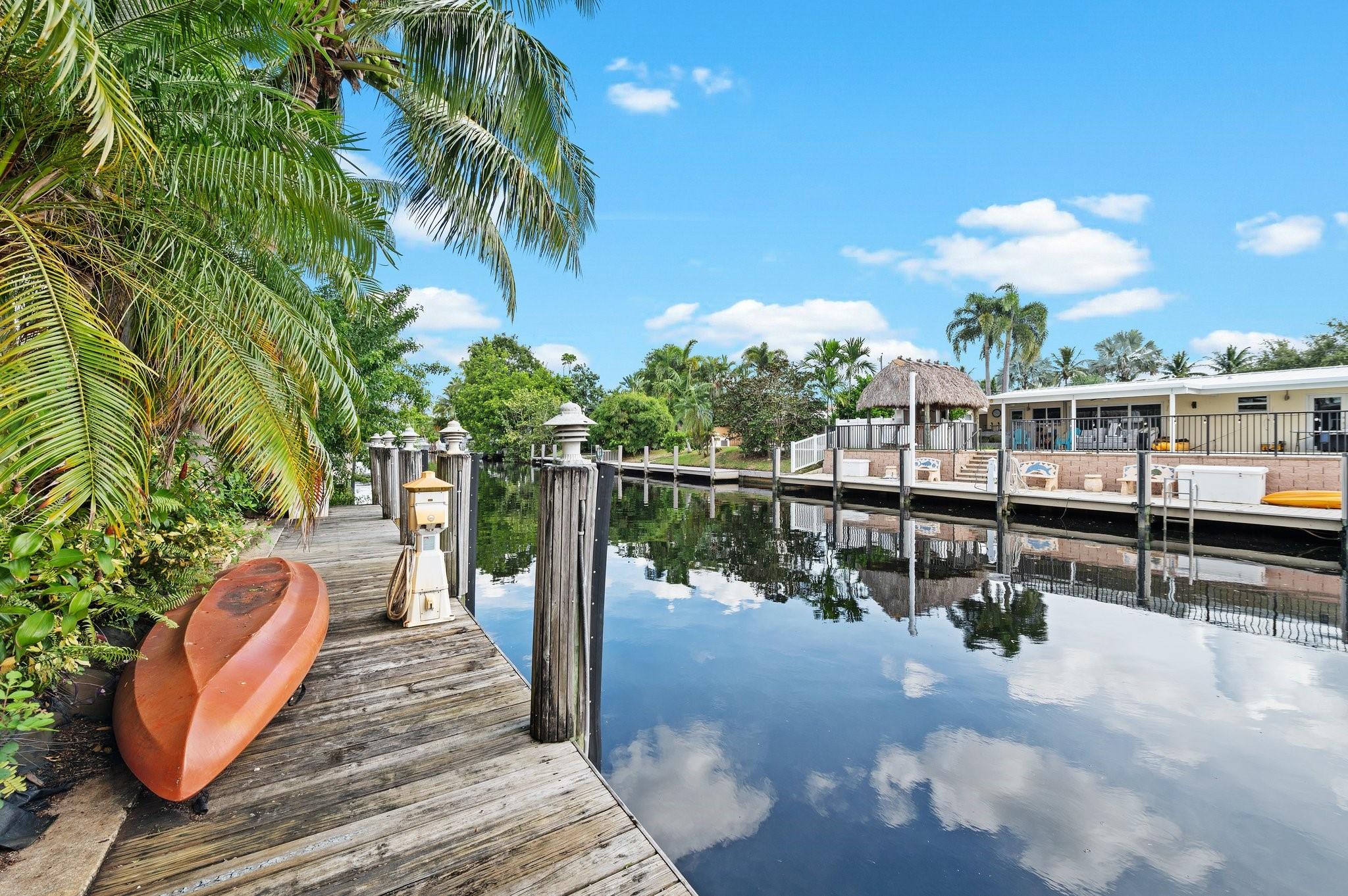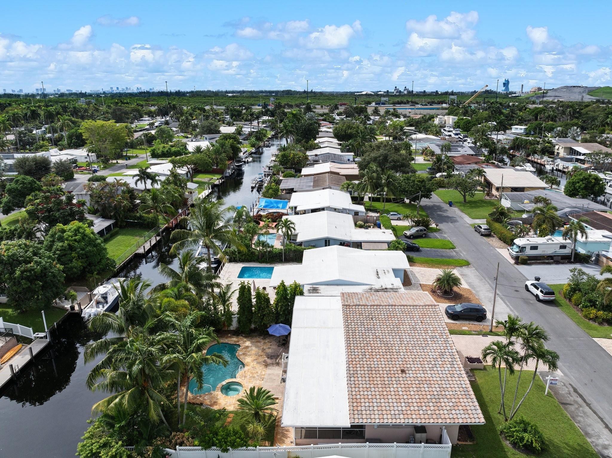 Live the waterfront lifestyle in this lovely tri-level home with ocean access & no fixed bridges to the ocean. Enjoy relaxing from your oversized screened patio and balcony overlooking the pool and tropical landscape. The bright, open layout features 3 bedrooms, 2 baths + a bonus room (perfect for an office) and a new 2023 barrel tile roof. Relax in your heated pool & spa, or set sail from your 65’ of waterfront with a 50’ dock. Covered parking offers direct kitchen entry for added convenience. Prime location near highways, the airport, beaches, and a community boat ramp.