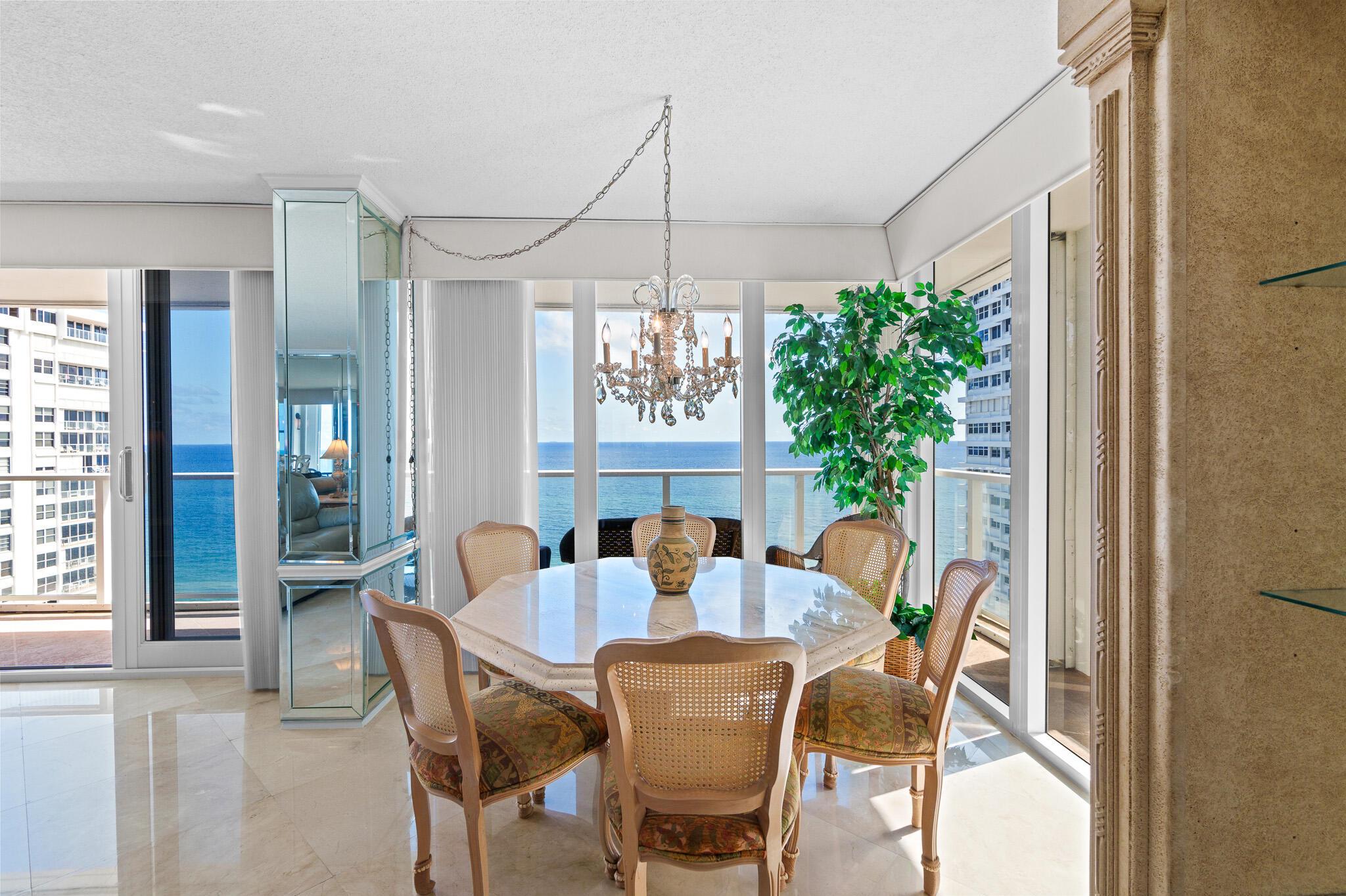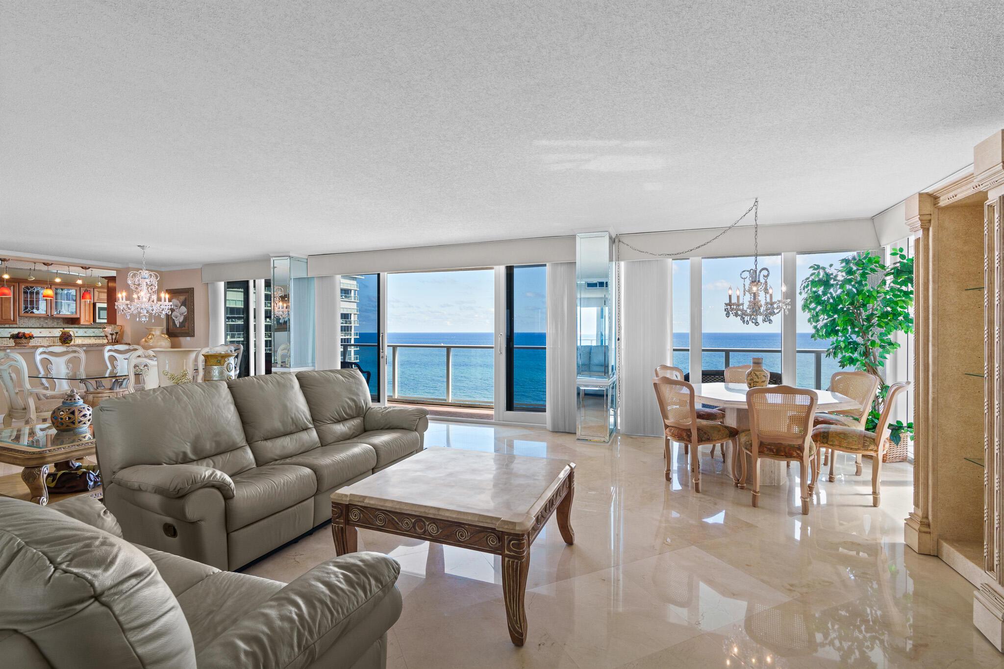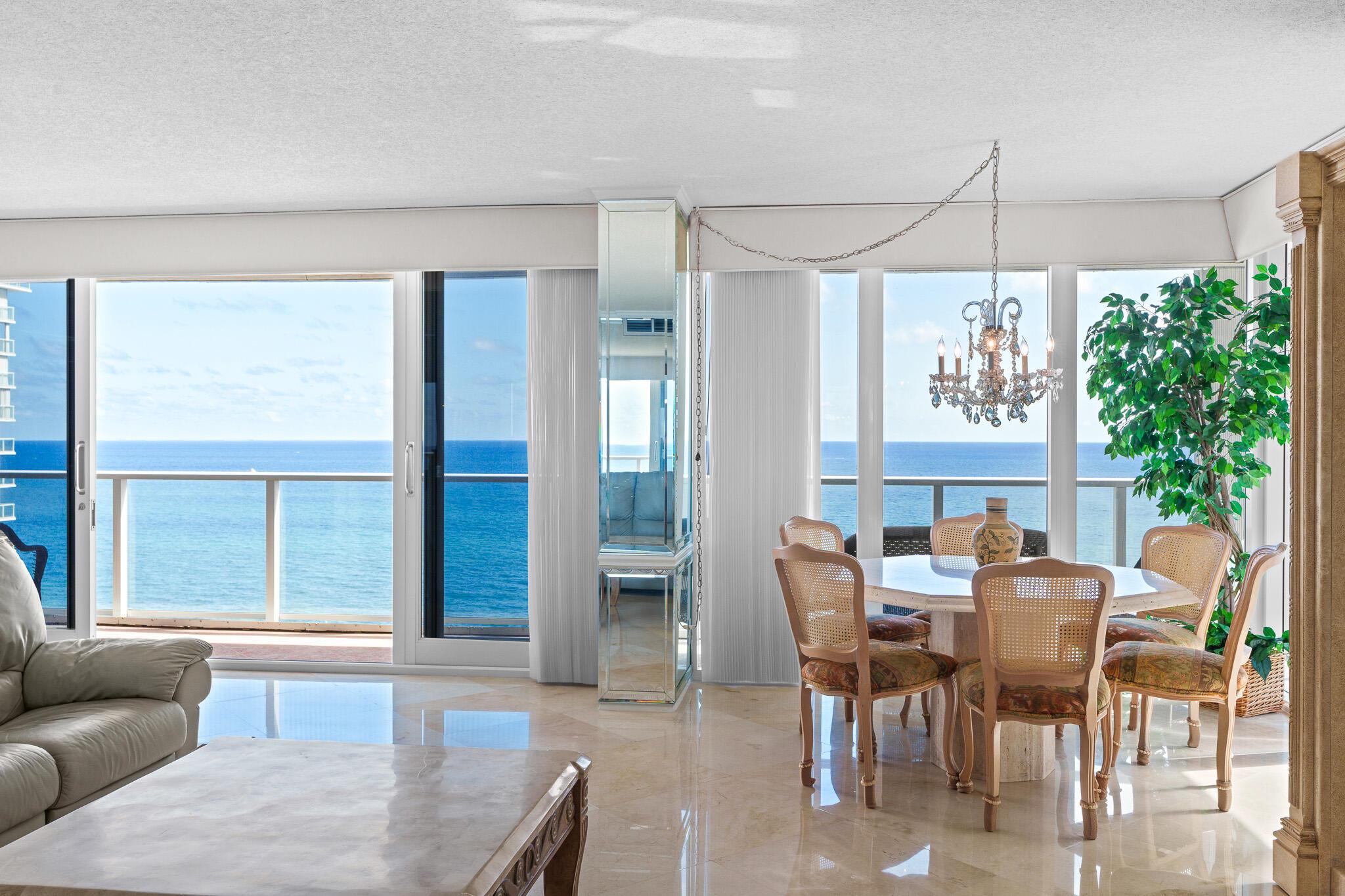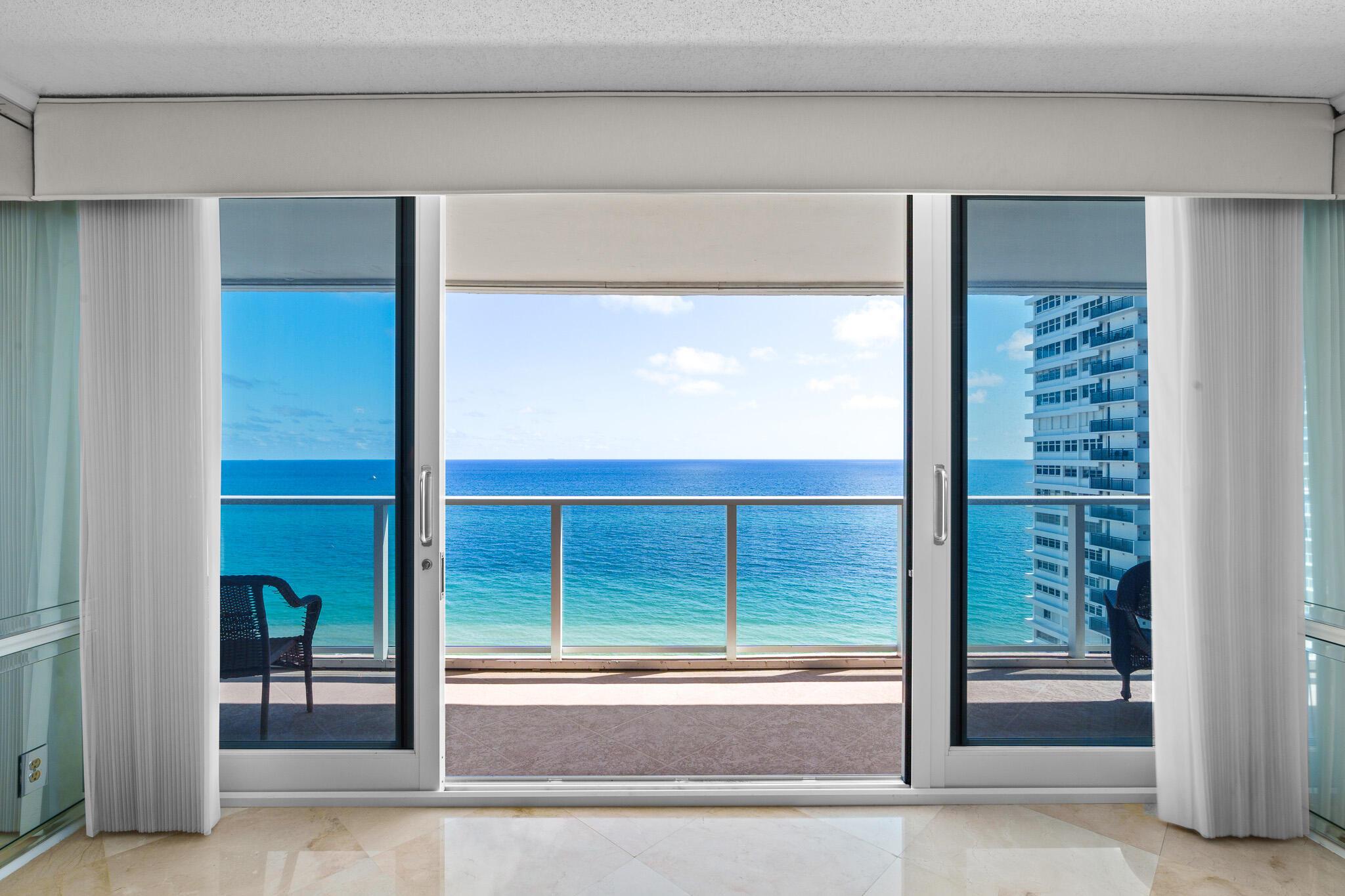 Welcome to Plaza East! A luxury building that offers exceptional amenities. This stunning Corner Unit offers an unparalleled living experience with breathtaking ocean views from the 16th Floor. The spacious, open-concept design blends modern elegance with comfort, featuring floor-to-ceiling Impact Doors and Windows that allow natural light to flood the living spaces and showcase the beautiful coastal scenery. Residents enjoy exclusive access to luxurious amenities such as a heated pool, beach access with umbrella and chaise service, gym, sauna, 24-hour concierge service and security, valet parking, a rentable 1 bedroom guest suite, and more. Enter into your semi-private elevator from your parking spot directly to your vestibule offering complete privacy. Come and see for yourself!