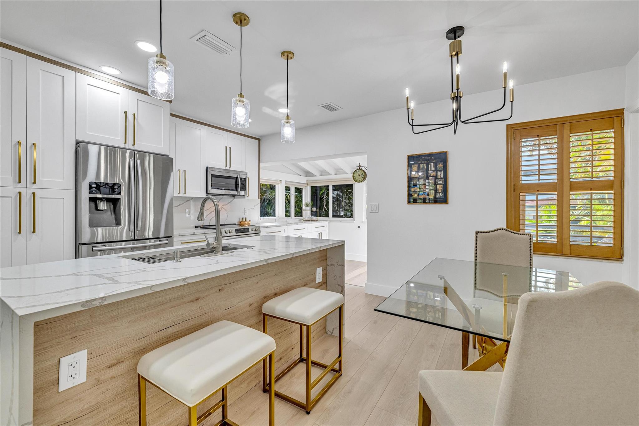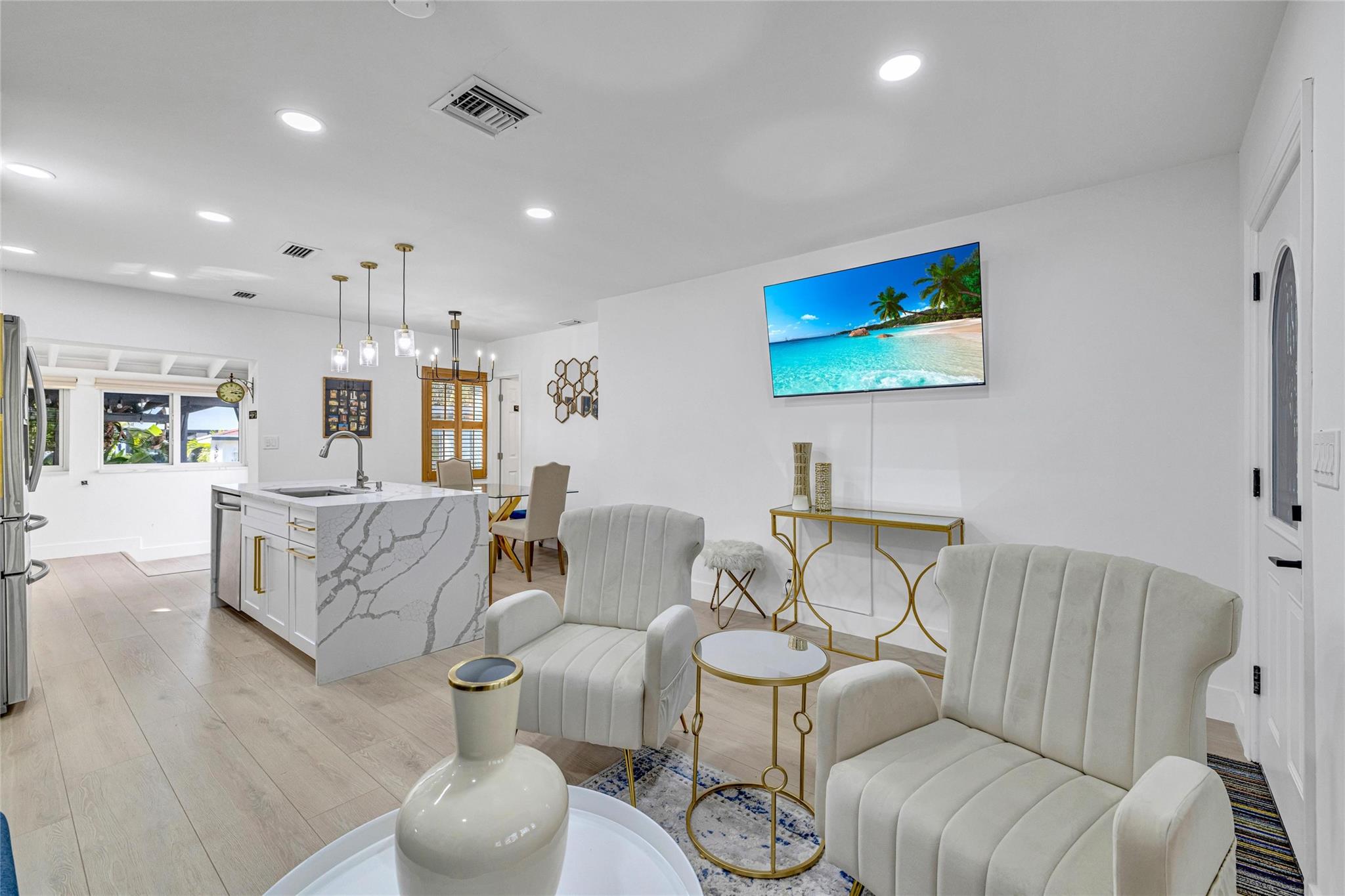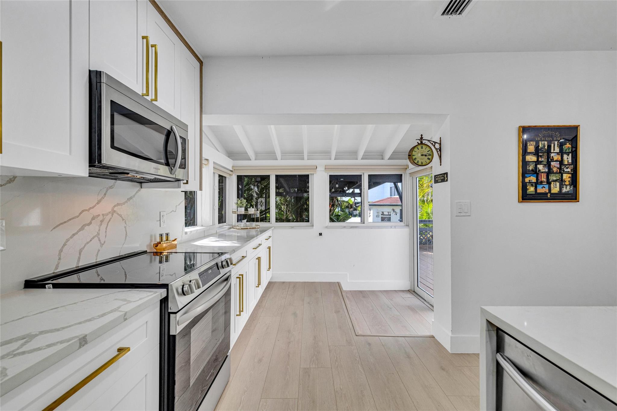 On the ridge in Victoria Park. Property survey indicates it is above flood zones. Priced at land value, this stylish home features modern updates including new lighting, a sleek kitchen with new appliances, two newer baths, HVAC (2019), tile roof (2023), and impact windows/doors (2021). On a prime street, it offers serene gardens, multi-level decks for entertaining, and low-maintenance turf. A welcoming front porch leads to a bright open-plan living area. The kitchen provides generous storage and workspace. Bedrooms are spacious with high ceilings and large closets. The attached garage includes a newer washer/dryer and storage. Ideally located near parks, dining, groceries, Las Olas, and the beach.