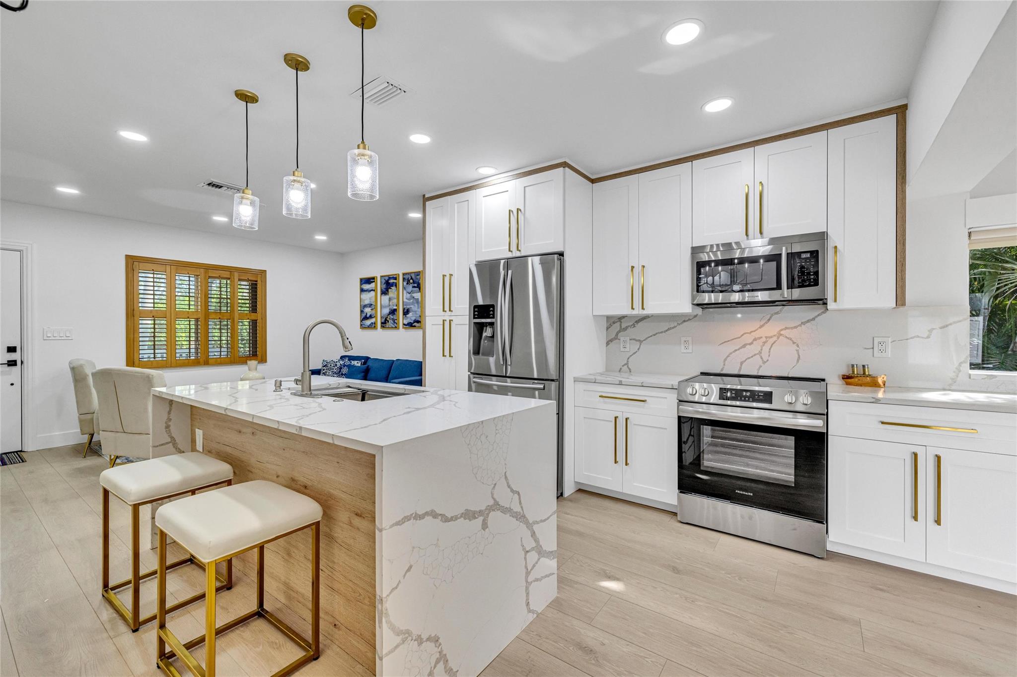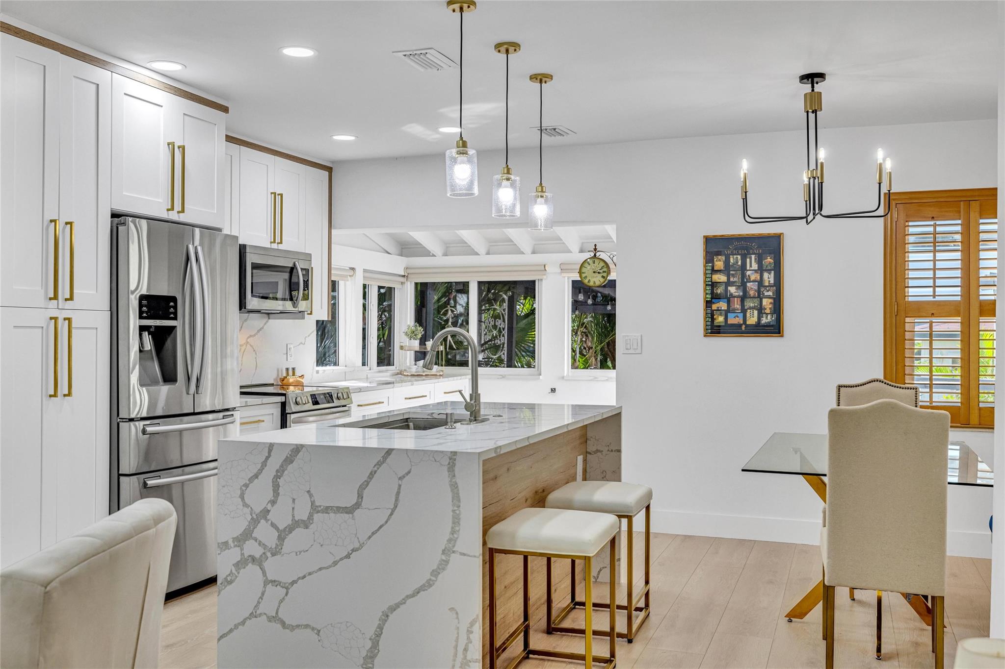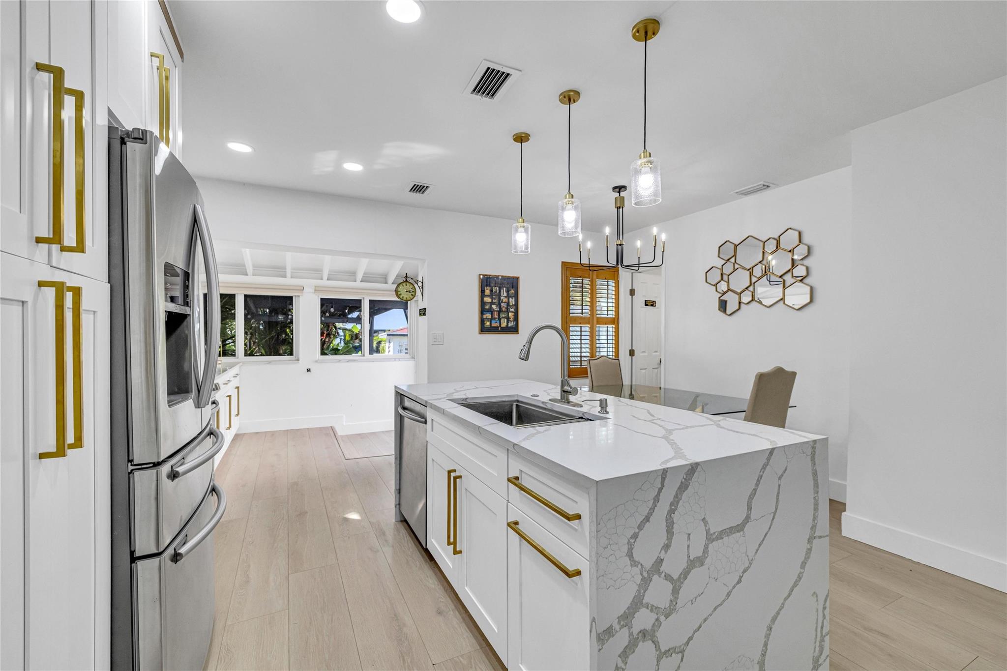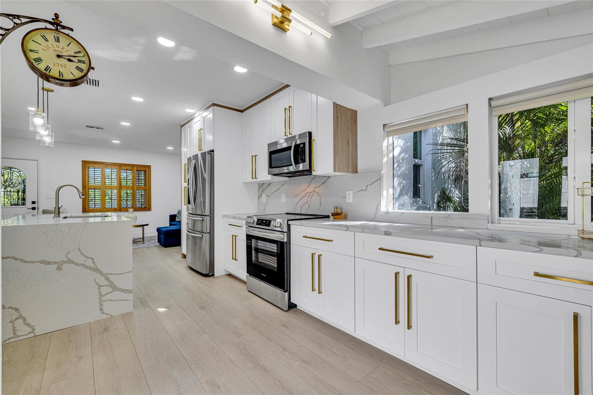 On the ridge in Victoria Park. Property survey indicates it is above flood zones. Priced at land value, this stylish home features modern updates including new lighting, a sleek kitchen with new appliances, two newer baths, HVAC (2019), tile roof (2023), and impact windows/doors (2021). On a prime street, it offers serene gardens, multi-level decks for entertaining, and low-maintenance turf. A welcoming front porch leads to a bright open-plan living area. The kitchen provides generous storage and workspace. Bedrooms are spacious with high ceilings and large closets. The attached garage includes a newer washer/dryer and storage. Ideally located near parks, dining, groceries, Las Olas, and the beach.
