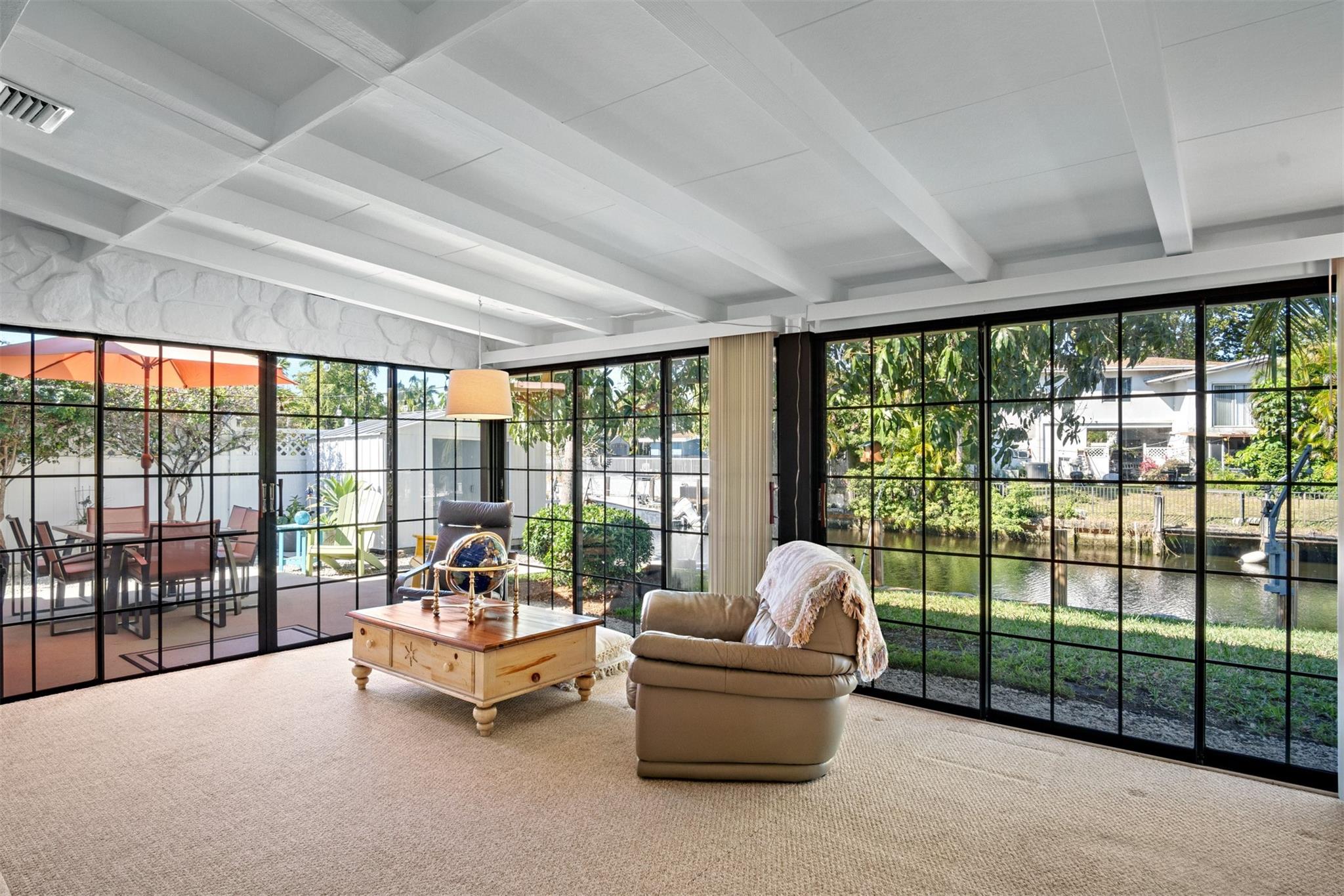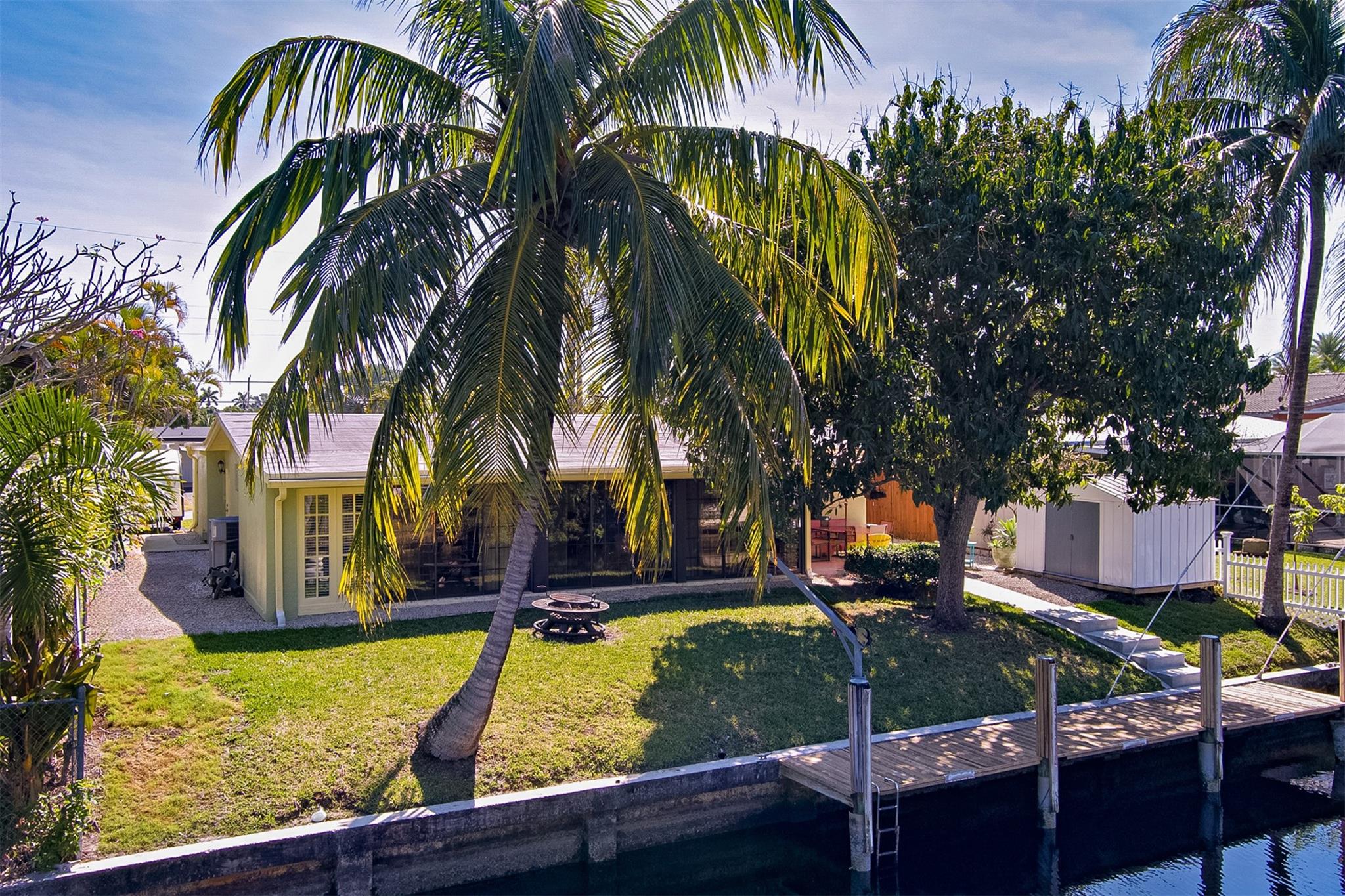 Welcome to this stunning waterfront home, offering the perfect blend of comfort and convenience! There is no HOA. There is ocean access and no fixed bridges, this property is a boater's paradise. It features 65 feet of dock space and is surrounded by mature coconut and mango trees. Inside, are large, sun-filled rooms with windows galore, filling the 2300 square feet, one-story home with natural light. Enjoy one-story living and beautifully landscaped, low-maintenance yards with zeroscaping. The home comes fully equipped with appliances, including a new 2024 dishwasher, refrigerator, stove, microwave, washer, and dryer. EcoSmart tankless water heater for energy efficiency. Recent updates include a new roof (2022). Close to major highways, Fort Lauderdale airports, and Florida beaches.
