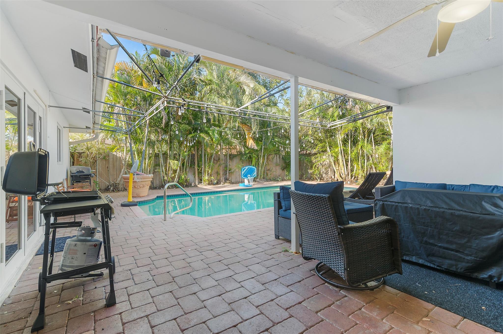 4/3 with a 2 car garage in the Imperial Point Suburb of Fort Lauderdale. Imperial Point is a coveted neighborhood known for a family friendly environment that is also close to the Beach, great schools, hospitals and Downtown Fort Lauderdale. Fantastic layout with a split plan bedroom set up and open concept kitchen / living area. Impact windows and a newer AC. The backyard has a great salt water pool, large patio for getting sun but also a covered porch for getting shade and rain. Great location with tons of shopping, restaurants and nightlife all less than 1 mile away.