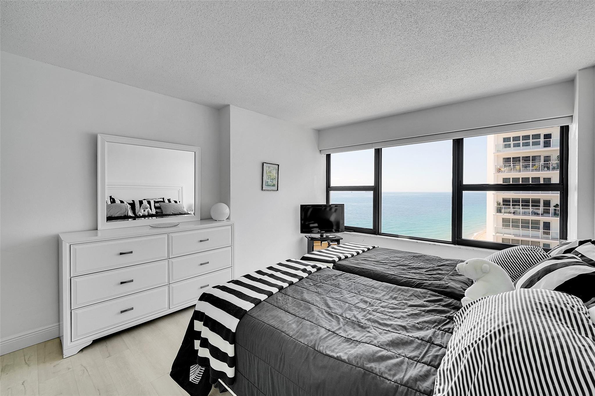Sweeping ocean view from this southeast corner. Rarely comes on the market. This unit has a large balcony from where you can see the sunrise. Large pool, Jacuzzi, fitness center overlooking pool and ocean party room, library, tennis court. Three steps down, and you are on the sand where you have beach lounges, umbrellas, and cabanas. 24 /7 Security .Across the street you will find supermarket, drugstore, banks, restaurants, and shops. Two spaces in a covered garage parking. Building is undergoing concrete restoration but the south east side and pool area are finished and opened.