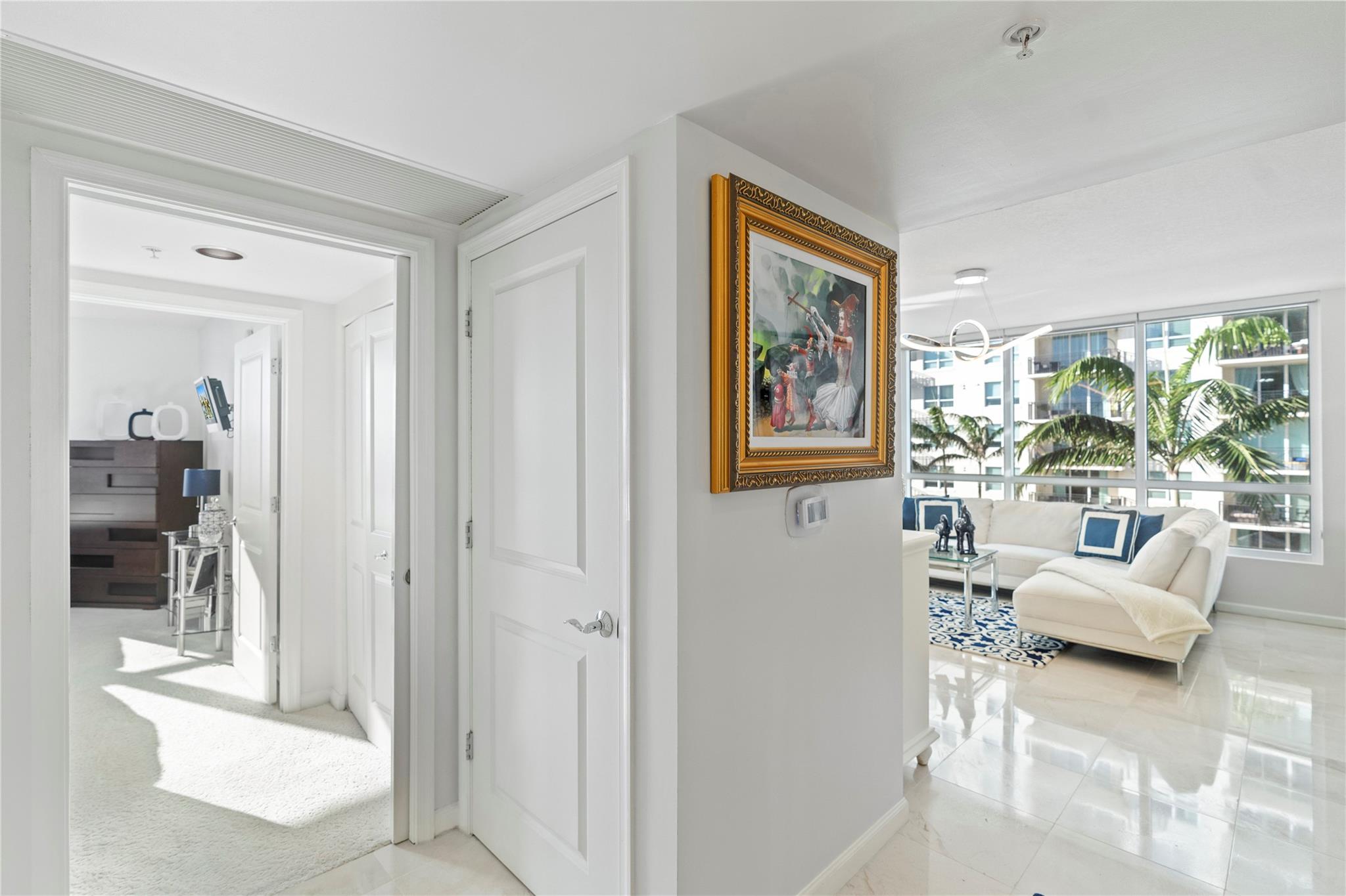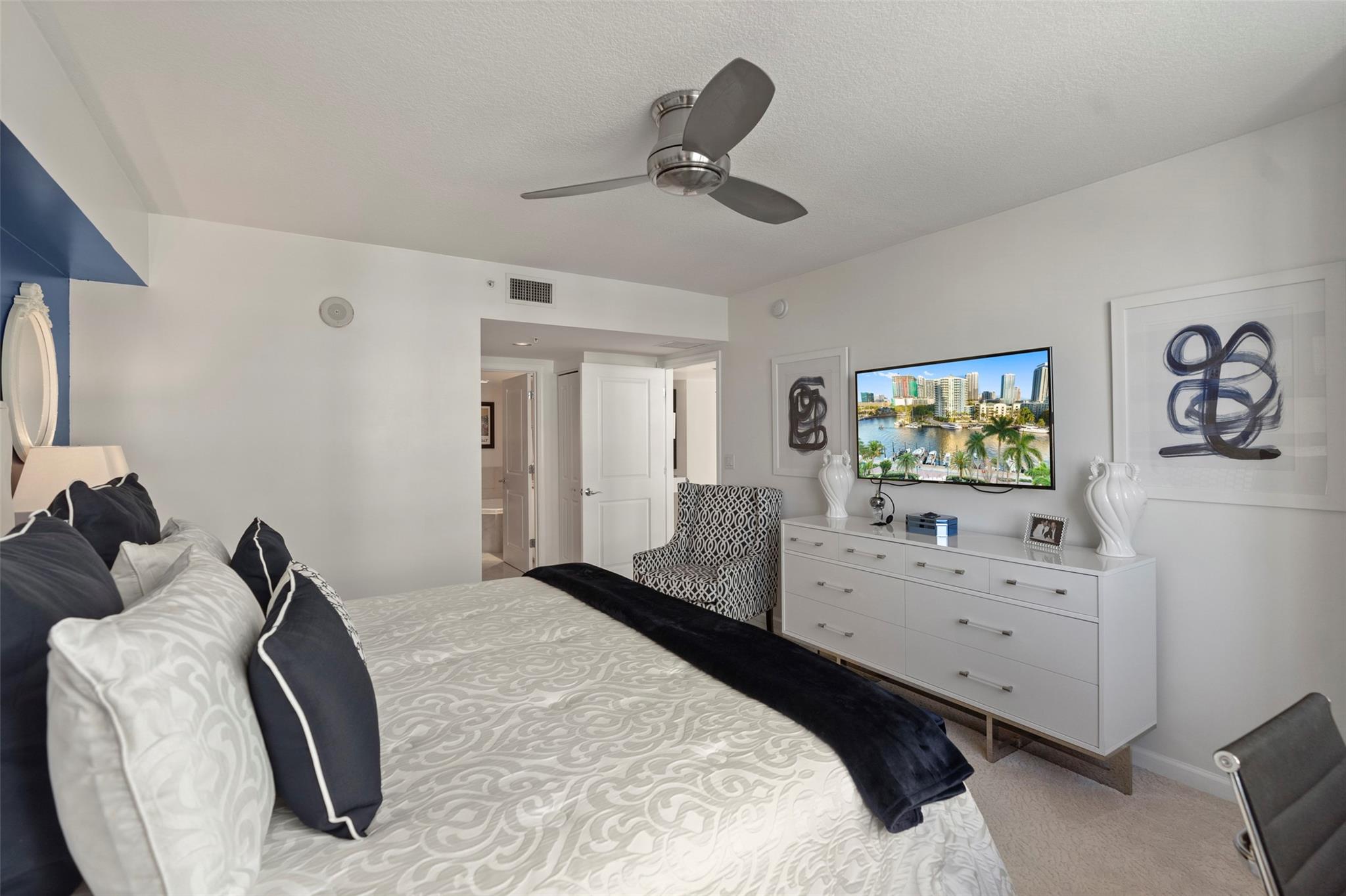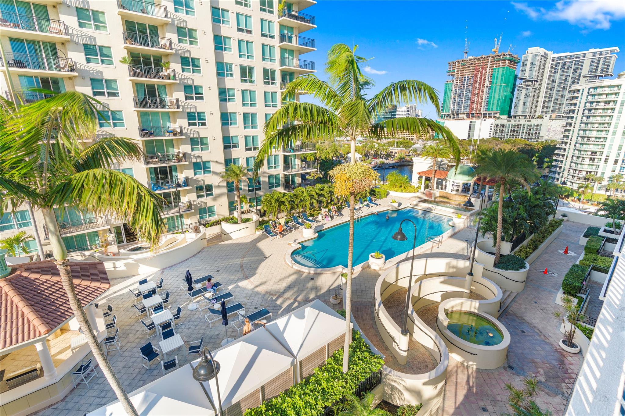 The Symphony, a premier gated, riverfront condo on the New River. SELLER MAY "CONSIDER" OWNER FINANCING. This is a turn-key residence. Open floor plan, floor-to-ceiling windows, limestone floors, motorized window treatments & balcony w/ stunning views. From formal entry through the main living area it is flooded with natural light. Well-appointed kitchen with modern SS appliances. Primary suite offers a custom closet, a spa-like bathroom w/dual vanities, soaking tub & standalone shower. The guest bedroom w/ Murphy beds & guest bathroom can serve as a private suite/office. In unit W/D. The Symphony is dog friendly w/park, state of the art gym overlooking the river, heated pool & hot tub, salon, spa & business center. Walk along the Riverwalk for fine dining & shopping along Las Olas Blvd.