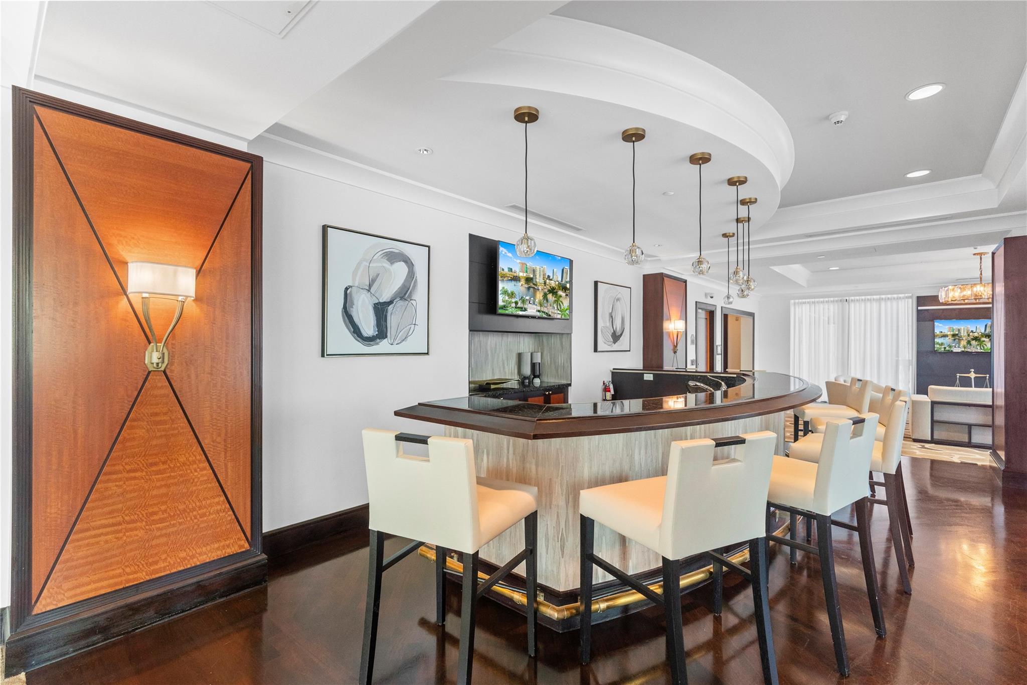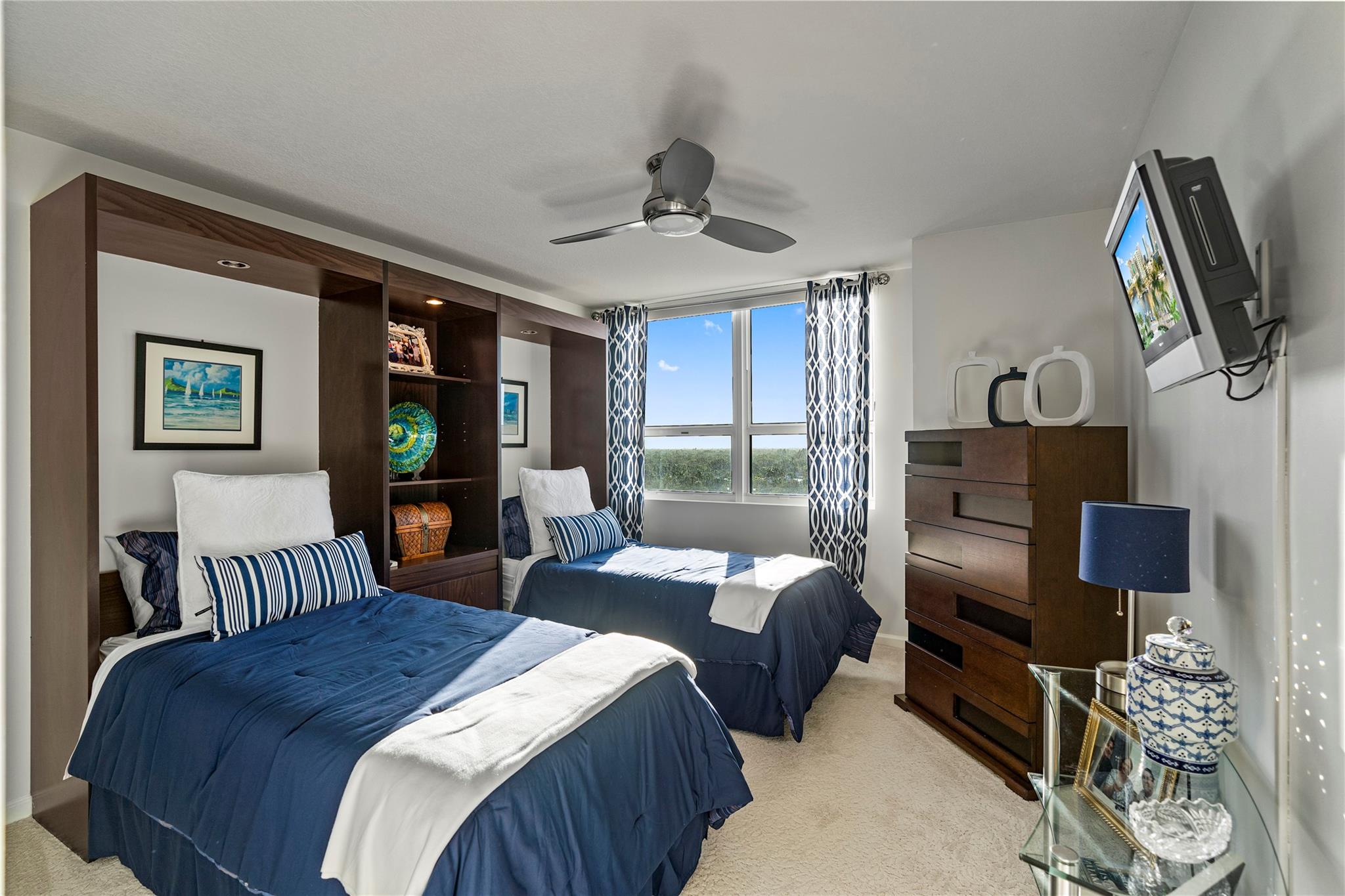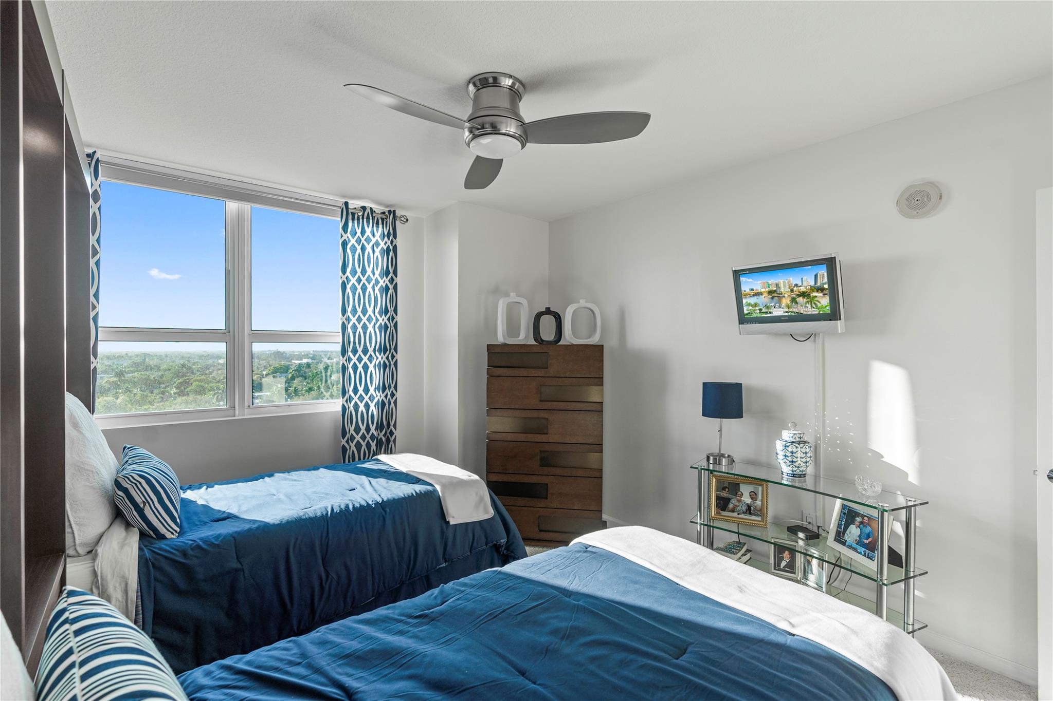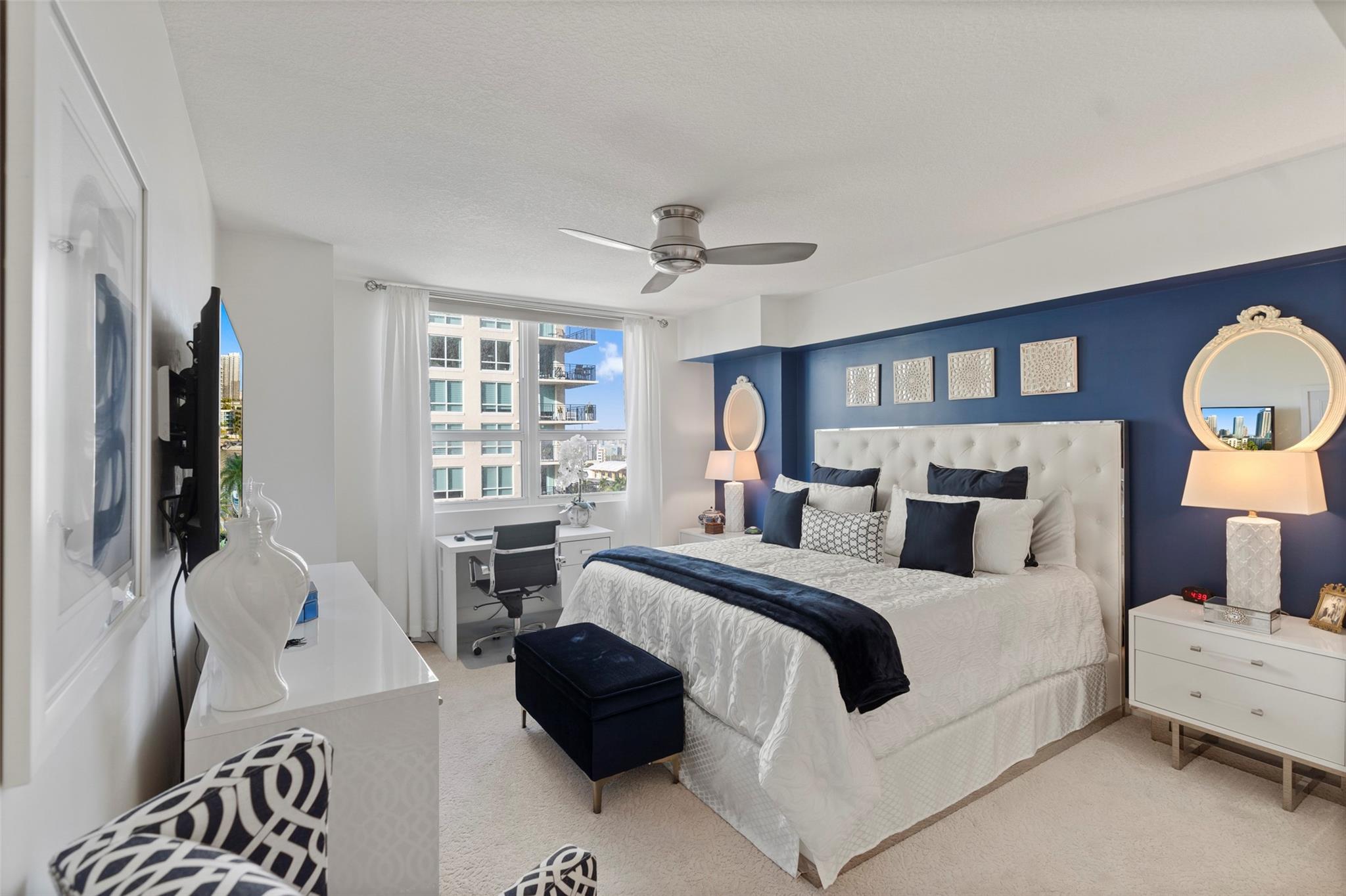 The Symphony, a premier gated, riverfront condo on the New River. SELLER MAY "CONSIDER" OWNER FINANCING. This is a turn-key residence. Open floor plan, floor-to-ceiling windows, limestone floors, motorized window treatments & balcony w/ stunning views. From formal entry through the main living area it is flooded with natural light. Well-appointed kitchen with modern SS appliances. Primary suite offers a custom closet, a spa-like bathroom w/dual vanities, soaking tub & standalone shower. The guest bedroom w/ Murphy beds & guest bathroom can serve as a private suite/office. In unit W/D. The Symphony is dog friendly w/park, state of the art gym overlooking the river, heated pool & hot tub, salon, spa & business center. Walk along the Riverwalk for fine dining & shopping along Las Olas Blvd.
