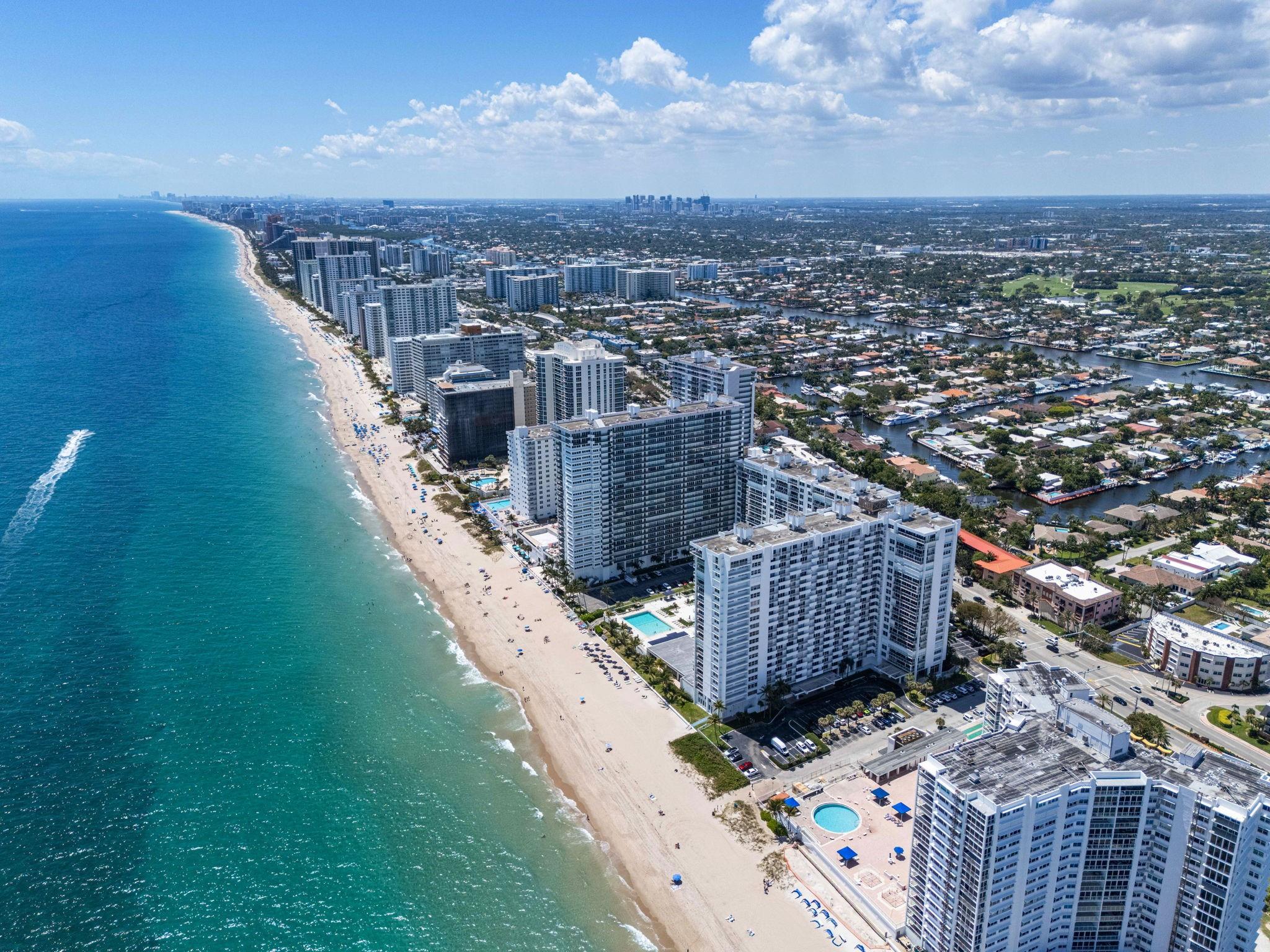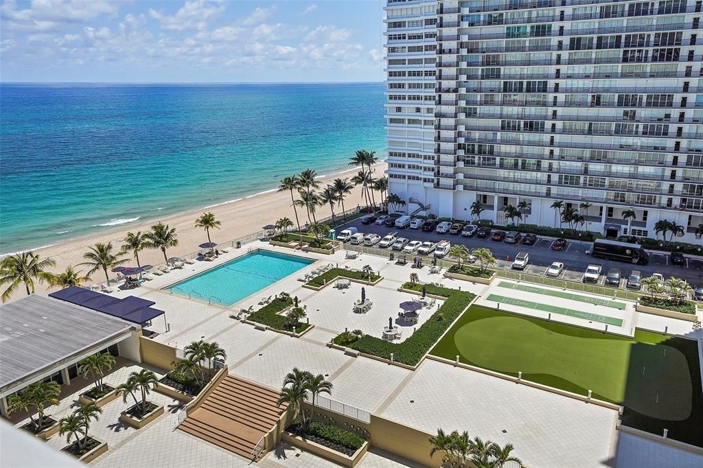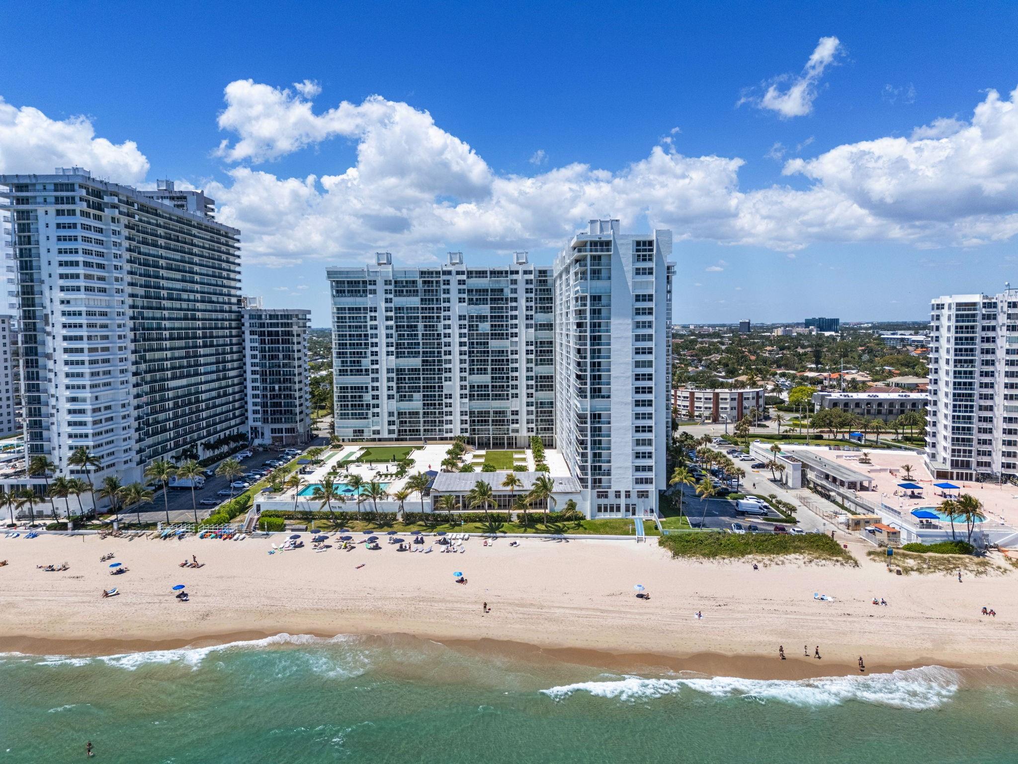 FULLY FUNDED RESERVES & PASSED 40 YR INSPECTIONS! The most desirable “J” stack unit at Plaza East. Enjoy a semi-private elevator from your parking spot directly to your unit, offering convenience and privacy. This unit was designed to offer spectacular ocean views from the moment you enter. The open concept layout features timeless neutral décor in cabinetry, countertops, backsplash, and flooring. Floor-to-ceiling windows & a spacious balcony enhance the beachfront living experience. Two generous bedrooms boast ample closet space, with added conveniences like in-unit washer/dryer & trash chute. Residents enjoy access to the largest heated pool on the Galt Ocean Mile, beach chaise/umbrella service, a manager's apartment available for rent to guests. NO WORK BEING DONE ON THE BULIDING!!