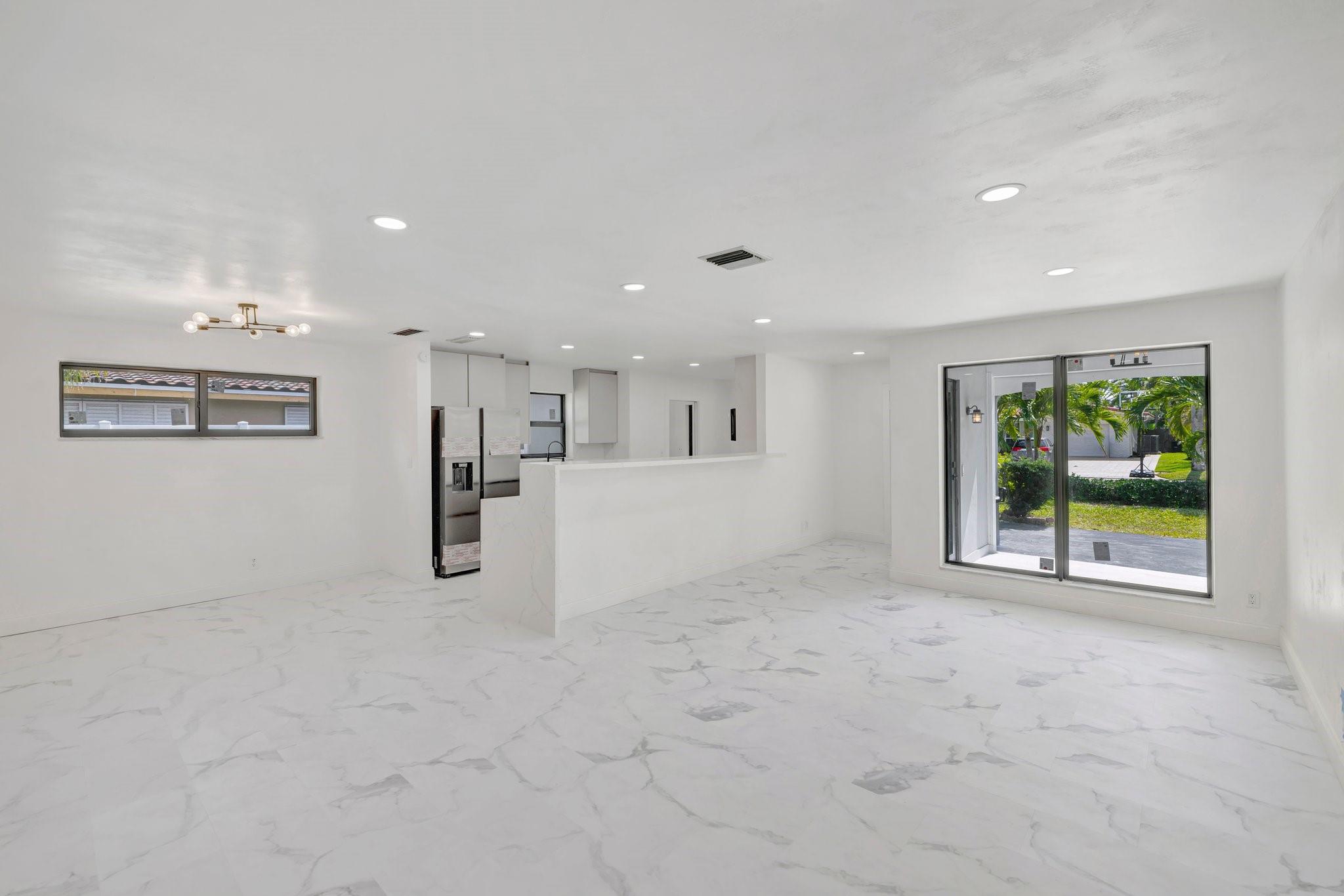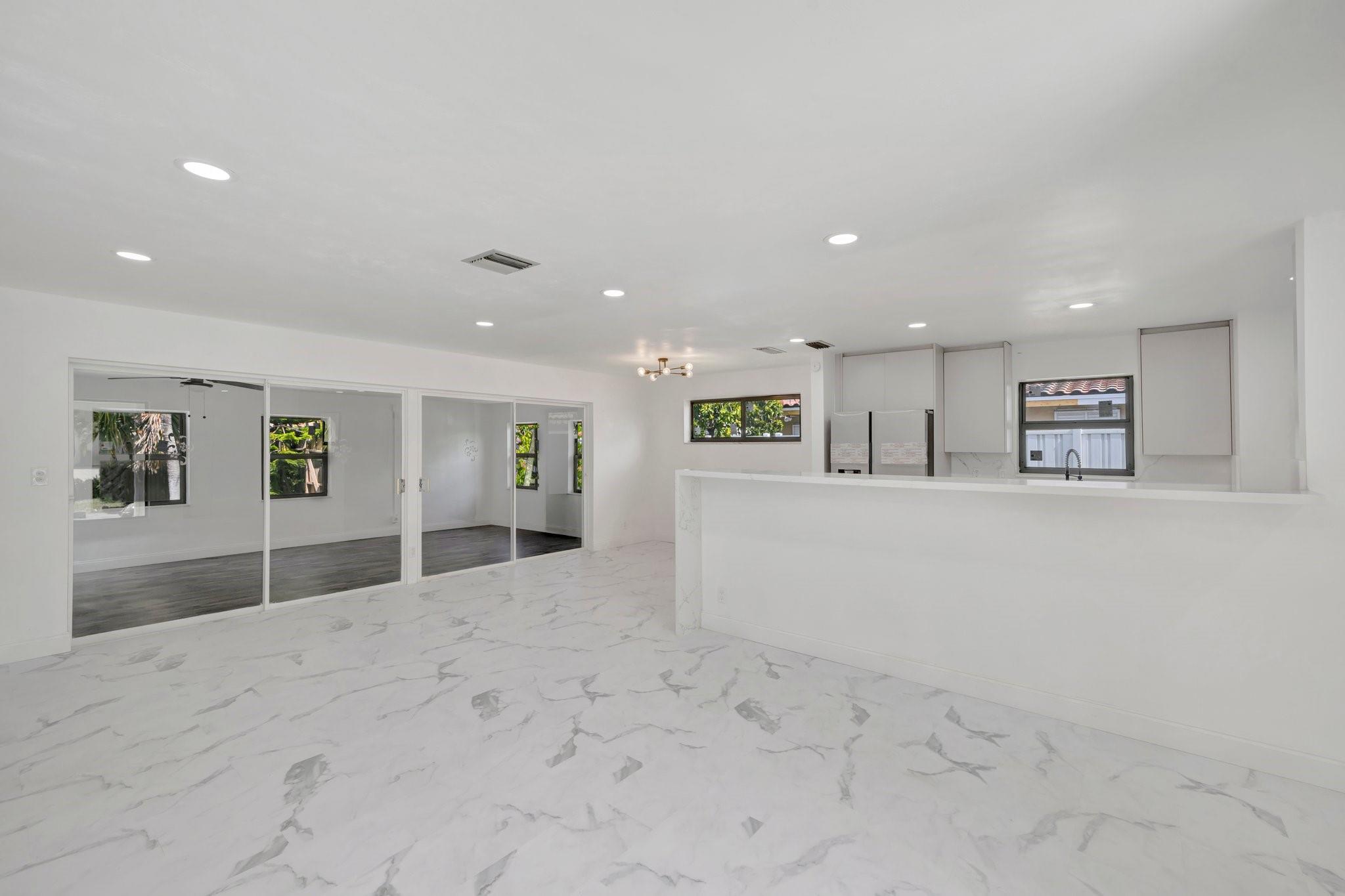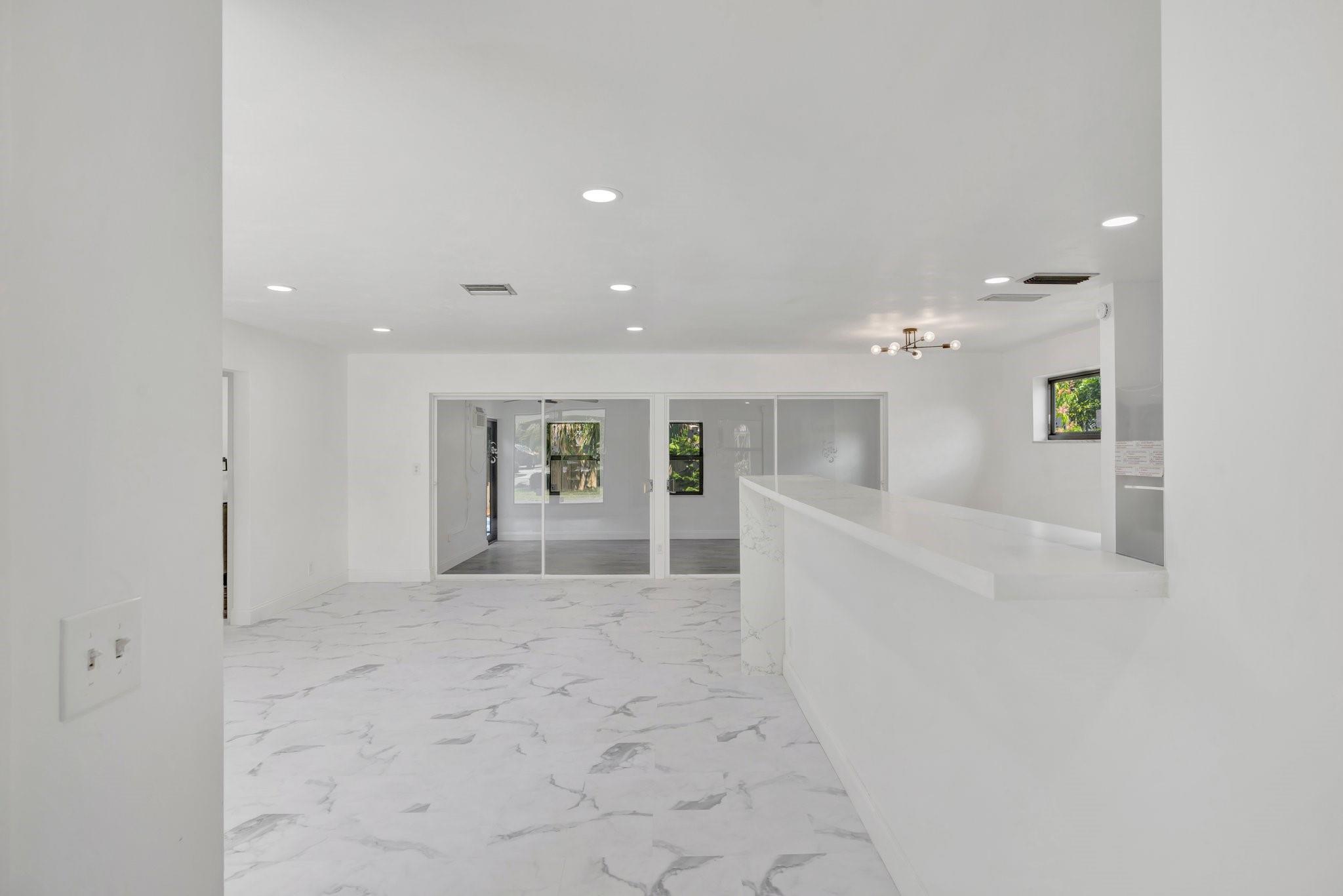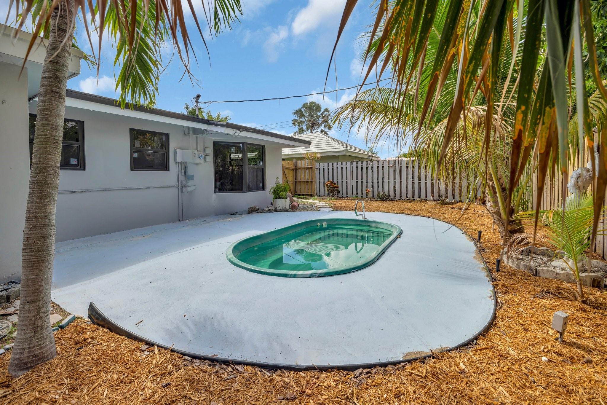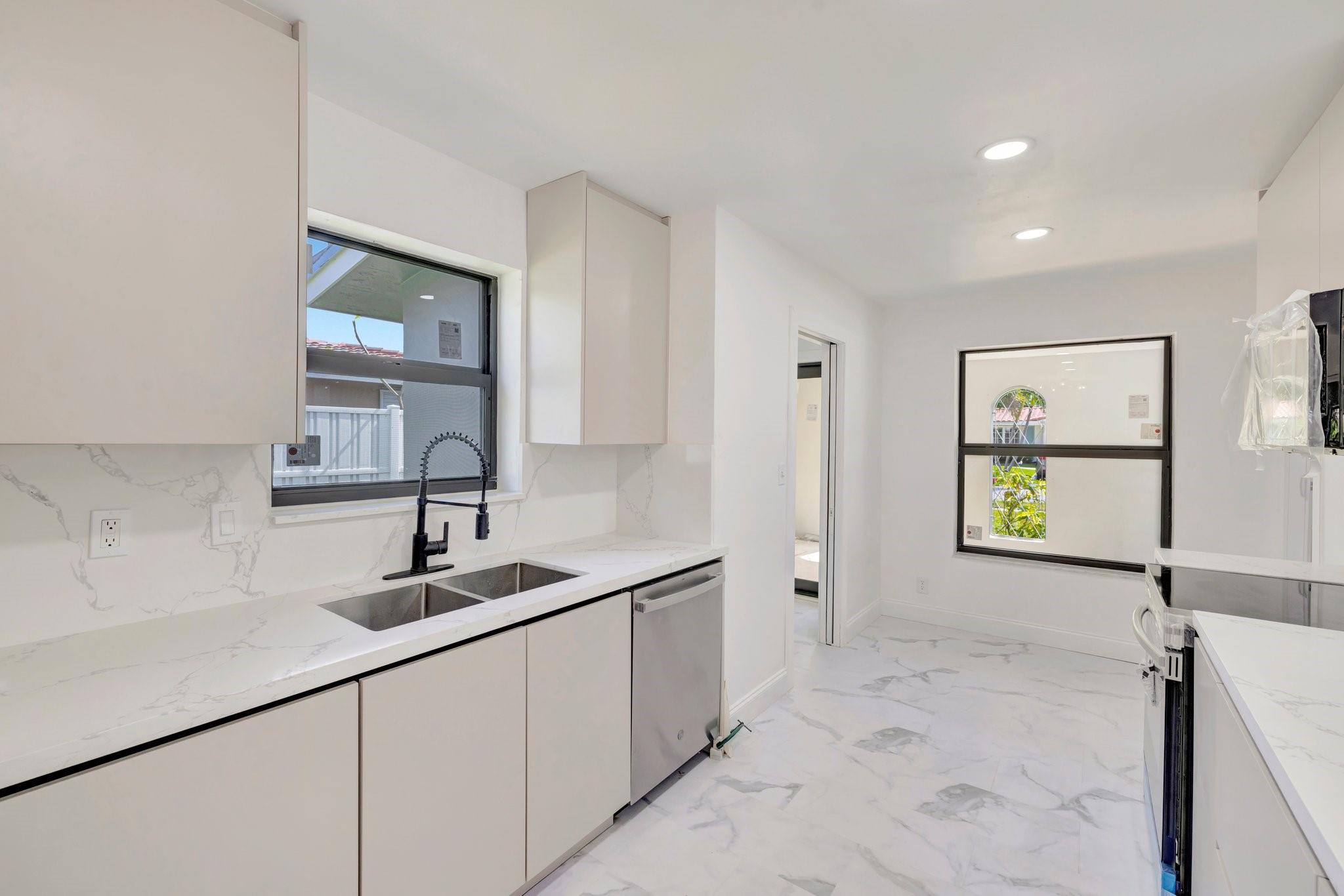 Beautifully remodeled home features new kitchen with Calacatta quartz counter tops, breakfast bar, new appliances and cabinets. New bathrooms with glass enclosed showers. New roof. New impact windows. Waterproof flooring in enclosed sunroom. Bedrooms with ceiling fans. New baseboards and light fixtures. Recessed lighting throughout. Covered front porch. Fenced back yard with concrete patio and wading pool. Storage Shed. Mango tree. Sprinkler system. Lots more! Don't miss it!