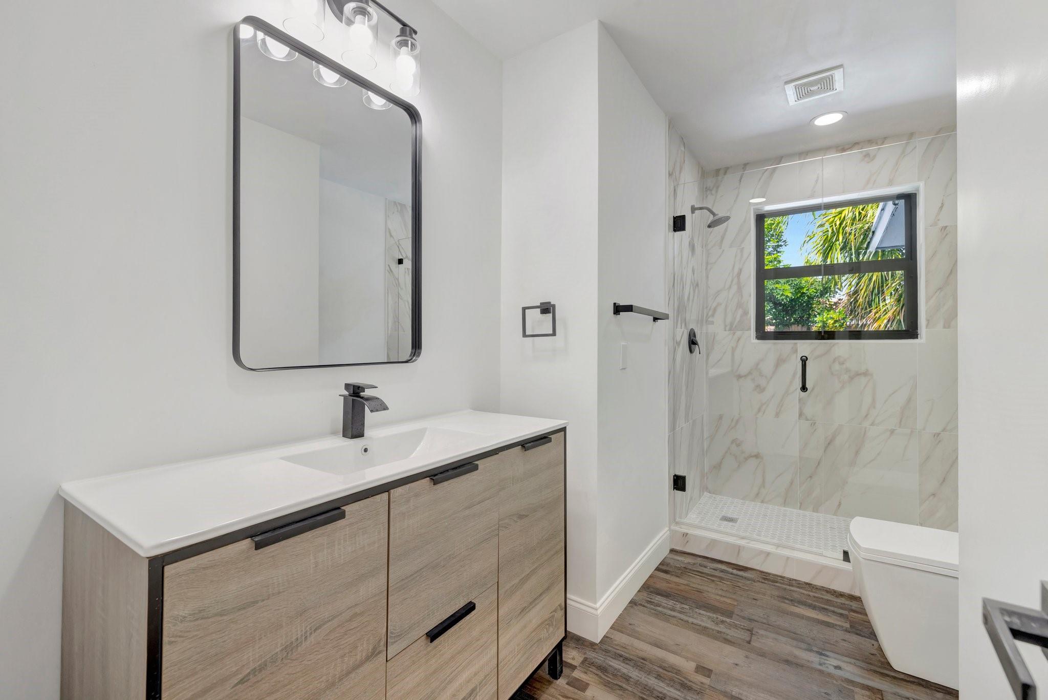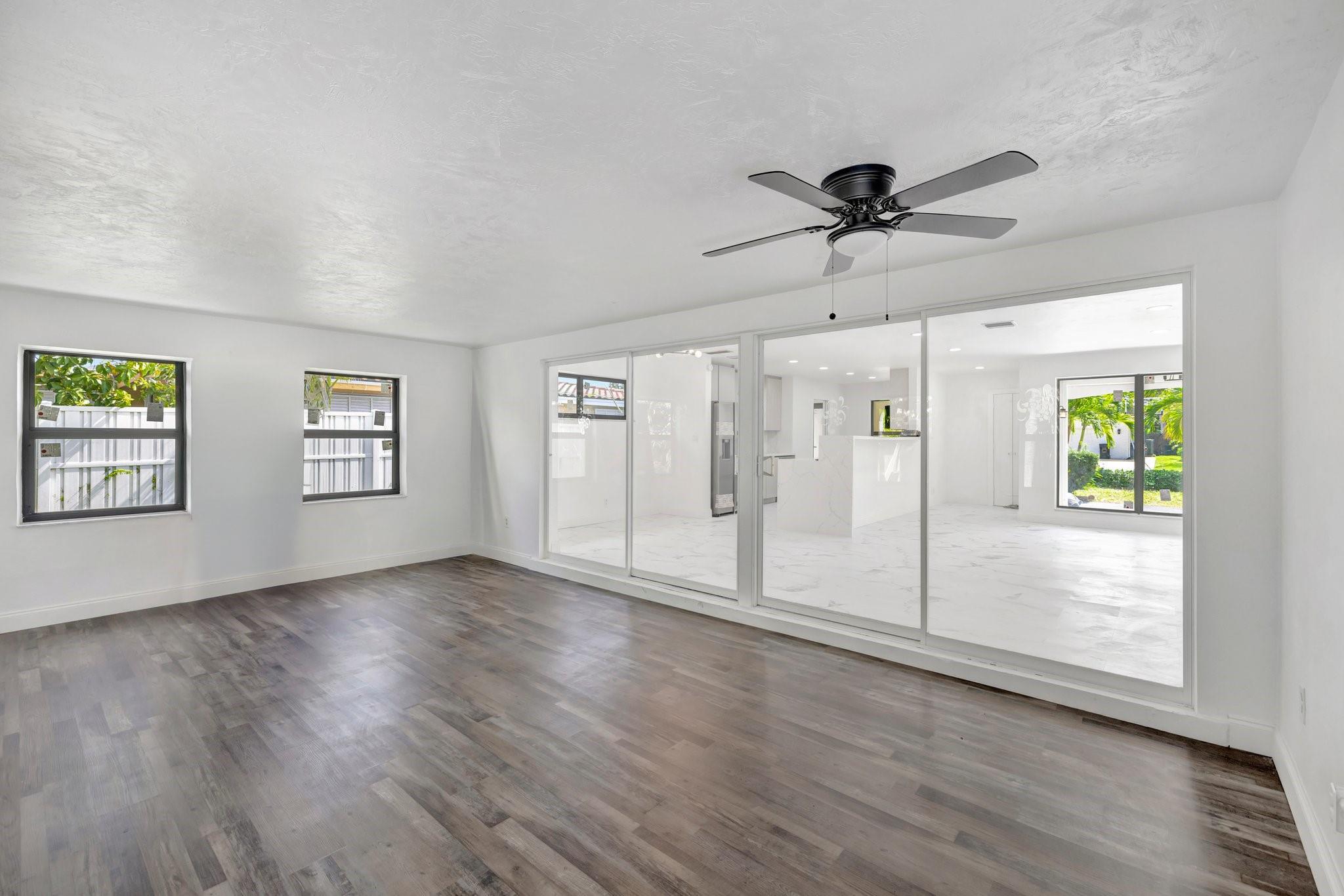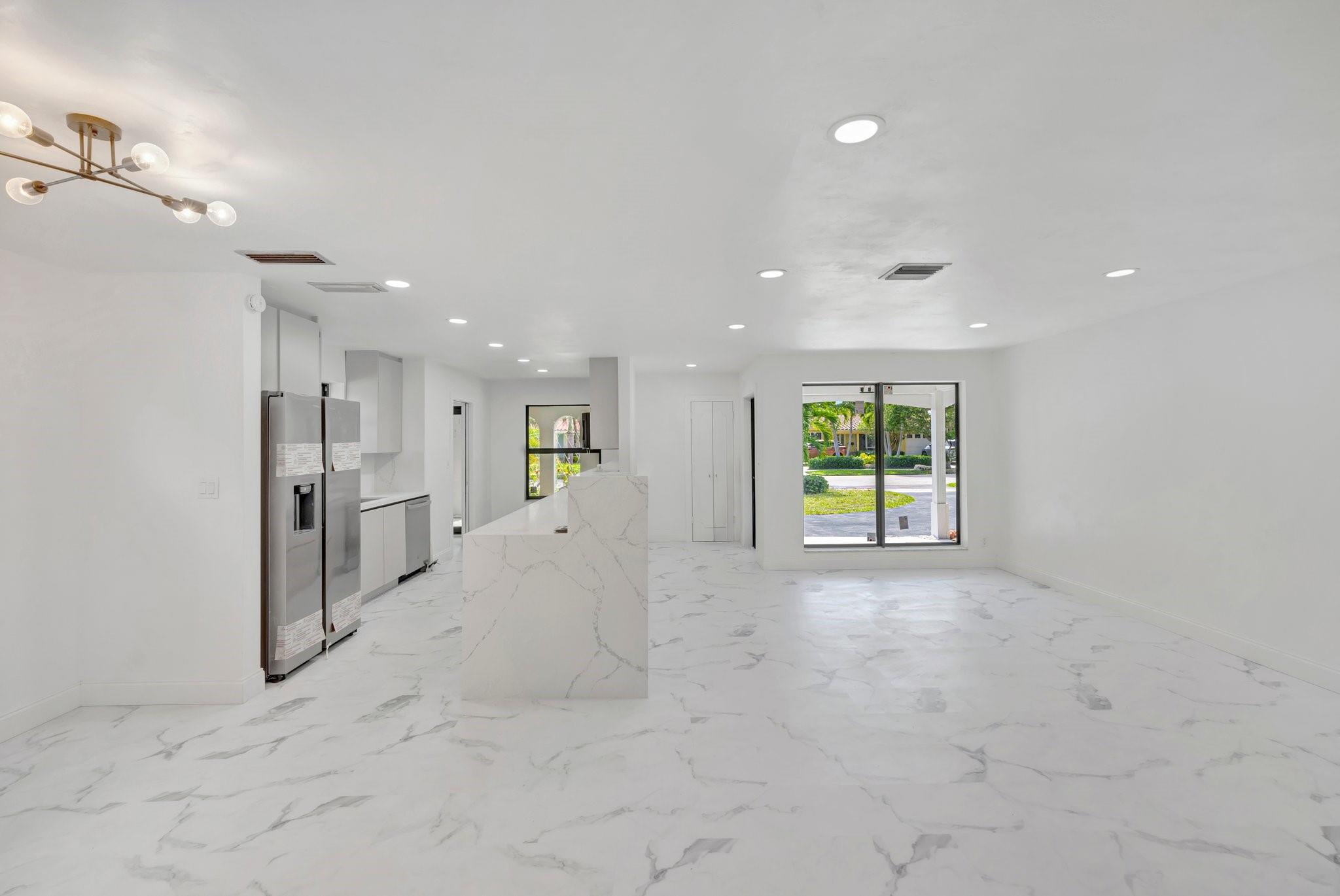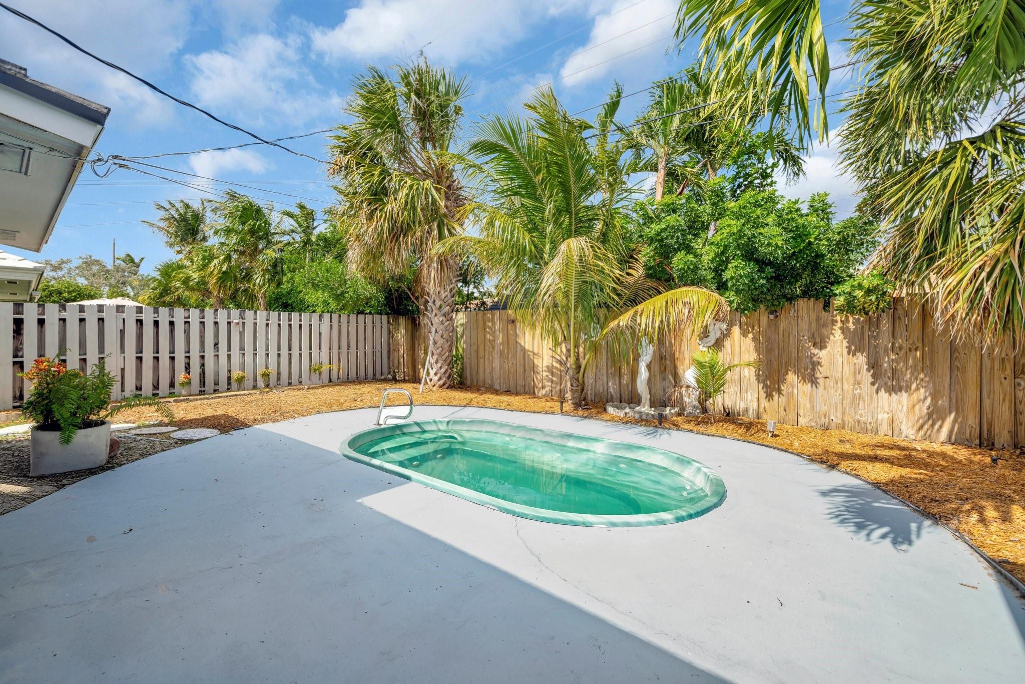 Beautifully remodeled home features new kitchen with Calacatta quartz counter tops, breakfast bar, new appliances and cabinets. New bathrooms with glass enclosed showers. New roof. New impact windows. Waterproof flooring in enclosed sunroom. Bedrooms with ceiling fans. New baseboards and light fixtures. Recessed lighting throughout. Covered front porch. Fenced back yard with concrete patio and wading pool. Storage Shed. Mango tree. Sprinkler system. Lots more! Don't miss it!