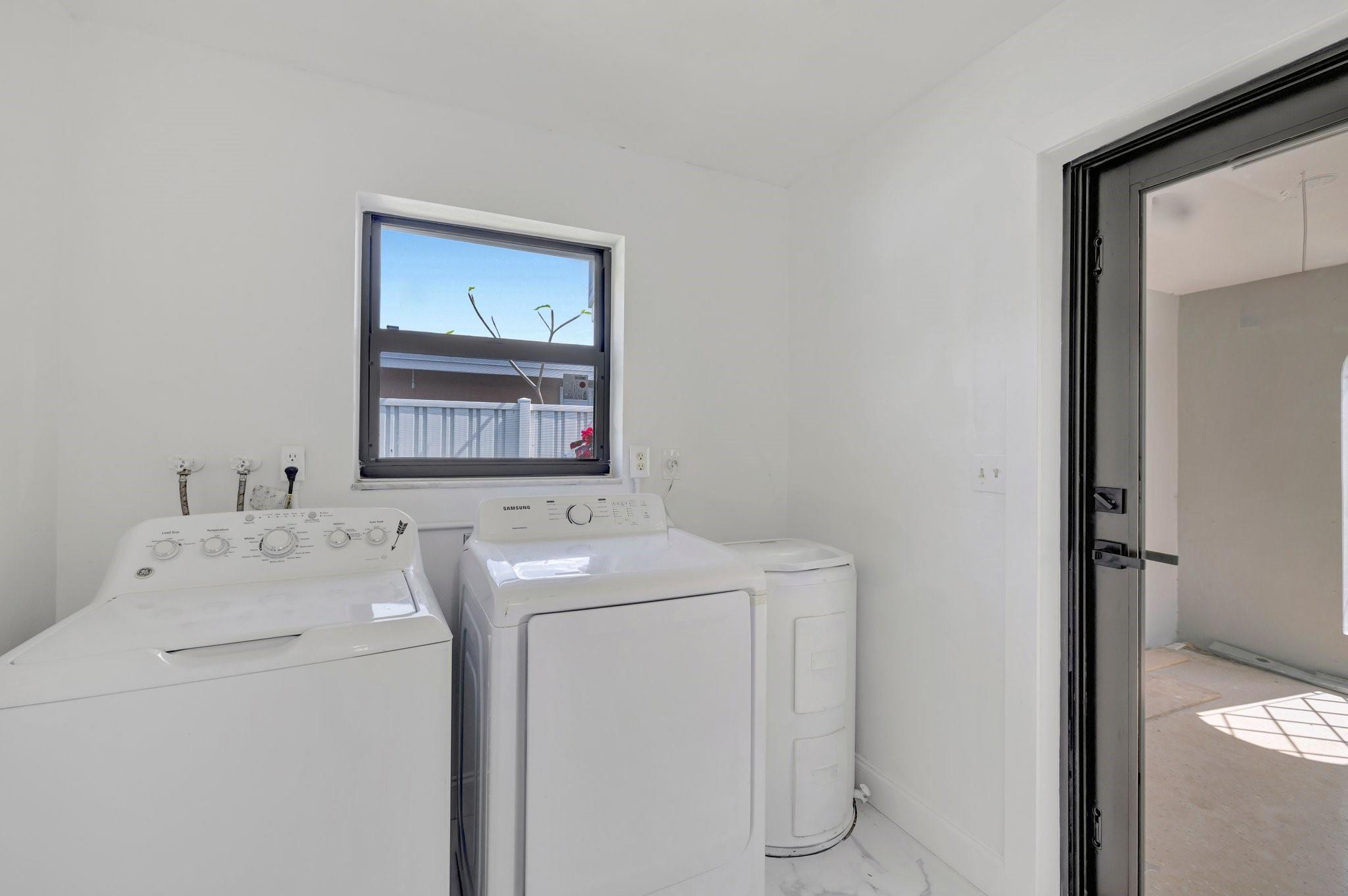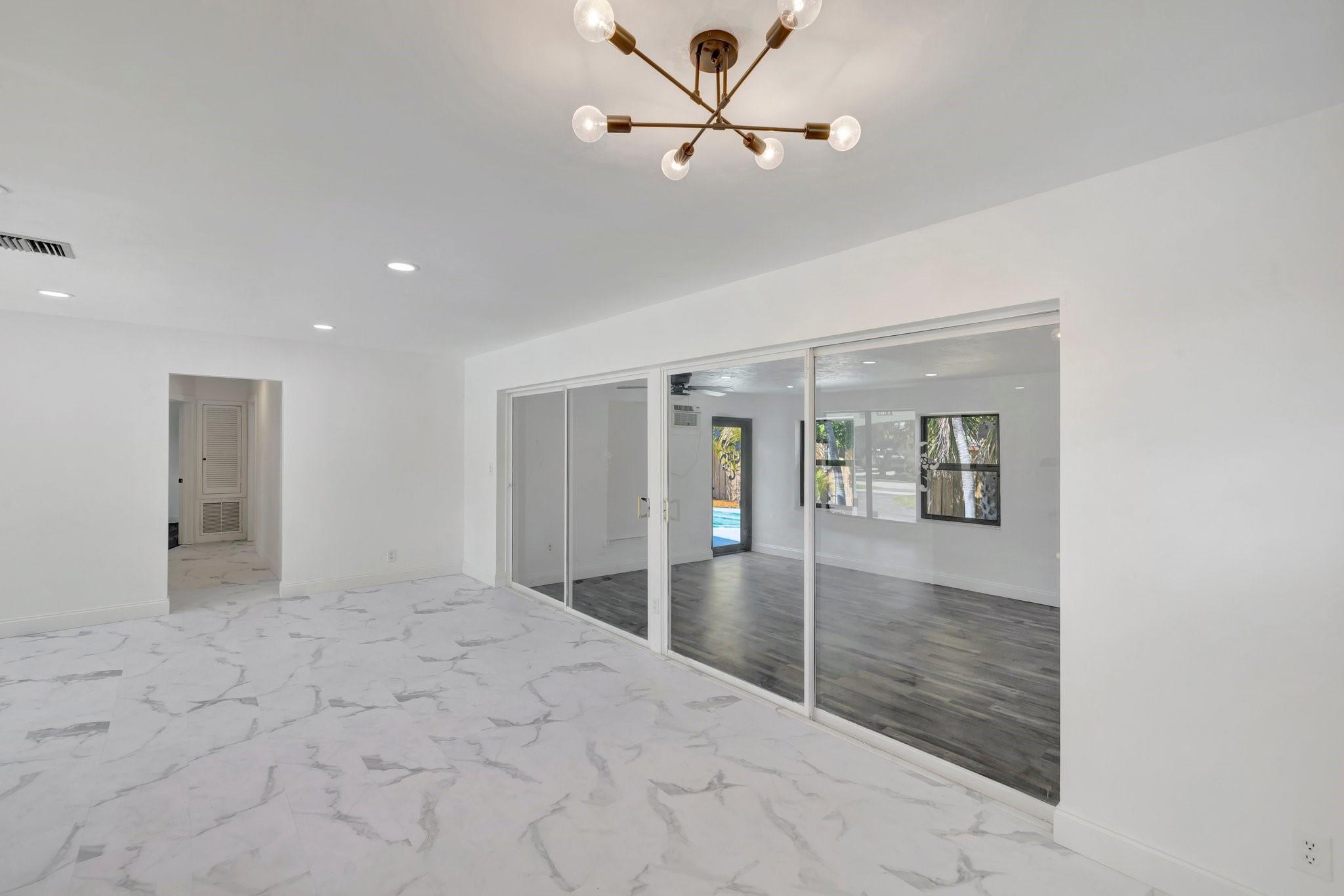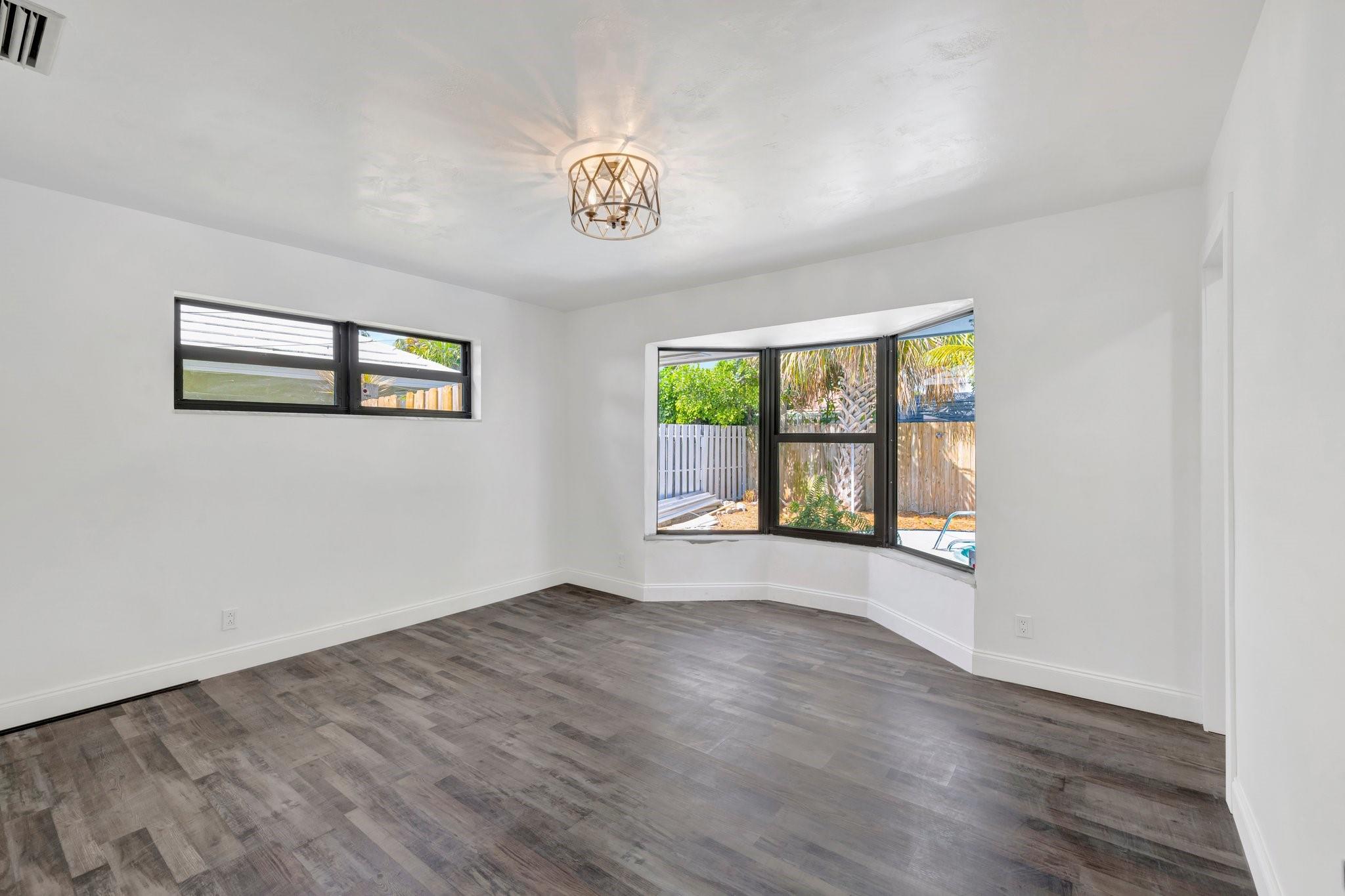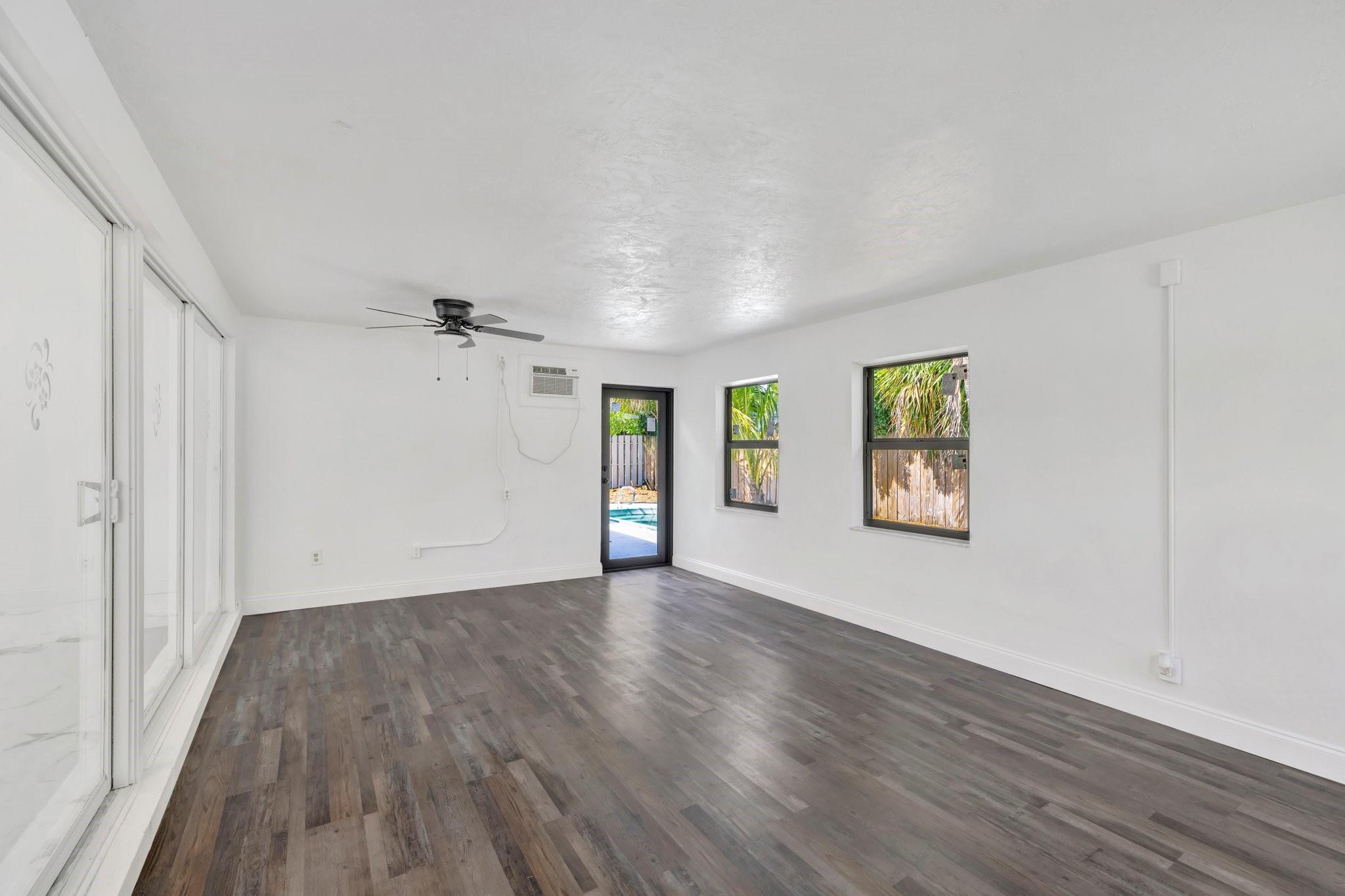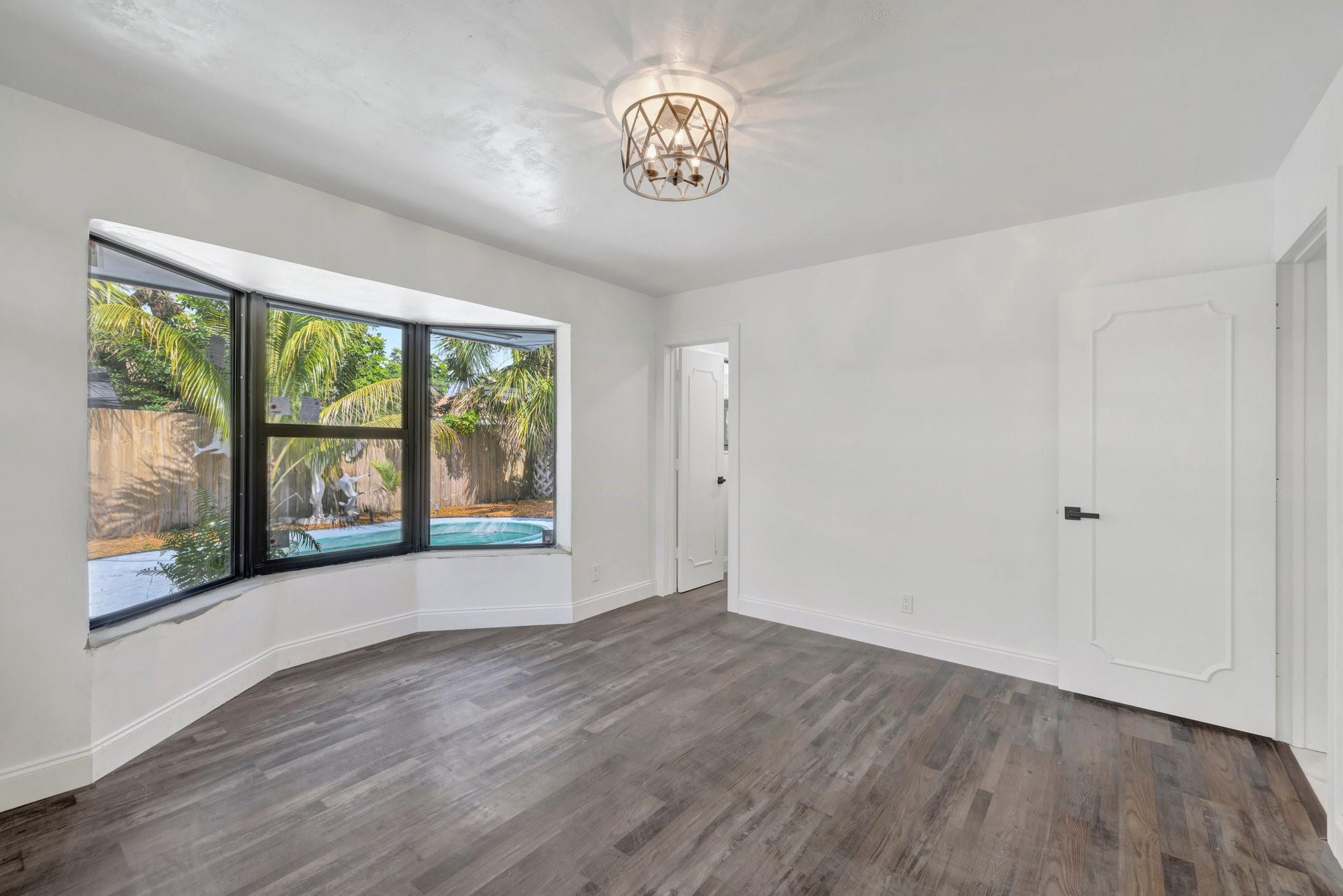 Beautifully remodeled home features new kitchen with Calacatta quartz counter tops, breakfast bar, new appliances and cabinets. New bathrooms with glass enclosed showers. New roof. New impact windows. Waterproof flooring in enclosed sunroom. Bedrooms with ceiling fans. New baseboards and light fixtures. Recessed lighting throughout. Covered front porch. Fenced back yard with concrete patio and wading pool. Storage Shed. Mango tree. Sprinkler system. Lots more! Don't miss it!