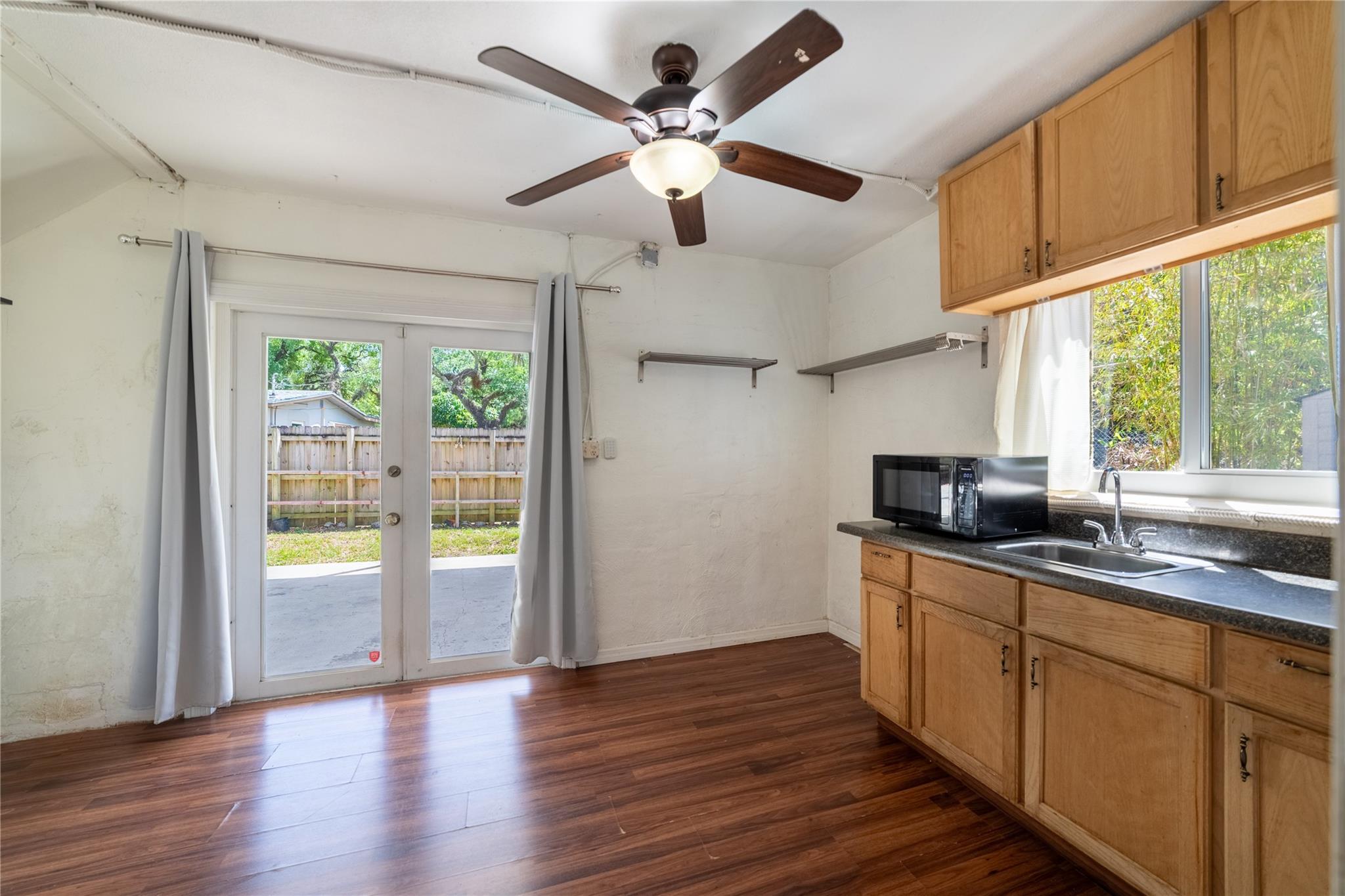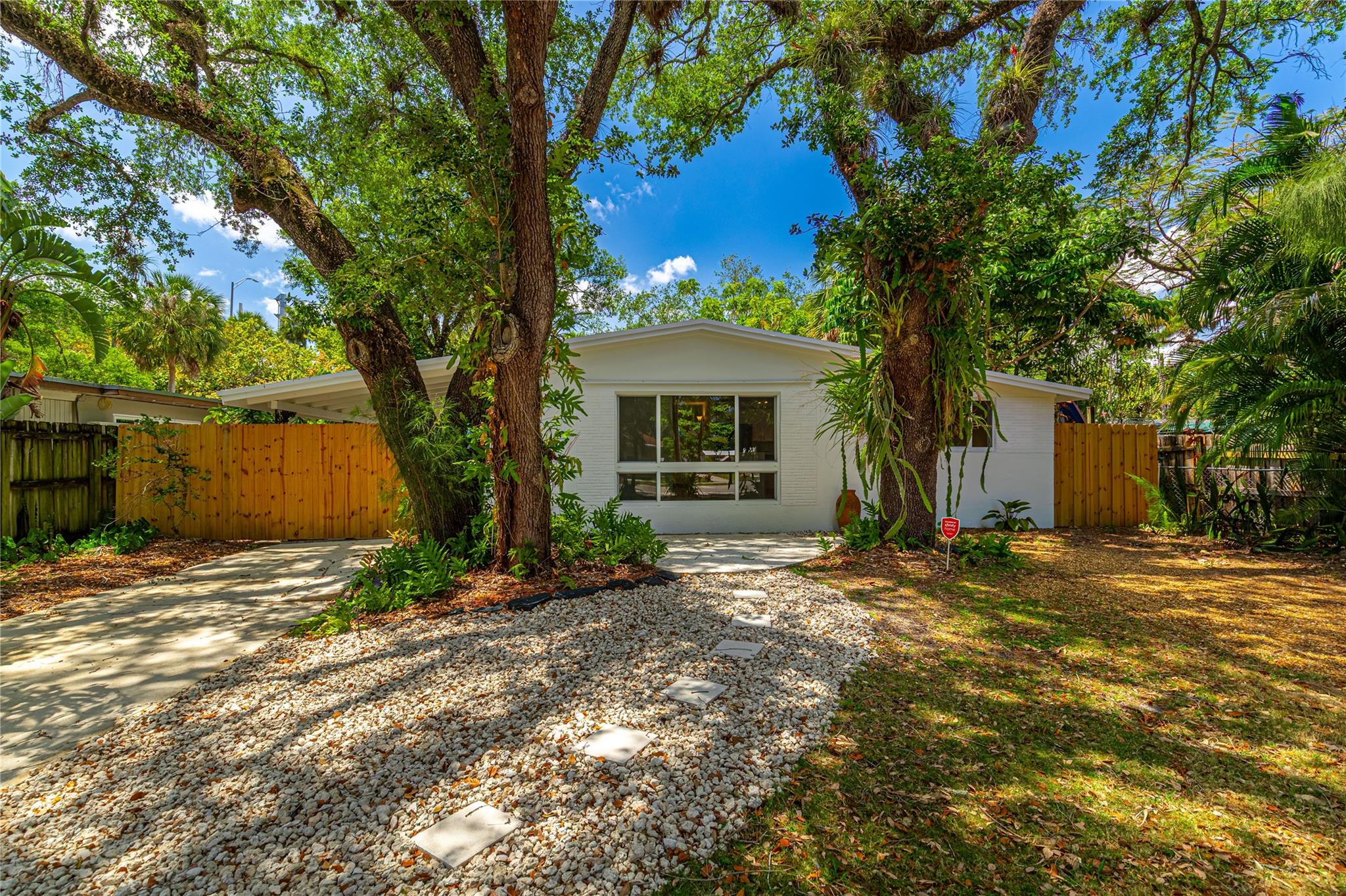 Rare opportunity to have a single-family home with a detached 2 story guest house in sought after Shady Banks Main house offers 3 bedrooms, 1 bath. Detached guest house has an efficiency downstairs- great for home office- gym or rental income, upstairs has a sunny 1 bedroom/studio- another income opportunity! Mature trees, fully fenced, impact windows. Ample parking for multiple cars, boat & RV. Covered patio, 2 separate electric meters, separate laundry for the back building. Such a great opportunity for crew quarters, office, live in assistance, rental income, endless possibilities. Ideally located minutes from downtown, transportation, the port, airport, marinas/boatyards. 2 parks with Tennis, Volleyball,exercise equipment, nature preserve w/ boardwalks picnic area along the new river.