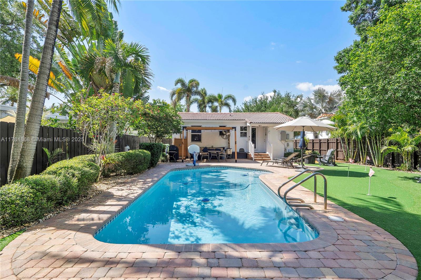 Charming, move-in ready home in sought-after Tarpon River, minutes from Las Olas, downtown Fort Lauderdale, beaches, and FLL Airport. Over $130K in upgrades, including impact windows/doors, resurfaced pool with new pump and filter, synthetic turf with 3-hole putting green, new landscaping, and pergola. Interior features refinished wood floors, LED recessed lighting, modern fans, a tankless water heater, plantation shutters, and fresh interior/exterior paint. Updates to the kitchen include a touchless faucet & new appliances. Refinished driveway, upgraded electrical panel. Walk or bike to parks, restaurants, and everything the vibrant neighborhood has to offer! Currently a profitable short-term rental ideal for investors or as a stylish personal residence in a prime location.