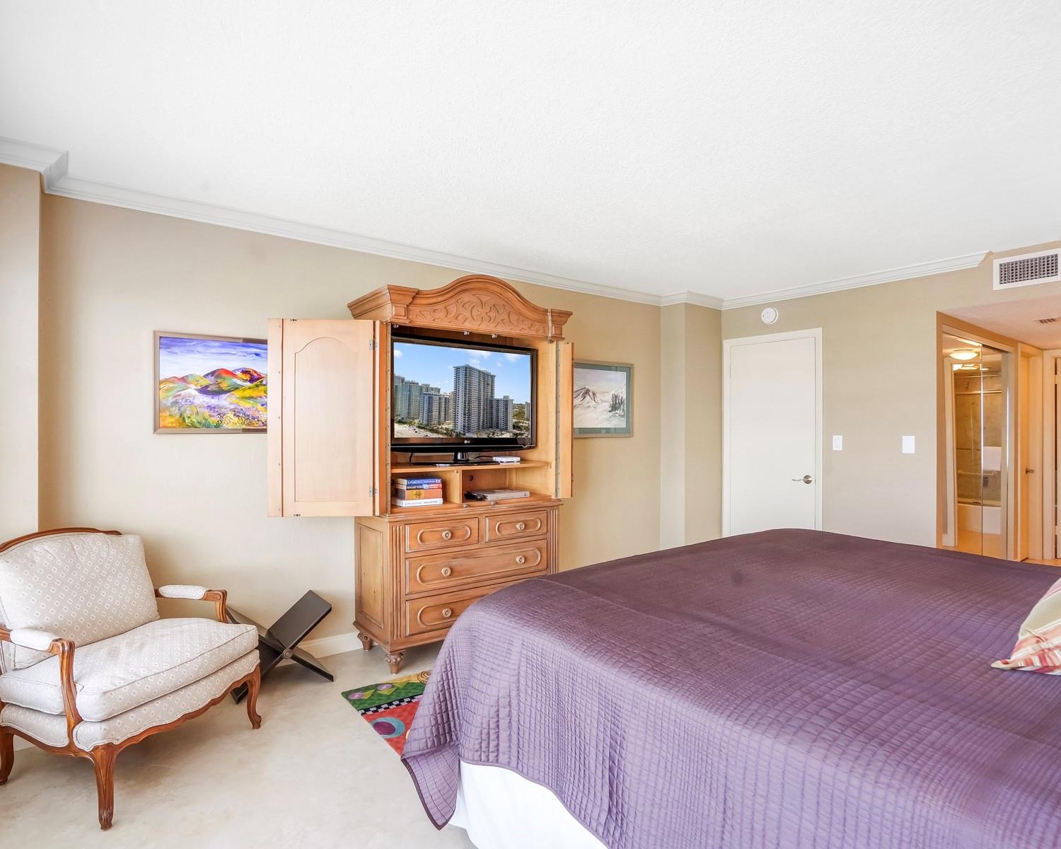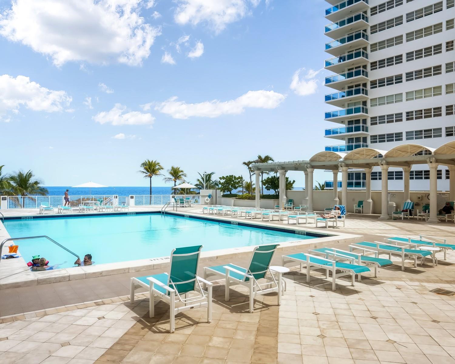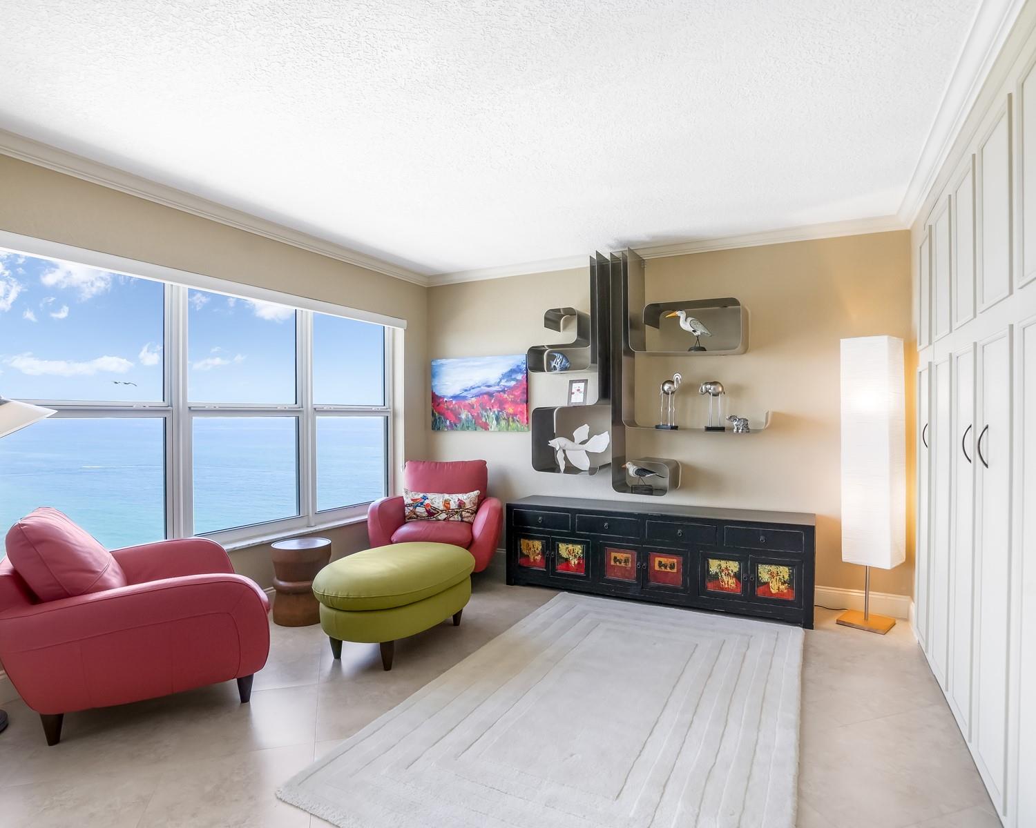 Don't miss this beautifully renovated 2-bedroom, 2-bathroom unit that offers stunning ocean views, tile floors, an open kitchen with SS appliances and granite countertops, a laundry room/storage, and a master bedroom with ample closet space, the second bedroom also provides beautiful views, has a build in murphy bed and privacy with a temporary wall, an expansive balcony with ocean and Intracoastal views for relaxing and enjoying the scenery, an underground parking space and storage. The building amenities, including a large swimming pool, game room, two gyms, library, community room with bars, and private beach access, add to the luxurious lifestyle. And the location within walking distance of grocery stores, restaurants, and other conveniences makes it even more attractive.