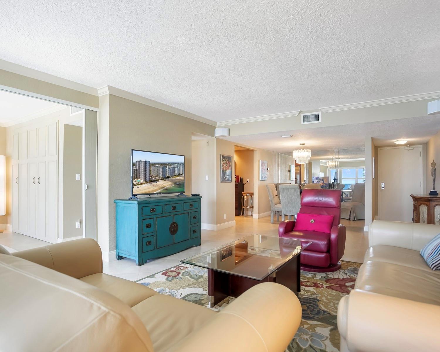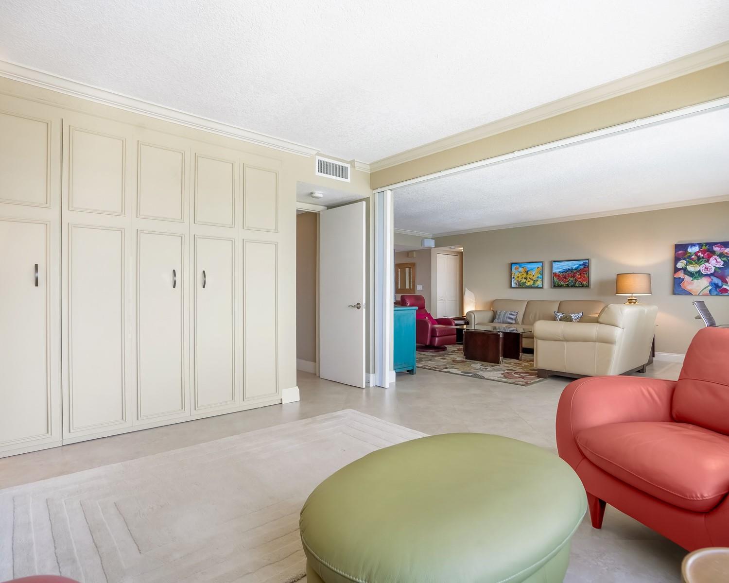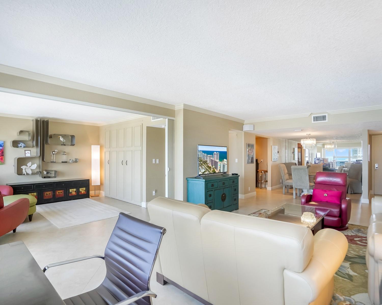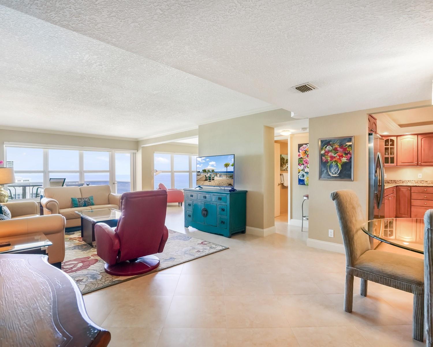 Don't miss this beautifully renovated 2-bedroom, 2-bathroom unit that offers stunning ocean views, tile floors, an open kitchen with SS appliances and granite countertops, a laundry room/storage, and a master bedroom with ample closet space, the second bedroom also provides beautiful views, has a build in murphy bed and privacy with a temporary wall, an expansive balcony with ocean and Intracoastal views for relaxing and enjoying the scenery, an underground parking space and storage. The building amenities, including a large swimming pool, game room, two gyms, library, community room with bars, and private beach access, add to the luxurious lifestyle. And the location within walking distance of grocery stores, restaurants, and other conveniences makes it even more attractive.