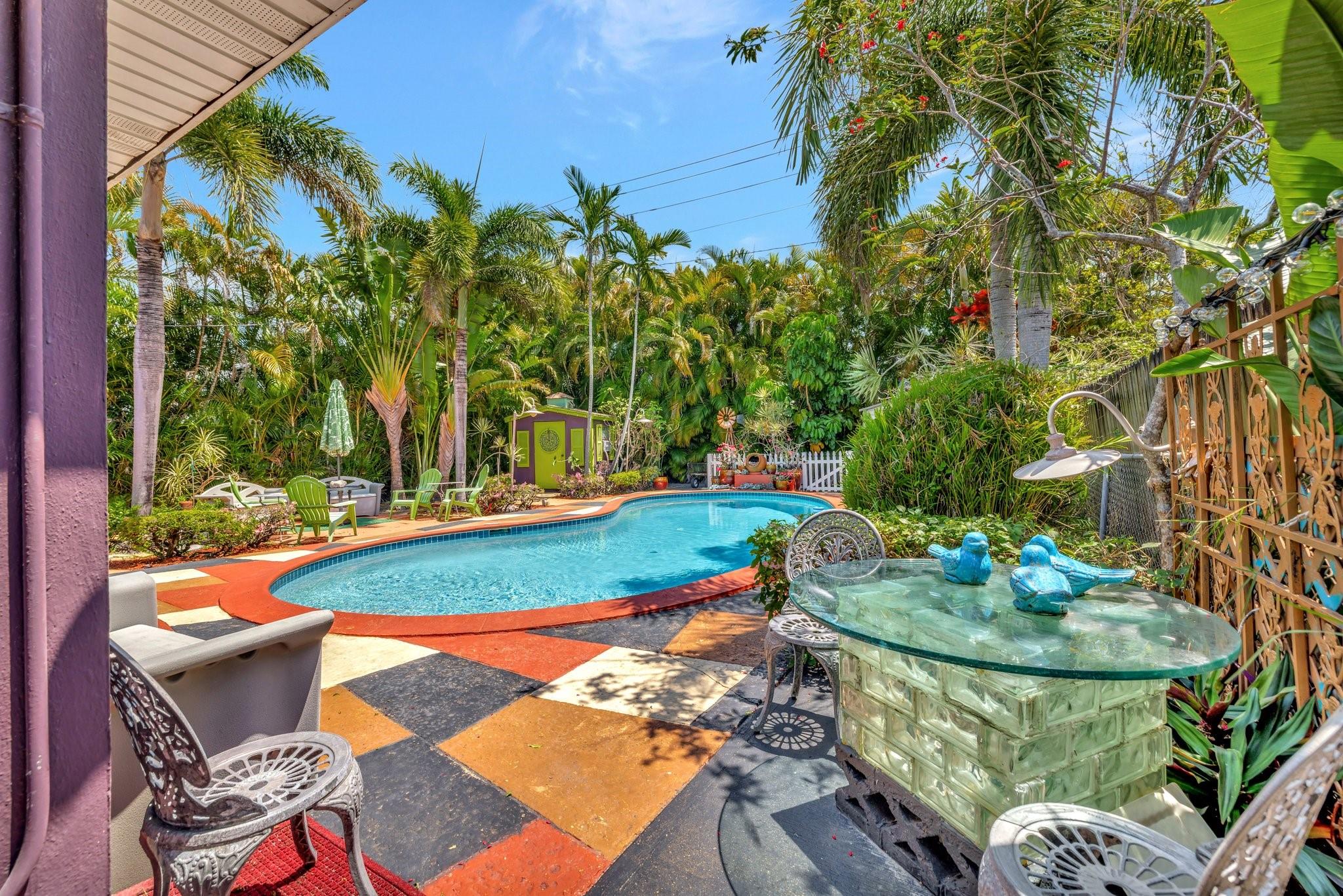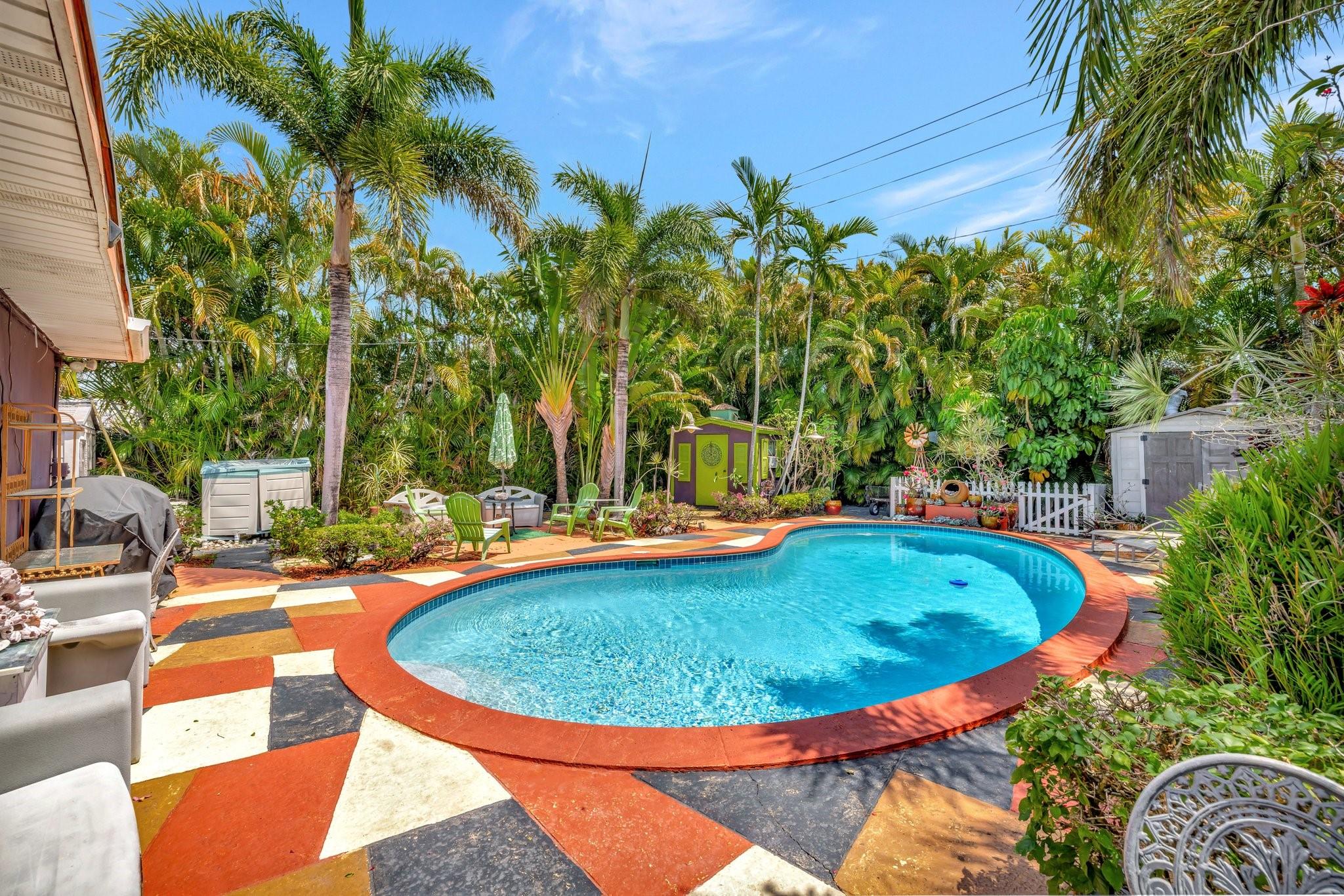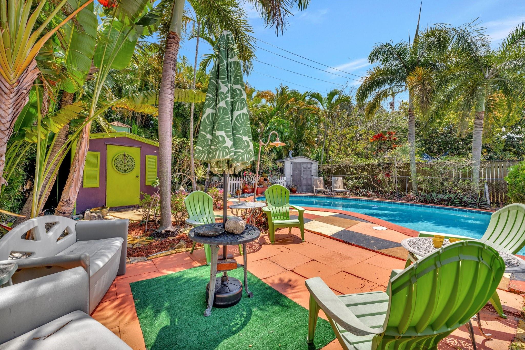 PRICED BELOW APPRAISED VALUE (3/5/2025) OF $700,000. Fantastic opportunity in sought-after Poinsettia Heights! This duplex is perfect for living in one unit and renting the other, with residential multifamily, low-rise, medium-density zoning. Walk to Wilton Manors, bike to the beach, and enjoy nearby shopping and dining. Pool is approx 10 feet deep city won’t allow new pools to be that deep these days. Updates include full PVC plumbing to the street, on-demand electric water heater, (2023) solar system, new rear flat roof, attic insulation (2021). Saltwater pool with Diamond Brite finish (2015). Impact windows/doors, closed-in back porch, front addition, and barrel tile roof (2007). 4 exterior storage sheds 1 with electric & AC Ready for your personal touches!