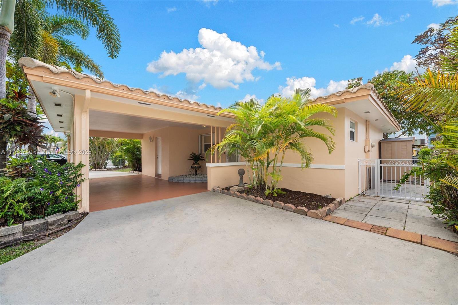 Charming one-story home on a beautiful tree-lined street. This home offers 2 spacious bedrooms, 2 bathrooms, a stylish kitchen with Sub-Zero & Miele appliances and wine cooler, living, dining area and Florida room. South-facing backyard provides year-round sunlight--perfect for relaxing or entertaining and the property includes a carport with a large circular driveway. This home requires some renovations, but the home has a new AC in 2023, instant hot water heater, some impact windows and doors and the rest accordion shutters. Ideally located minutes from Aventura, Downtown Hollywood, Fort Lauderdale, beaches, fine dining, shopping, and more. A wonderful place to call home in a prime central location close to it all.