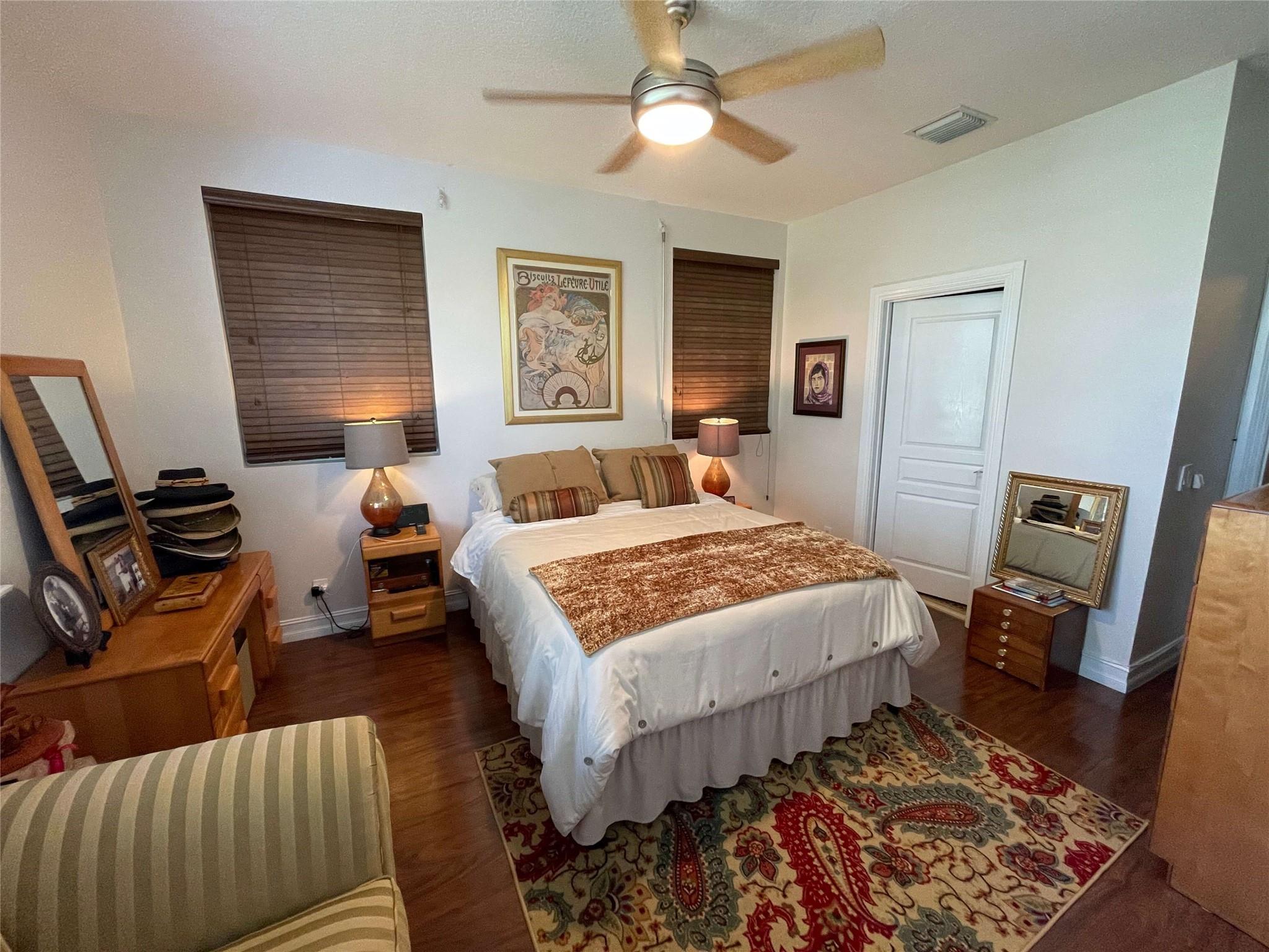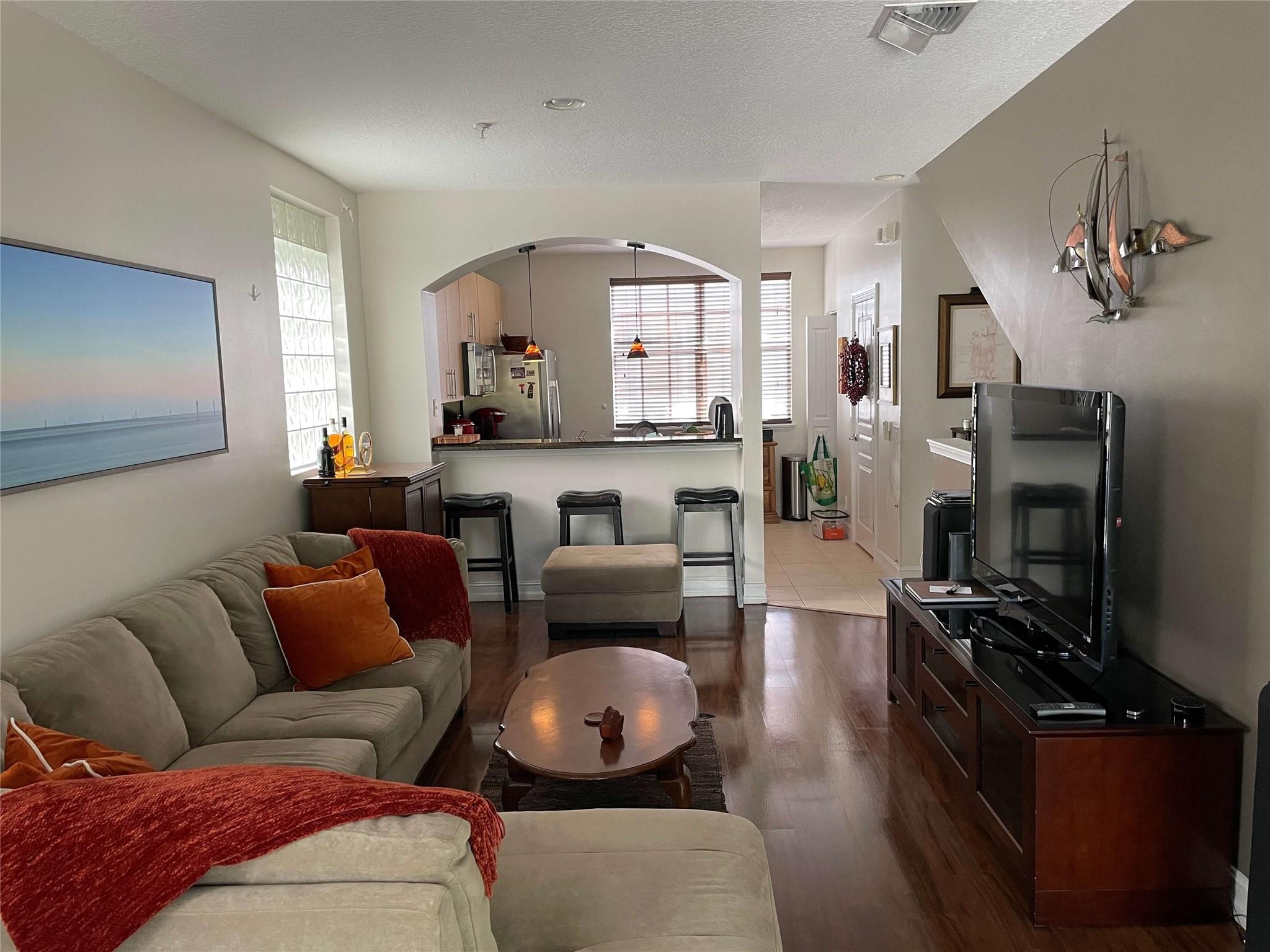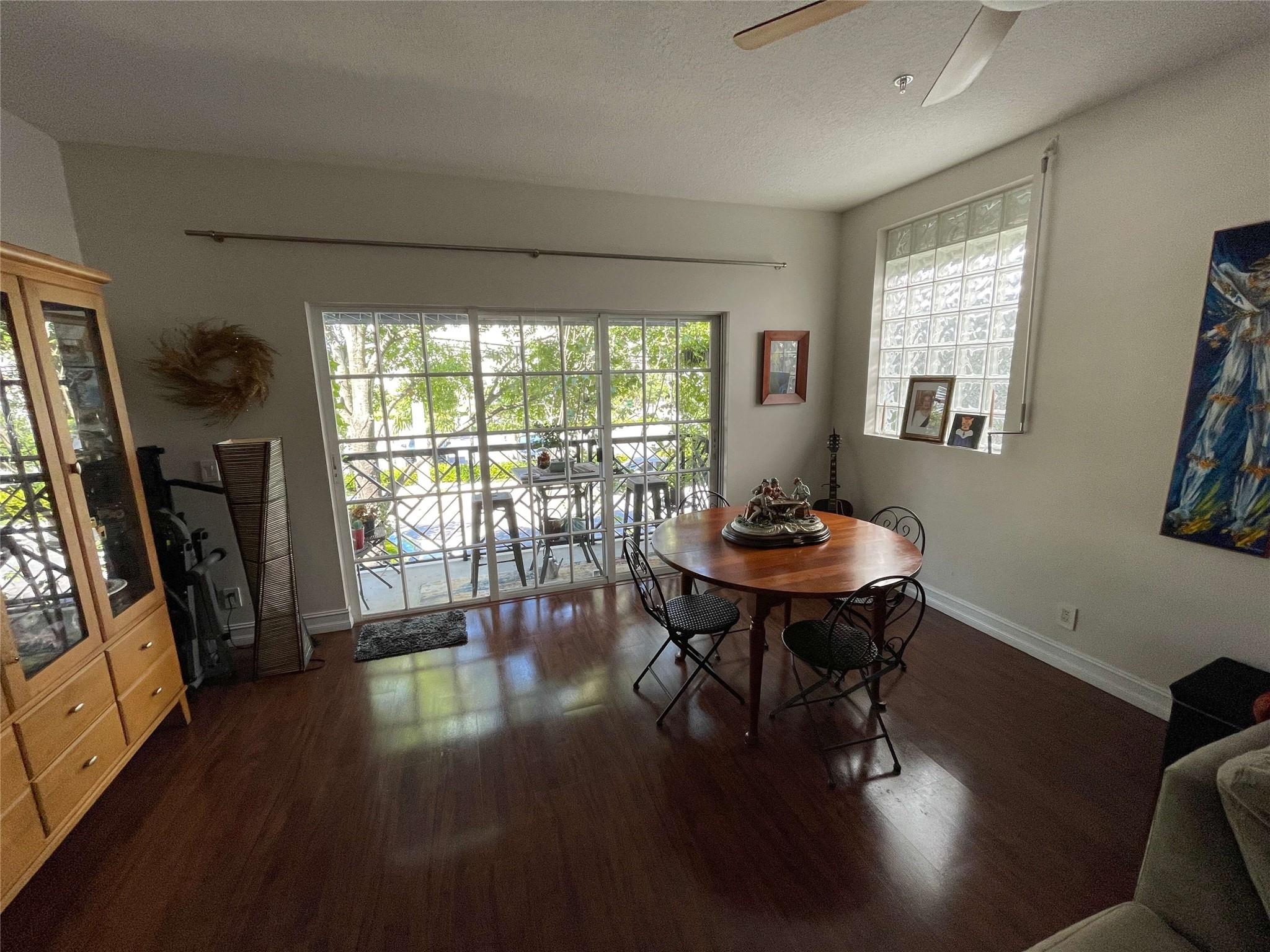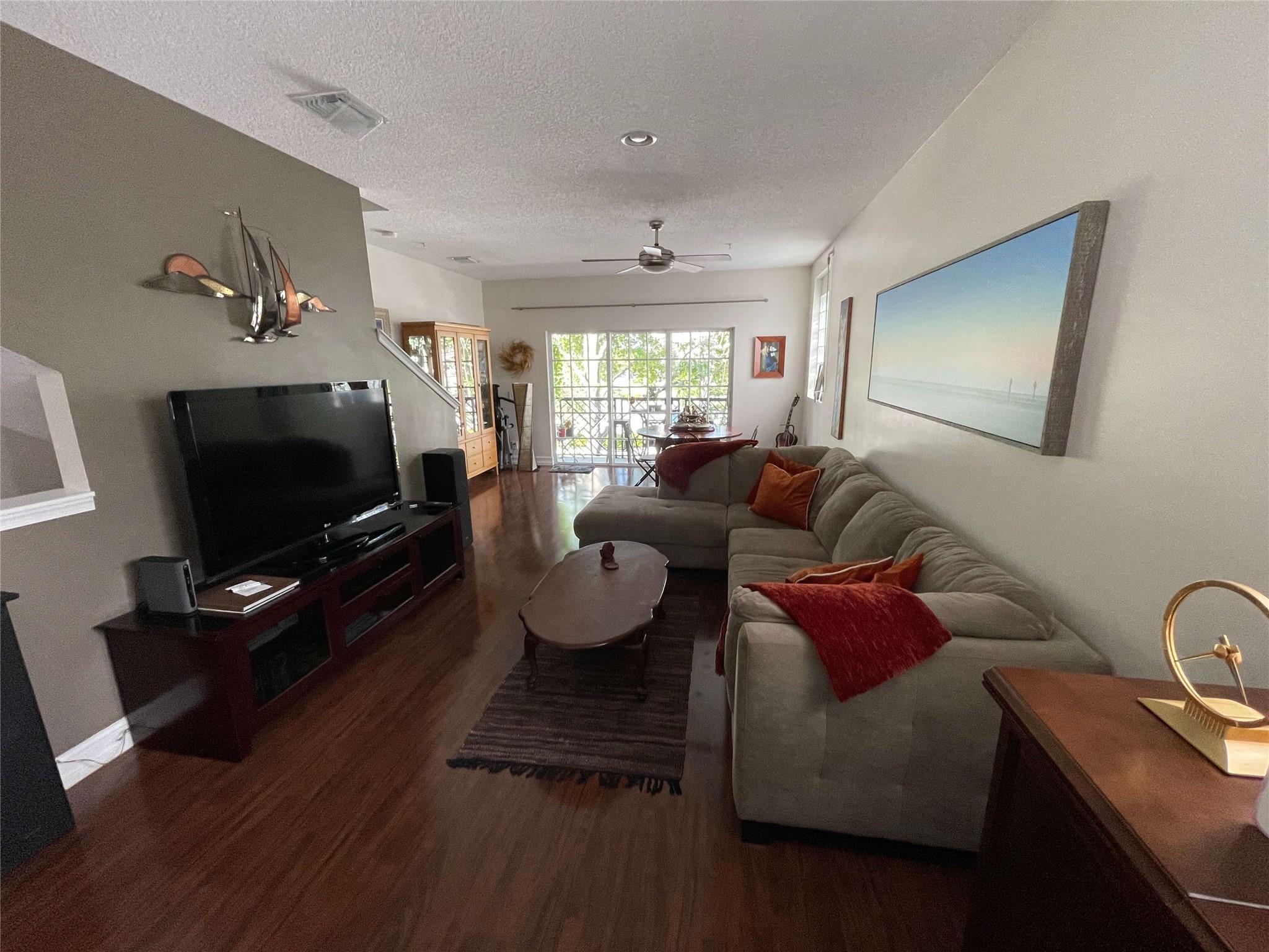 Discover this updated tri-level corner townhouse in the coveted East Village—a gated, boutique community in the heart of downtown. Recently refreshed with a stunning exterior makeover featuring new paint, landscaping, lighting, plus a paved pool and BBQ area, this home exudes modern style at every turn. Ground Level: Enter a spacious den with elegant tile flooring for a welcoming entry or versatile living space. Second Level: Enjoy an open-plan living area where the kitchen dazzles with granite counters, wood cabinetry, and stainless steel appliances. Third Level: Retreat to private bedrooms with ample closet space; the master suite offers a walk-in closet and frameless shower, while the second bedroom features its own private bath and built-in closet.