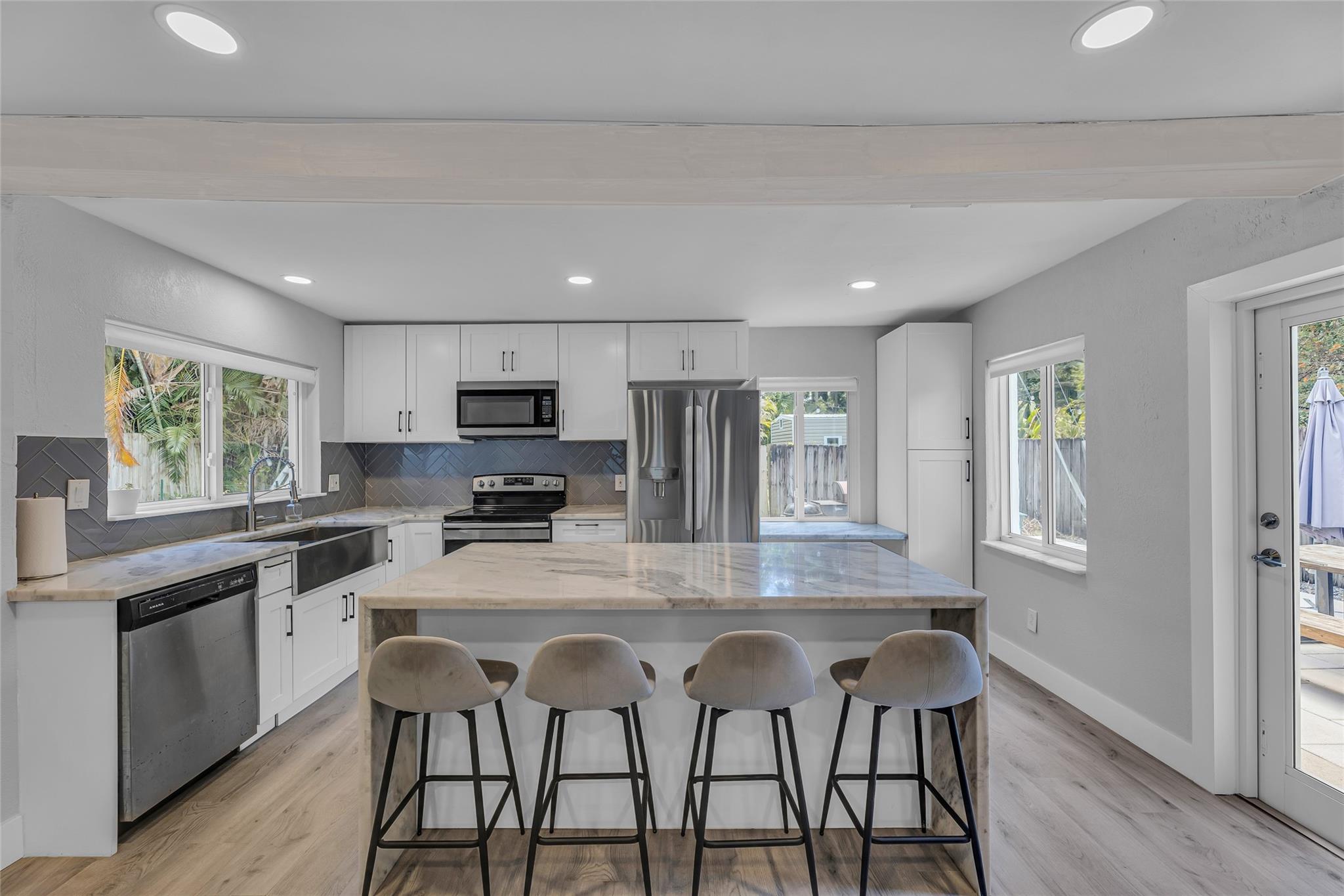 SELLER MOTIVATED! RELOCATING & NEEDS TO SELL. NICELY RENOVATED AND MOVE IN READY. Located near some of the largest yachting Marina's in the Country, 15 minutes from the Ft Lauderdale Beaches, trendy Riverfront and Las Olas Blvd for dining, shopping & nightlife. The open concept kitchen features a sleek quartz Island & countertops perfect for casual dining & entertaining, set against the modern tile flooring that flows seamlessly throughout. Other highlights are a Newer Roof (2021) Impact Windows and Doors, EV Charger, WELL Water Sprinkler System, THIS WILL GET YOU ALL INSURANCE CREDITS. Step outside to the fenced backyard ideal for gardening or relaxing, and the yard has plenty of room for a pool. THIS IS A GREAT PRICE FOR THIS NEIGHBORHOOD!!
