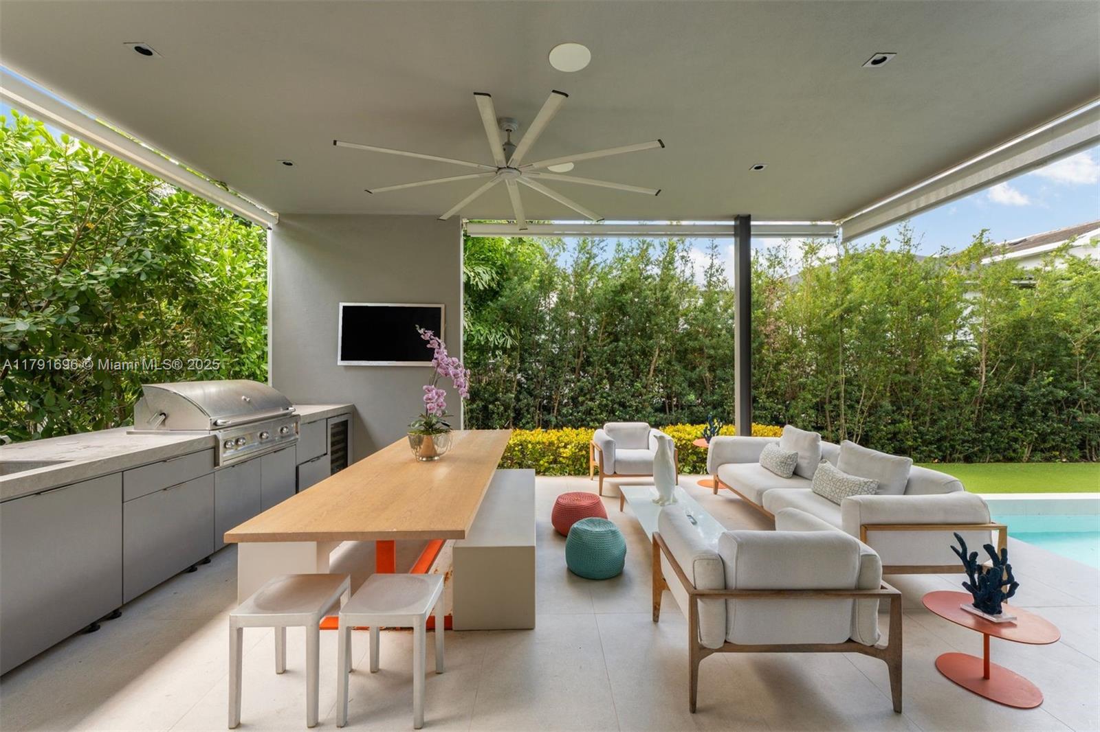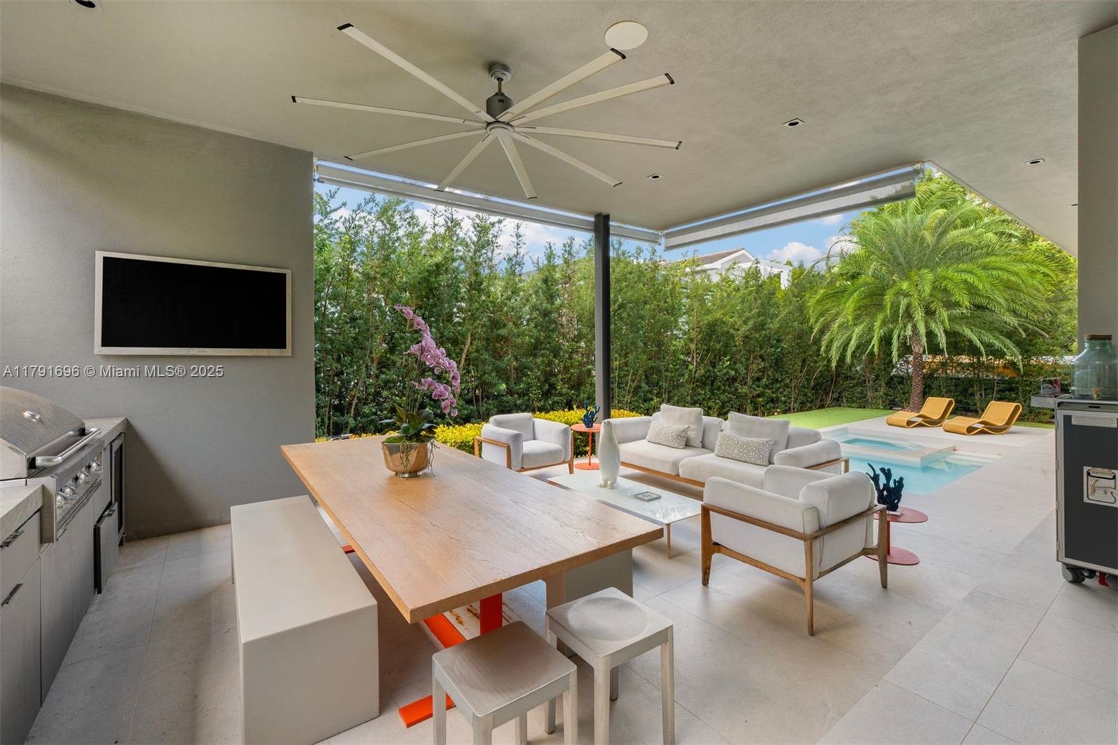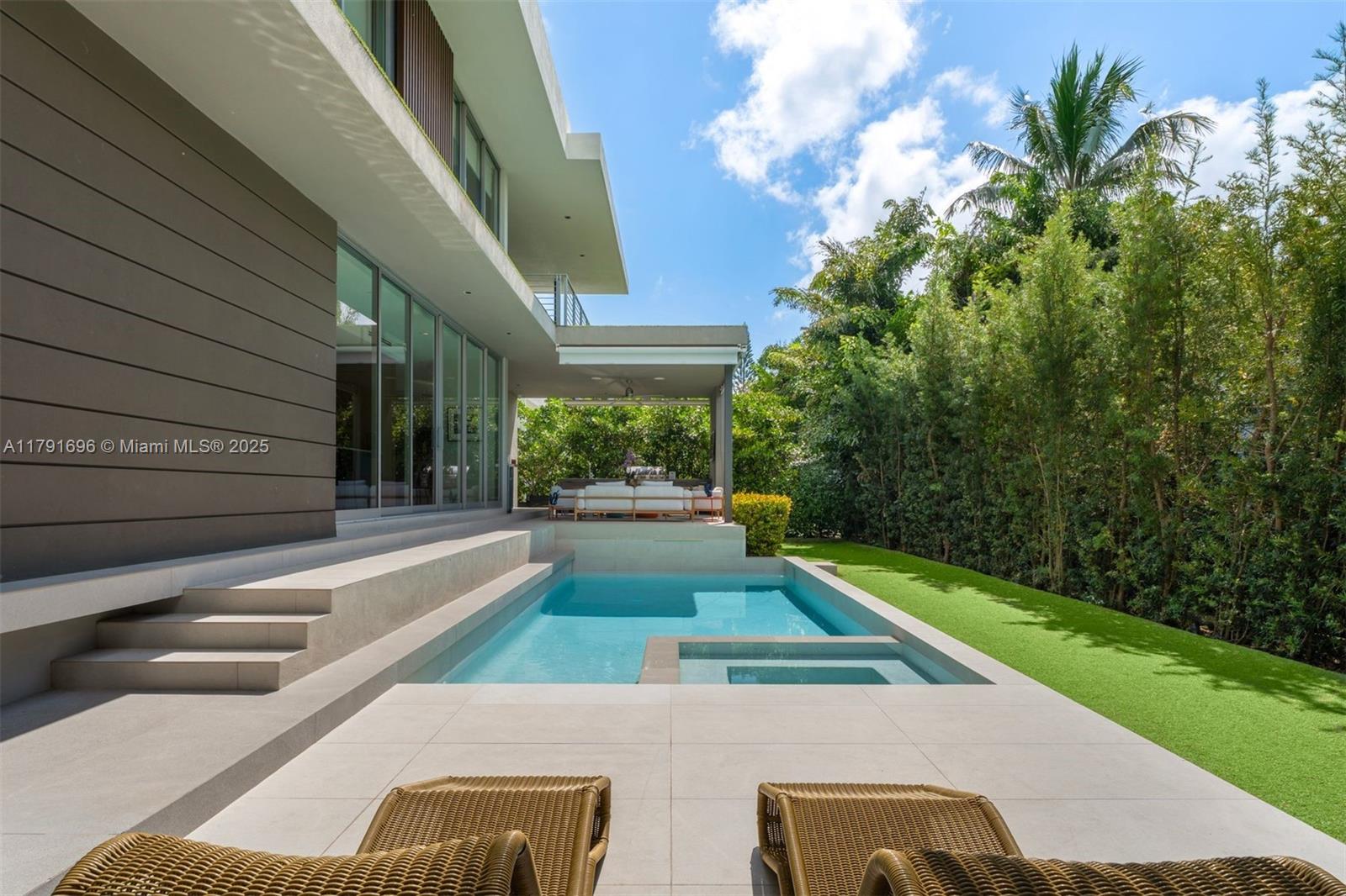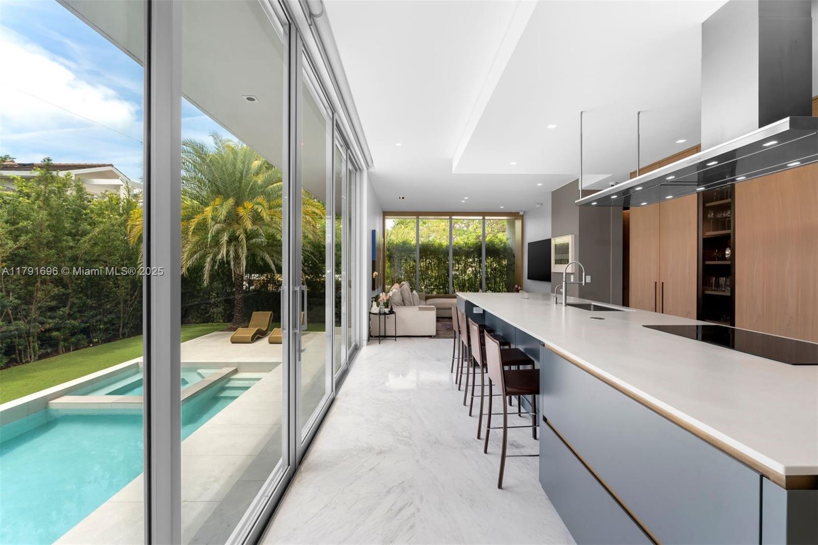 Built in 2020, this gorgeous residence is located on a quiet street on the exclusive paradise island of Key Biscayne. Designed with a sleek, modern, elegant and sophisticated open layout, this very comfortable home offers 6 spacious bedrooms and 5.5 beautiful bathrooms. Set on an 8,250 sq ft lot with 3,850 sq ft under A/C, it features soaring ceilings, exquisite high-end finishes throughout, and walls of glass that flood the interiors with natural light, creating a seamless blend of indoor and outdoor living. The expansive terrace, resort-style pool, and fully equipped summer kitchen offer the perfect backdrop for unforgettable gatherings surrounded by lush landscaping. A convenient carport and generous driveway parking make this home simply perfect.