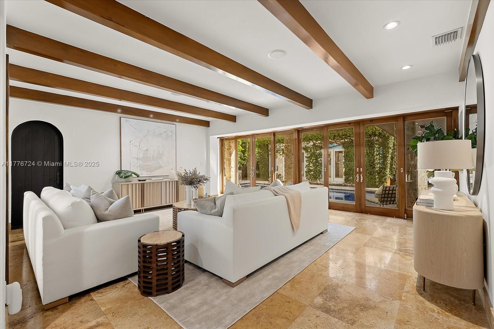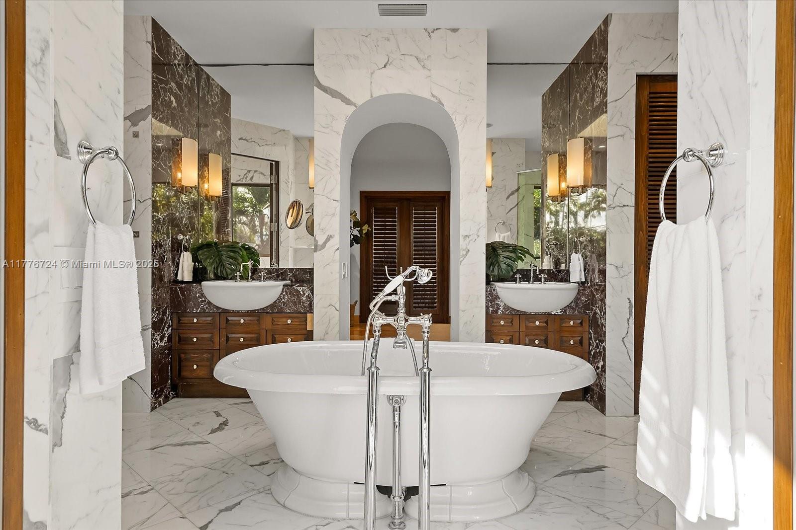 Your tropical private retreat on exclusive Mashta Island. This 6 bed / 5 bath, 3,245 SF Mediterranean villa sits on a spacious 10,000 SF lot with lush landscaping, a resort-style pool, and a private cabana guest suite. Interiors with soaring 10-foot ceilings flow seamlessly to the outdoors, perfect for entertaining and relaxed island living. Intentionally designed with two primary suites (first floor and second floor) enhancing comfort and privacy. The chef’s kitchen features a gas stove, cooking island, and SubZero refrigerator. Enjoy private balconies, a circular driveway, an attached 2-car garage with laundry, covered porches, and generous storage. Key Biscayne offers the ultimate family lifestyle with world-class amenities and a true sense of community.