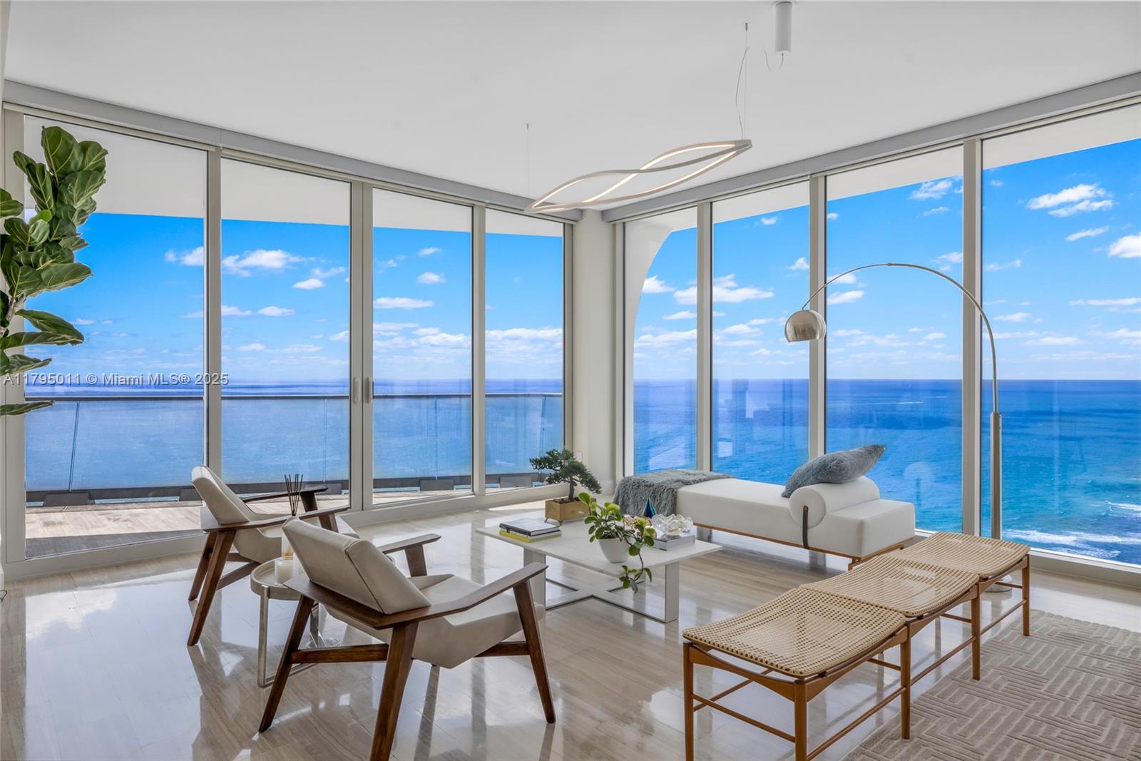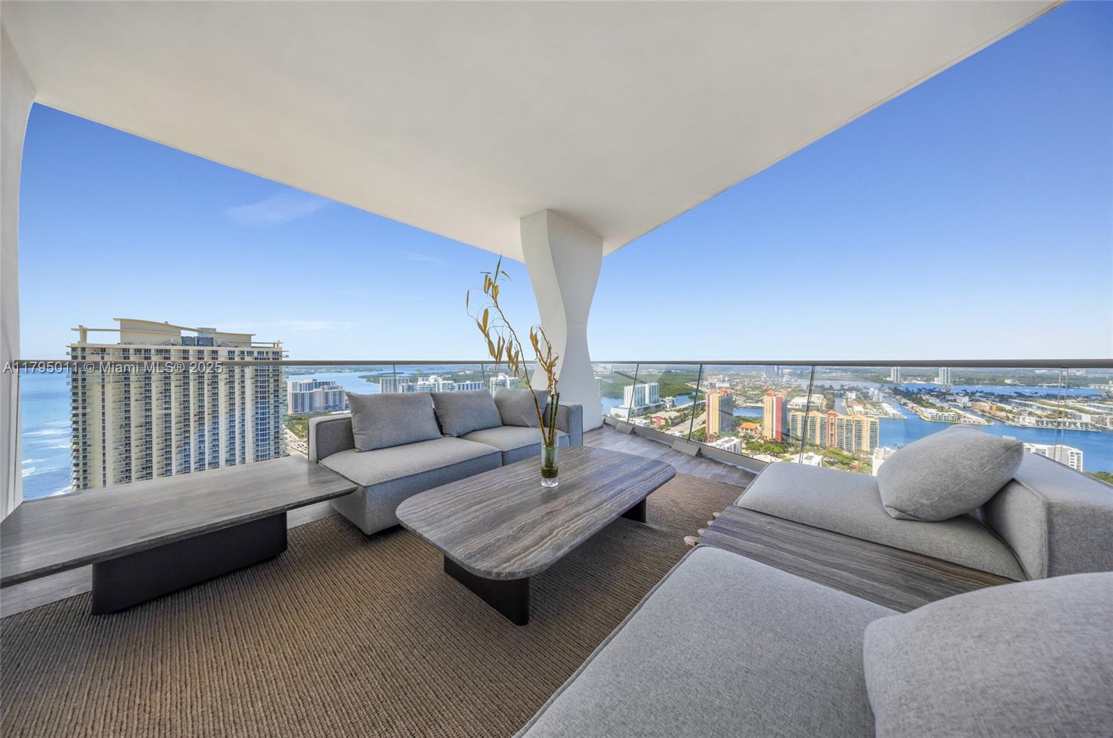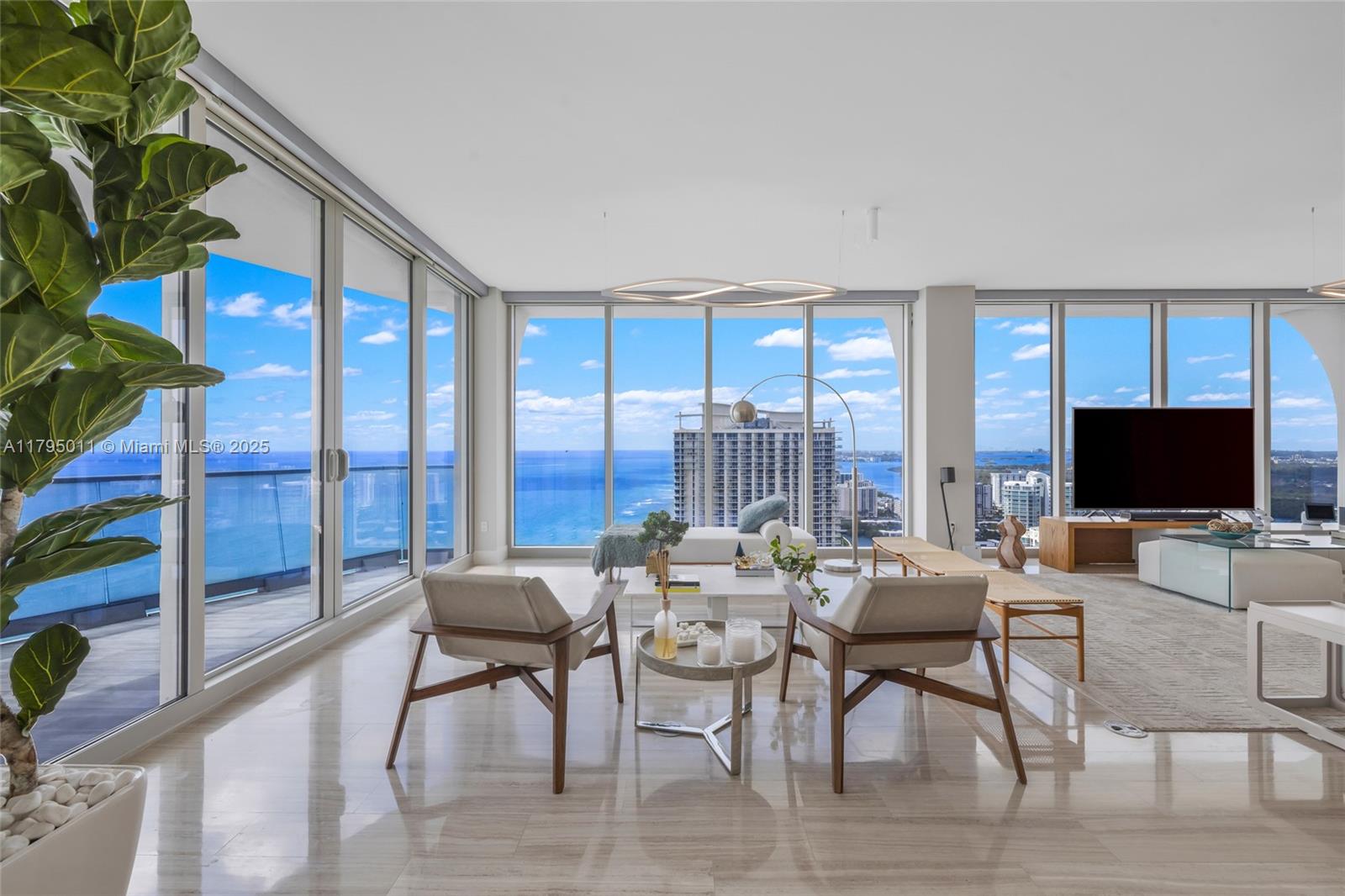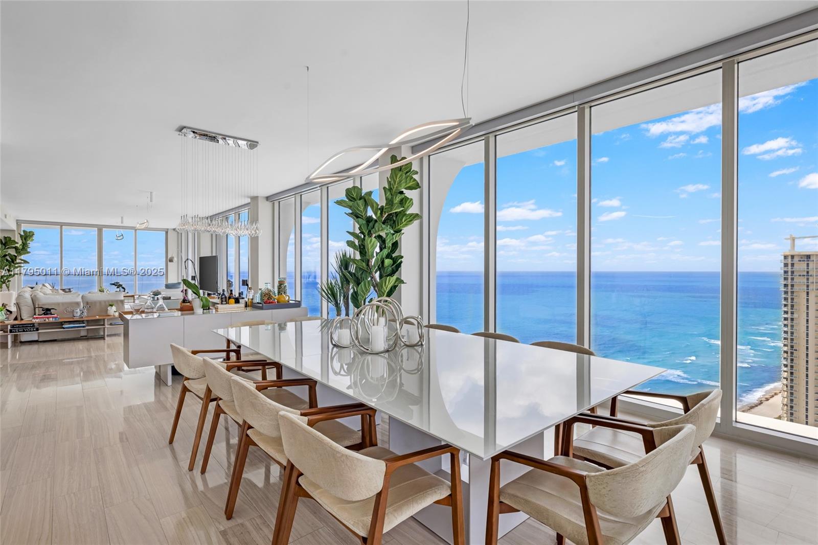 THE BEST FLOOR PLAN IN THE BUILDING WITH THE BEST PRICE. Just an incredible property with private elevator access, 5BEDS/6.5BATH+SERVICE QUARTERS+7 BALCONIES with an area of 4,674 SqFt interior + 1,491 SqFt of exterior (per developer floor plan/attached) This property have views on views, an amazing corner unit all glass windows from floor to ceiling with 180 degrees views facing the ocean and the city. The balconies are extensions of the living area integrating seamless, and not only that but the property also comes with 3 parking spaces and storage unit.