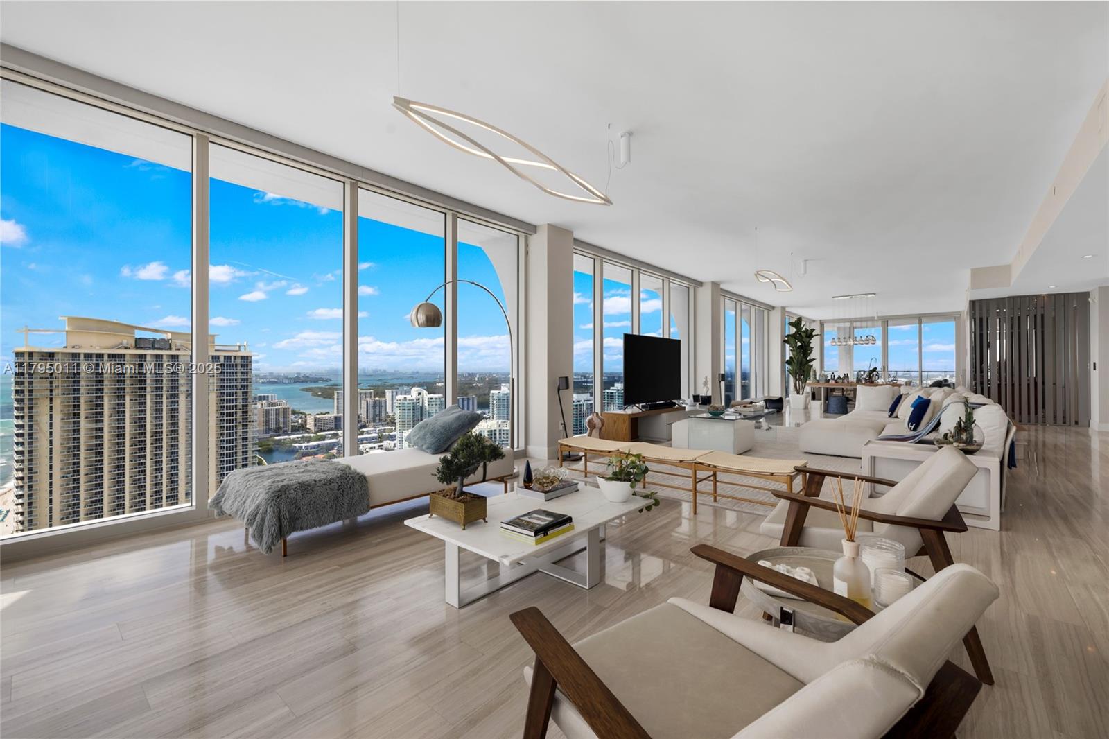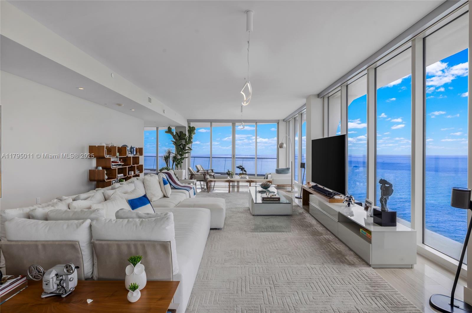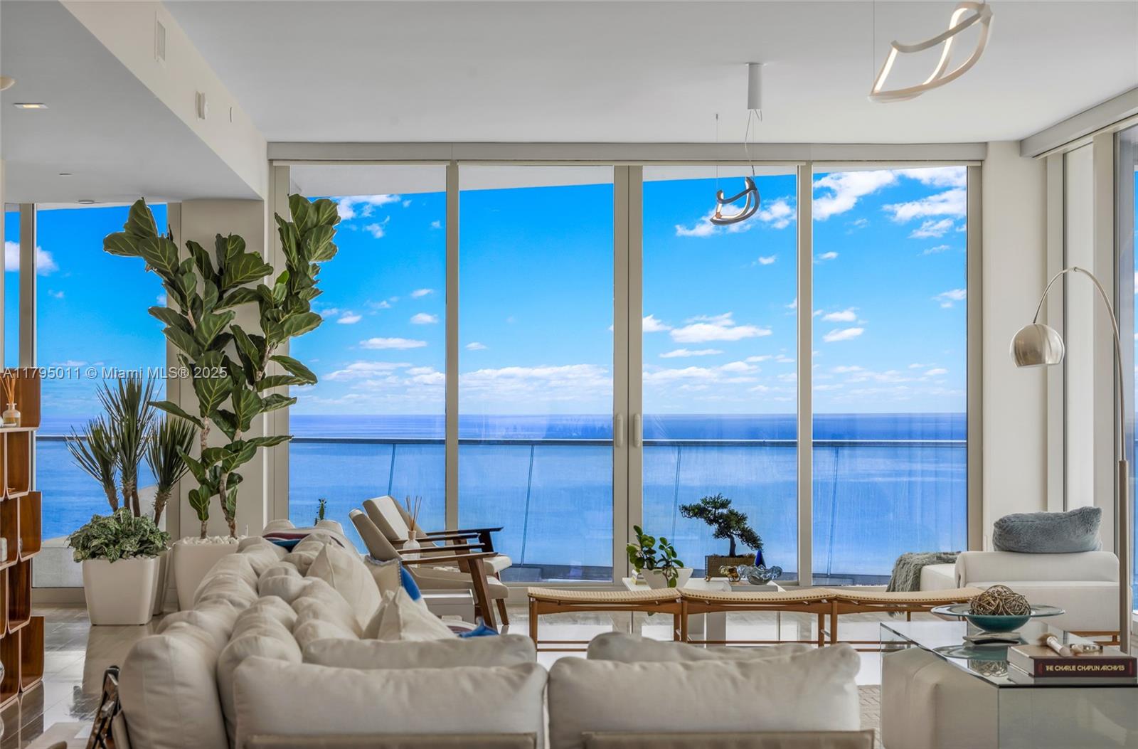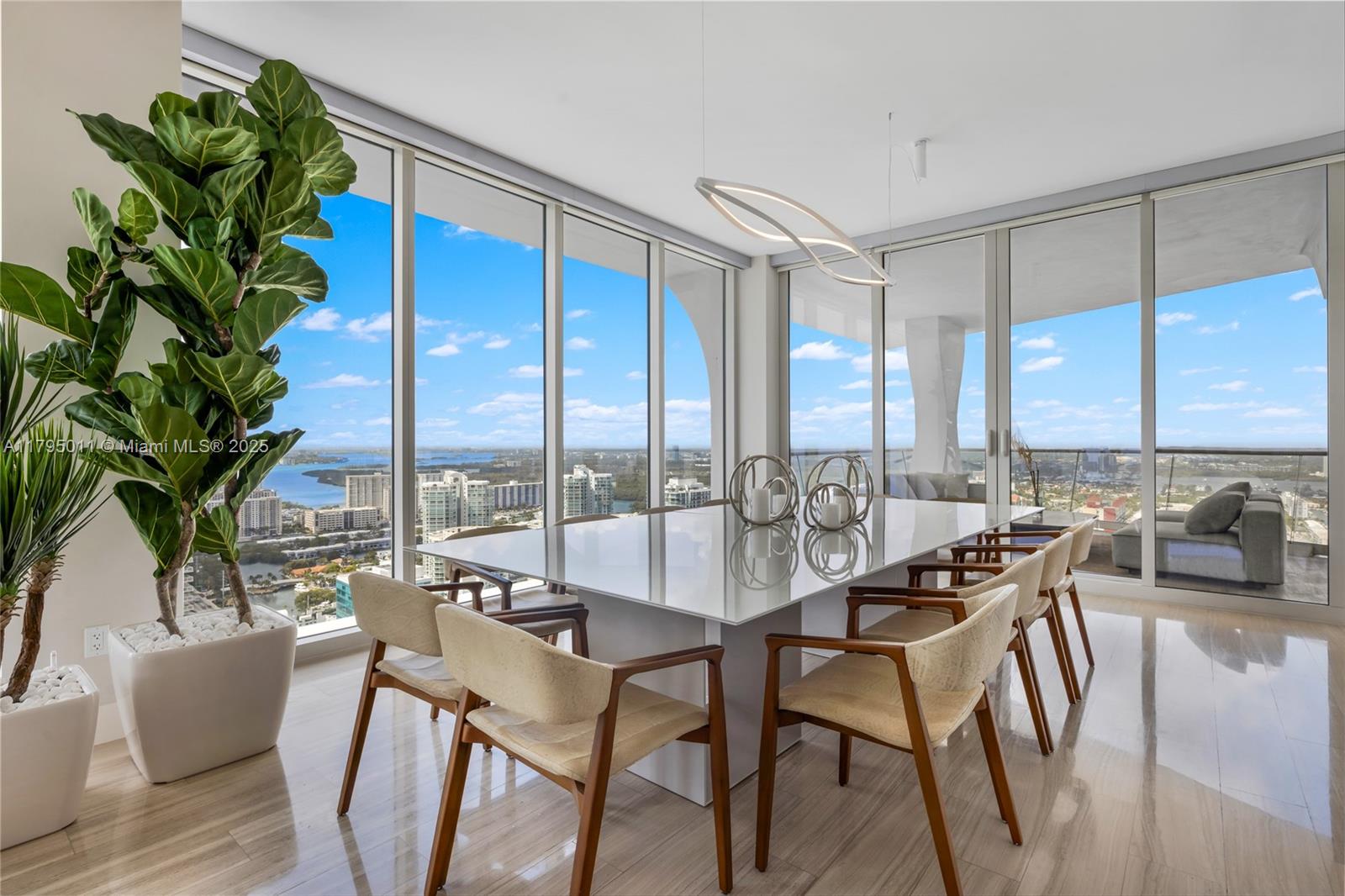 THE BEST FLOOR PLAN IN THE BUILDING WITH THE BEST PRICE. Just an incredible property with private elevator access, 5BEDS/6.5BATH+SERVICE QUARTERS+7 BALCONIES with an area of 4,674 SqFt interior + 1,491 SqFt of exterior (per developer floor plan/attached) This property have views on views, an amazing corner unit all glass windows from floor to ceiling with 180 degrees views facing the ocean and the city. The balconies are extensions of the living area integrating seamless, and not only that but the property also comes with 3 parking spaces and storage unit.