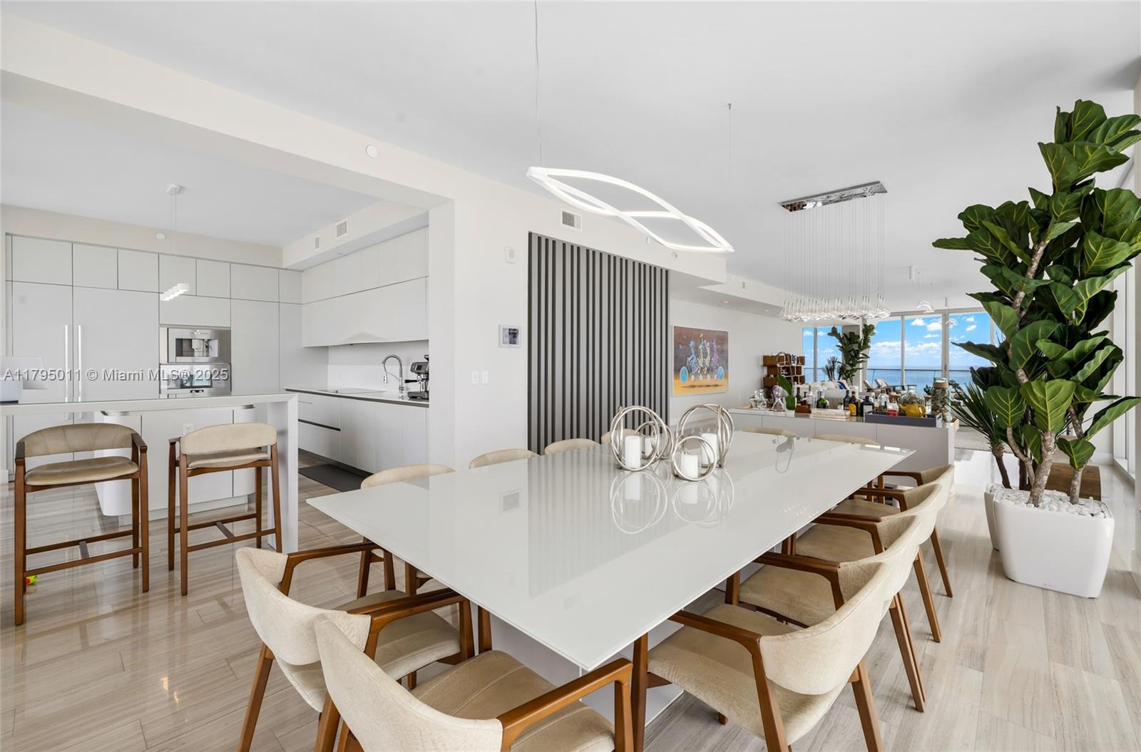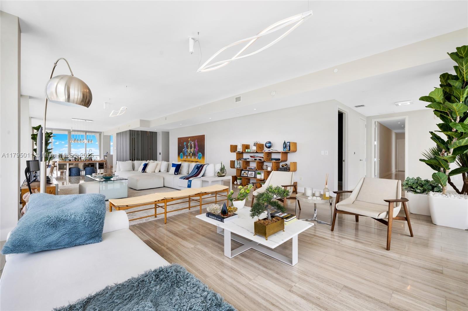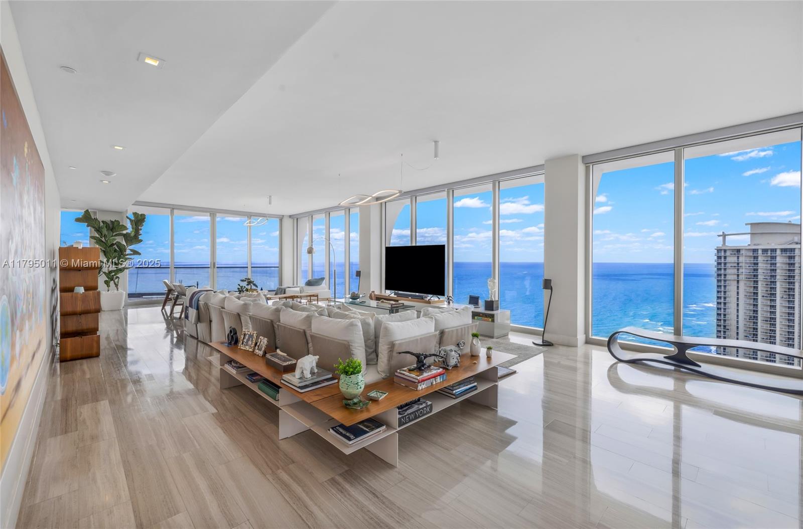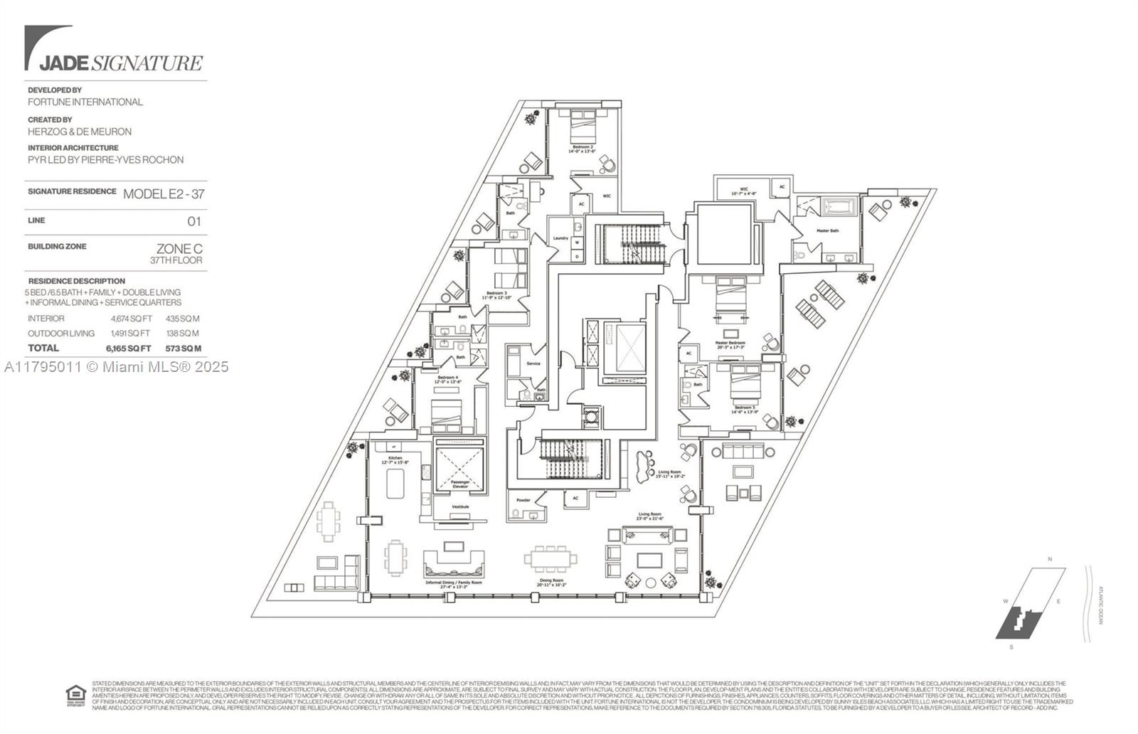 THE BEST FLOOR PLAN IN THE BUILDING WITH THE BEST PRICE. Just an incredible property with private elevator access, 5BEDS/6.5BATH+SERVICE QUARTERS+7 BALCONIES with an area of 4,674 SqFt interior + 1,491 SqFt of exterior (per developer floor plan/attached) This property have views on views, an amazing corner unit all glass windows from floor to ceiling with 180 degrees views facing the ocean and the city. The balconies are extensions of the living area integrating seamless, and not only that but the property also comes with 3 parking spaces and storage unit.