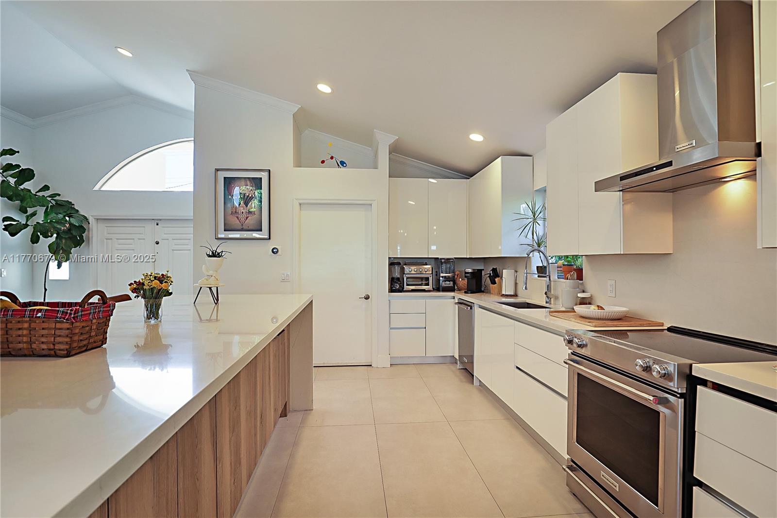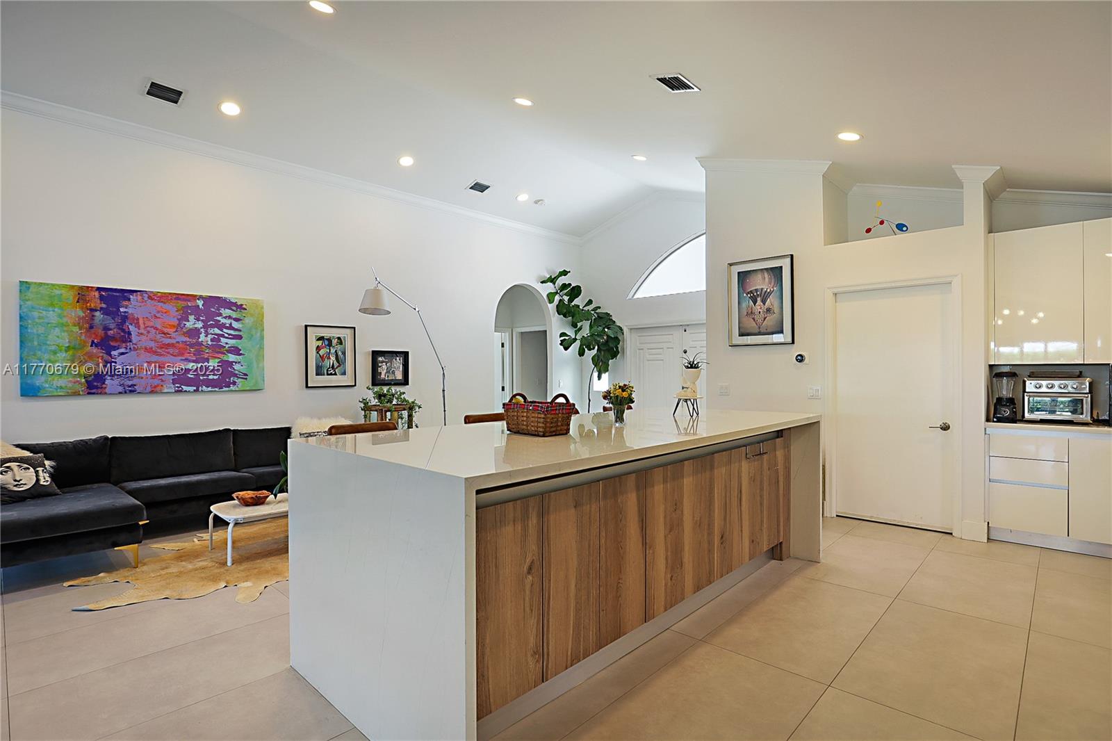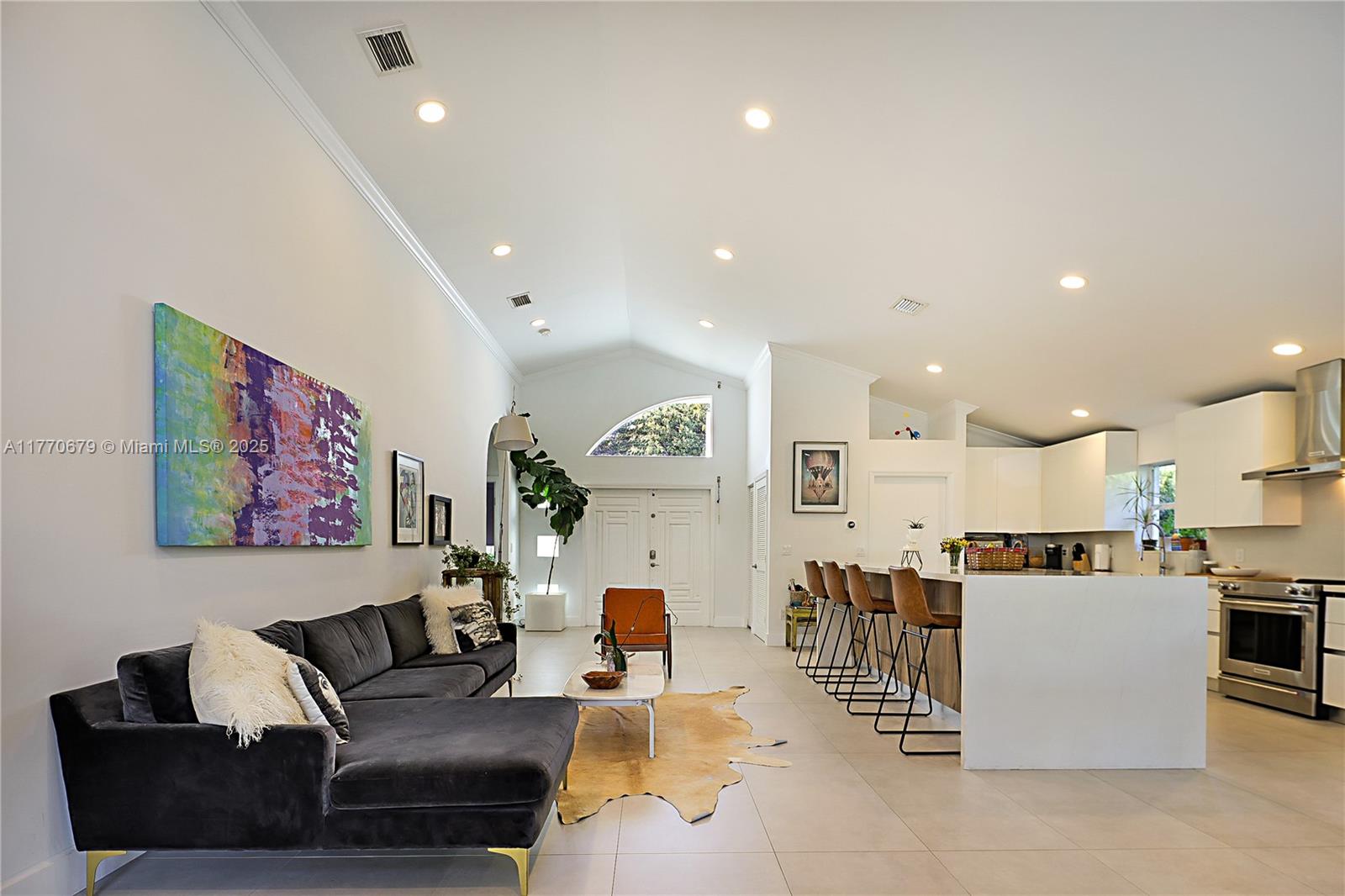 One of the finest homes available in Surfside! Built in 1997, this completely renovated, elegant home has 3 spacious bedrooms, 2 bathrooms, and oversized Italian porcelain tile floors throughout. The gourmet kitchen has top-of-the-line appliances and a stunning cascade island, perfect for entertaining. The home has an open-concept layout with high ceilings & abundant natural light. The elevated property features roll-down shutters and a new aluminum roof for superior storm protection. The 1-car garage can easily be converted into a 4th room and the backyard has plenty of space for a pool. Only a few blocks to the beach, Surfside Community Center/pool, tennis ctr, shopping, fine dining, houses of worship, Bal Harbour Shops & the Four Seasons Surf Club. Zoned for A-rated Bay Harbor schools.