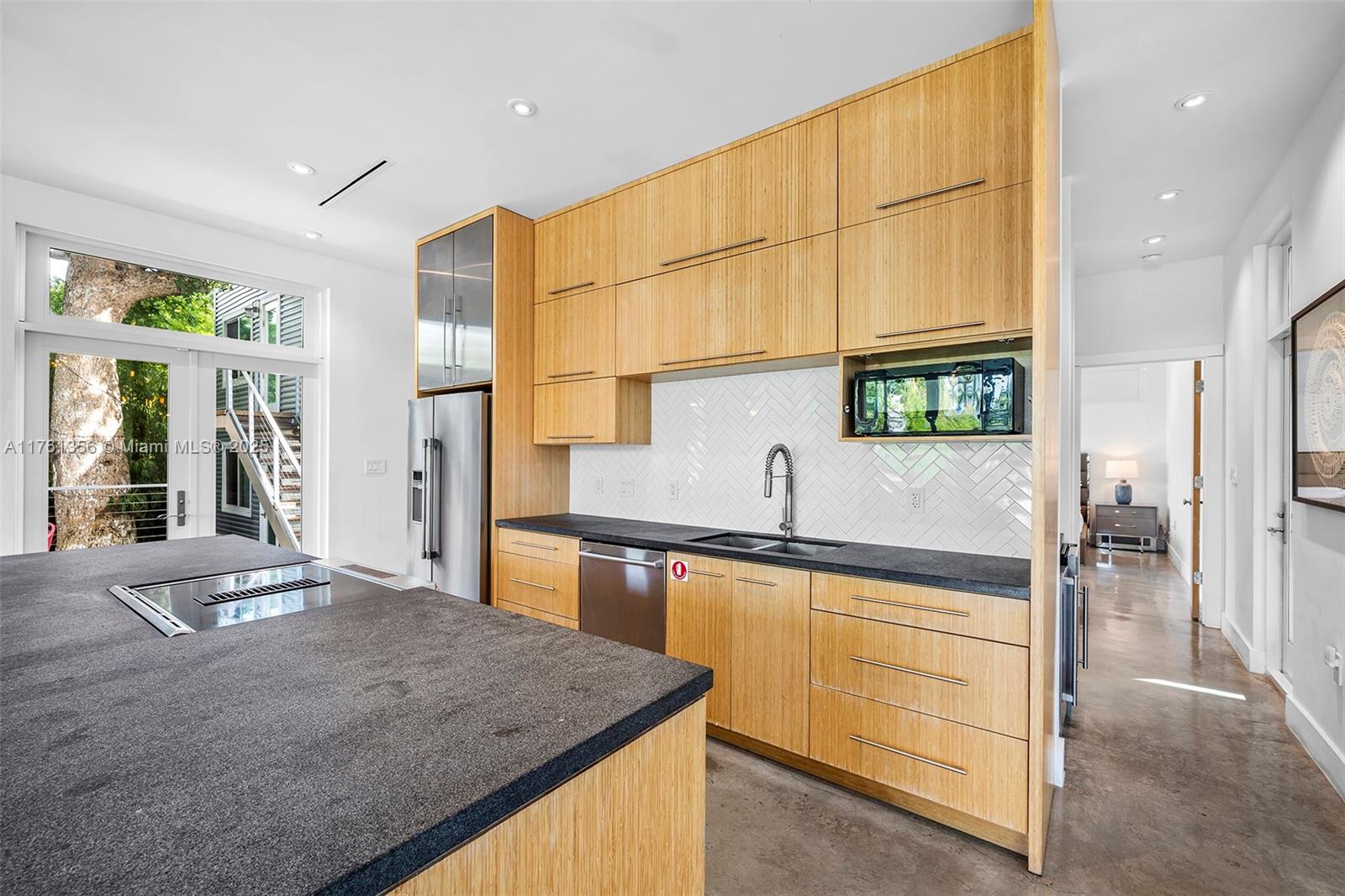 Villa Tulum. Introducing a unique waterfront sanctuary in Miami's Upper East Side, where beach lifestyle meets modern luxury. Nestled on a lush, oversized 11,000 sq. ft. lot, this 2017-built compound is perfect for entertaining, seamlessly integrating tropical outdoor living with bright, airy interiors. The main house features a breeze open living area, covered patio, and 4 bedrooms. A detached 2 story guest house includes 2 bedroom loft with a kitchen and bathroom, maid’s quarters, and storage. Outside, enjoy an infinity pool by the Miami River, and a new private dock accommodating up to 65 ft boats without bridges to the bay. Favored by celebrities, this property is perfect as a primary residence or vacation home and provides an excellent investment in a rapidly appreciating area.