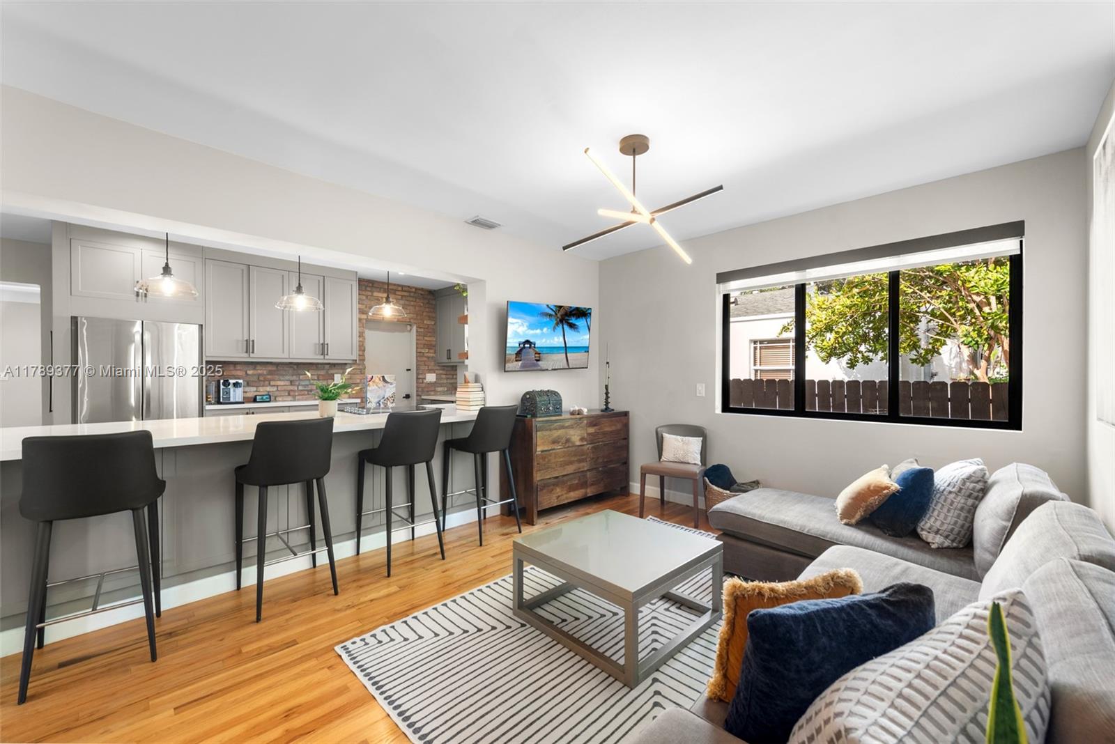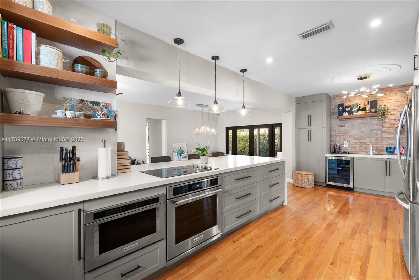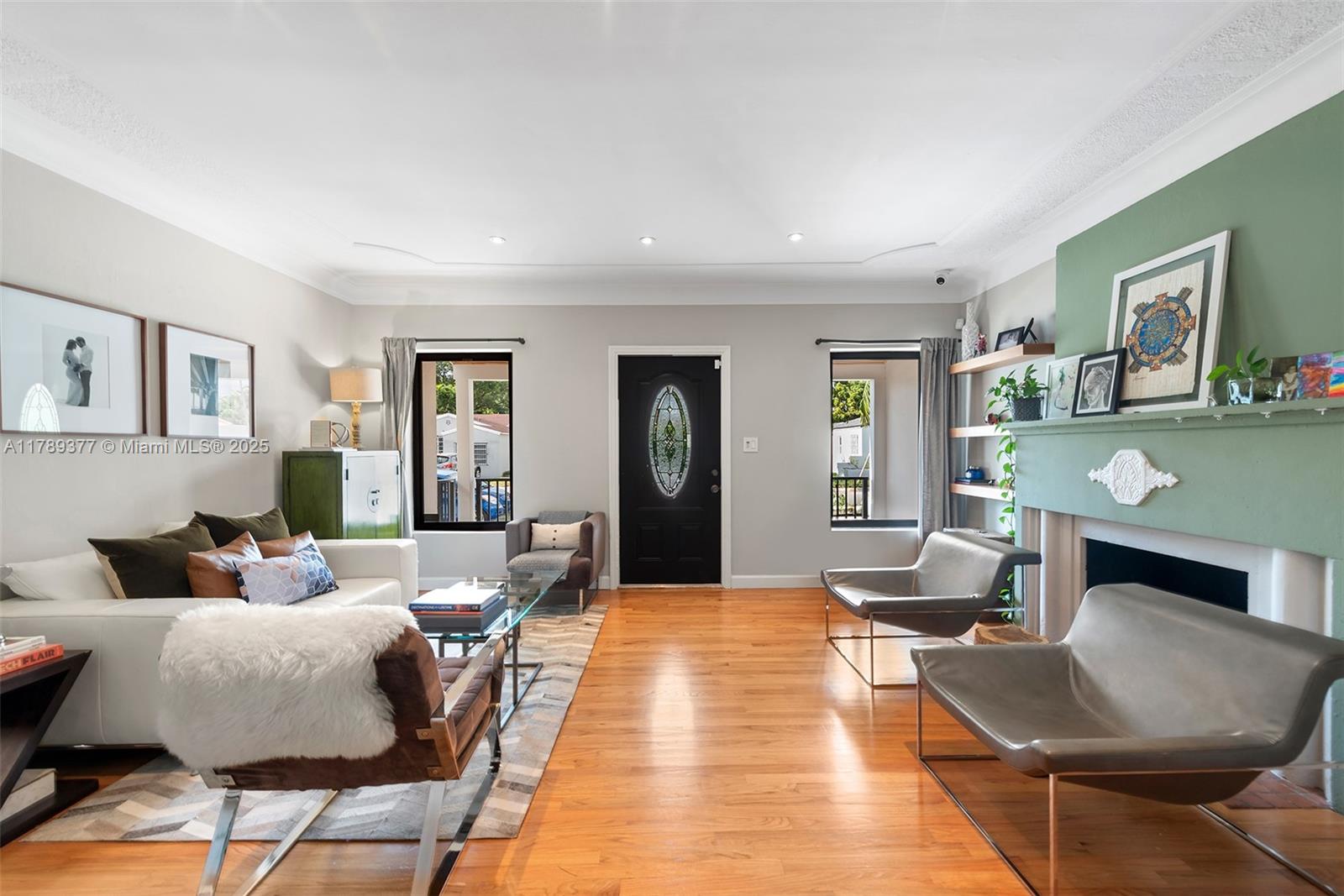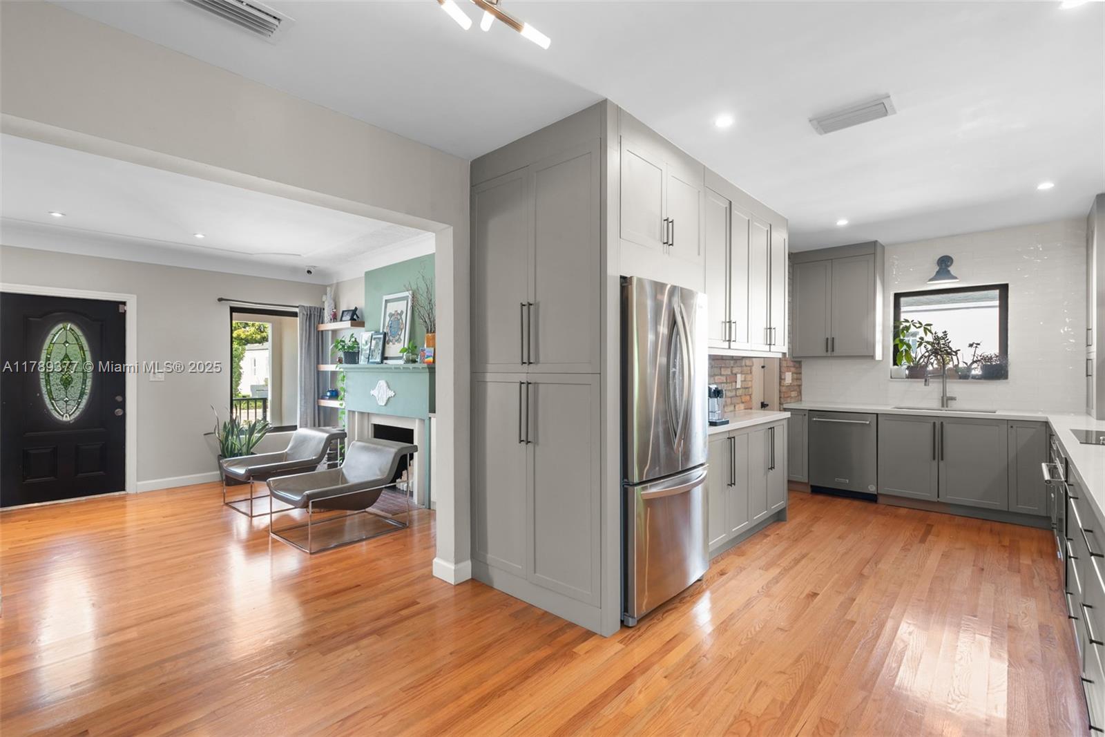 This charming house combines modern design with timeless appeal. The home offers 1,907 sqft of inviting living space, including four bedrooms—one used as a cozy studio and walk-in closet. The kitchen features quartz countertops, KitchenAid appliances, and a built-in wine fridge. Relax by the wood-burning fireplace, enjoy impact glass windows, and beautiful hardwood floors. The bar area, accented with Chicago brick, provides extra storage. Bathrooms are fully tiled, including a front bath with a Kohler tub. Additional highlights include a security camera system and a crawl space. The exterior boasts a covered patio and landscaped yard. Don’t miss this wonderful opportunity!