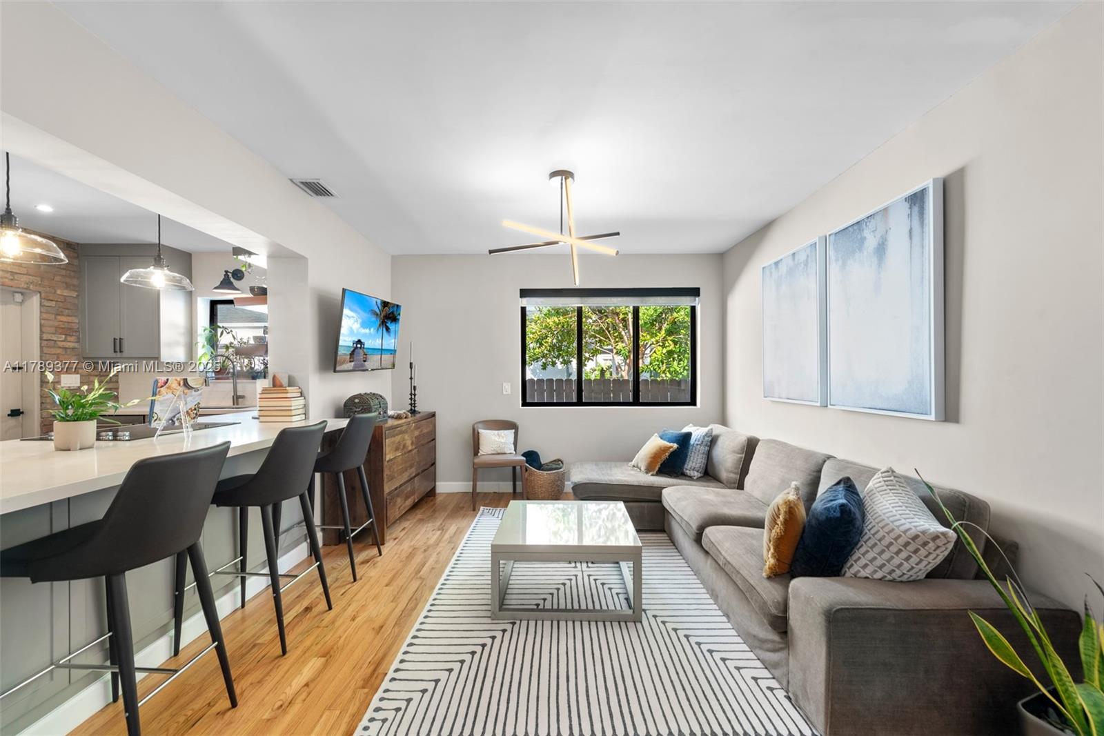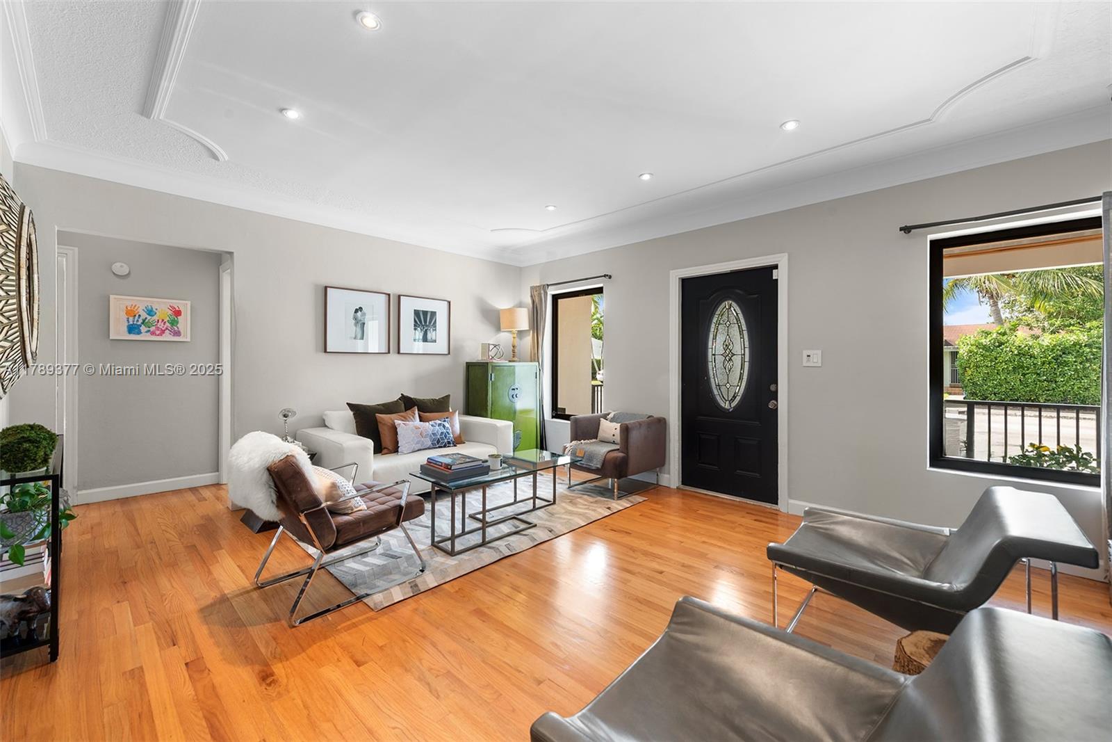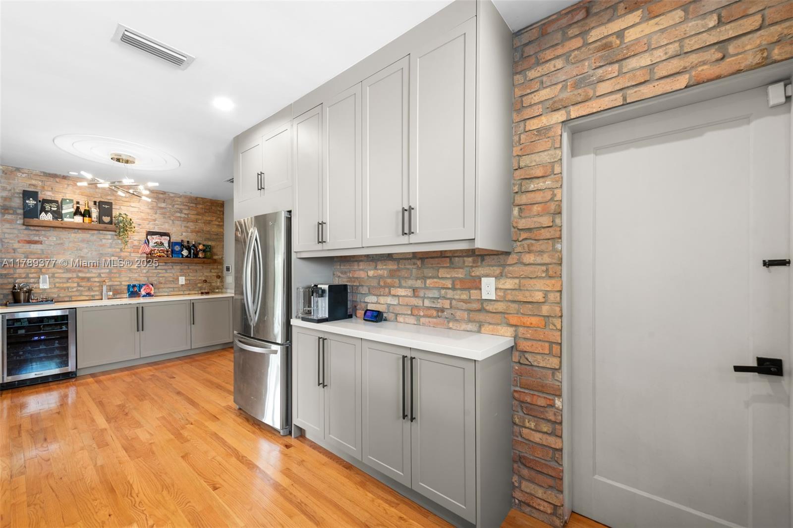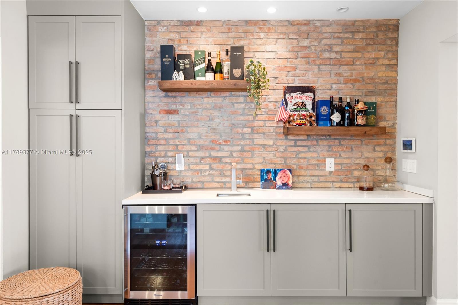 This charming house combines modern design with timeless appeal. The home offers 1,907 sqft of inviting living space, including four bedrooms—one used as a cozy studio and walk-in closet. The kitchen features quartz countertops, KitchenAid appliances, and a built-in wine fridge. Relax by the wood-burning fireplace, enjoy impact glass windows, and beautiful hardwood floors. The bar area, accented with Chicago brick, provides extra storage. Bathrooms are fully tiled, including a front bath with a Kohler tub. Additional highlights include a security camera system and a crawl space. The exterior boasts a covered patio and landscaped yard. Don’t miss this wonderful opportunity!