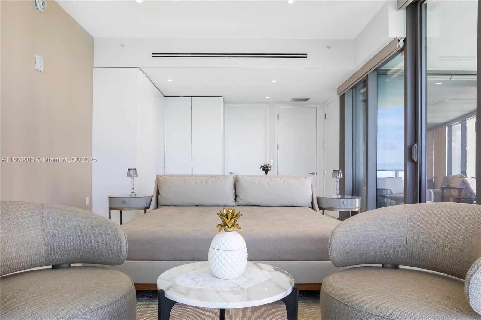 Stunning residence has beautiful coastline & wraps around views. Enjoy the Miami skyline, Bay & Intracoastal from this residence Ritz Carlton has white glove service and amenities. Over 10ft ceilings with 2 spacious Master beds plus living/office area, 2 Master Bathrooms. Comes fully furnished kitchen equipped w/ top of the line Italian furniture. Private elevator foyer & service quarters (Room w/full bath). Designed by world-renowned architectural firm Arquitectonica & interiors by Italian designer Michele Bonan. Amenities include concierge, valet, restaurant & room service, beach & pool services, 2 swimming pools, hot tub, movie theater, oceanfront gym and Spa, wine lounge, game room, complimentary continental breakfast every day and much more.