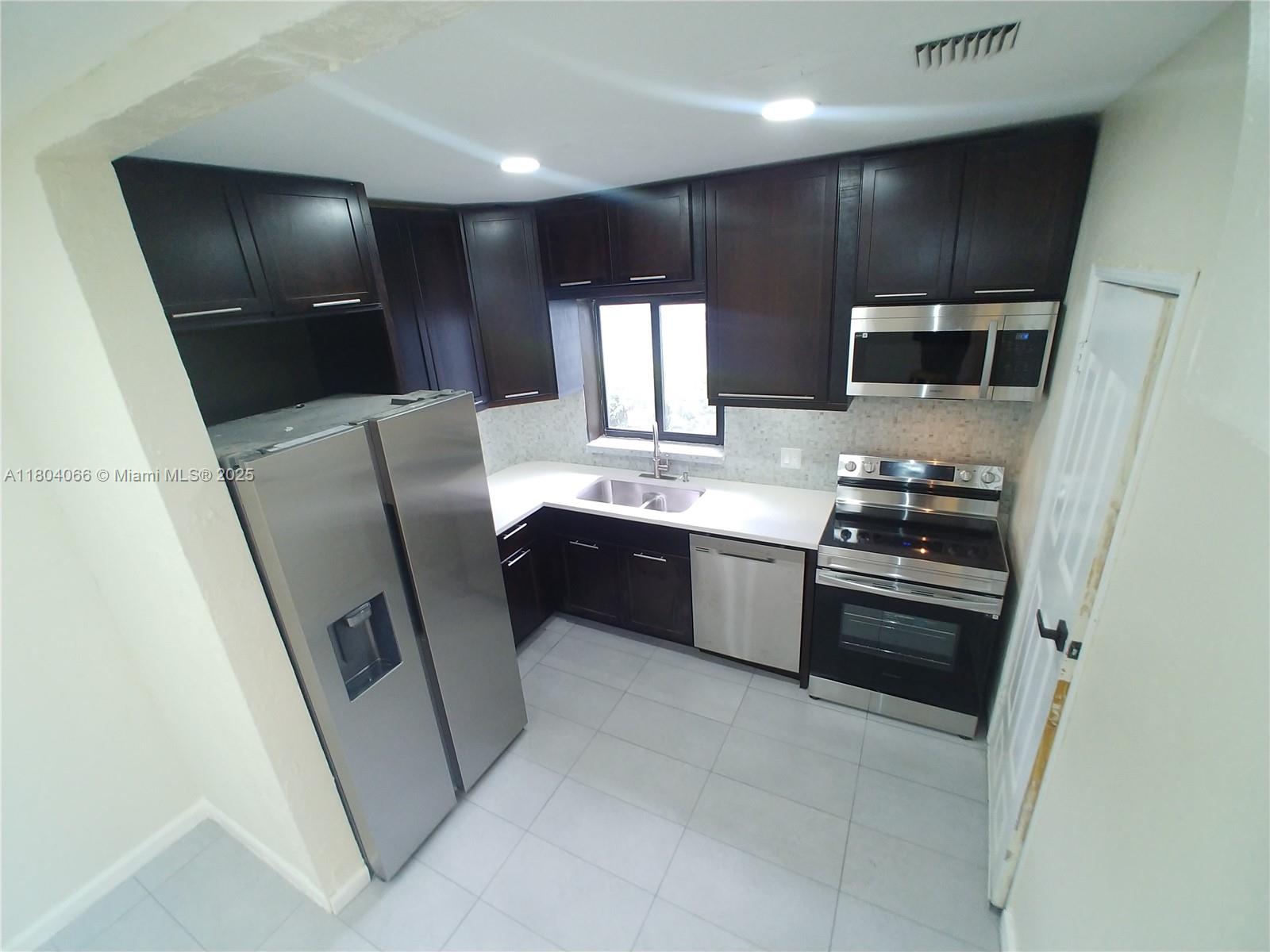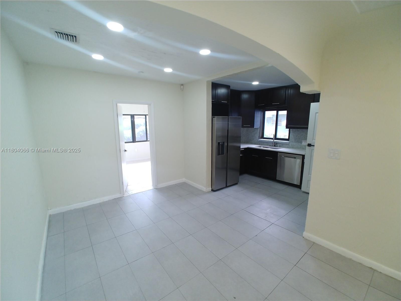 Renovated 3 bedroom 1 bath w/ rare attached garage! Tenant occupied at $3,231, but tenant is moving June 30, 2025. New hurricane windows, tile roof, flooring, custom kitchen w/ stainless appliances & quartz countertops, & under cabinet lighting. Updated bath w/ shower panel, large primary bedroom w/ windows on three sides & exit to backyard. Recessed lights & ceiling fans. Garage includes a laundry area, room for Tesla charger, 1 car + extra storage. Additional parking for 1 car in the driveway. Backyard is fenced & has room for more parking, deck, pool, or addition. Opportunity Zone property.